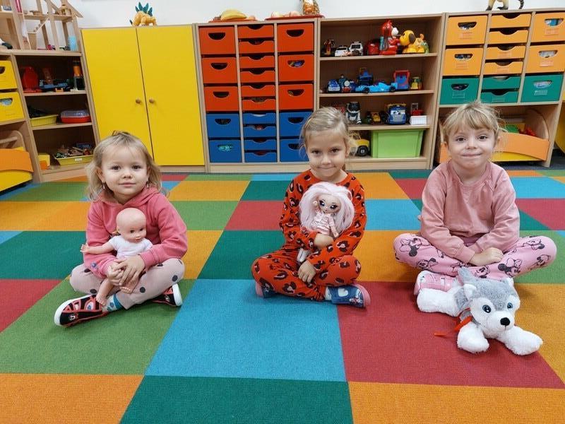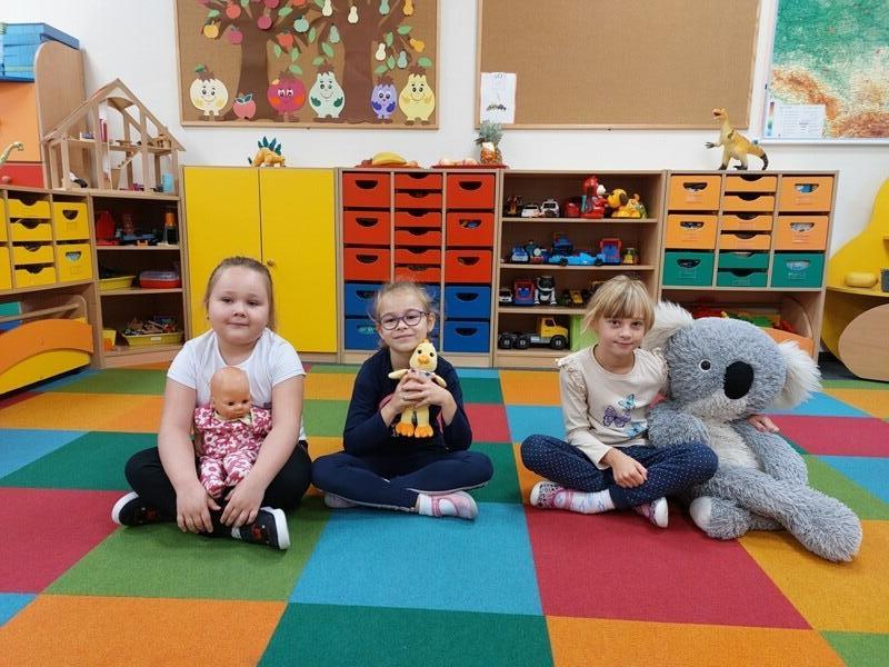 W każdy piątek dzieci przynoszą do przedszkola swoją ulubioną zabawkę. Taka możliwość wywołuje u dzieci wiele radości . Przedszkolaki chętnie dzielą się swoimi zabawkami z kolegami oraz organizują wspólne zabawy.