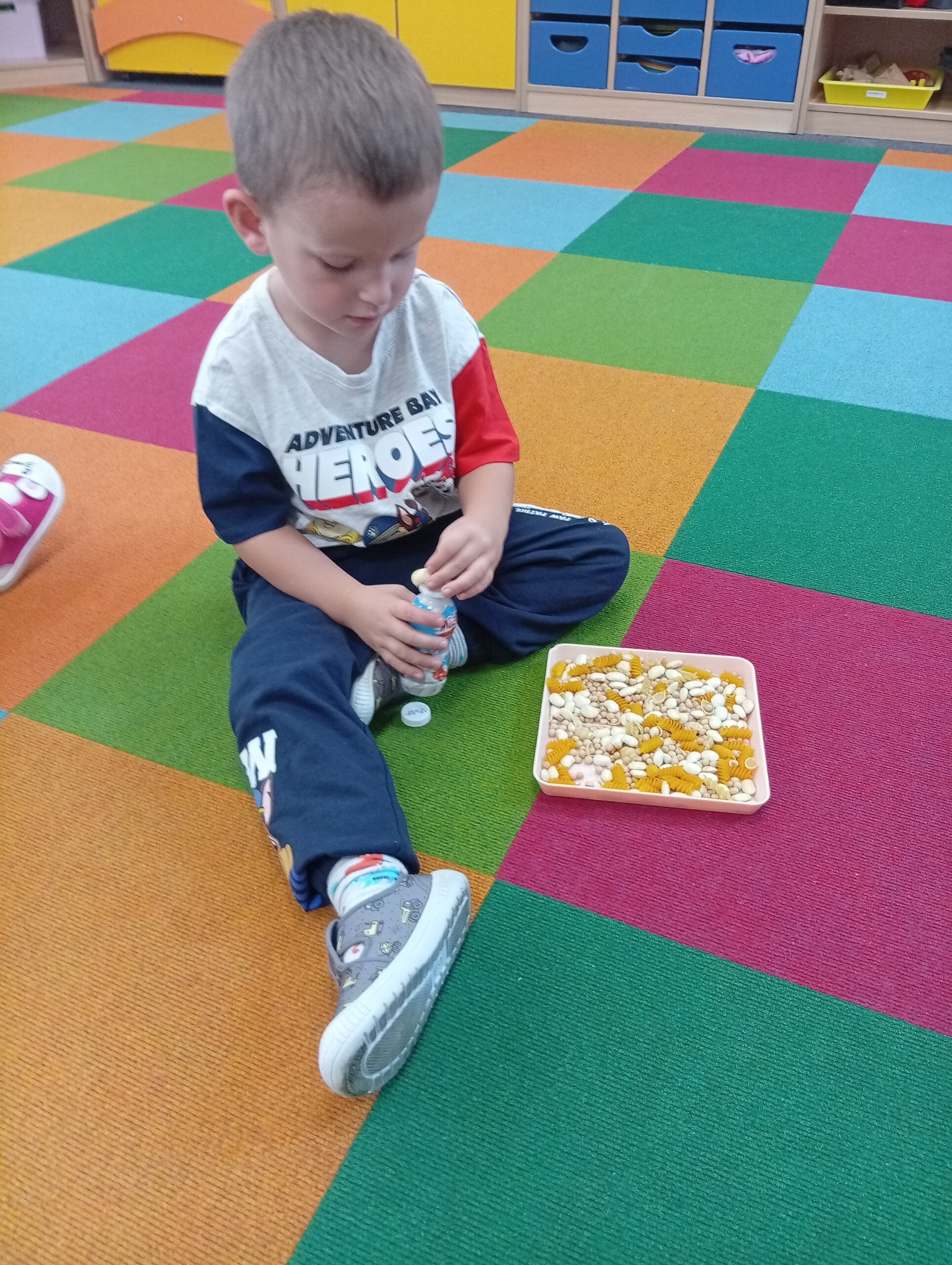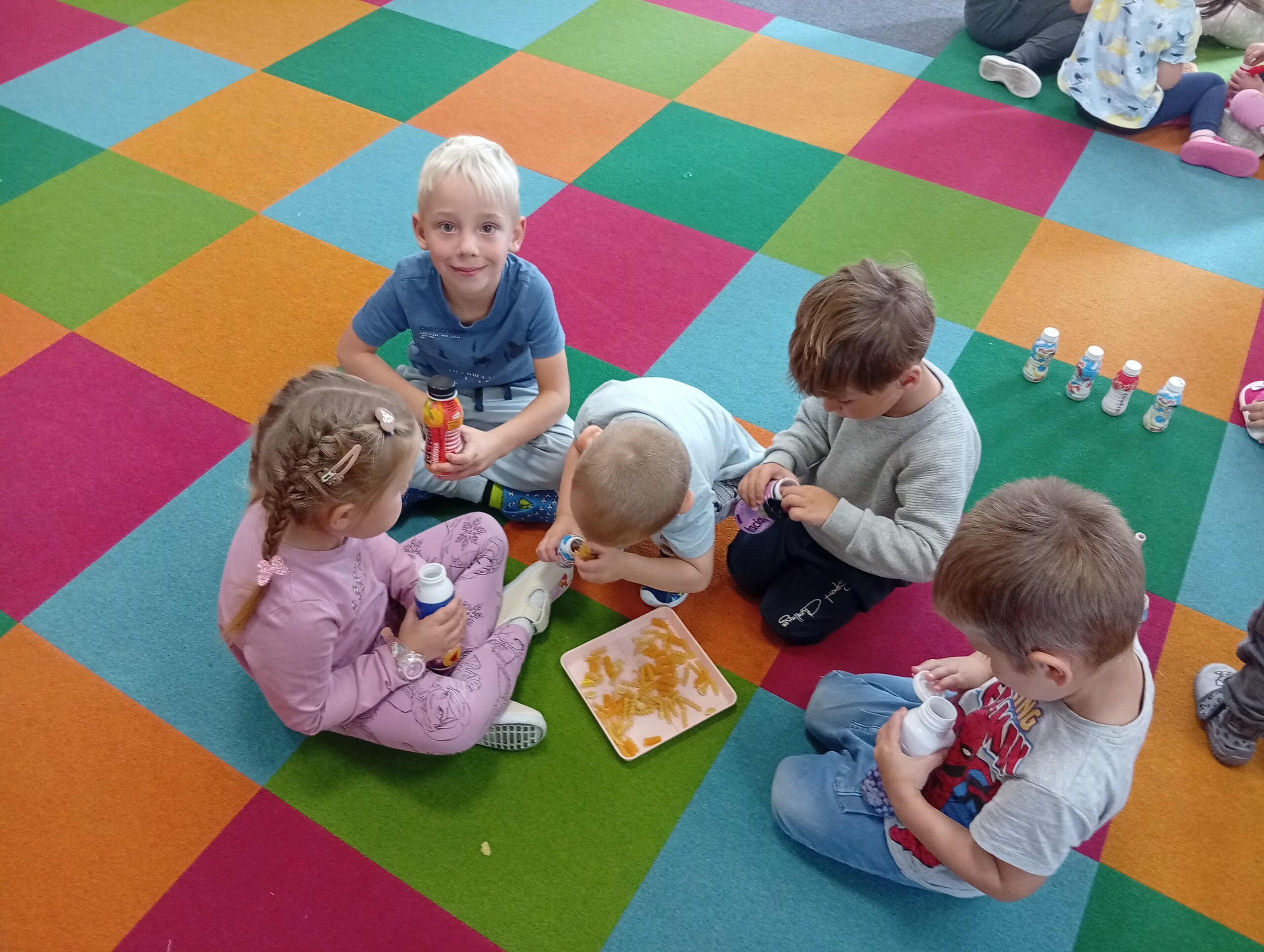 Na zajęciach, każde dziecko samodzielnie wykonało swój instrument muzyczny, który wykorzystało do wspólnych zabaw muzyczno - ruchowych.