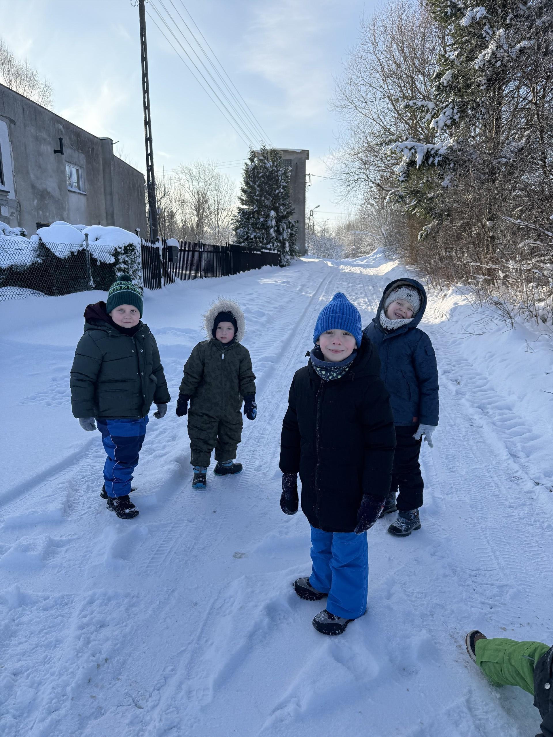 Jak zima to przede wszystkim ze śniegiem. Wtedy wszystkie dzieci z radością korzystają z jej uroków.