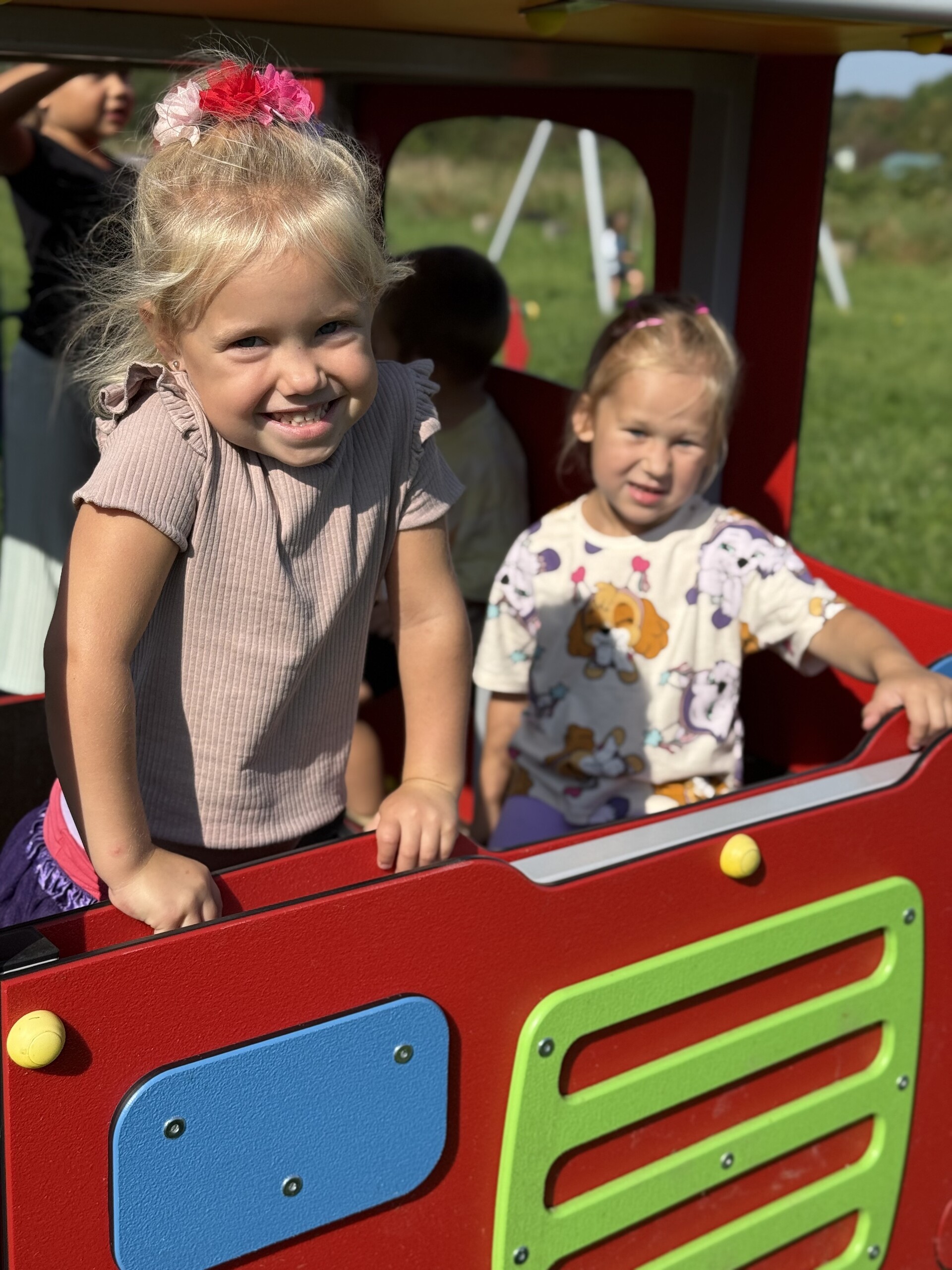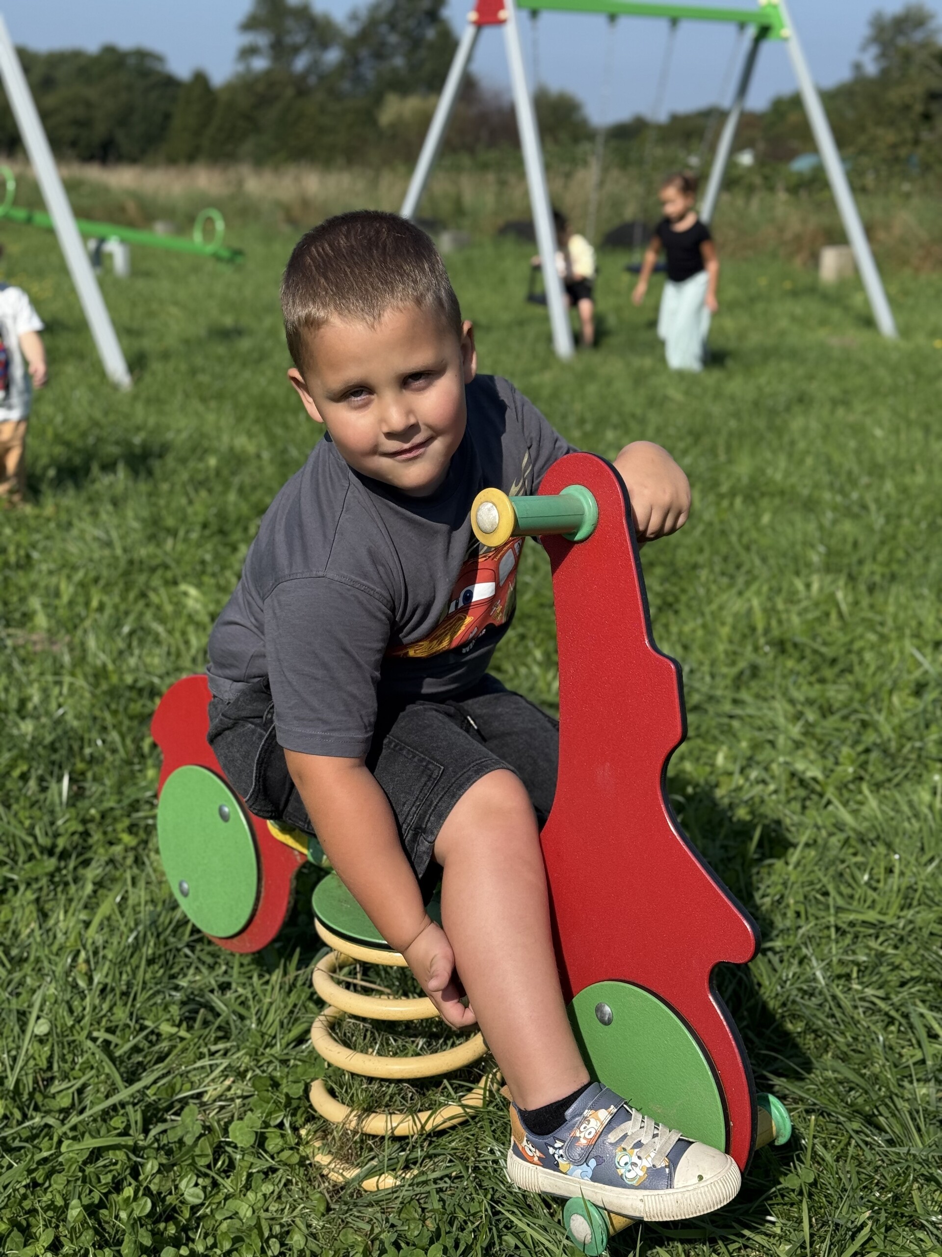 Wrześniowa pogoda bardzo nam sprzyjała więc korzystając ze słońca, spędzaliśmy czas na placu zabaw, na którym przedszkolaki świetnie się bawiły.
