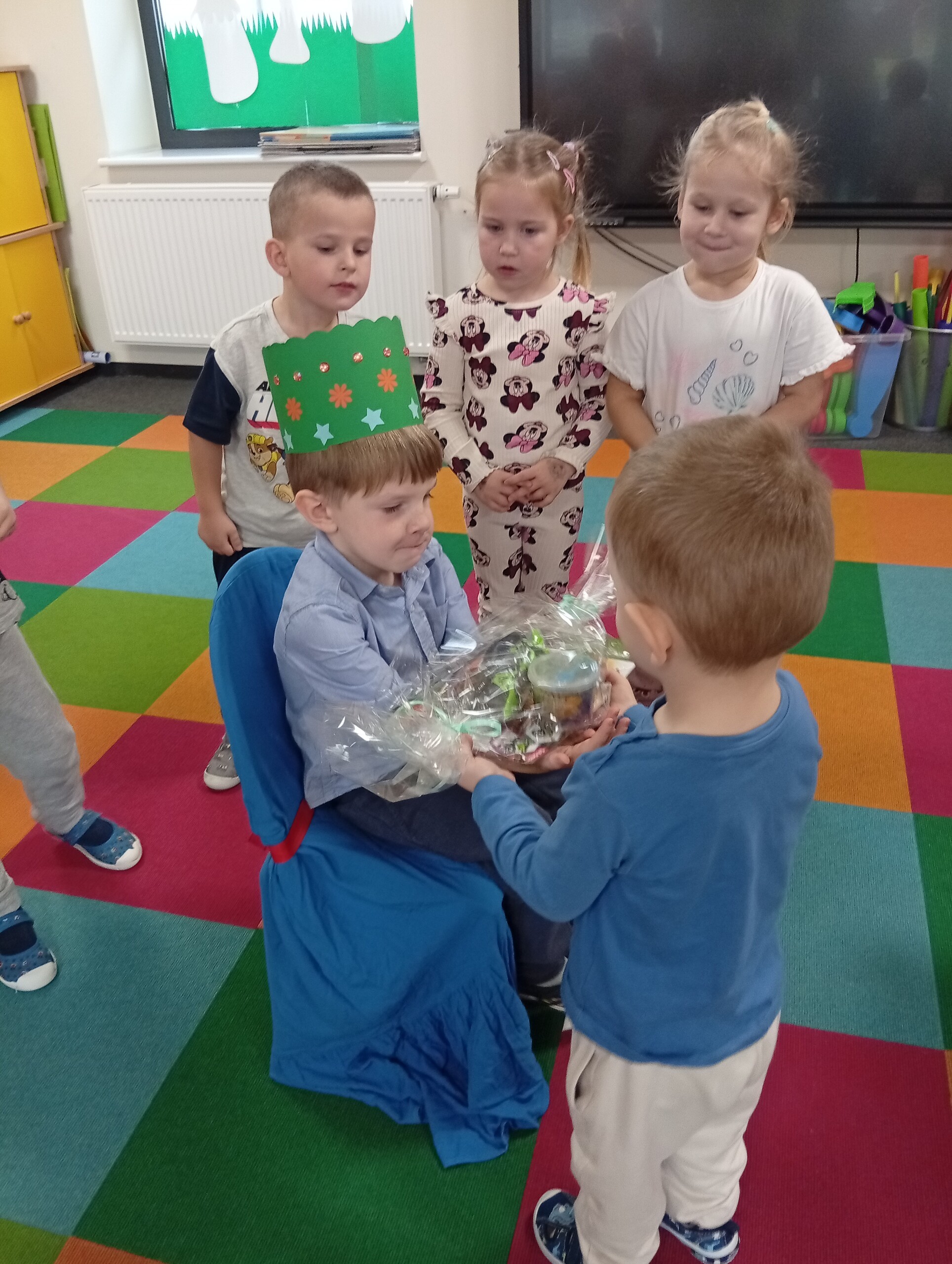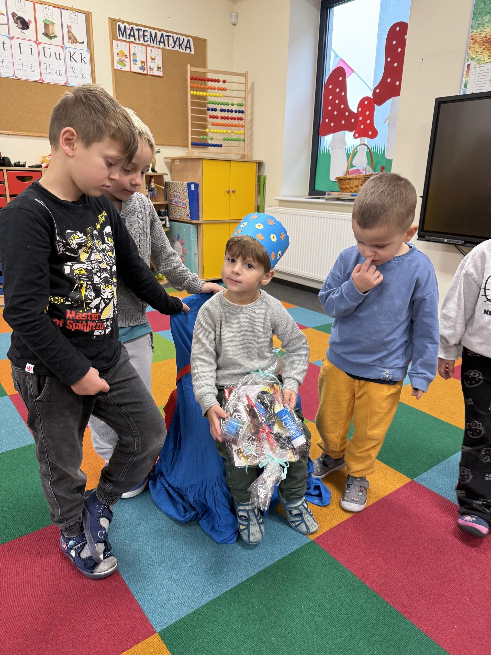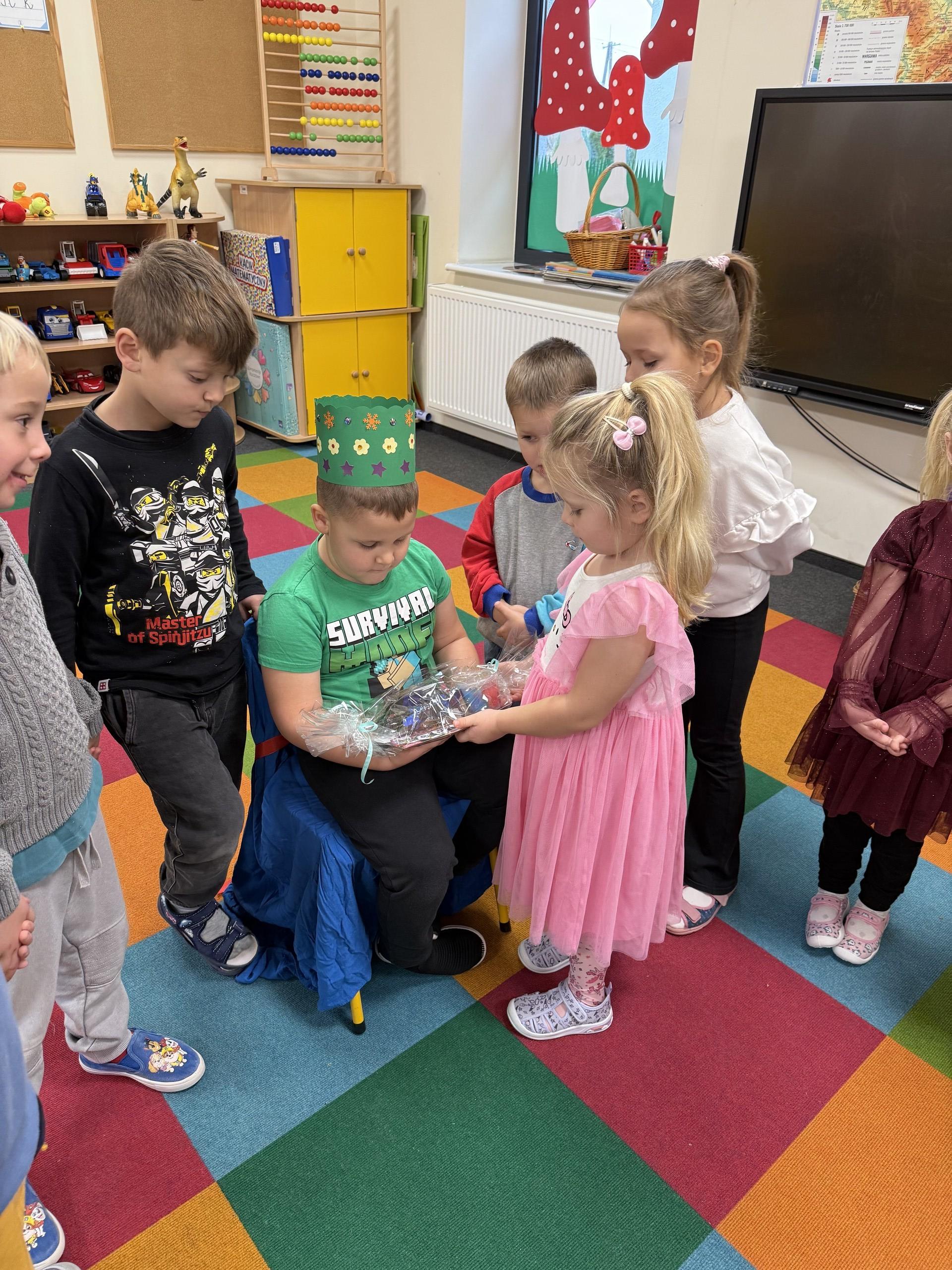 W listopadzie swoje urodzinki obchodzili: Hania, Czarek, Jasiu i Antoś. Wszyscy zaśpiewaliśmy im 100 lat i złożyliśmy życzenia. Oni w podziękowaniu obdarowali nas słodkimi upominkami.