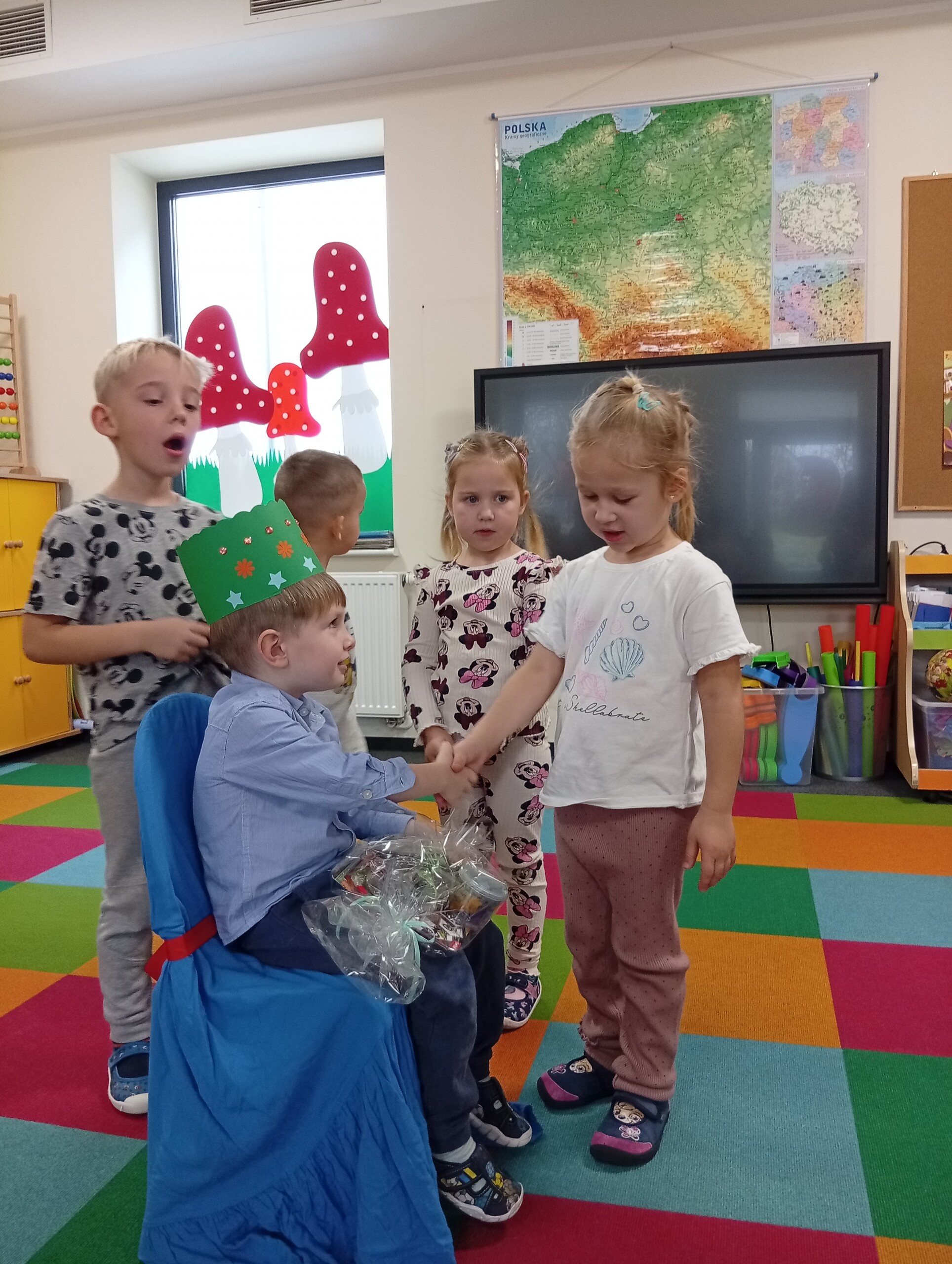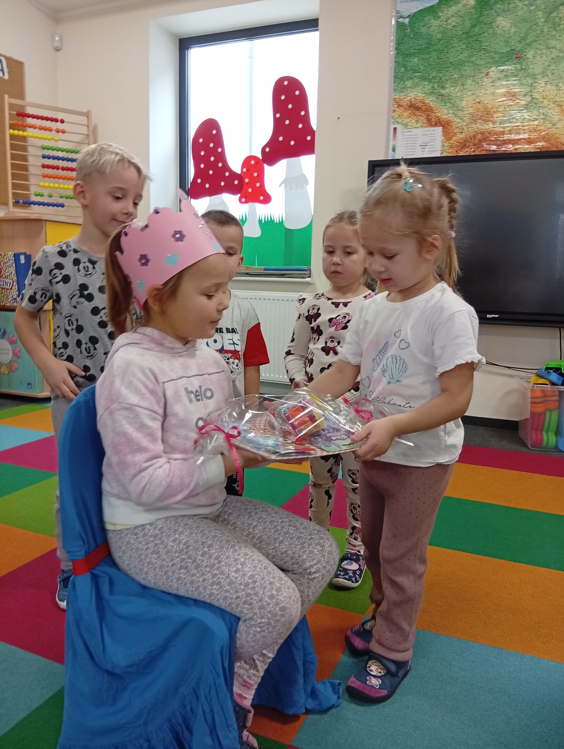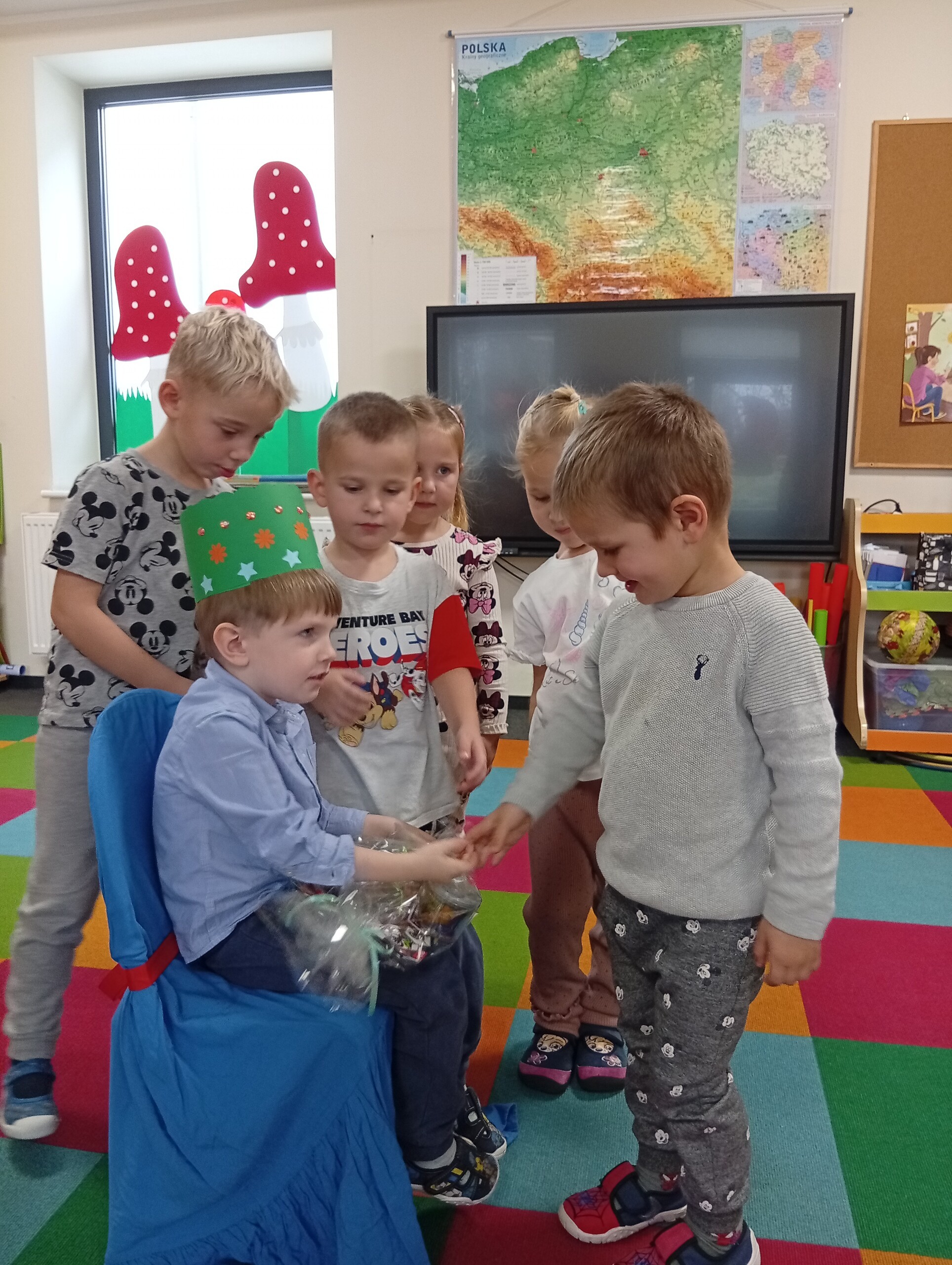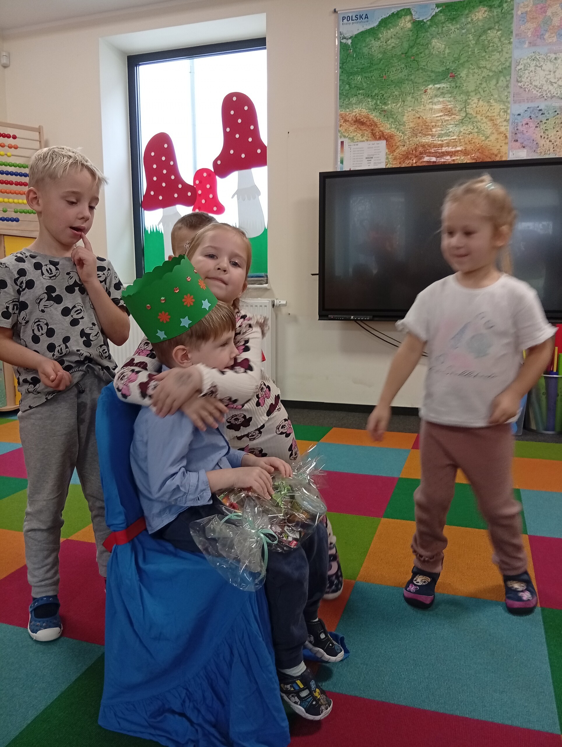 W listopadzie swoje urodzinki obchodzili: Hania, Czarek, Jasiu i Antoś. Wszyscy zaśpiewaliśmy im 100 lat i złożyliśmy życzenia. Oni w podziękowaniu obdarowali nas słodkimi upominkami.