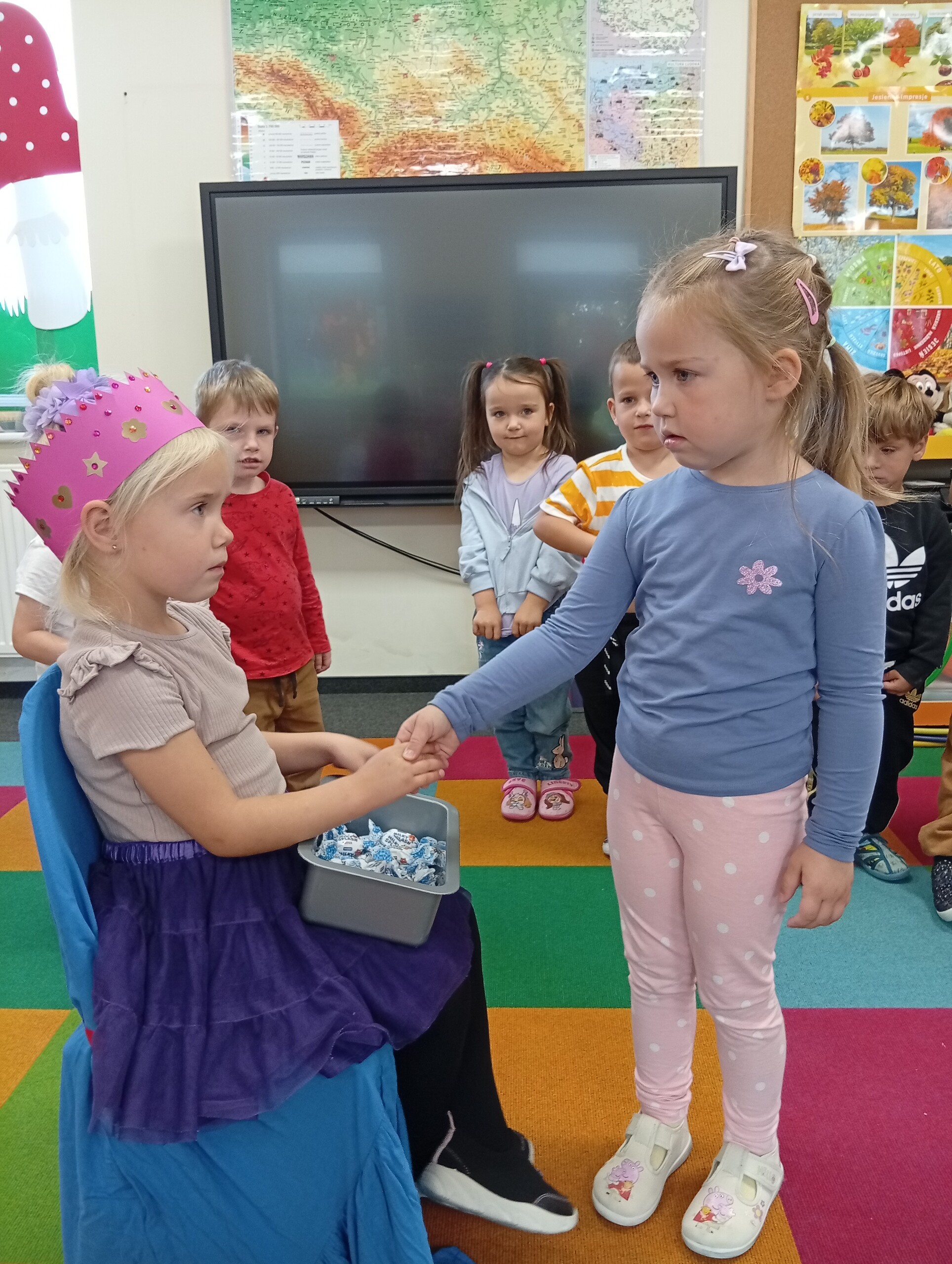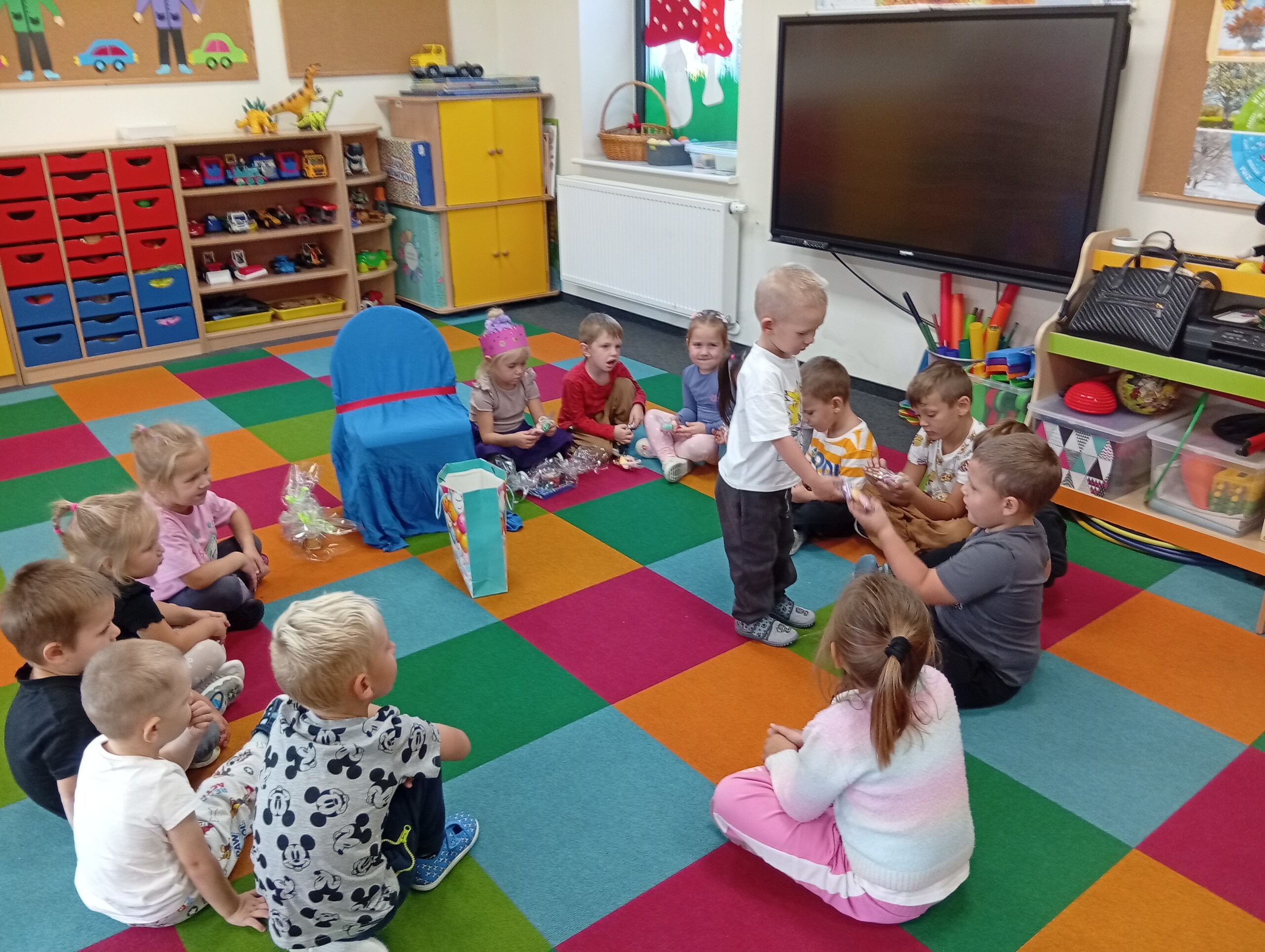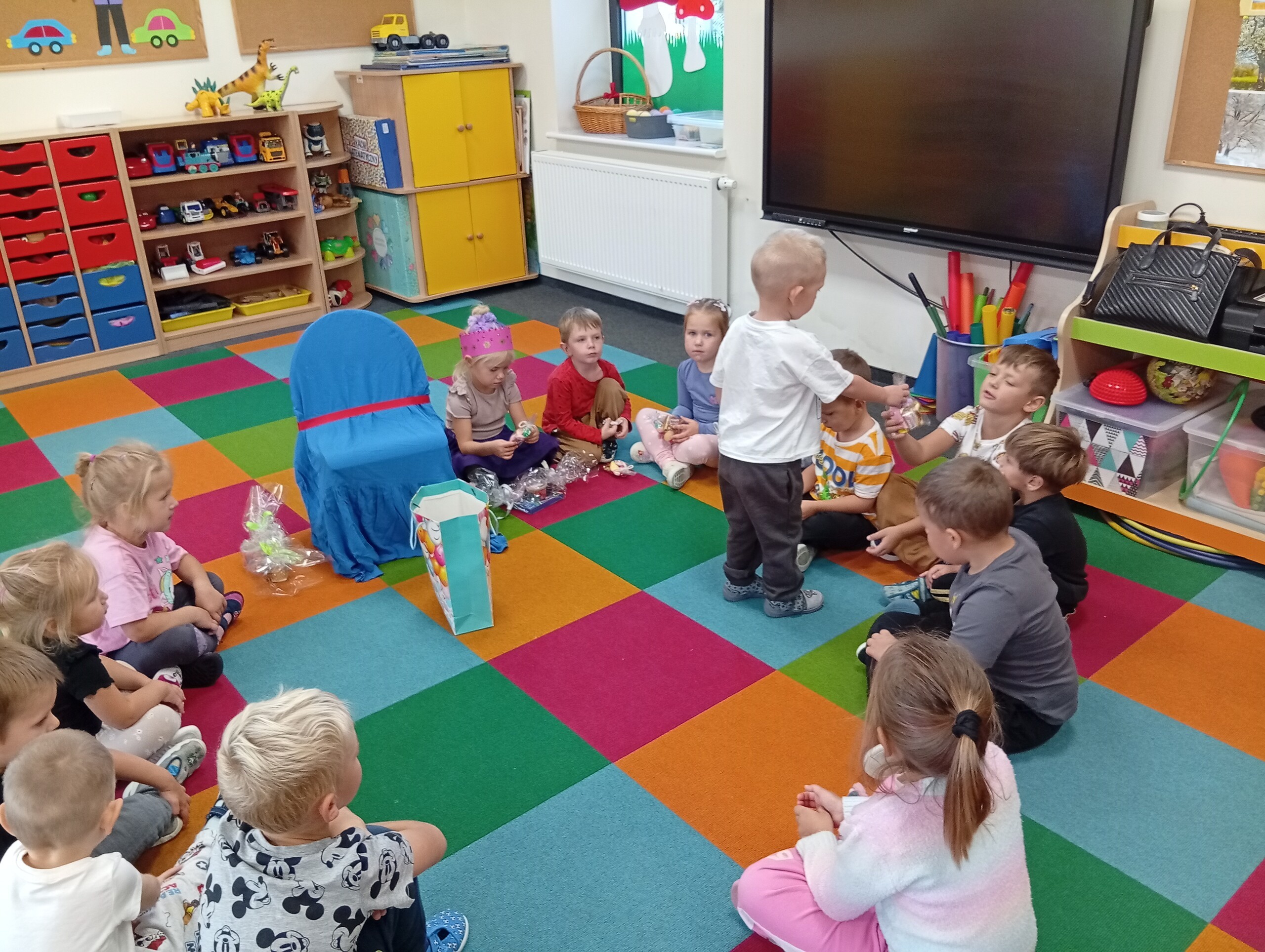 We wrześniu obchodzili w przedszkolu swoje urodzinki: Weronika i Franek. Przedszkolaki złożyły im życzenia oraz wręczyły prezenty, a solenizanci poczęstowali wszystkich cukierkami.
