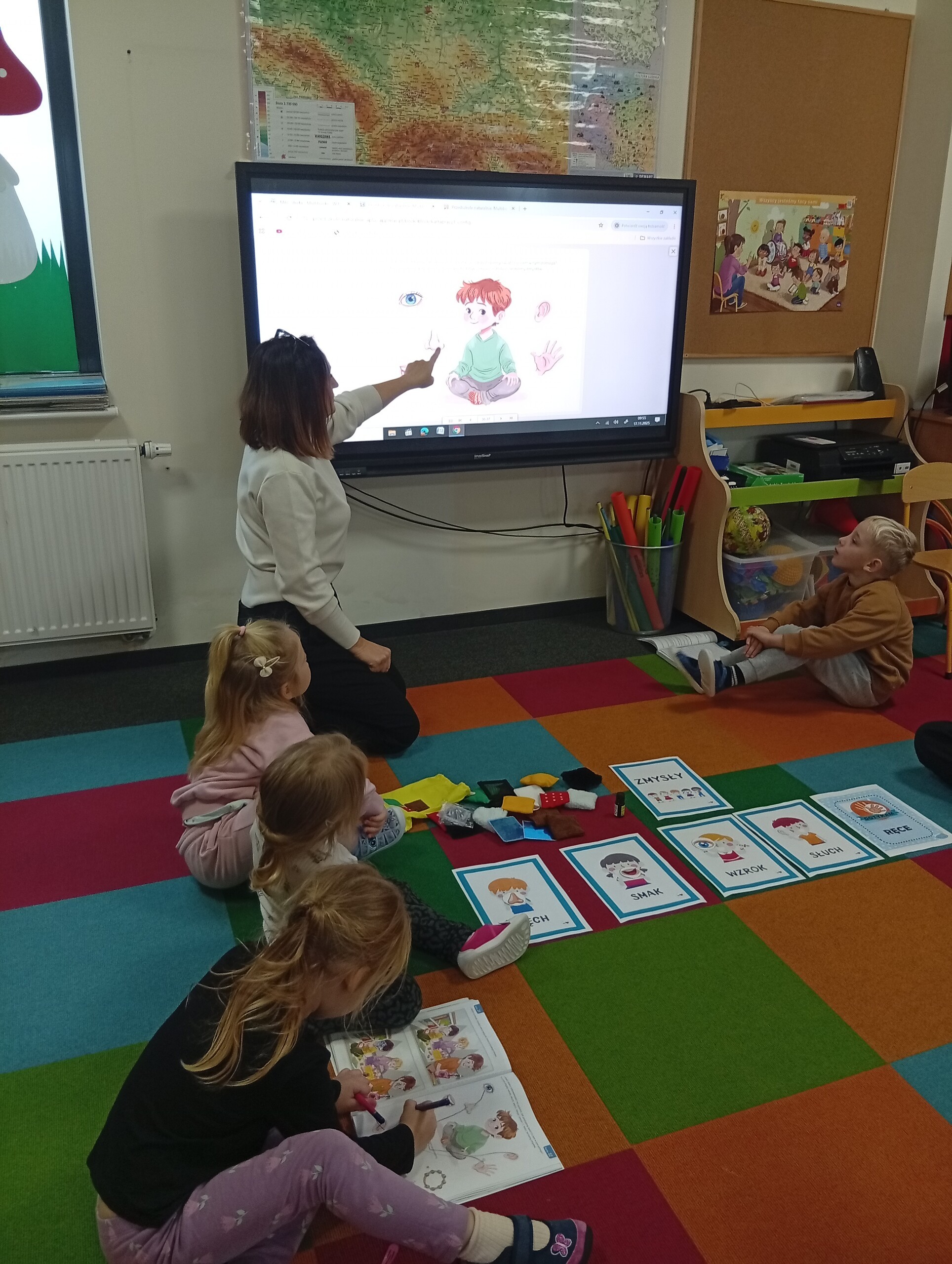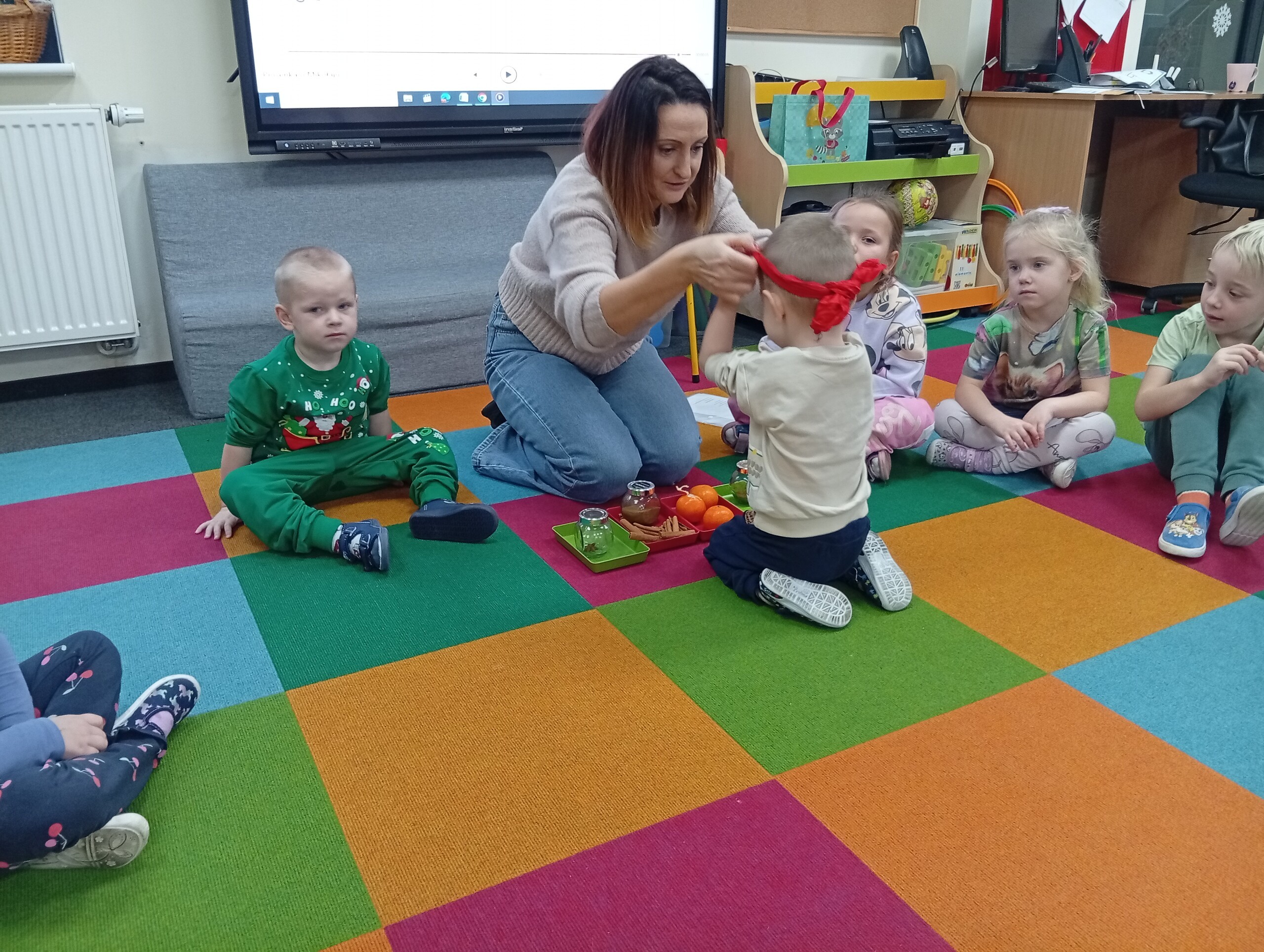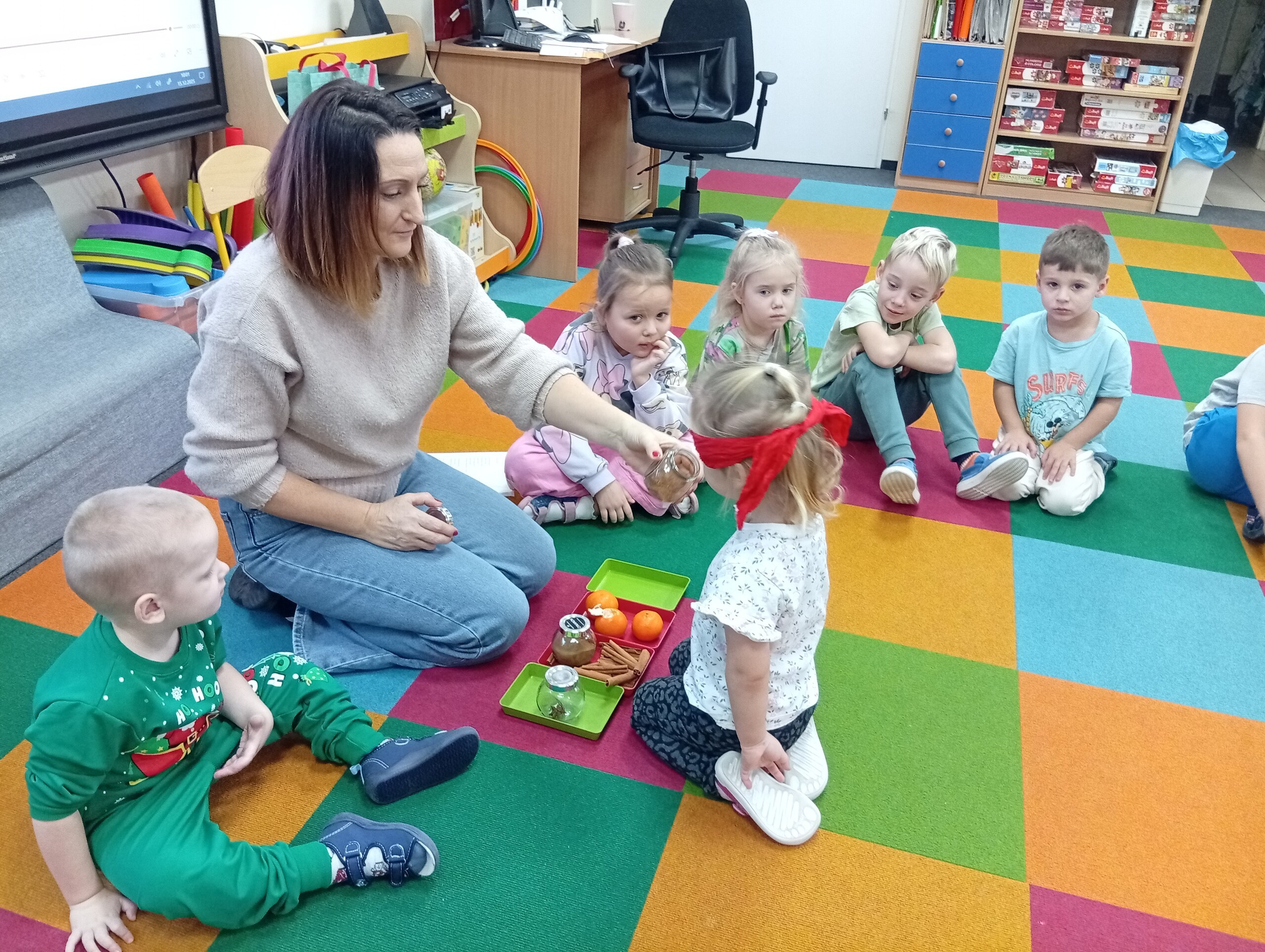 Podczas zajęć dydaktycznych, dzieci poznają otaczający ich świat za pomocą zmysłów. Chętnie biorą udział w różnych ciekawych zabawach i doświadczeniach.