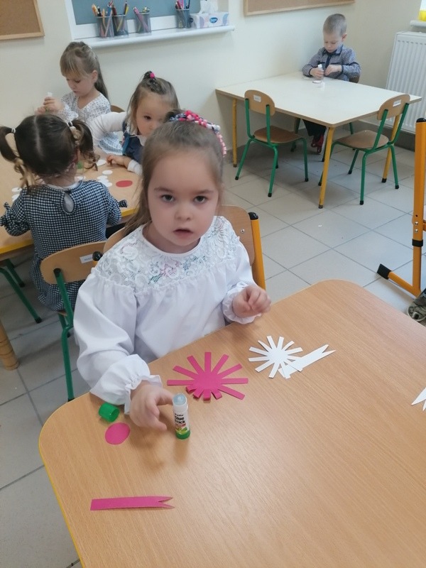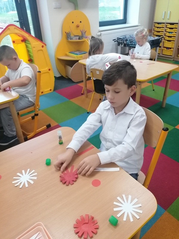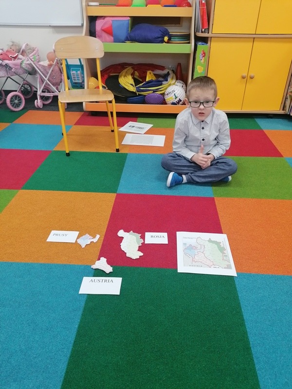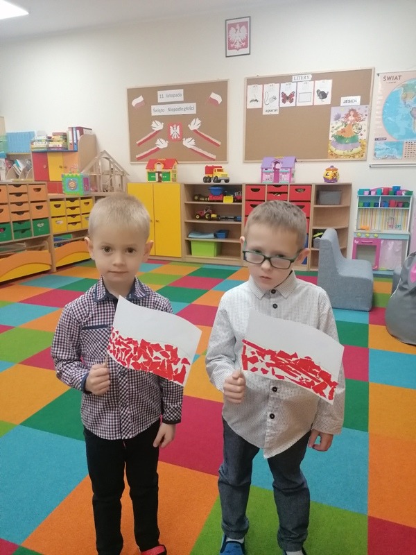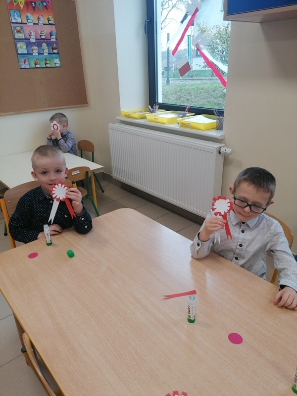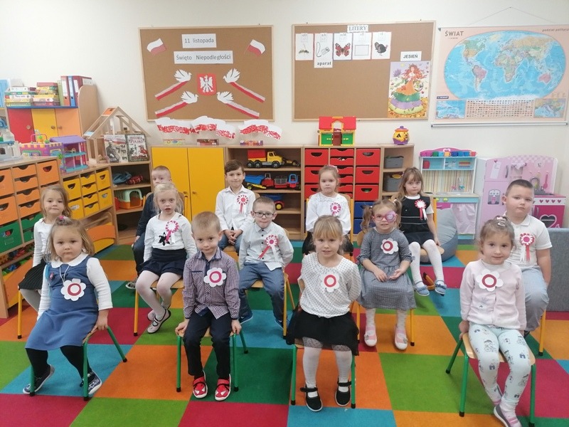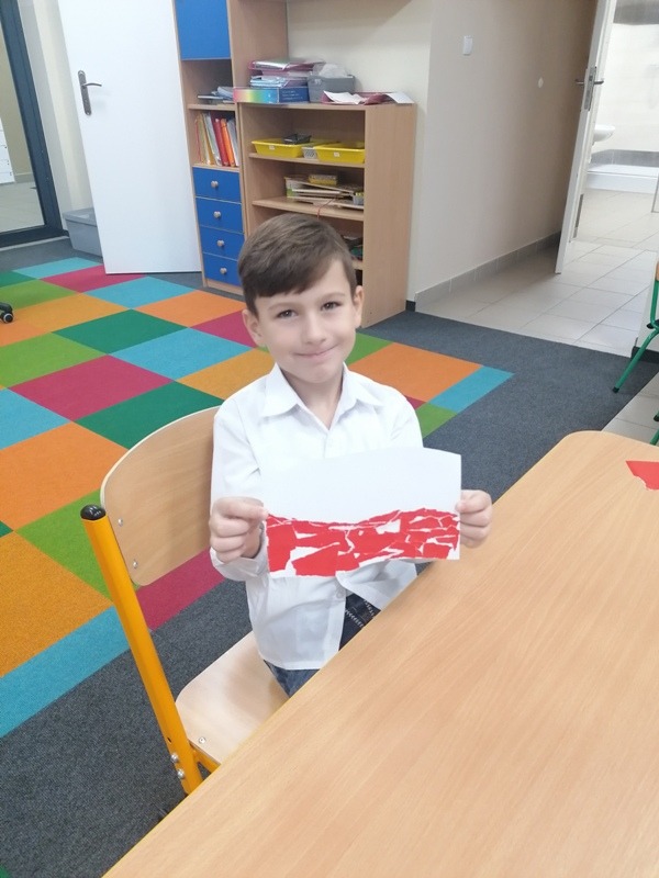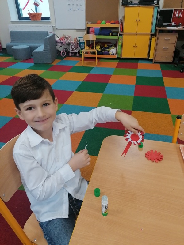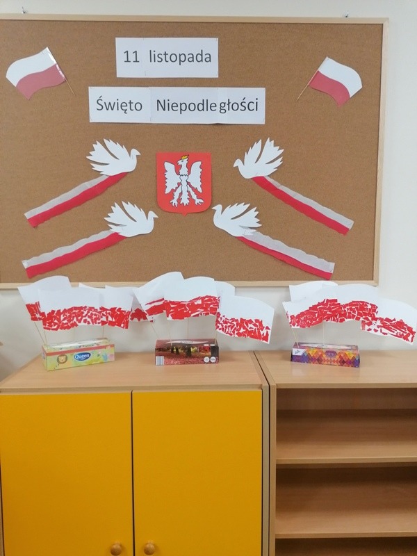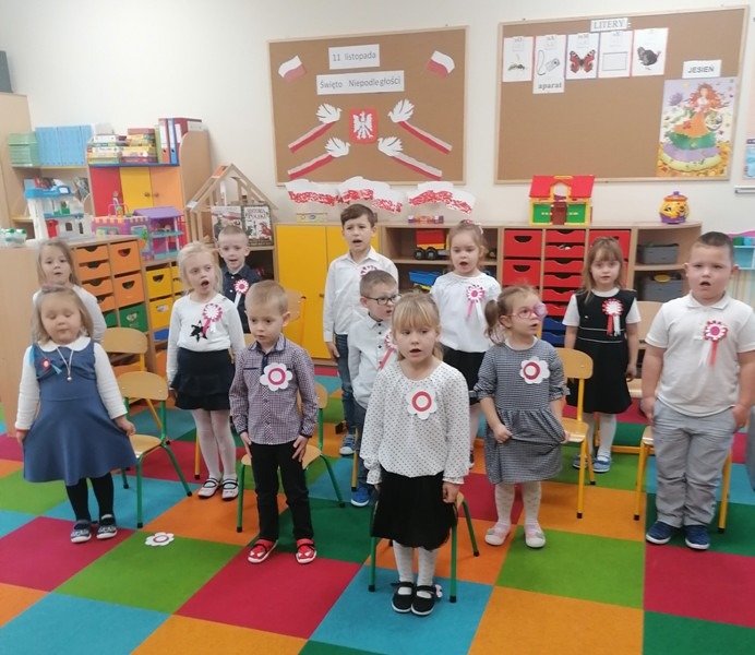 Z tej okazji udekorowaliśmy salę własnoręcznie wykonanymi flagami, zrobiliśmy piękne kotyliony oraz odśpiewaliśmy Mazurka Dąbrowskiego. Najbardziej spodobał się dzieciom przepiękny klip filmowy, w którym chłopiec wyśpiewał historię zaborów w piosence pt. „ 11 listopada”. Był to bardzo ciekawy i pełen wrażeń dzień oraz wspaniała lekcja historii.