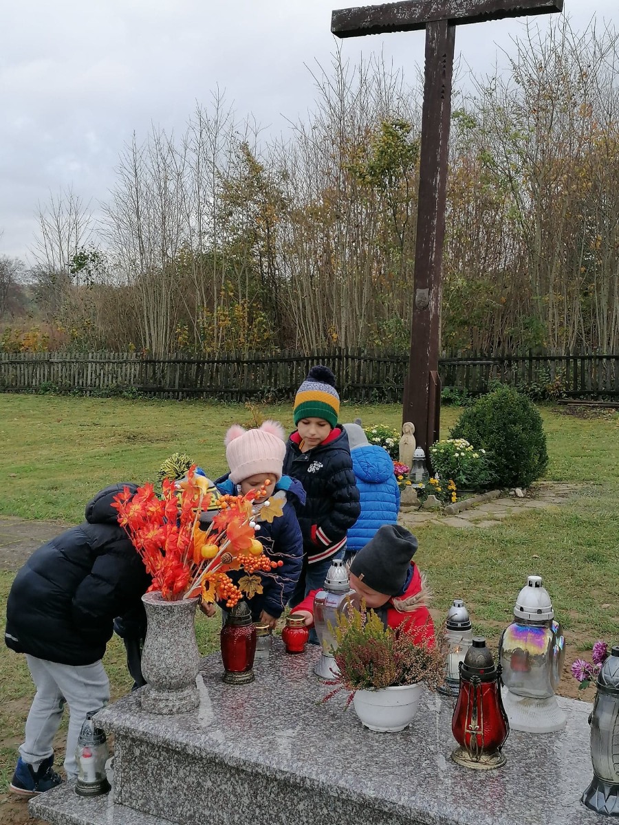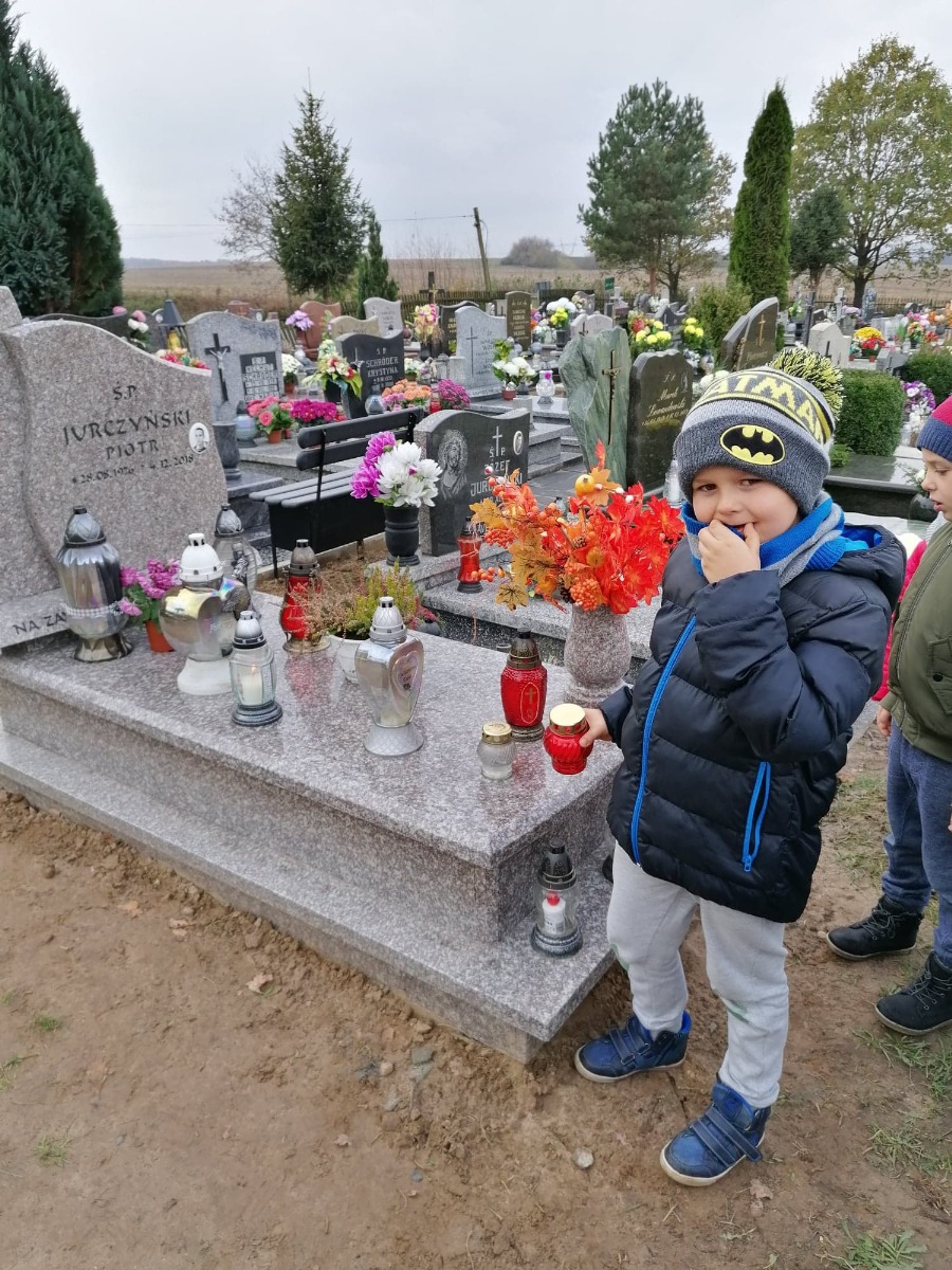 W nawiązaniu do Dnia Wszystkich Świętych, dzieci z Oddziału Przedszkolnego w Janowicach wybrały się na pobliski cmentarz. W ciszy i skupieniu uczciły pamięć o zmarłych oraz postawiły znicze na pomnikach.