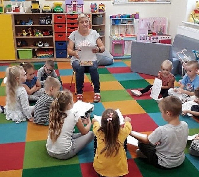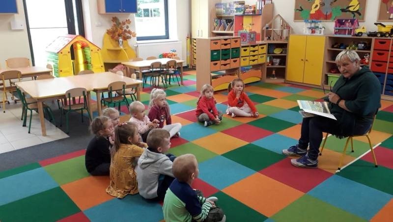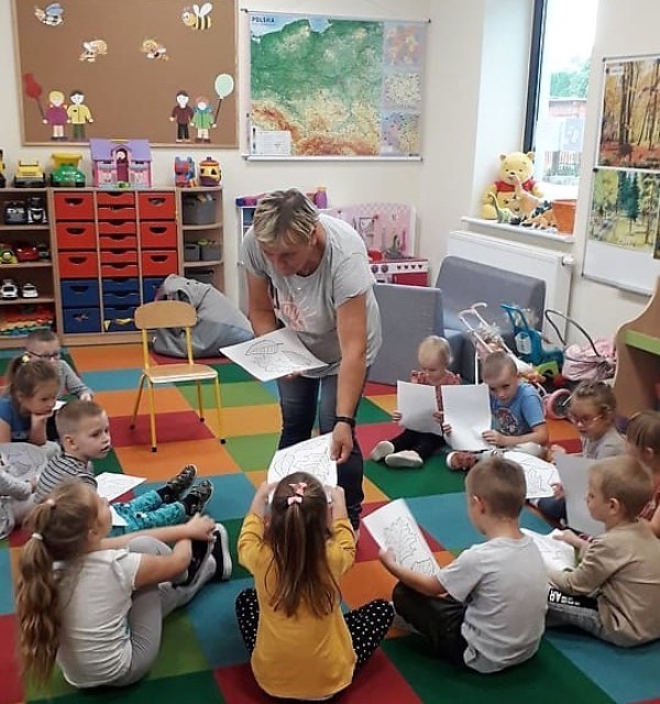 W tym roku szkolnym nasz oddział przedszkolny kilkakrotnie odwiedziła Pani Mirka – bibliotekarka Biblioteki w Janowicach. Podczas tych spotkań dzieci zgłębiały wiedzę na temat jesiennych zachowań ludzi i zwierząt oraz bezpiecznego poruszania się po drodze, w oparciu o różne, ciekawe przygody książkowych bohaterów. Na zakończenie, przedszkolaki otrzymały tematyczne kolorowanki, które chętnie i starannie kolorowały.