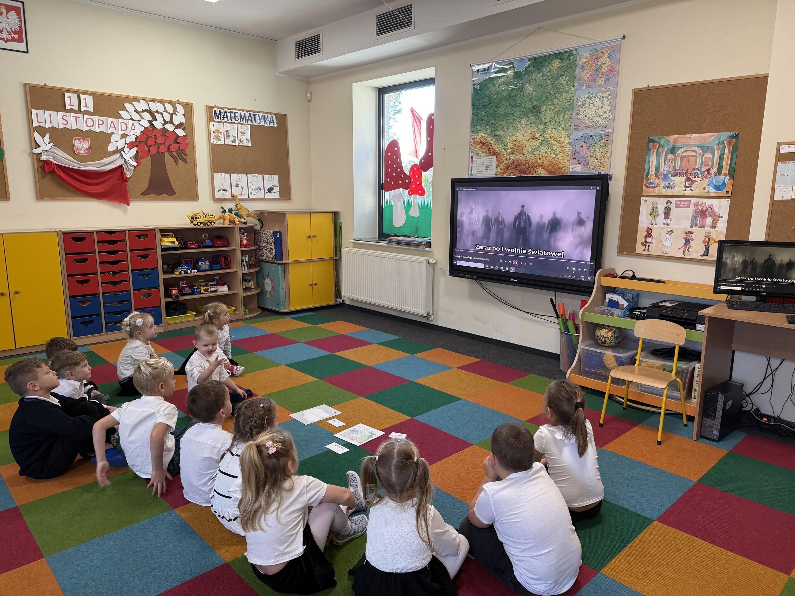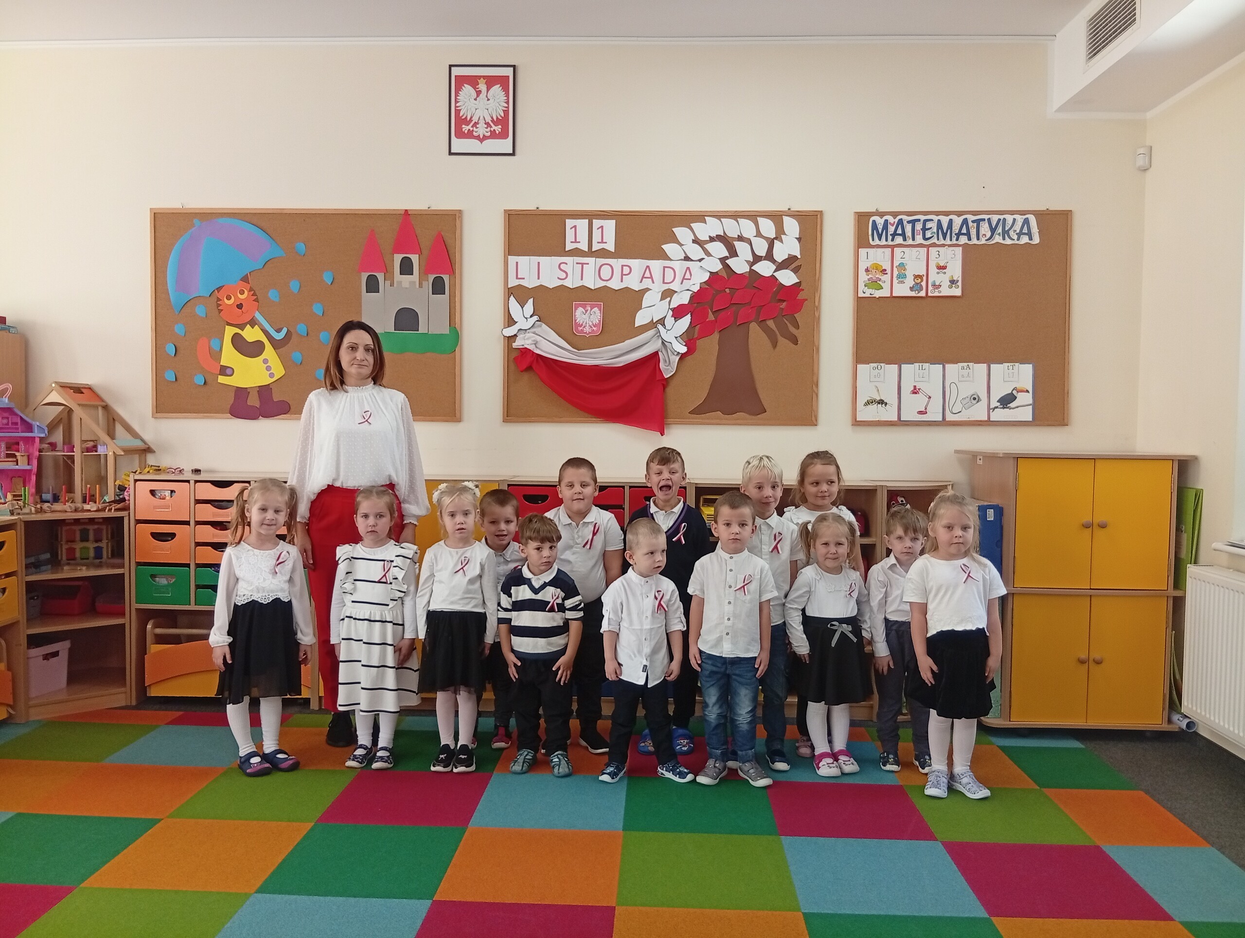 W dniu 7 listopada w naszym przedszkolu odbyła się uroczystość z okazji Święta Odzyskania Niepodległości. Wszystkie dzieci uroczyście świętowały ten wyjątkowy dla Nas – Polaków dzień. Poznały jego historię, oglądając wzruszającą opowieść słowno - muzyczną pt " Co to jest niepodległość?". Wykonały również patriotyczne kotyliony. Wspólnym akcentem było zaśpiewanie hymnu polskiego o godzinie 11.11 w ramach akcji „Niepodległa do Hymnu”. Przedszkolaki miały okazję do kształtowania miłości i przywiązania do kraju ojczystego, jego kultury i tradycji oraz zapoznały się z symbolami narodowymi.