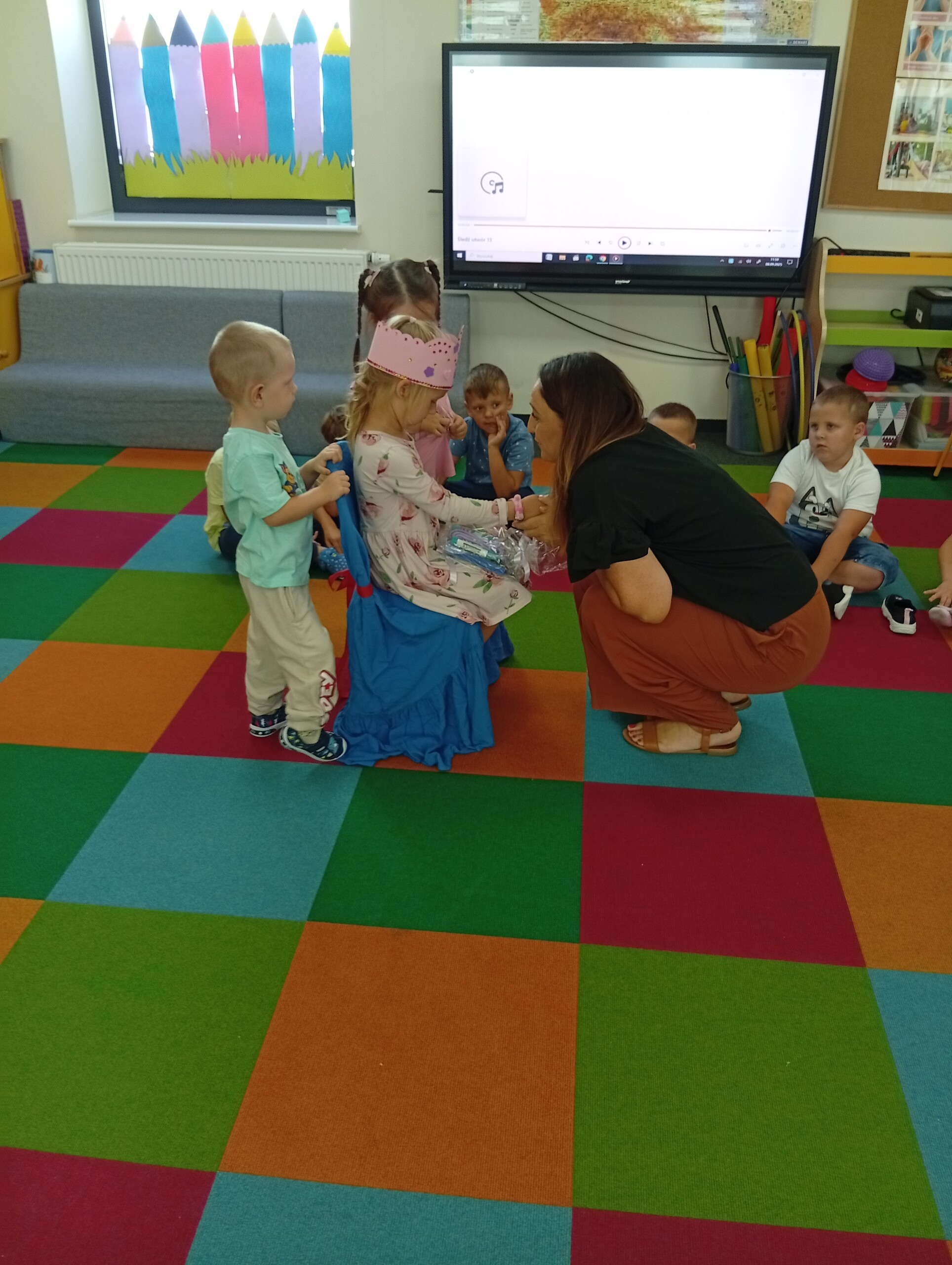 8 września, Marysia obchodziła w przedszkolu swoje czwarte urodzinki. Naszej koleżance zaśpiewaliśmy 100 lat oraz wręczyliśmy jej prezent, a ona poczęstowała nas słodkościami.