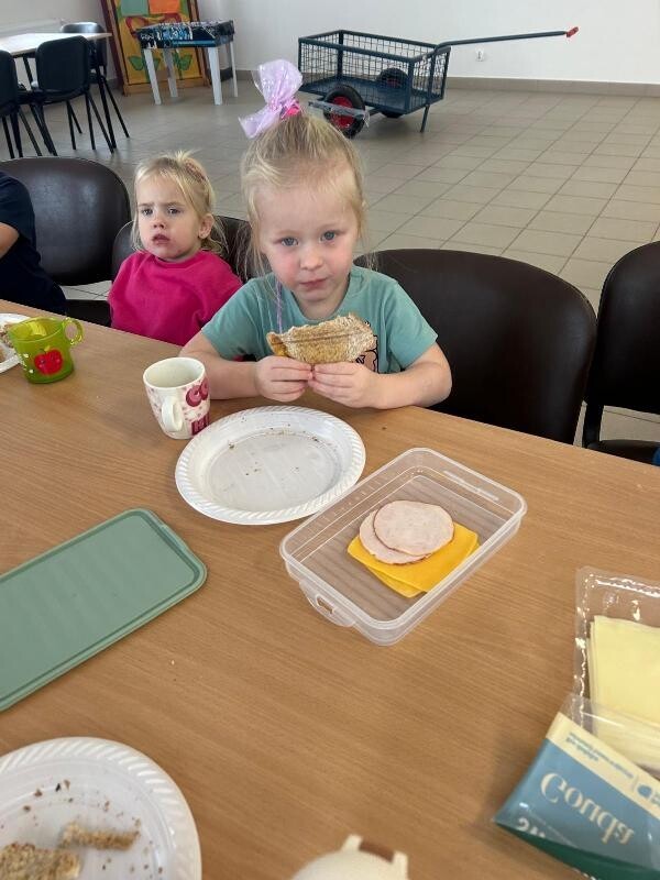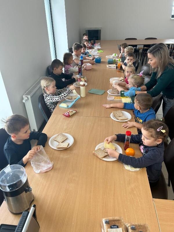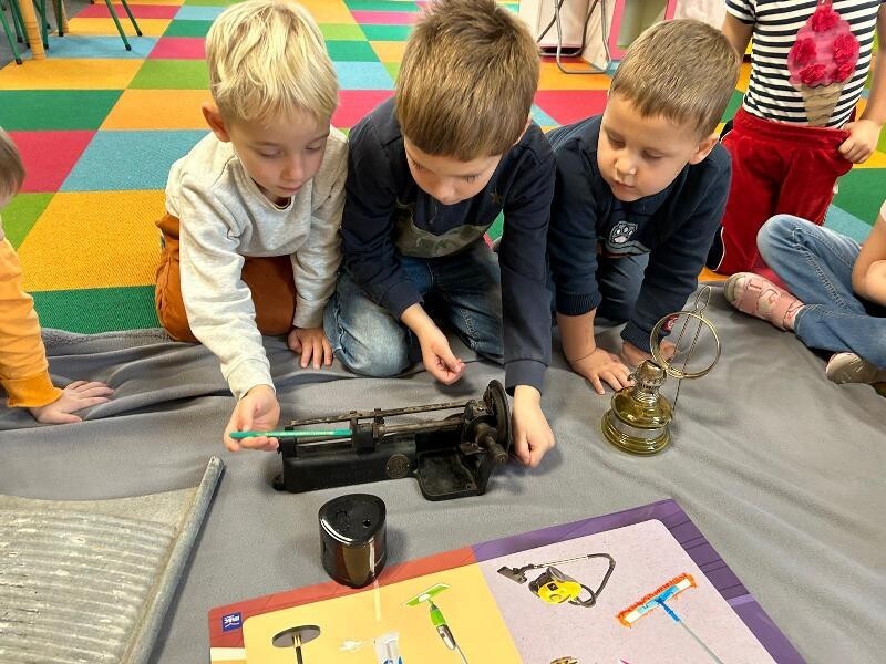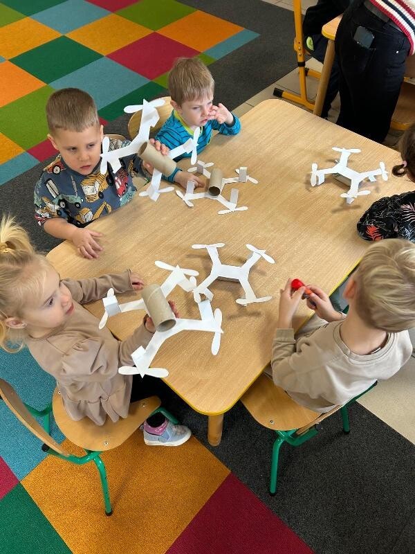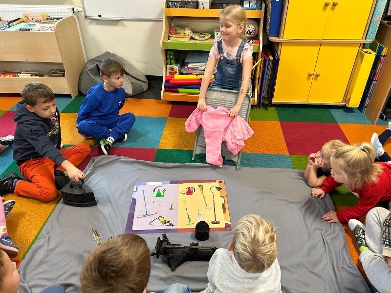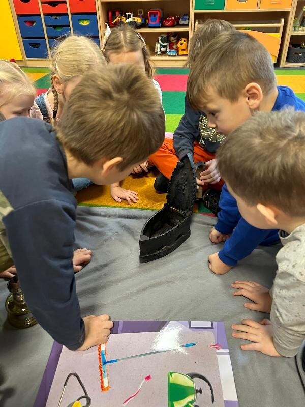 Podczas realizacji bloku tematycznego pod hasłem: Co ułatwia pracę w domu?, przedszkolaki poznawały domowe sprzęty elektryczne używane dawniej i dziś oraz dowiedziały się jak można z nich bezpiecznie korzystać. Na zajęciach plastycznych wykonały swoje radia oraz drony z papieru. Miały również okazję wykonać tosty i soki owocowe, wykorzystując do tego toster i sokownik. Dodatkową atrakcją było oglądanie urządzeń elektrycznych, których dawniej używano w domach.