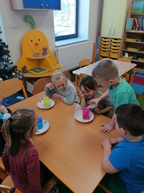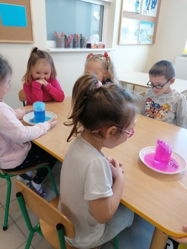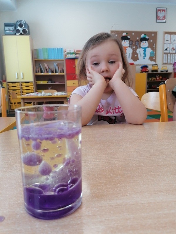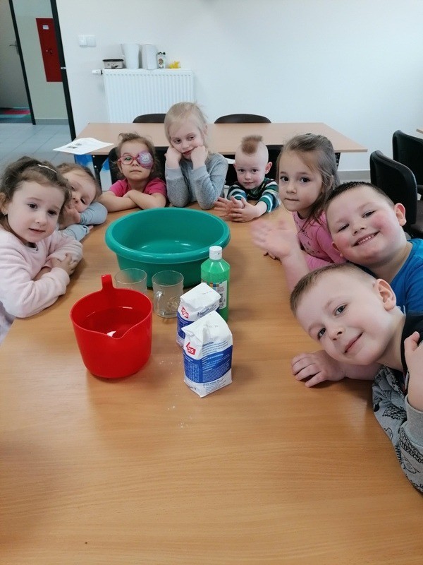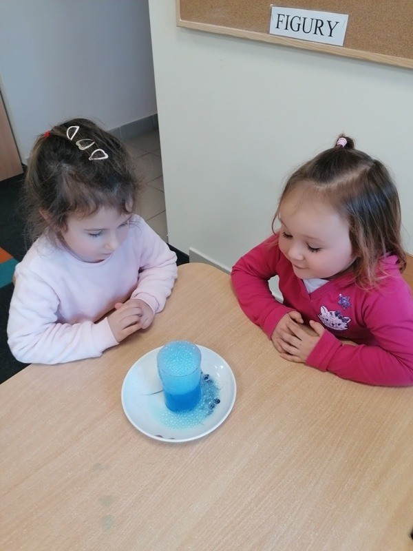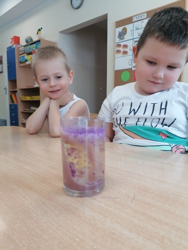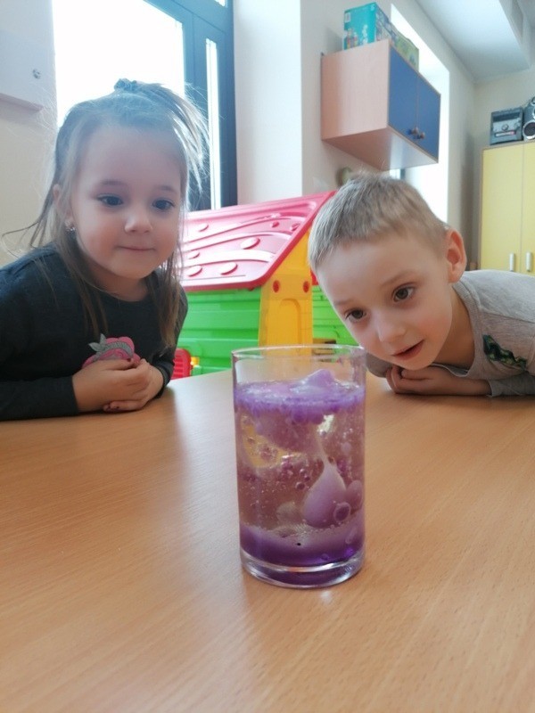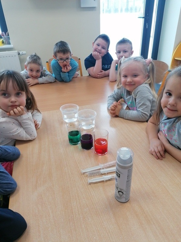 W ramach zajęć projektowych " Wesołe laboratoria" dzieci biorą udział w różnych, ciekawych eksperymentach. Wszystkie z nich sprawiają im wiele radości .
