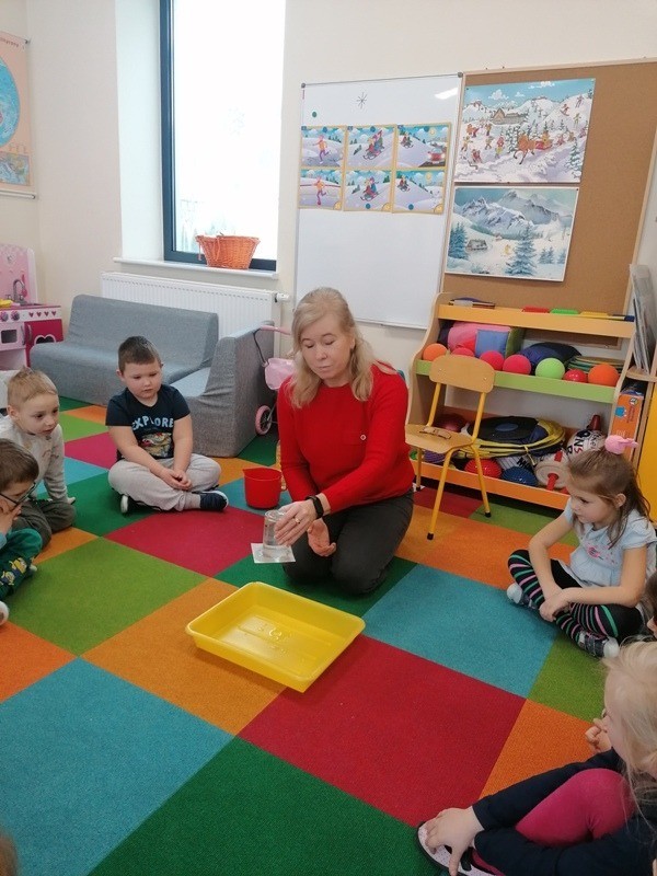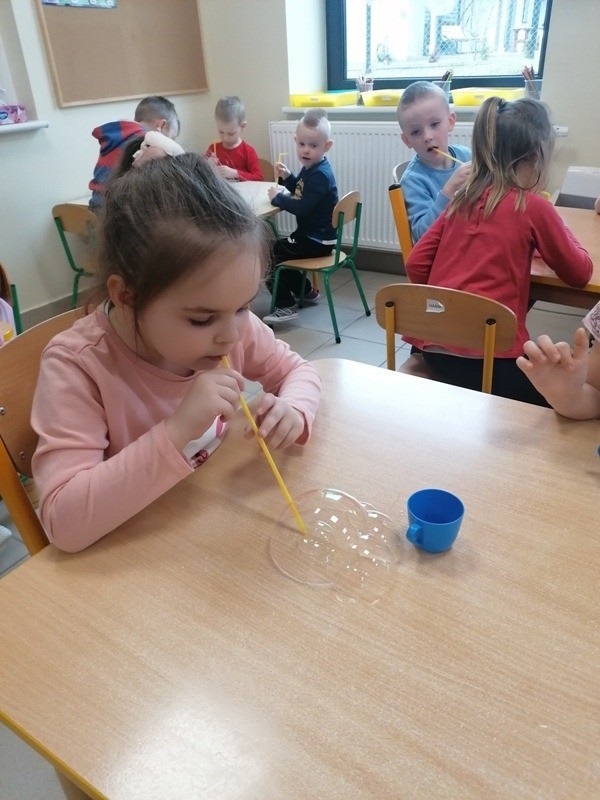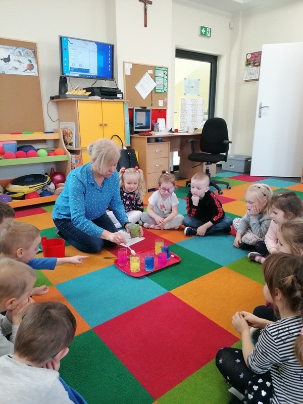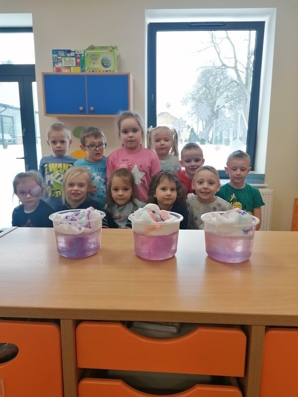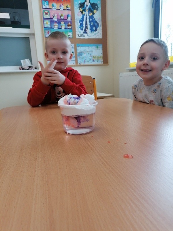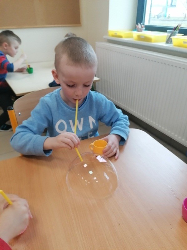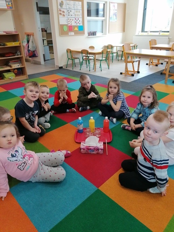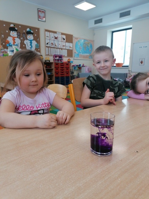 W ramach zajęć projektowych " Wesołe laboratoria" dzieci biorą udział w różnych, ciekawych eksperymentach. Wszystkie z nich sprawiają im wiele radości .
