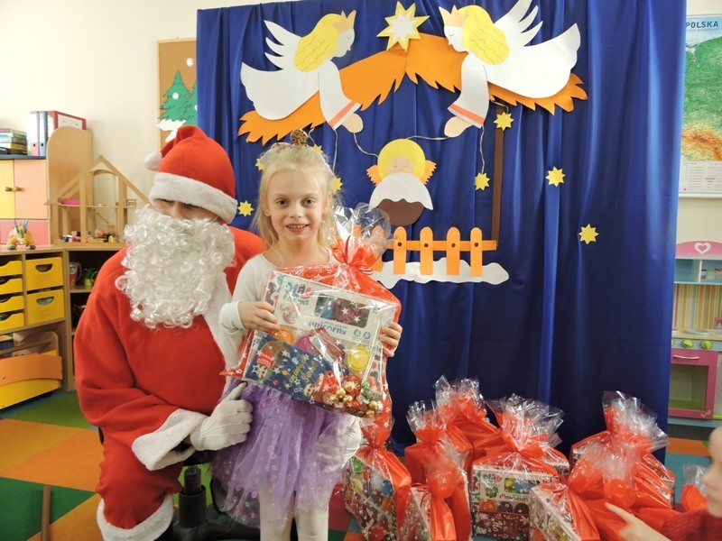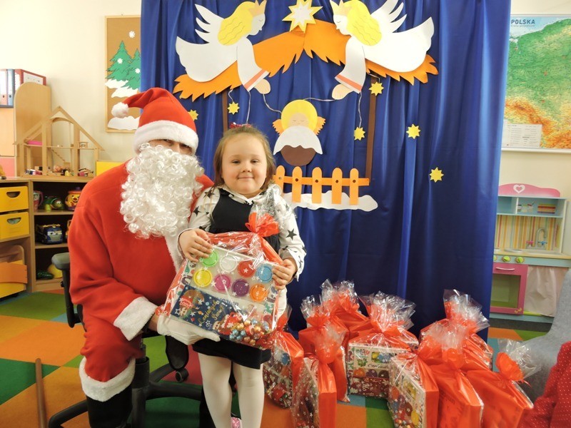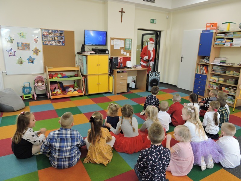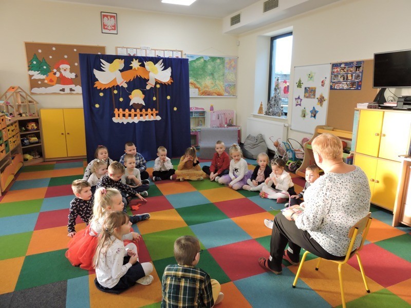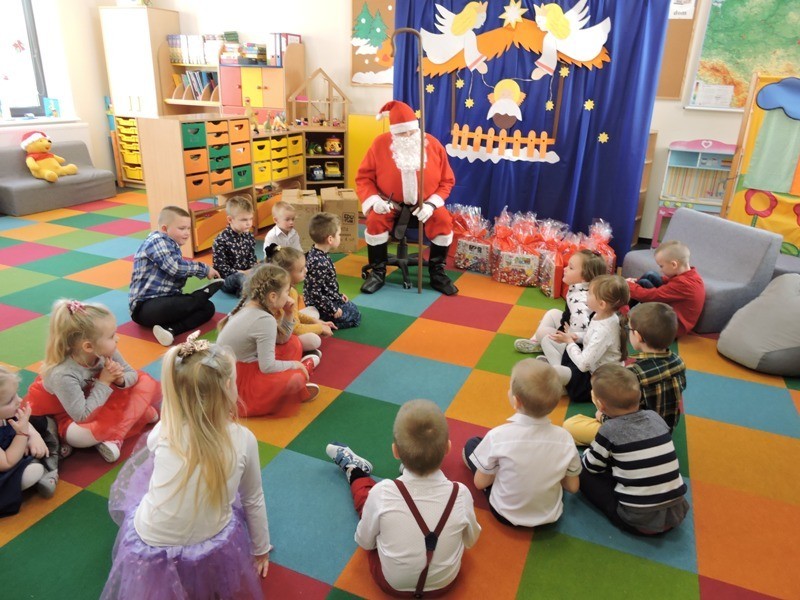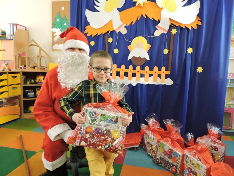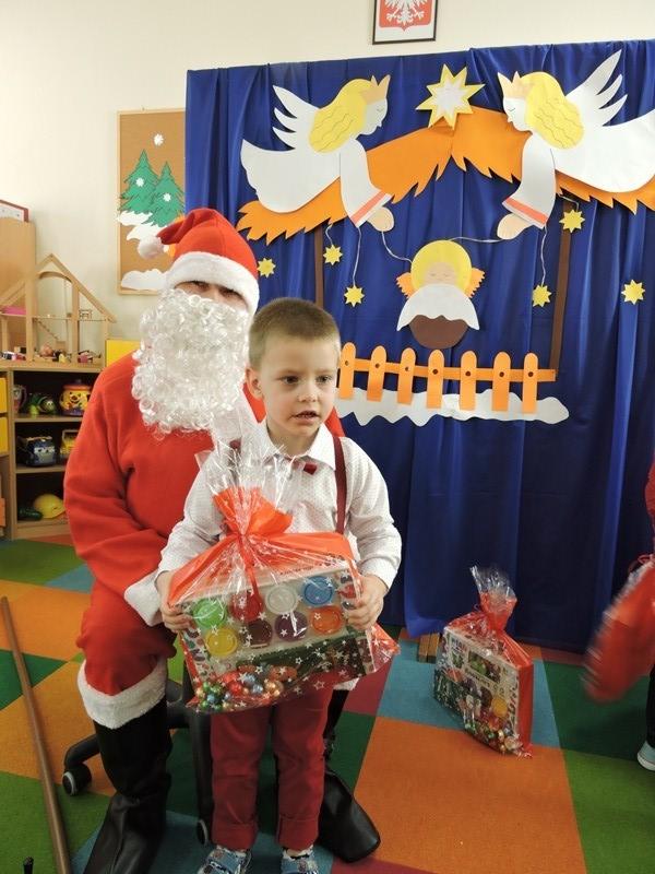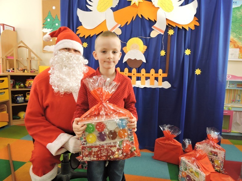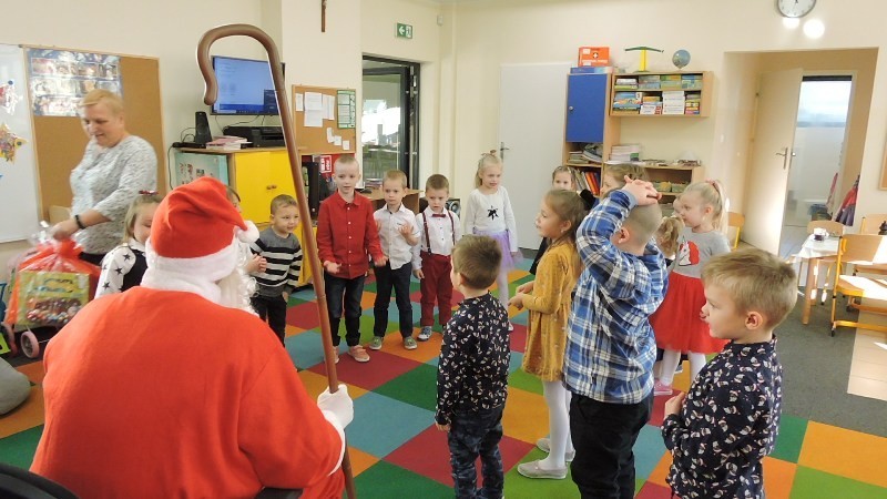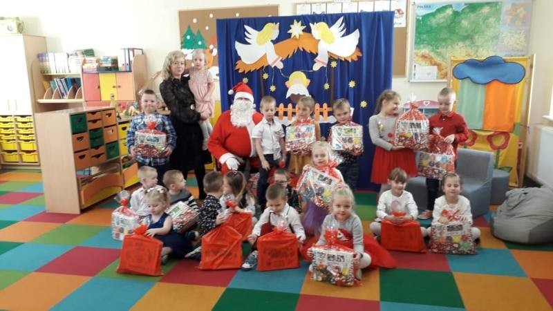 17 grudnia w naszym przedszkolu, przy współpracy z Panią Mirosławą Makles - bibliotekarką w Janowicach, odbyła się uroczysta Wigilia. Dzieci słuchały bożenarodzeniowych opowieści, rozmawiały o świątecznych tradycjach i zwyczajach, składały sobie życzenia i dzieliły się opłatkiem. Nie zabrakło też wspólnego kolędowania. Po życzeniach i śpiewie kolęd, przedszkolaki usiadły do odświętnie udekorownych stołów, na których nie brakowało tradycyjnych potraw związanych z Wigilią: pierogów, barszczu, pierniczków, pasztecików i pomarańczy. W tym roku przybył również do przedszkola Mikołaj, na którego dzieci z utęsknieniem czekały.