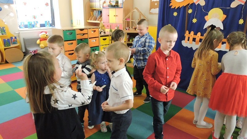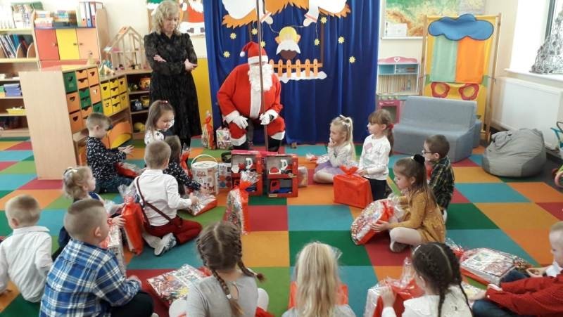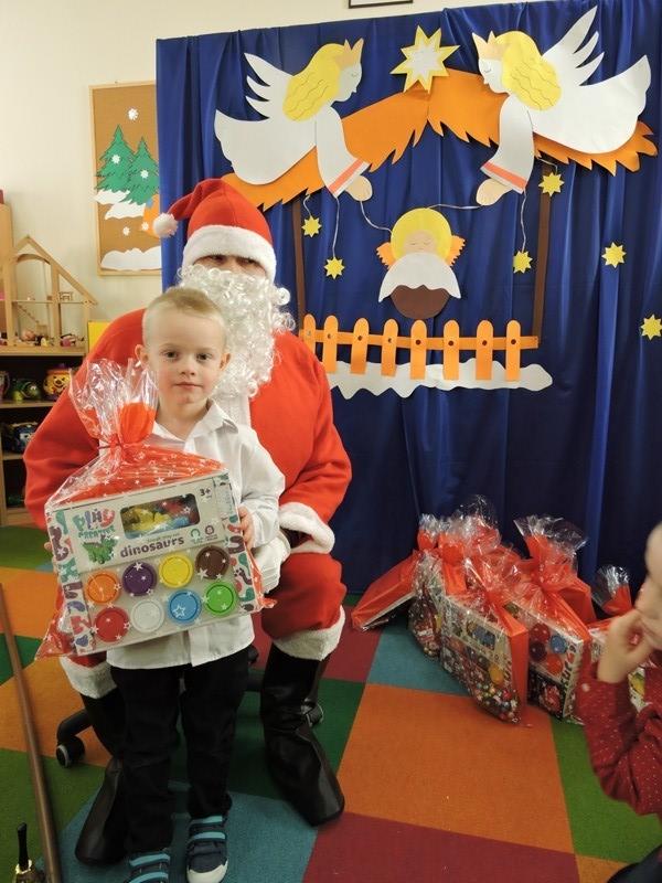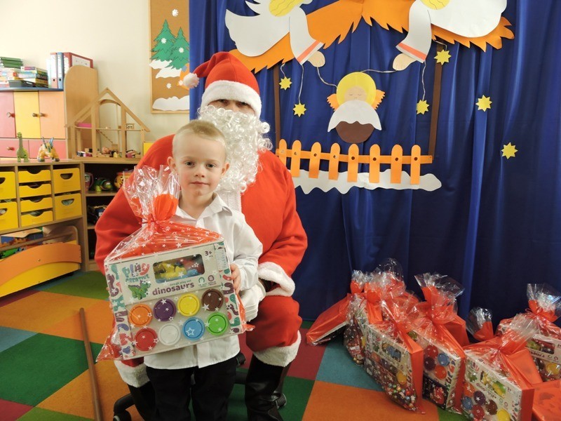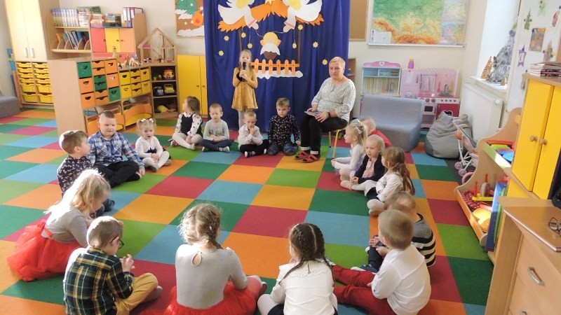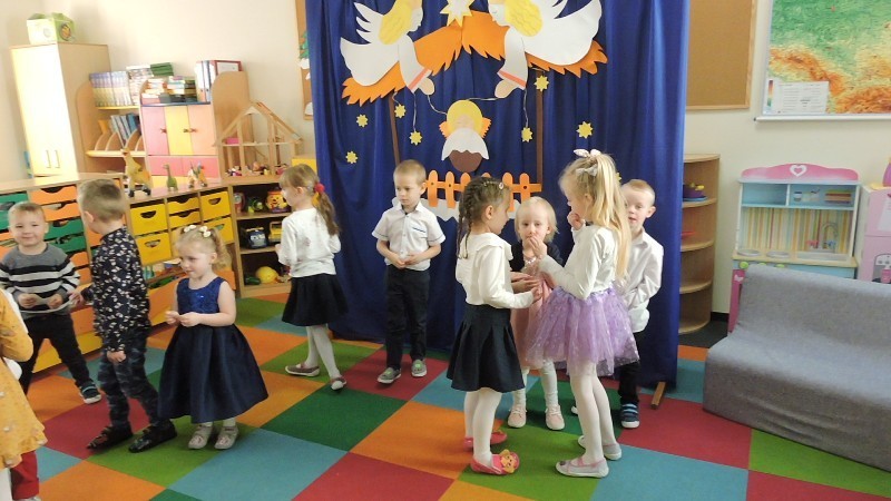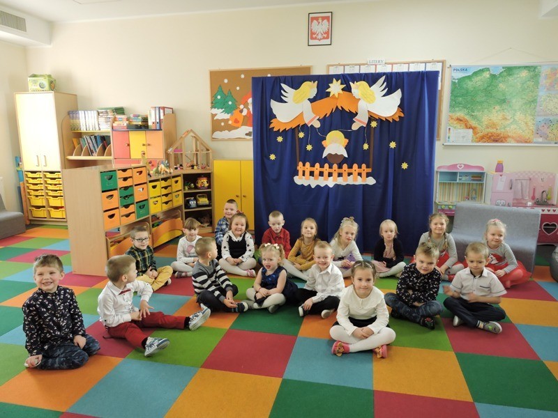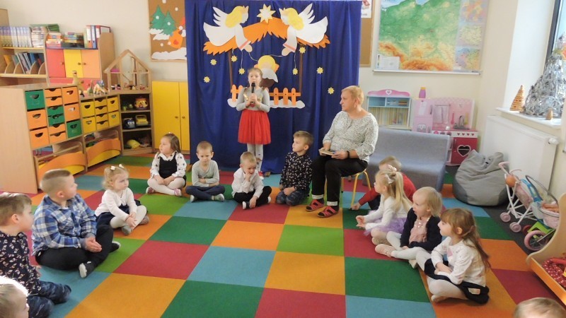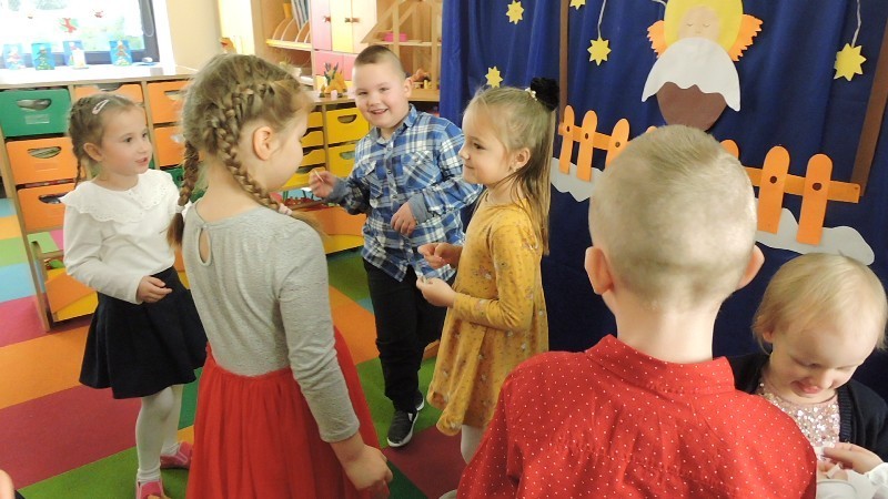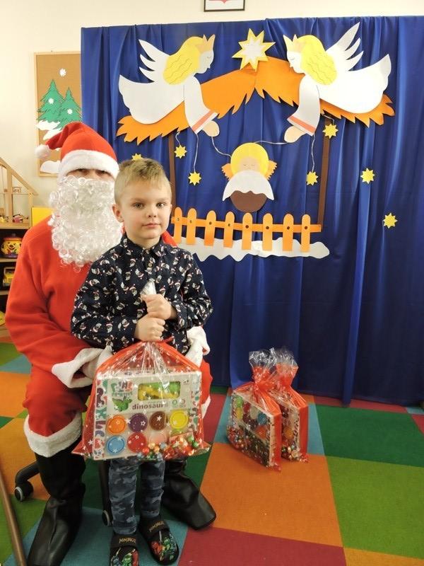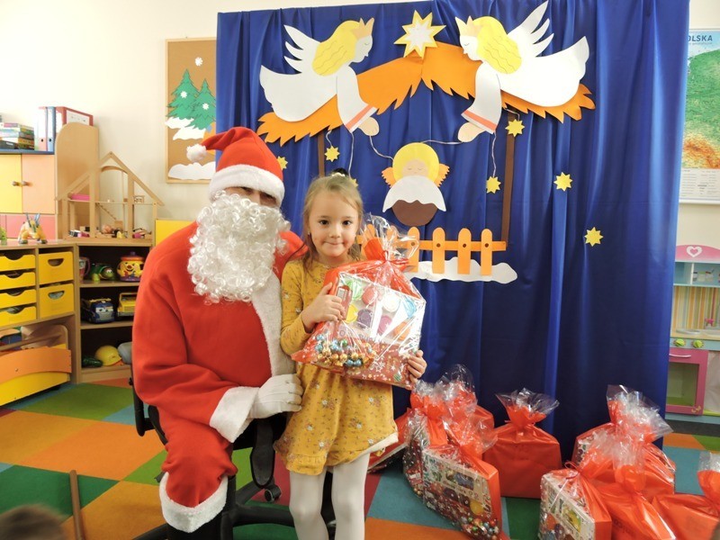 17 grudnia w naszym przedszkolu, przy współpracy z Panią Mirosławą Makles - bibliotekarką w Janowicach, odbyła się uroczysta Wigilia. Dzieci słuchały bożenarodzeniowych opowieści, rozmawiały o świątecznych tradycjach i zwyczajach, składały sobie życzenia i dzieliły się opłatkiem. Nie zabrakło też wspólnego kolędowania. Po życzeniach i śpiewie kolęd, przedszkolaki usiadły do odświętnie udekorownych stołów, na których nie brakowało tradycyjnych potraw związanych z Wigilią: pierogów, barszczu, pierniczków, pasztecików i pomarańczy. W tym roku przybył również do przedszkola Mikołaj, na którego dzieci z utęsknieniem czekały.