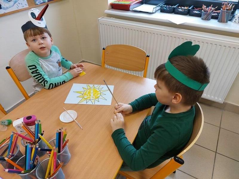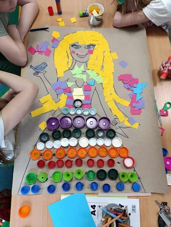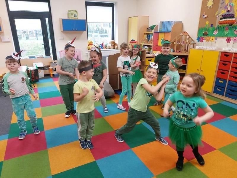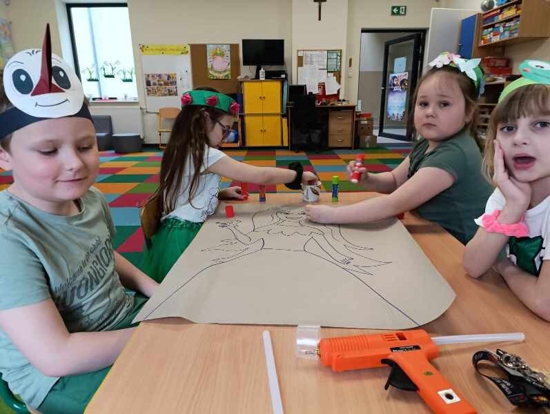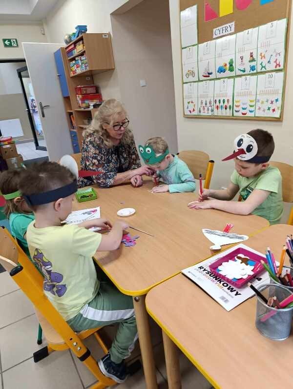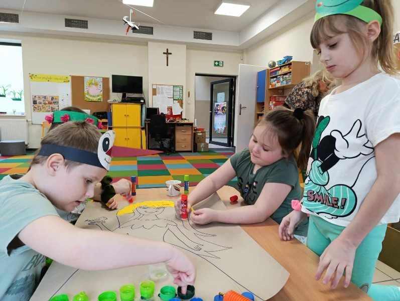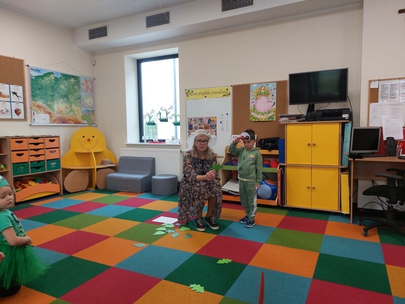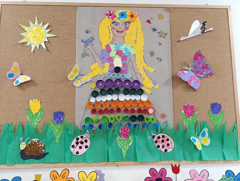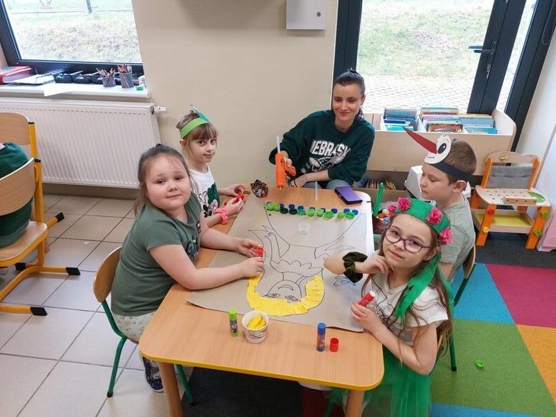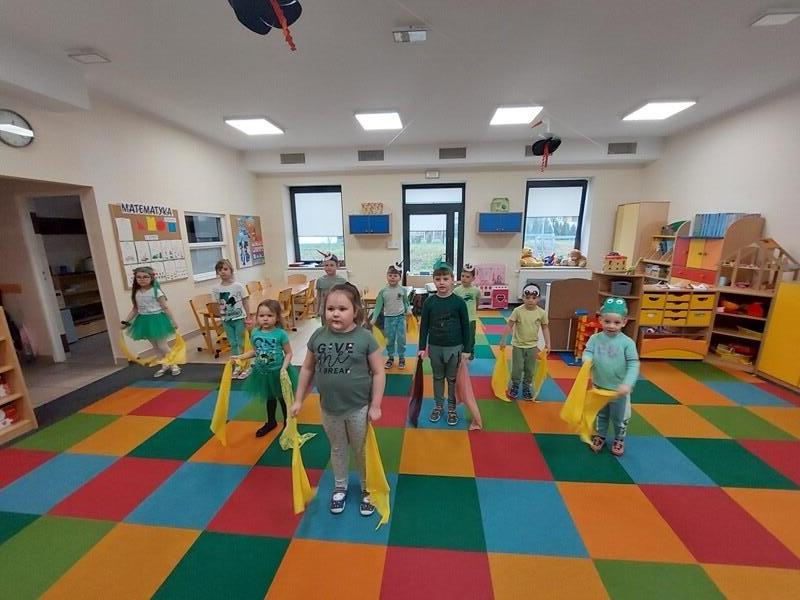 21 marca z radością powitaliśmy wiosnę. Przedszkolaki wzięły udział w wiosennym korowodzie z instrumentami, aby obwieścić mieszkańcom Janowic, że nadeszła Wiosna. Wykonaliśmy również wspólną dekorację dla Pani Wiosny, której sukienkę ozdobiliśmy z kolorowych kapsli. Dziękujemy Pani Sarze - bibliotekarce z Janowic za udział w obchodach Pierwszego Dnia Wiosny i pomoc w wykonaniu naszej wiosennej dekoracji .