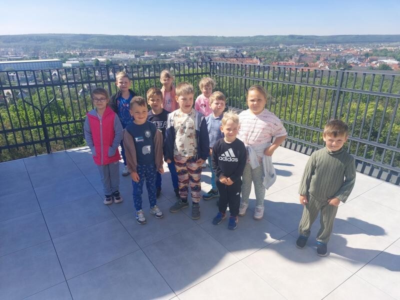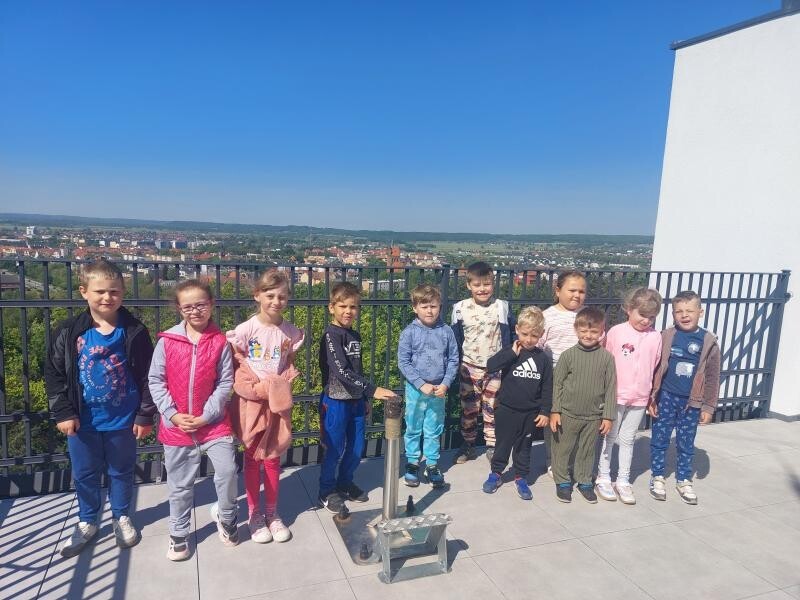 Podczas wycieczki do Parku Chrobrego w Lęborku, wybraliśmy się na Wieżę Ciśnień. Mogliśmy obejrzeć znajdujące się tam stare eksponaty oraz z góry zobaczyć panoramę Lęborka. Piękna pogoga umożliwiła nam również zabawy na placu zabaw.