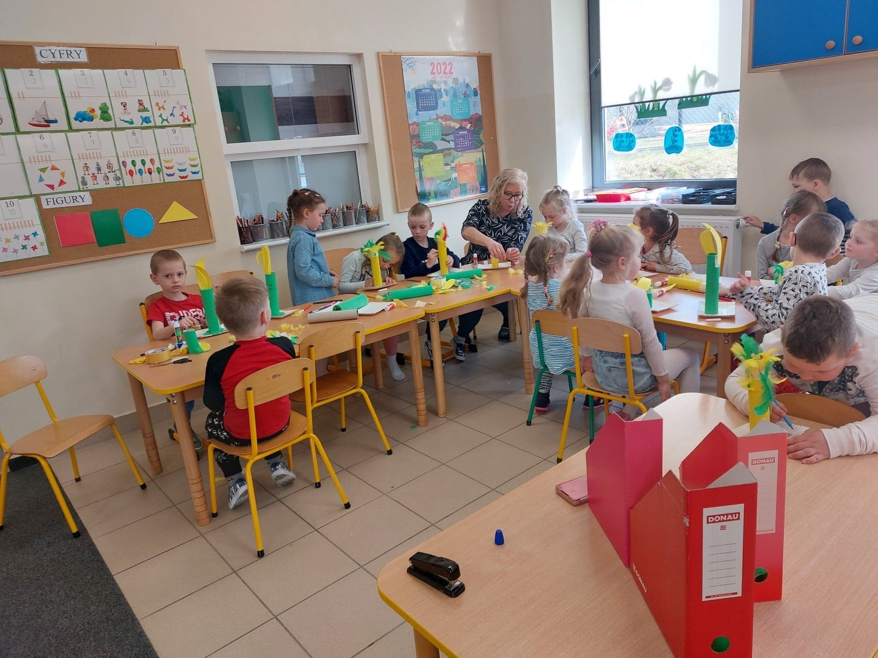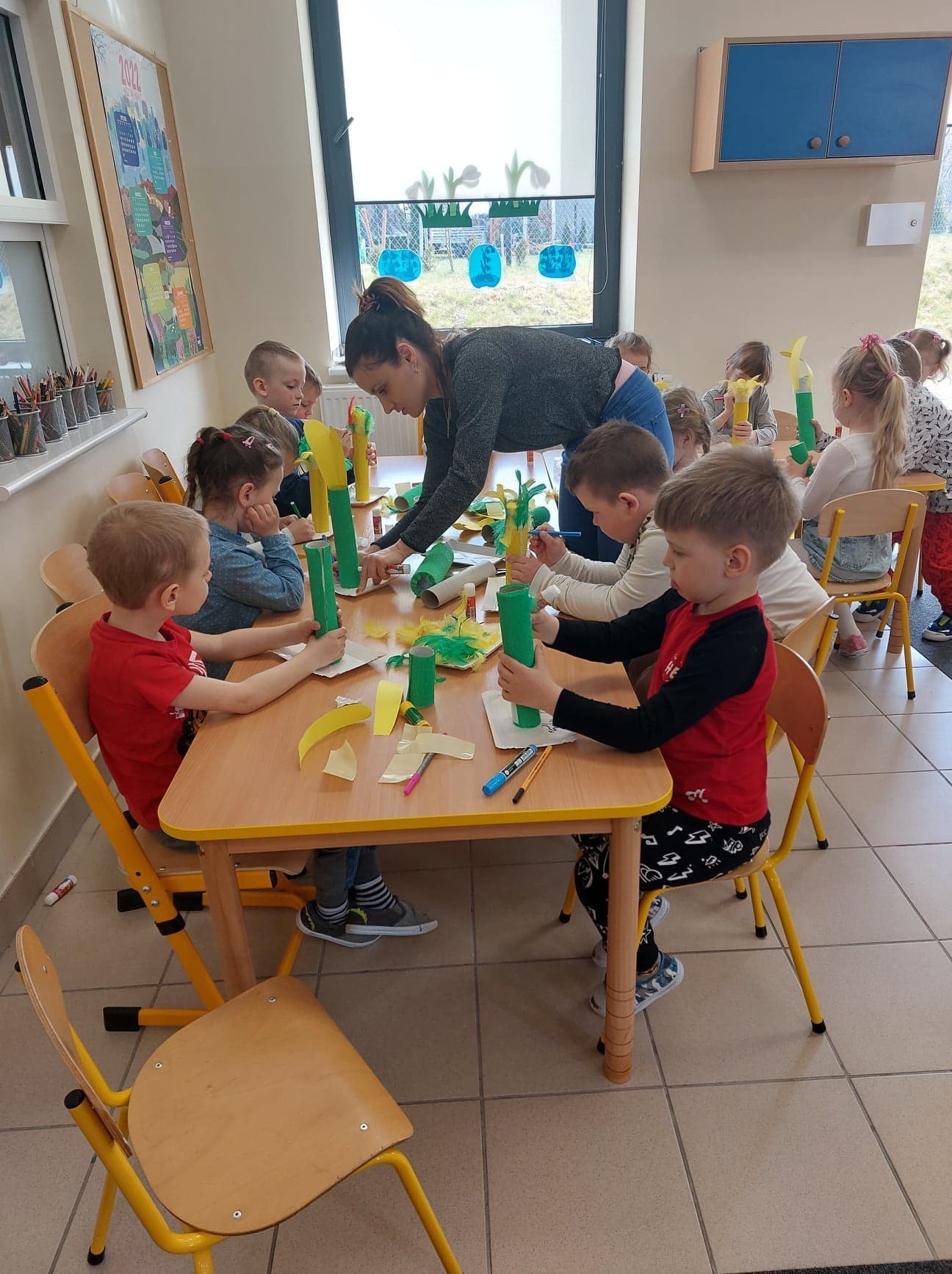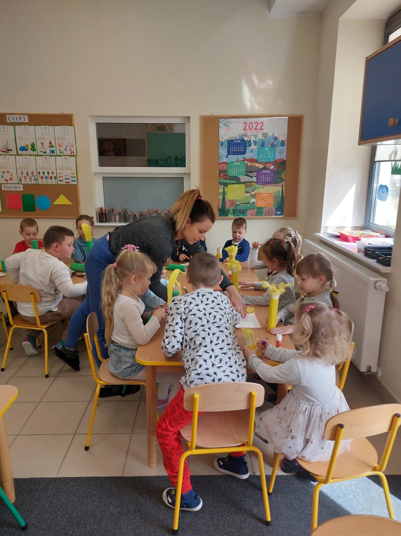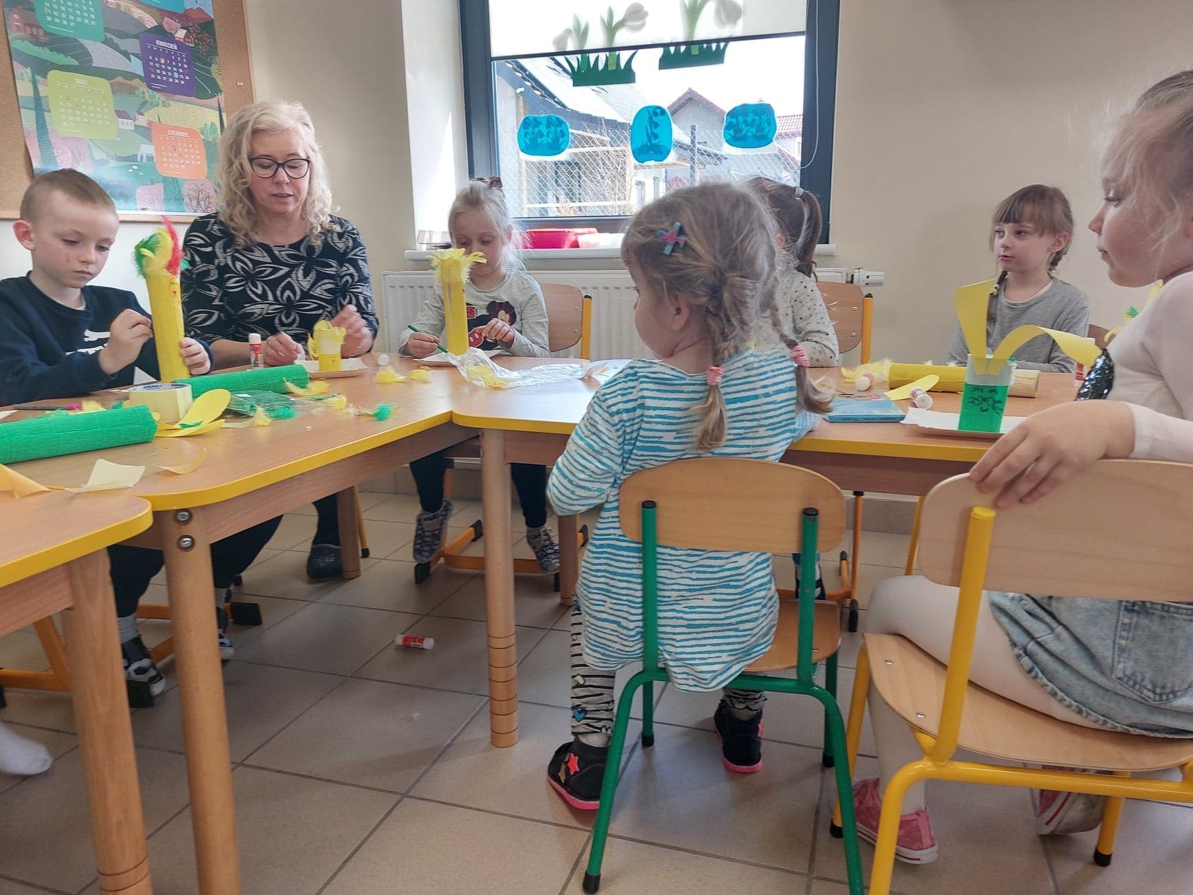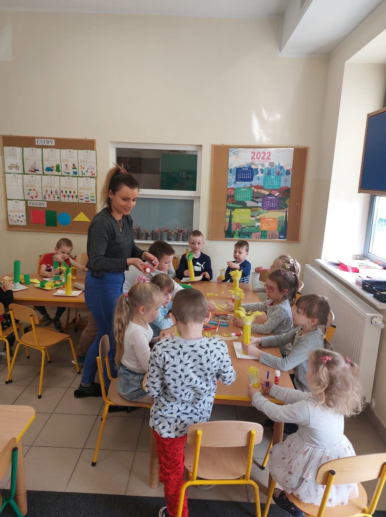 13 kwietnia odwiedziła nas pani Sara, bibliotekarka Biblioteki Publicznej w Janowicach. Przygotowała dla dzieci ciekawą pracę plastyczną. Z wykorzystaniem kolorowych piórek i papierowych rolek, wykonaliśmy śmieszne zajączki i kurczaki. Każdy swoją pracę zabrał do domu, aby zdobiła wielkanocny stół.