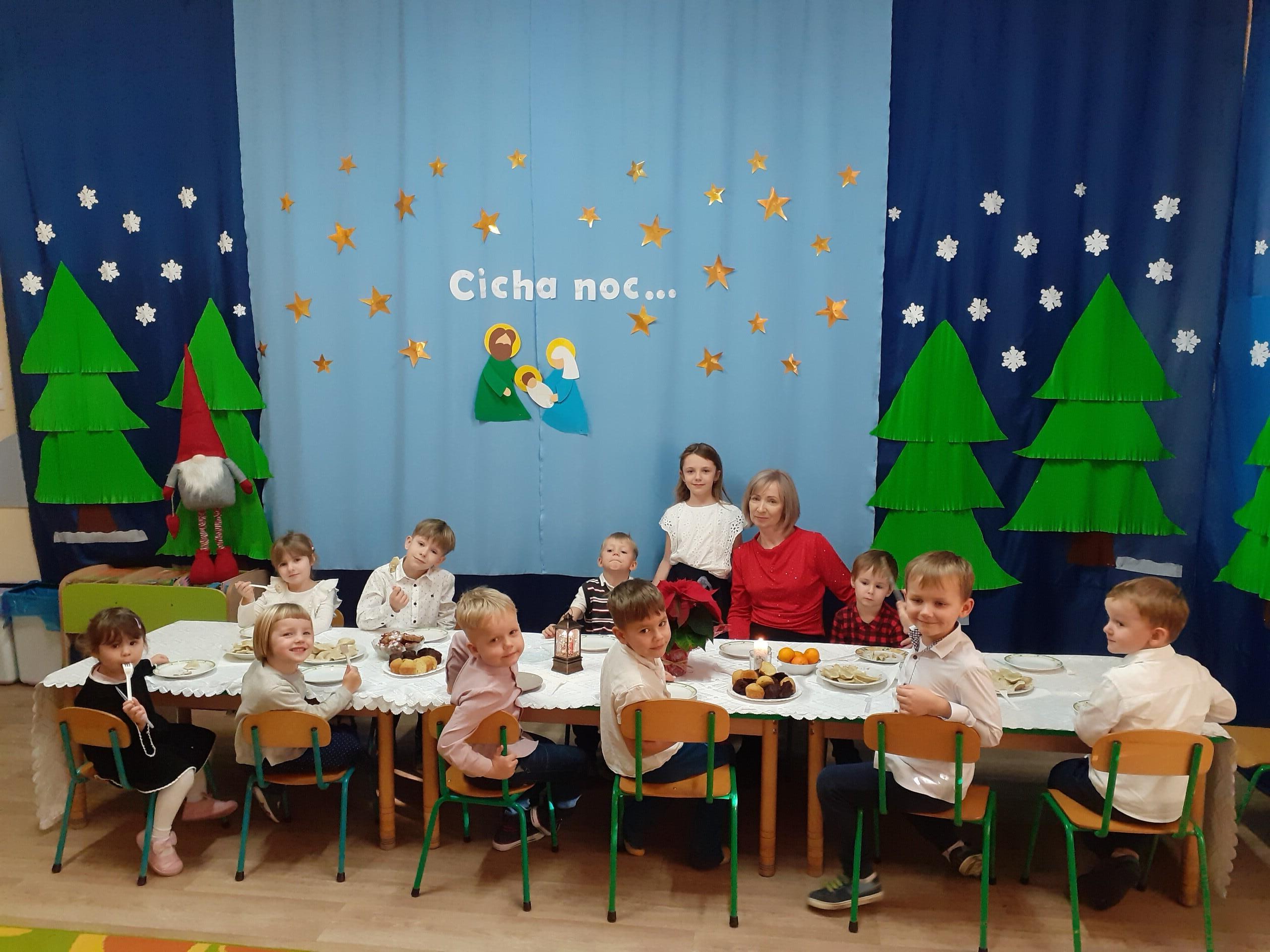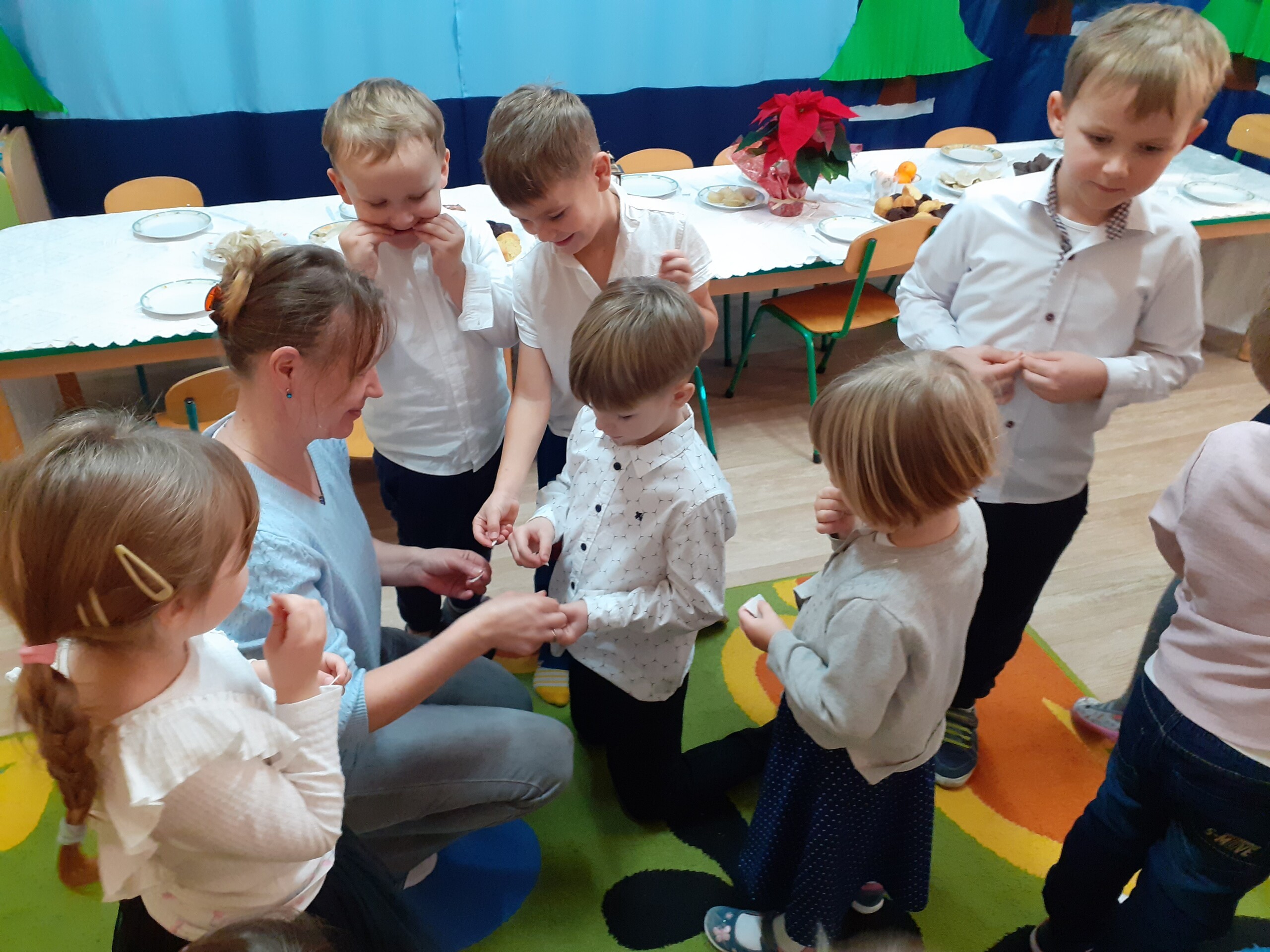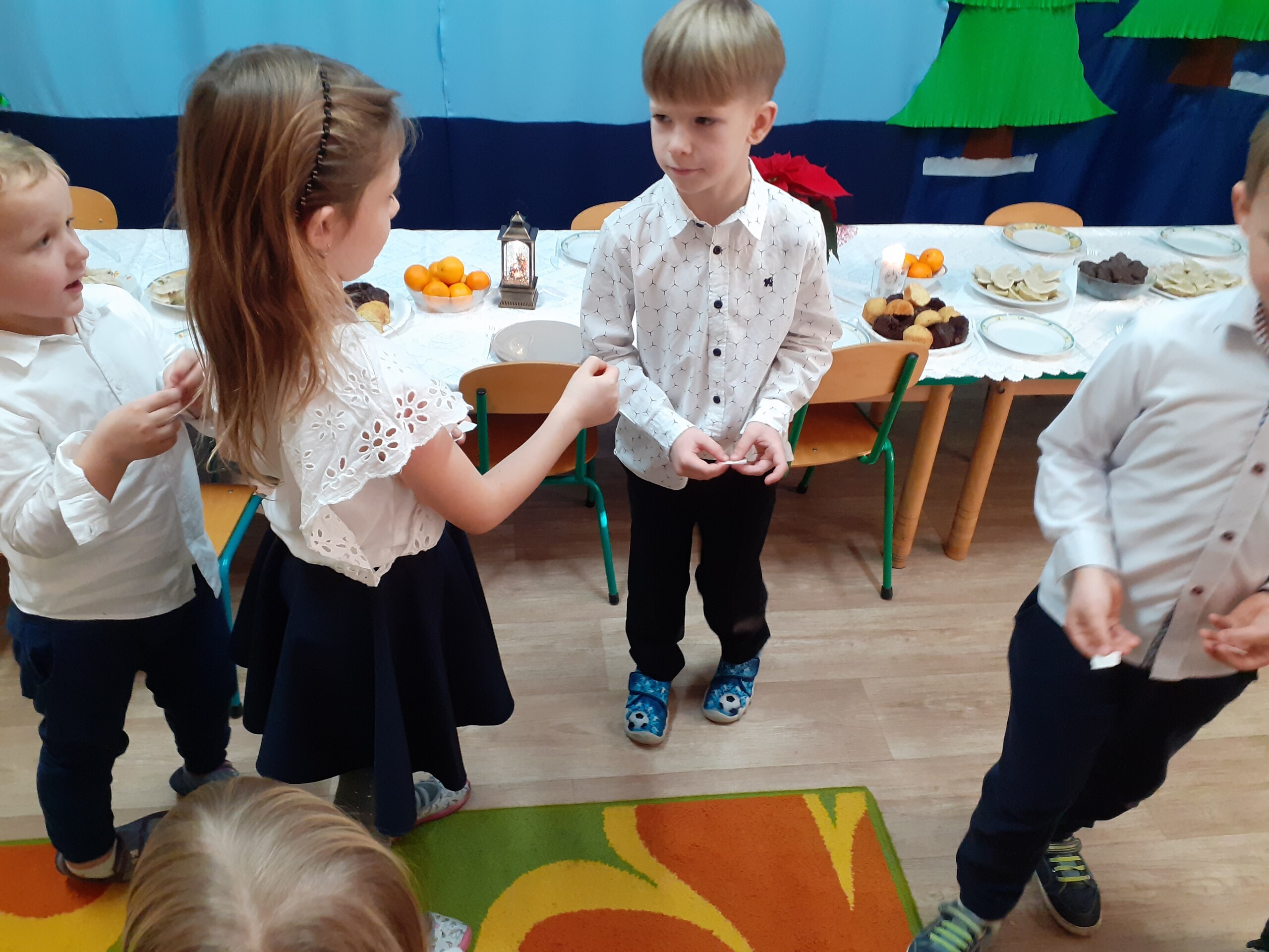 Gdy opłatek już leży na stole, pierwsza gwiazdka zabłyśnie na niebie, to znaczy, że już święta, że już blisko kolęda... To słowa piosenki, którą dzieci w mig opanowały i pięknie zaśpiewały. Była modlitwa, były życzenia, były kolędy i małe co nieco do brzuszka, a najbardziej smakowały pierogi.