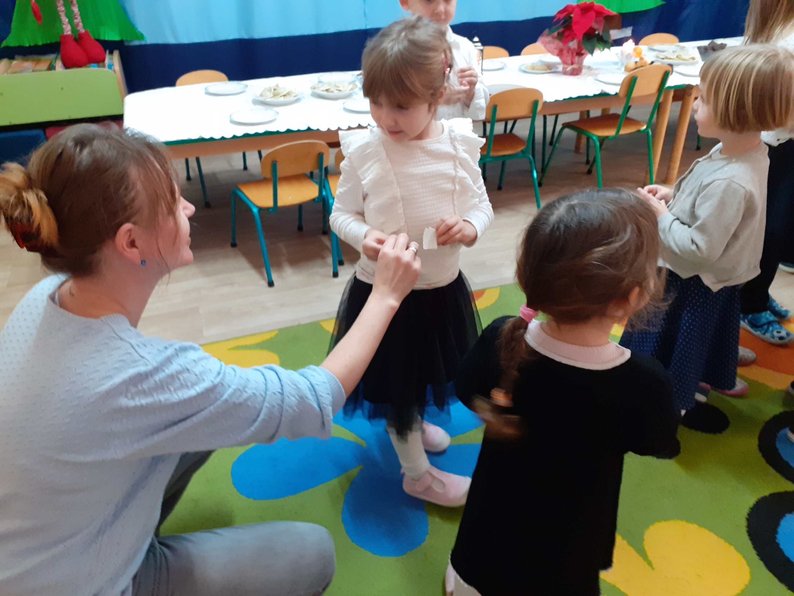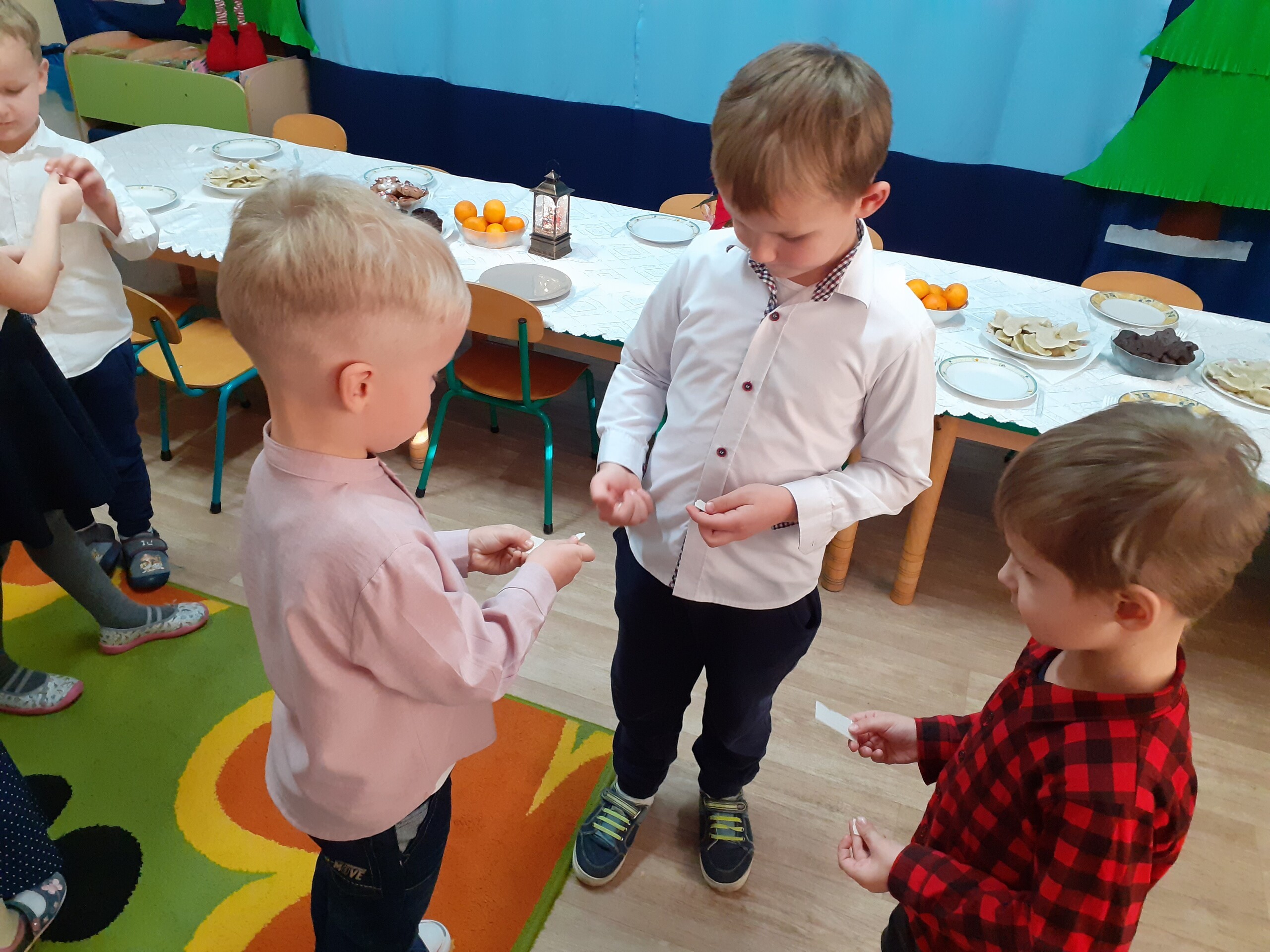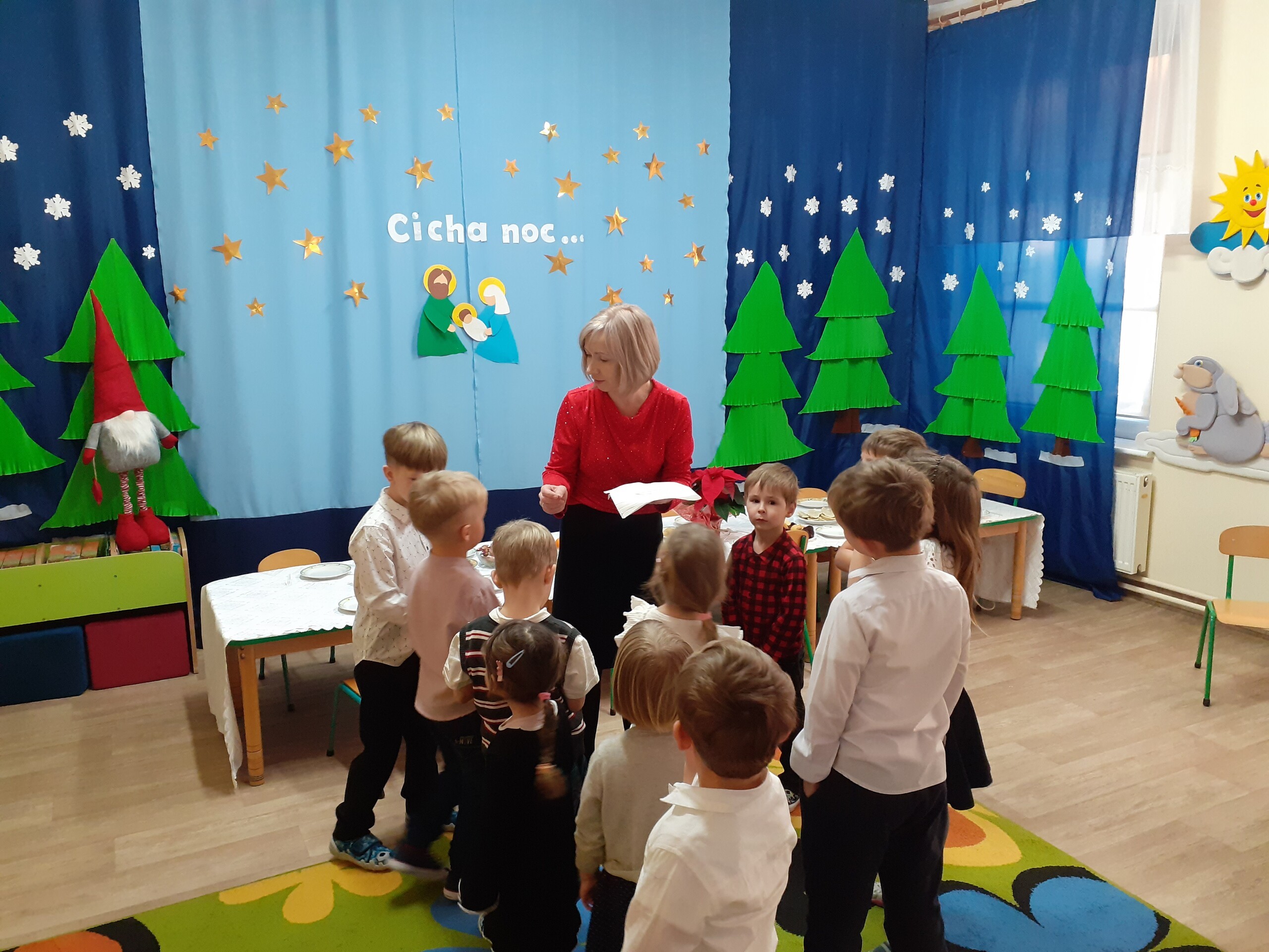 Gdy opłatek już leży na stole, pierwsza gwiazdka zabłyśnie na niebie, to znaczy, że już święta, że już blisko kolęda... To słowa piosenki, którą dzieci w mig opanowały i pięknie zaśpiewały. Była modlitwa, były życzenia, były kolędy i małe co nieco do brzuszka, a najbardziej smakowały pierogi.