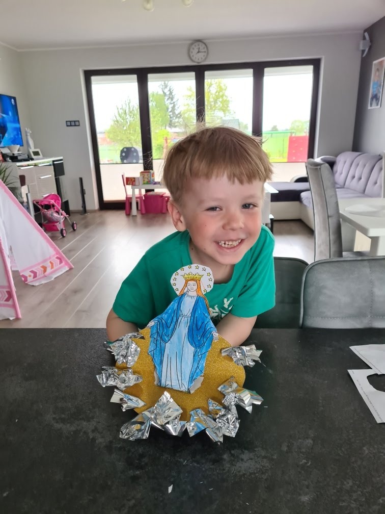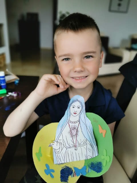 Dziękuję za Waszą pracę upamiętnioną na zdjęciach. Przyjemnie popatrzeć na roślinki, które sami posadziliście, na przeróżne prace plastyczne - tu szczególnie piękne są laurki dla Maryi (cieszę się, że skorzystaliście z mojej propozycji). Bardzo dziękuję za ten Wasz uśmiech, gdy na Was patrzę - też się uśmiecham.
