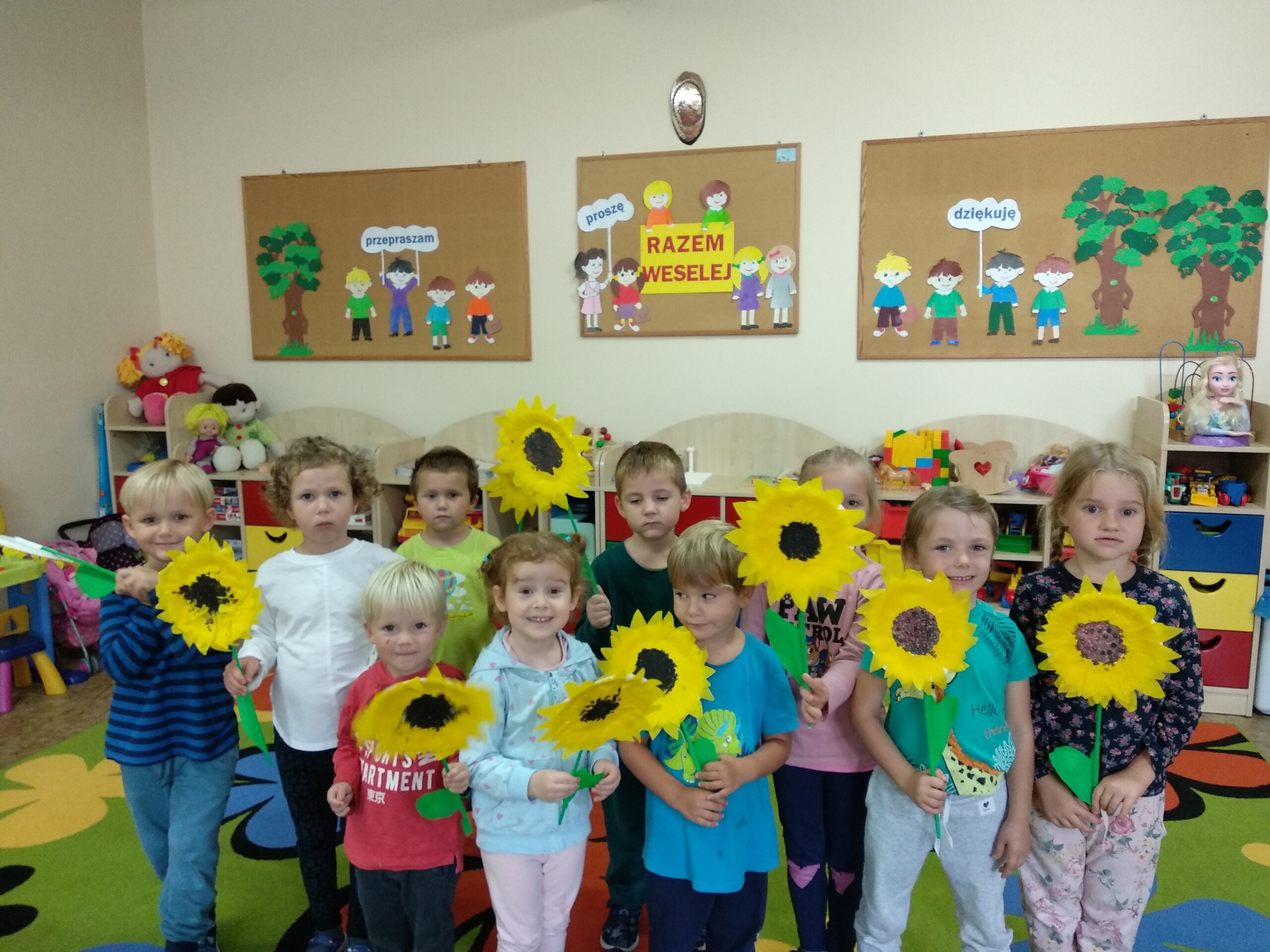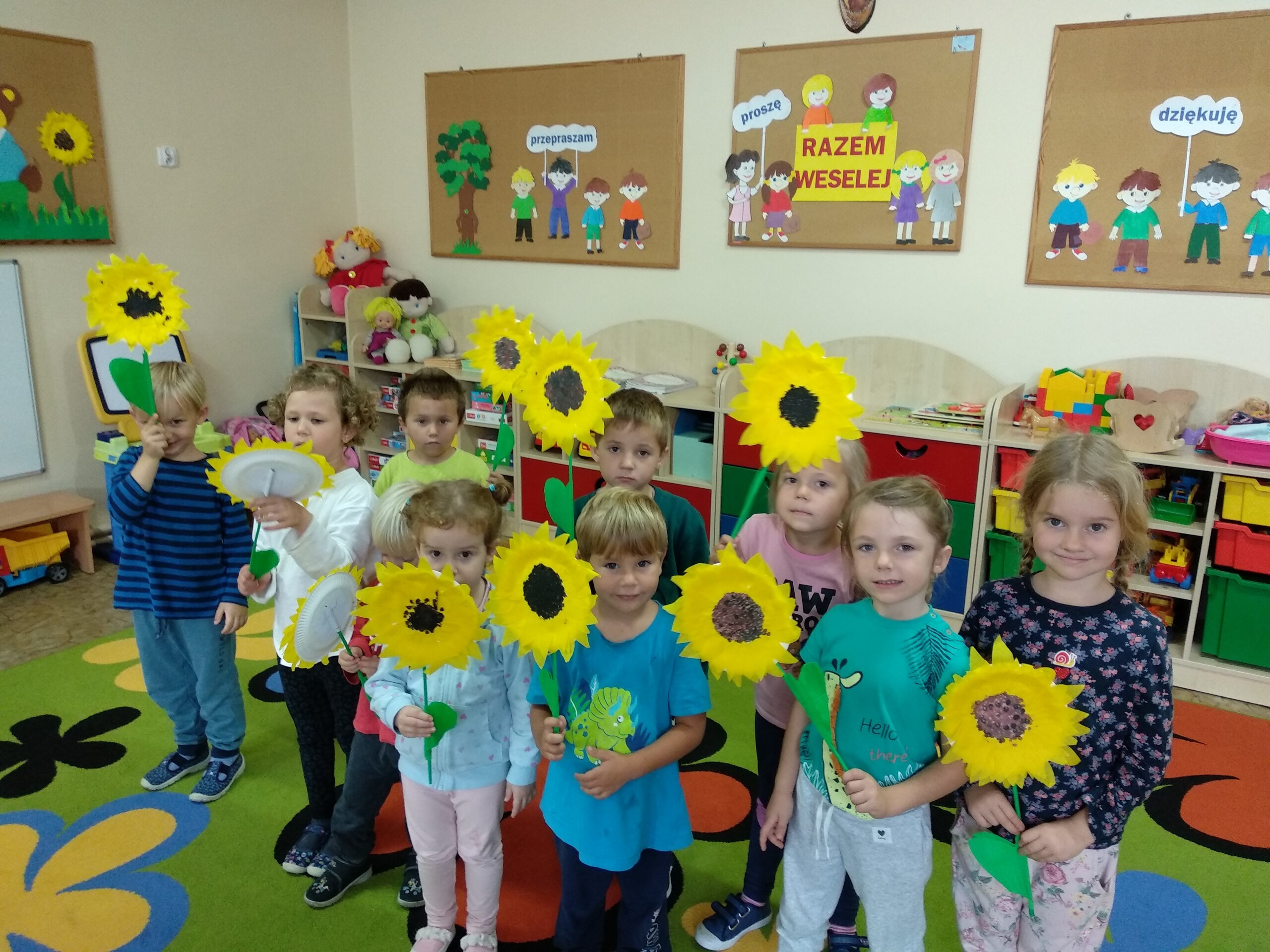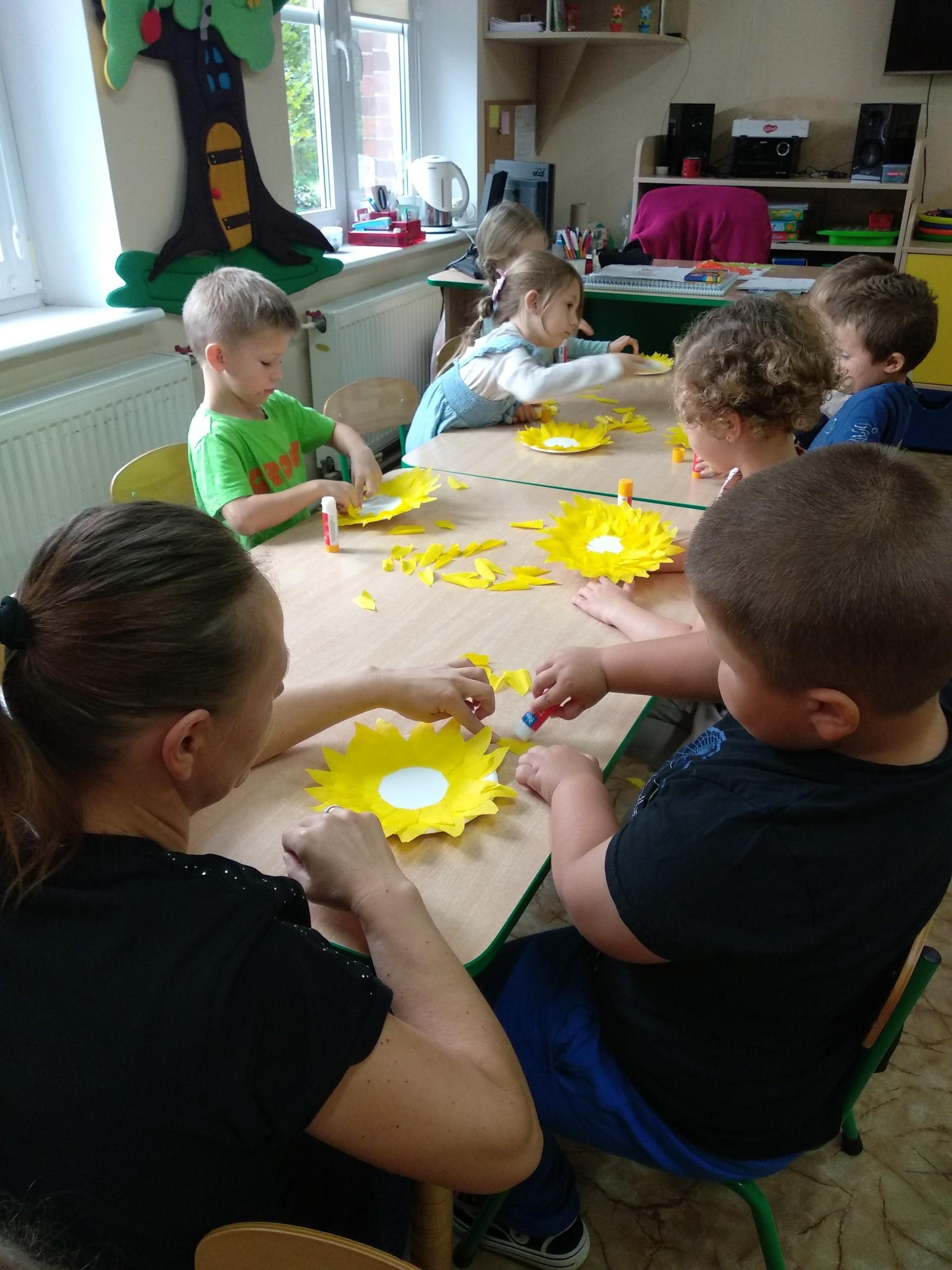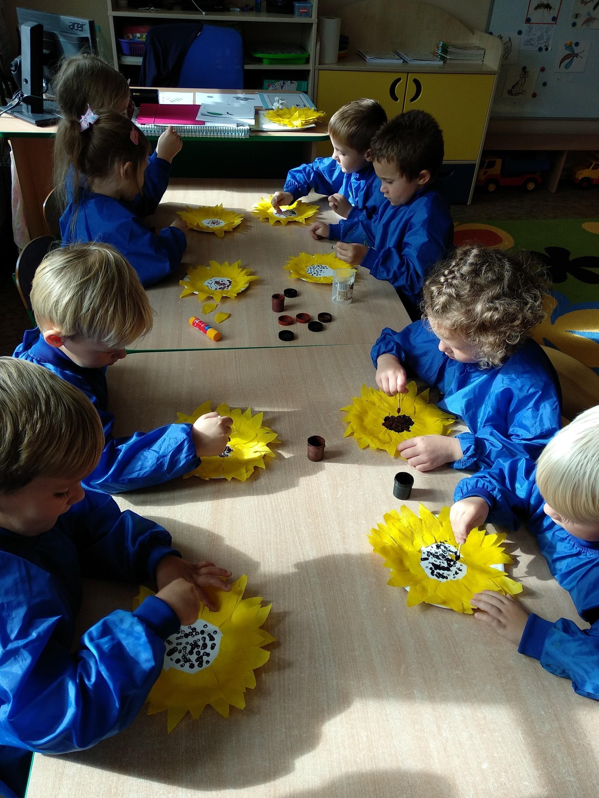 Tym razem przedszkolaki stworzyły piękne słoneczniki.