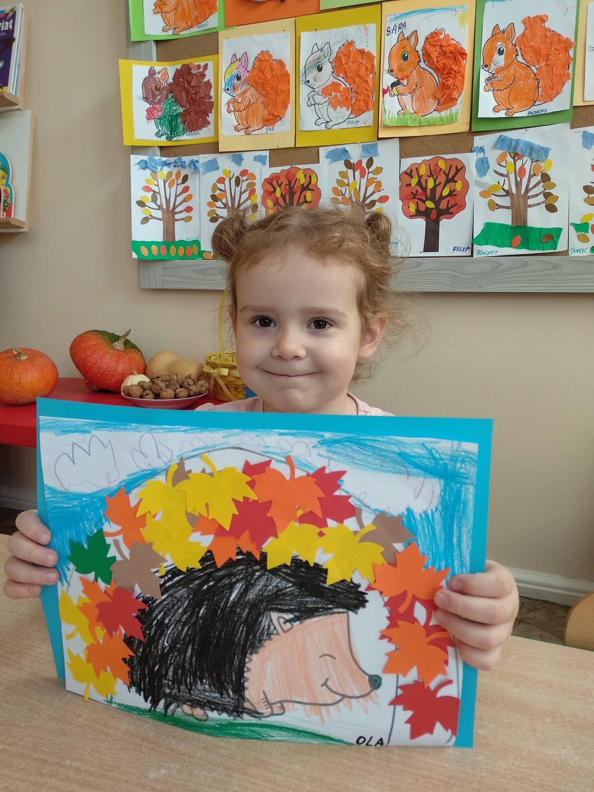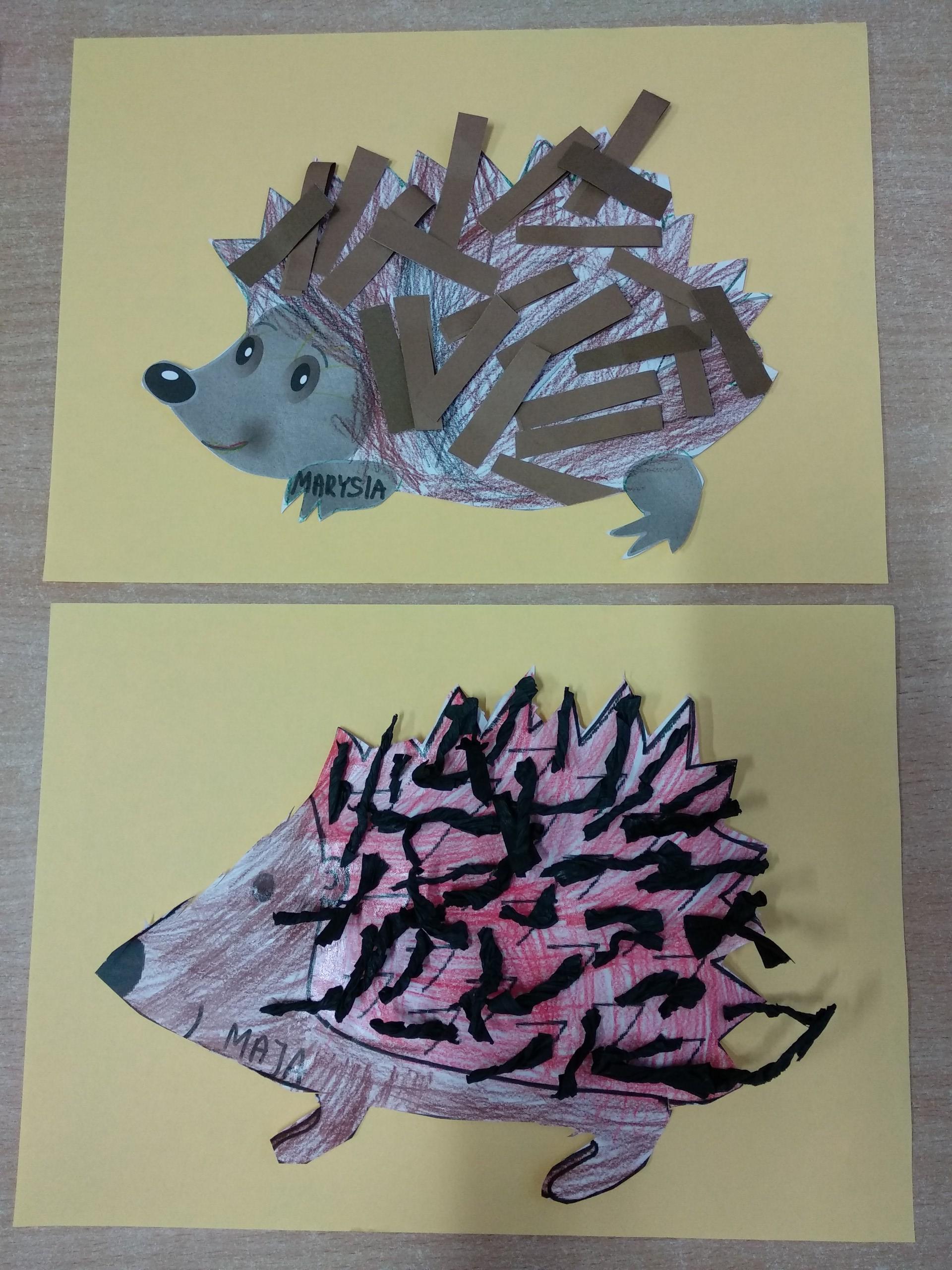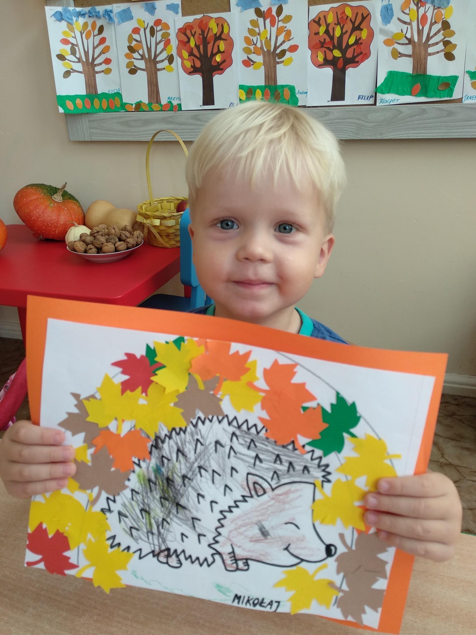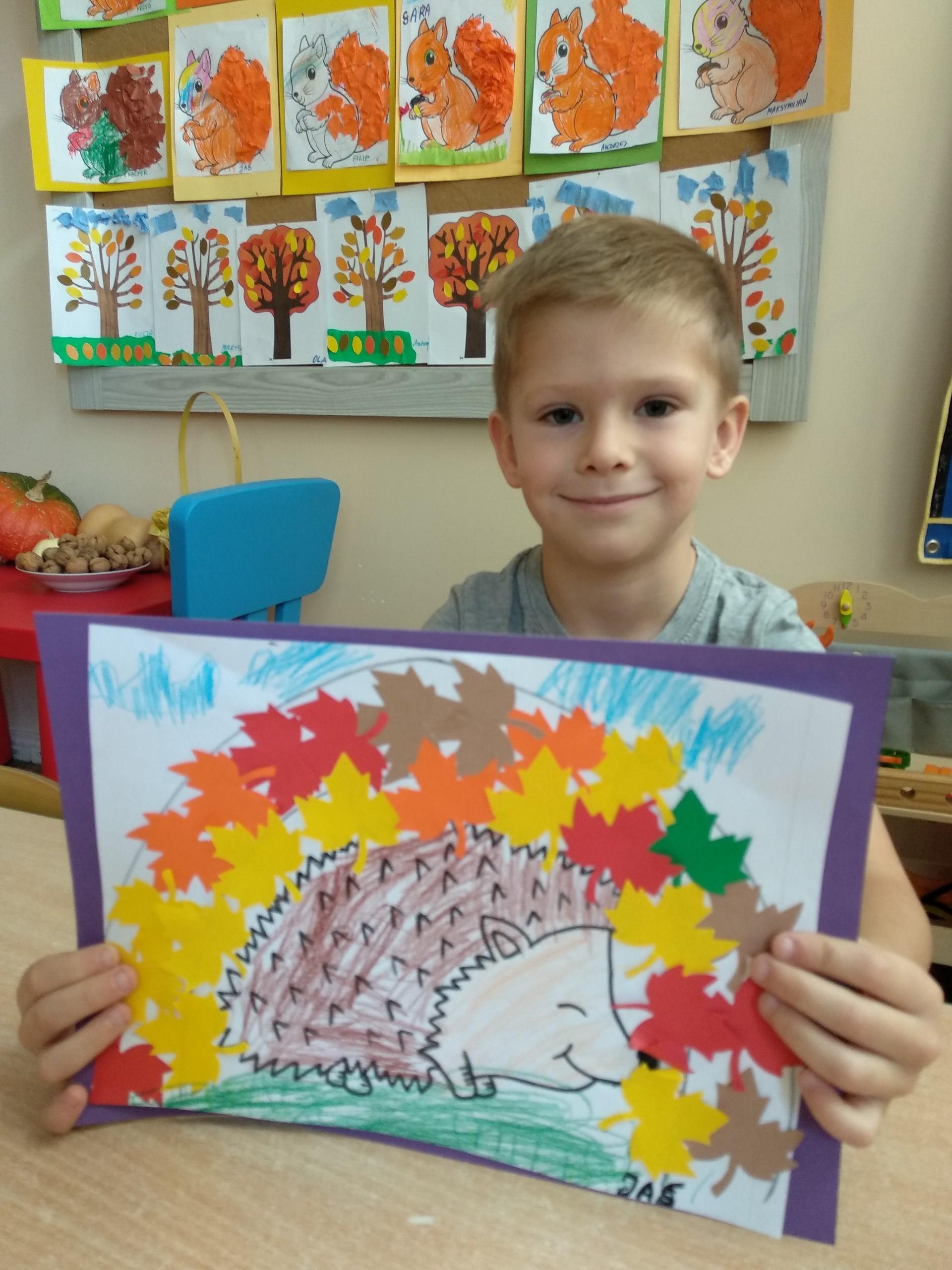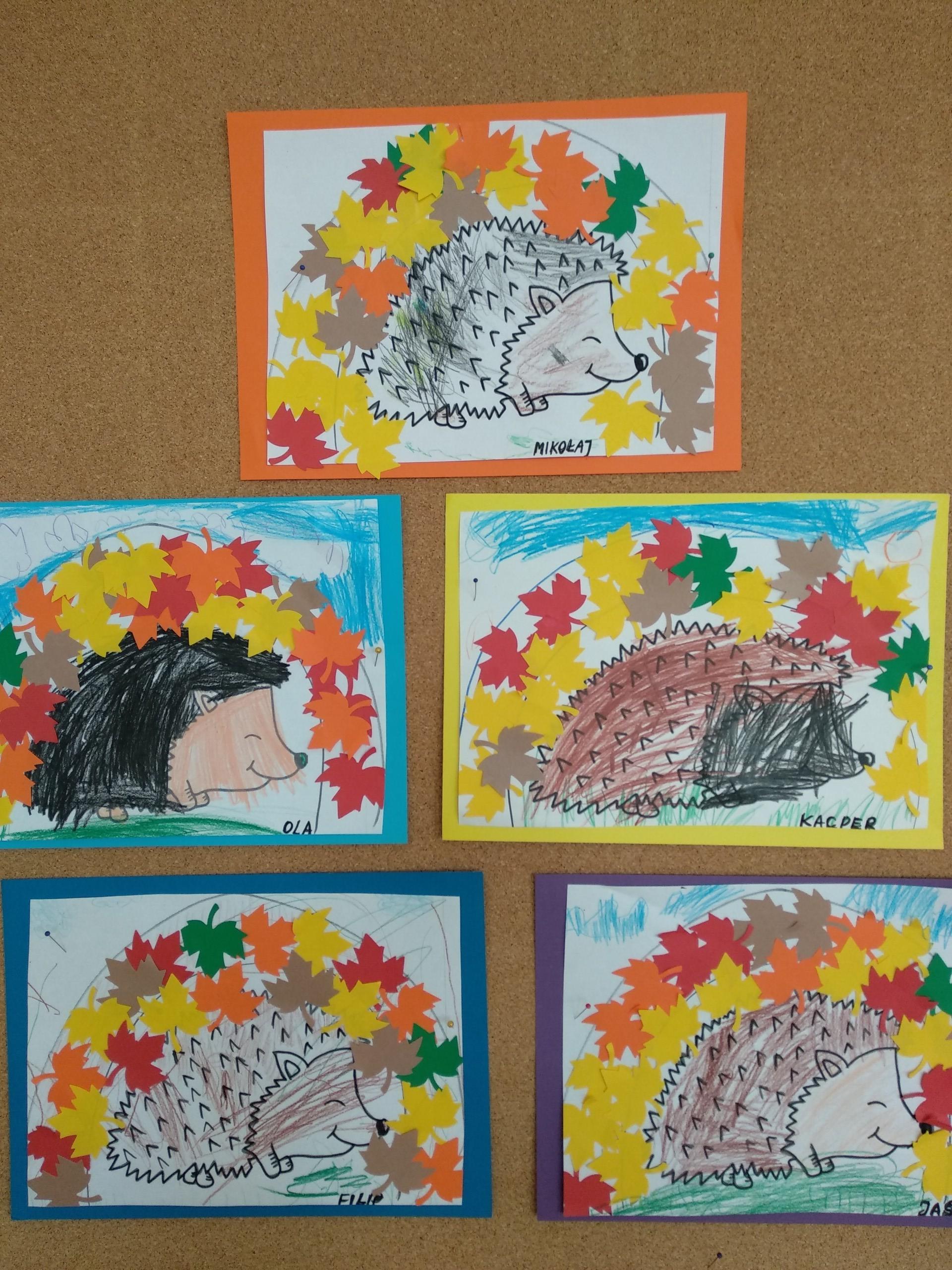 Kolejne prace naszych przedszkolaków - jeżyki oraz jesienne drzewa.