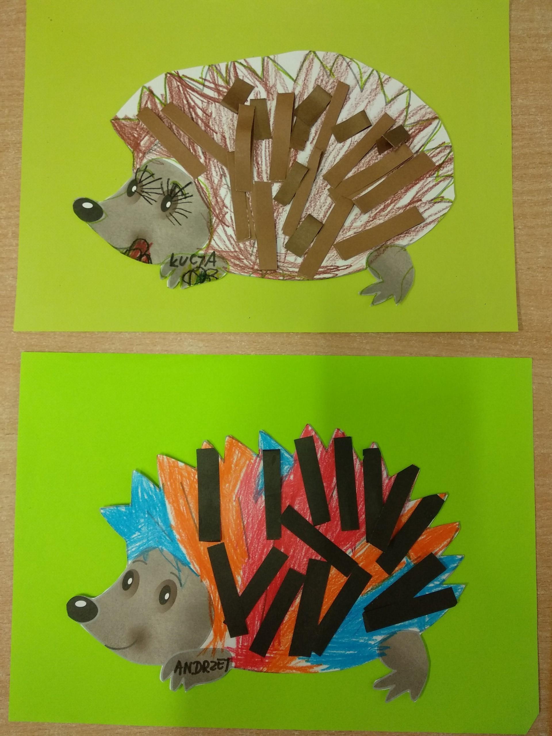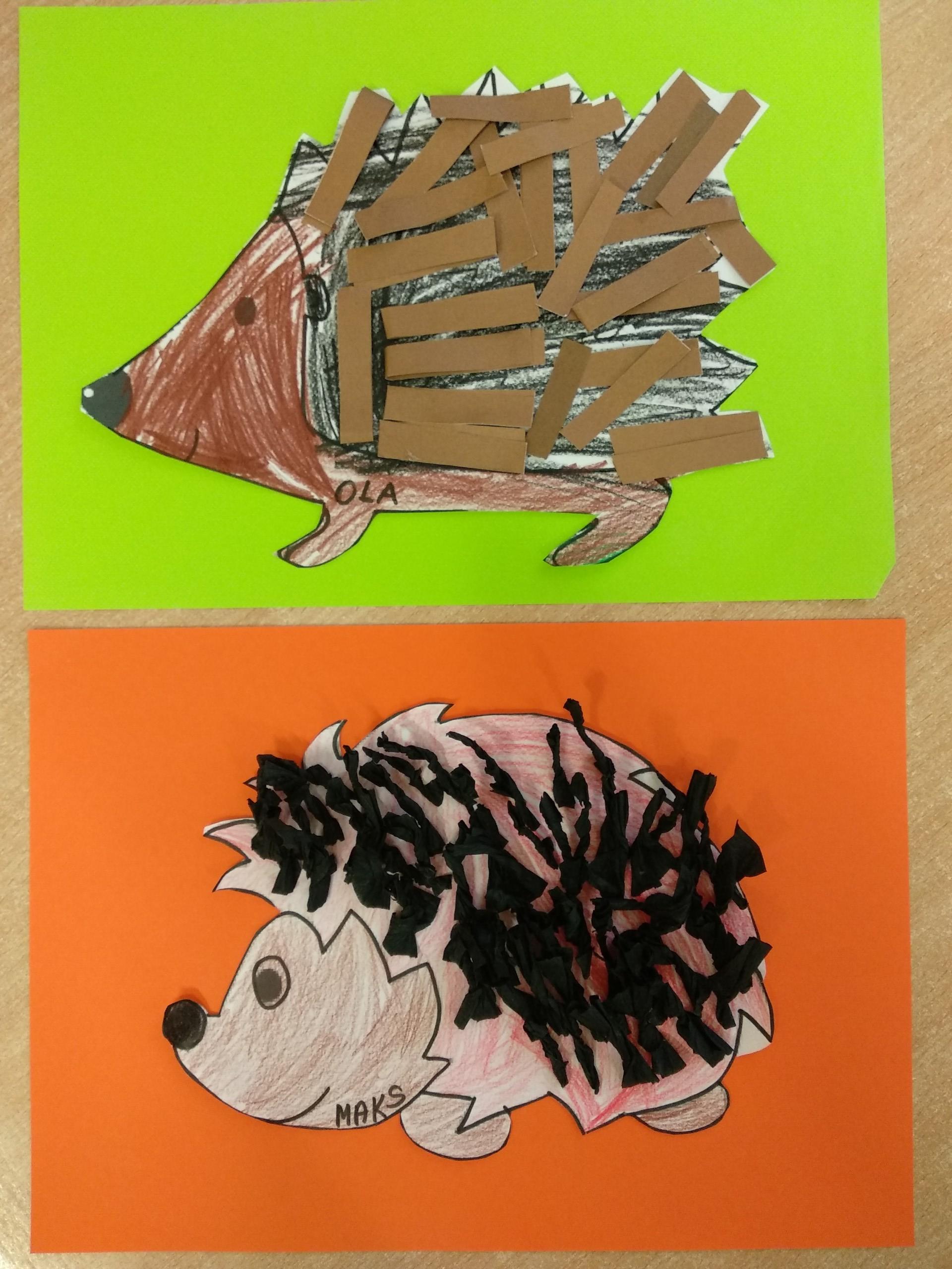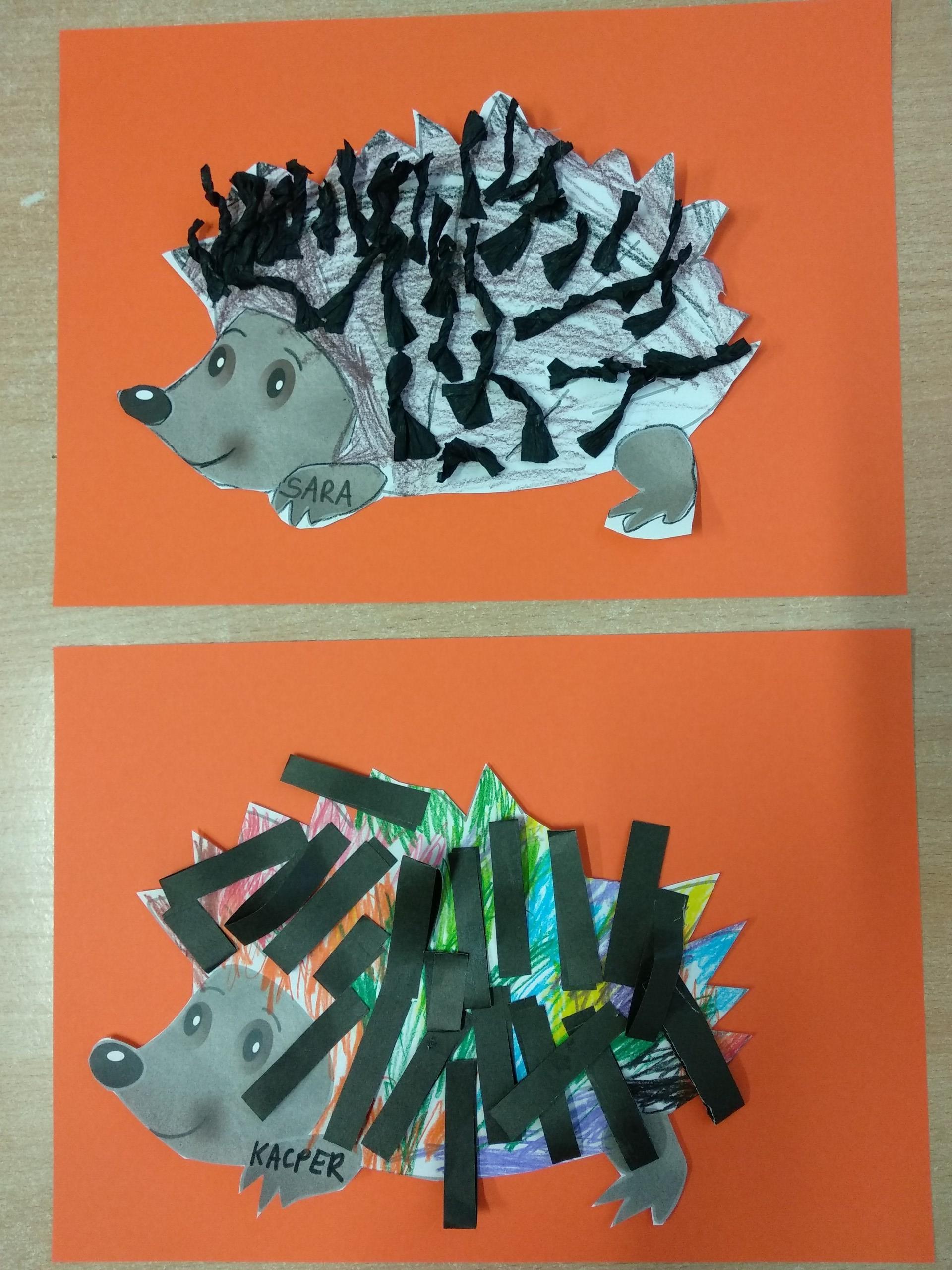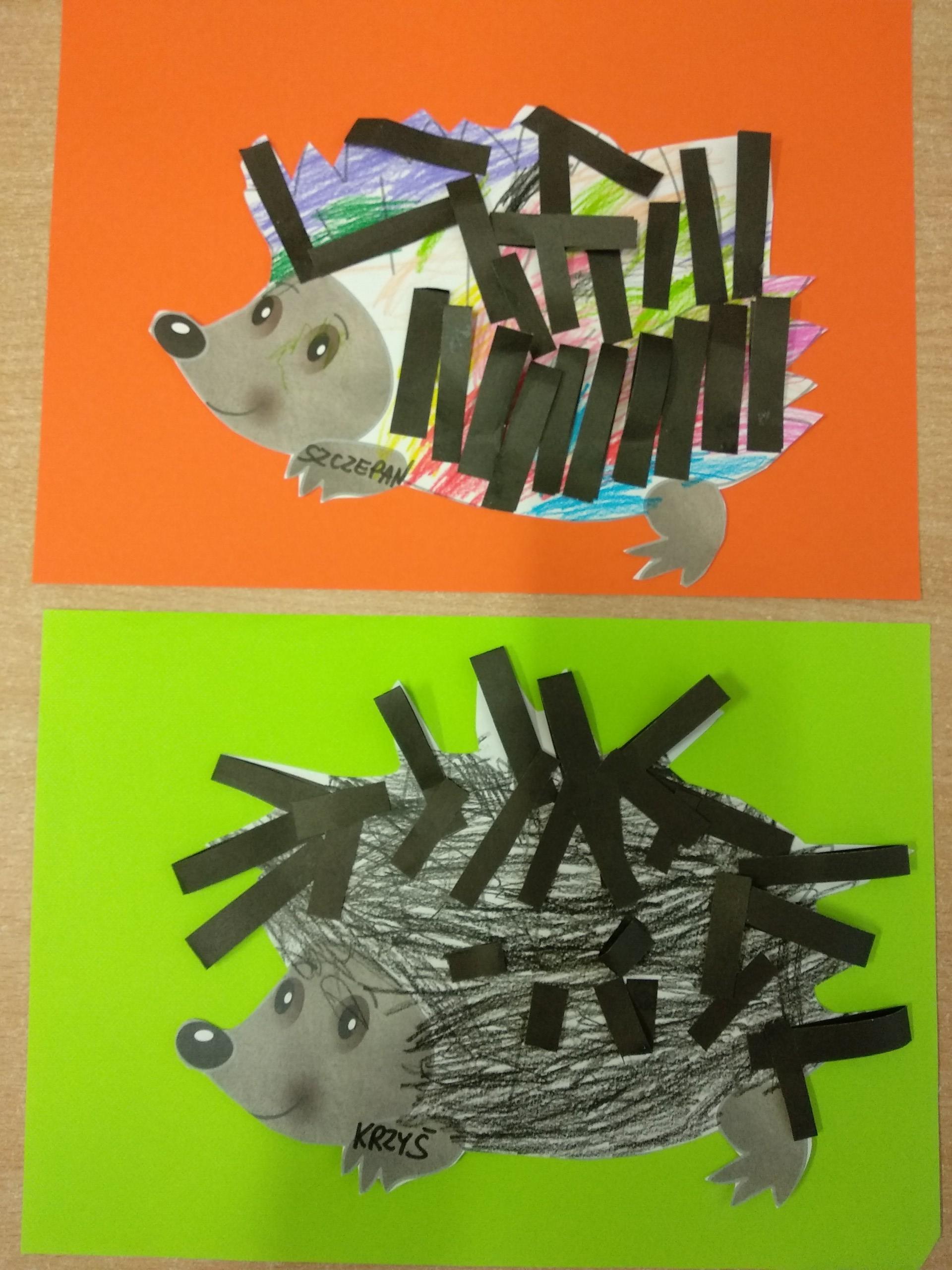 Kolejne prace naszych przedszkolaków - jeżyki oraz jesienne drzewa.