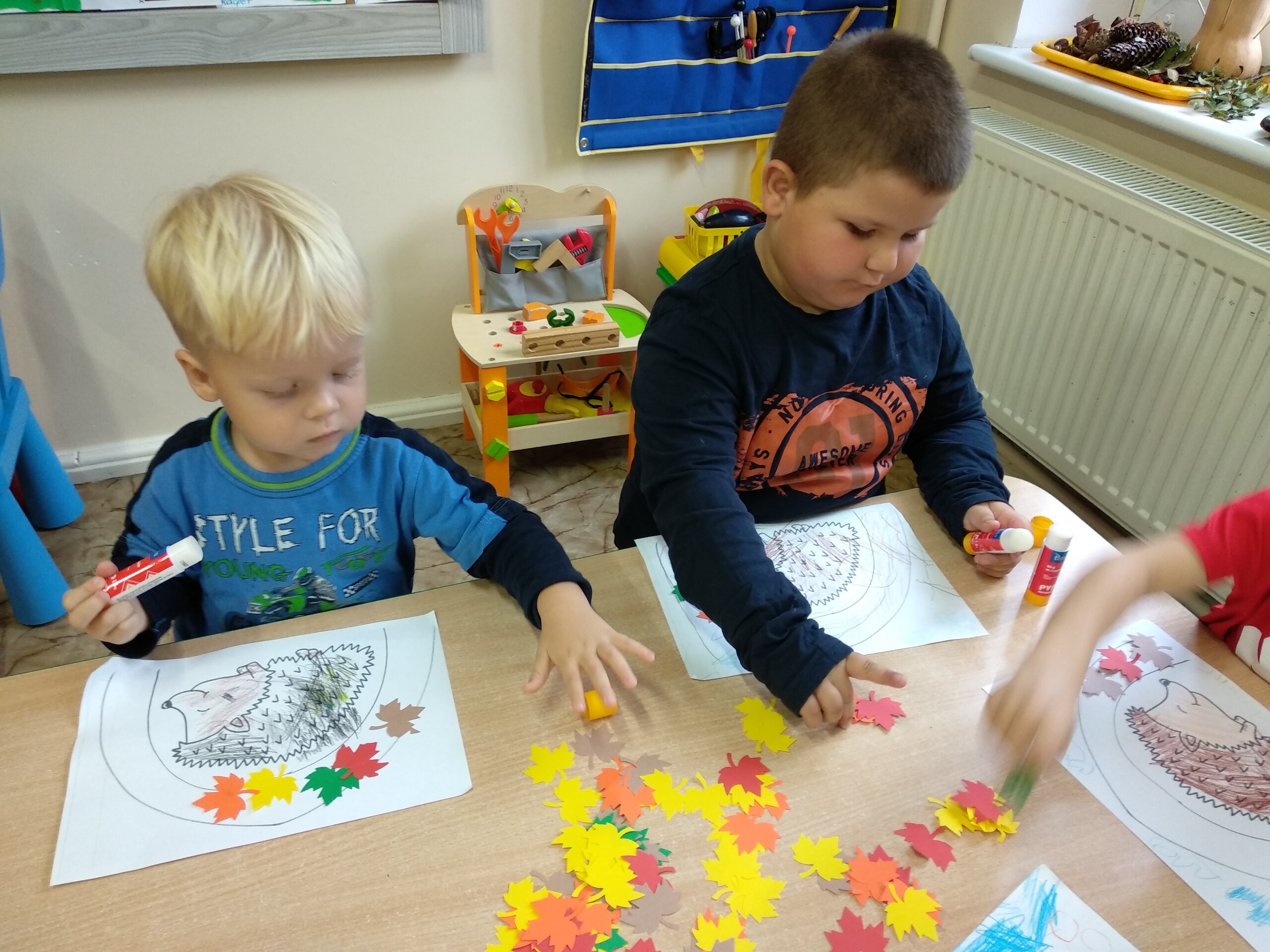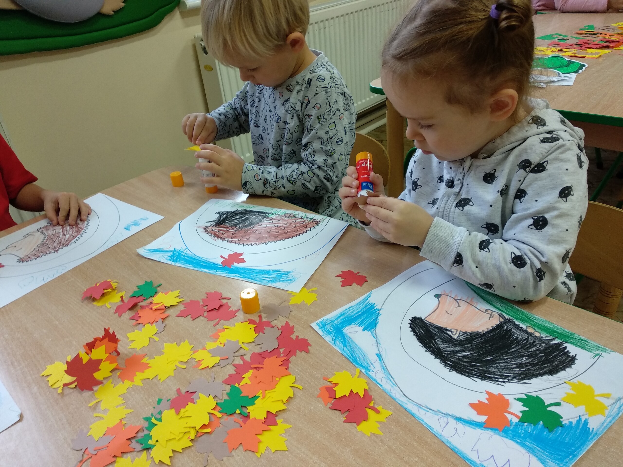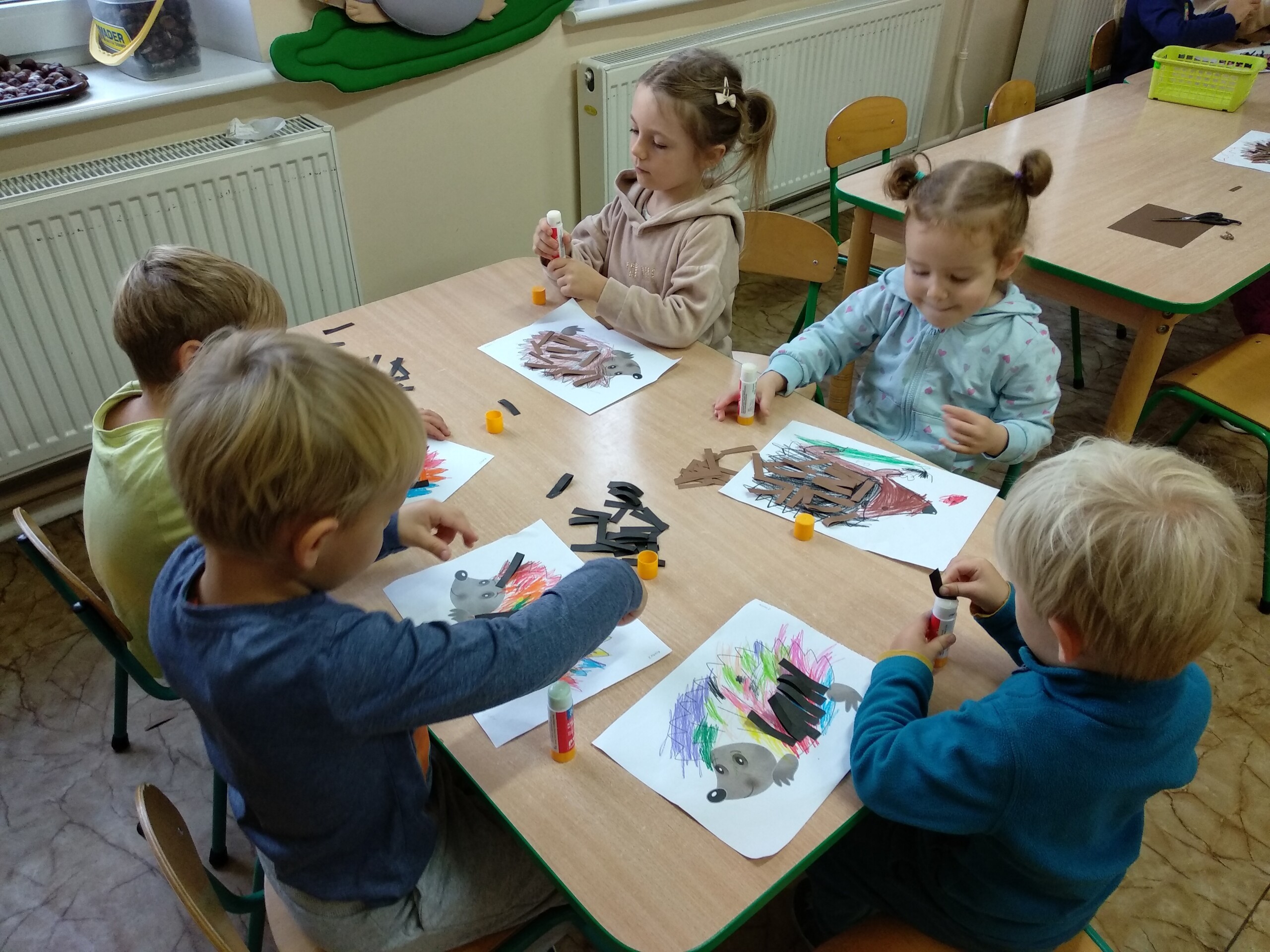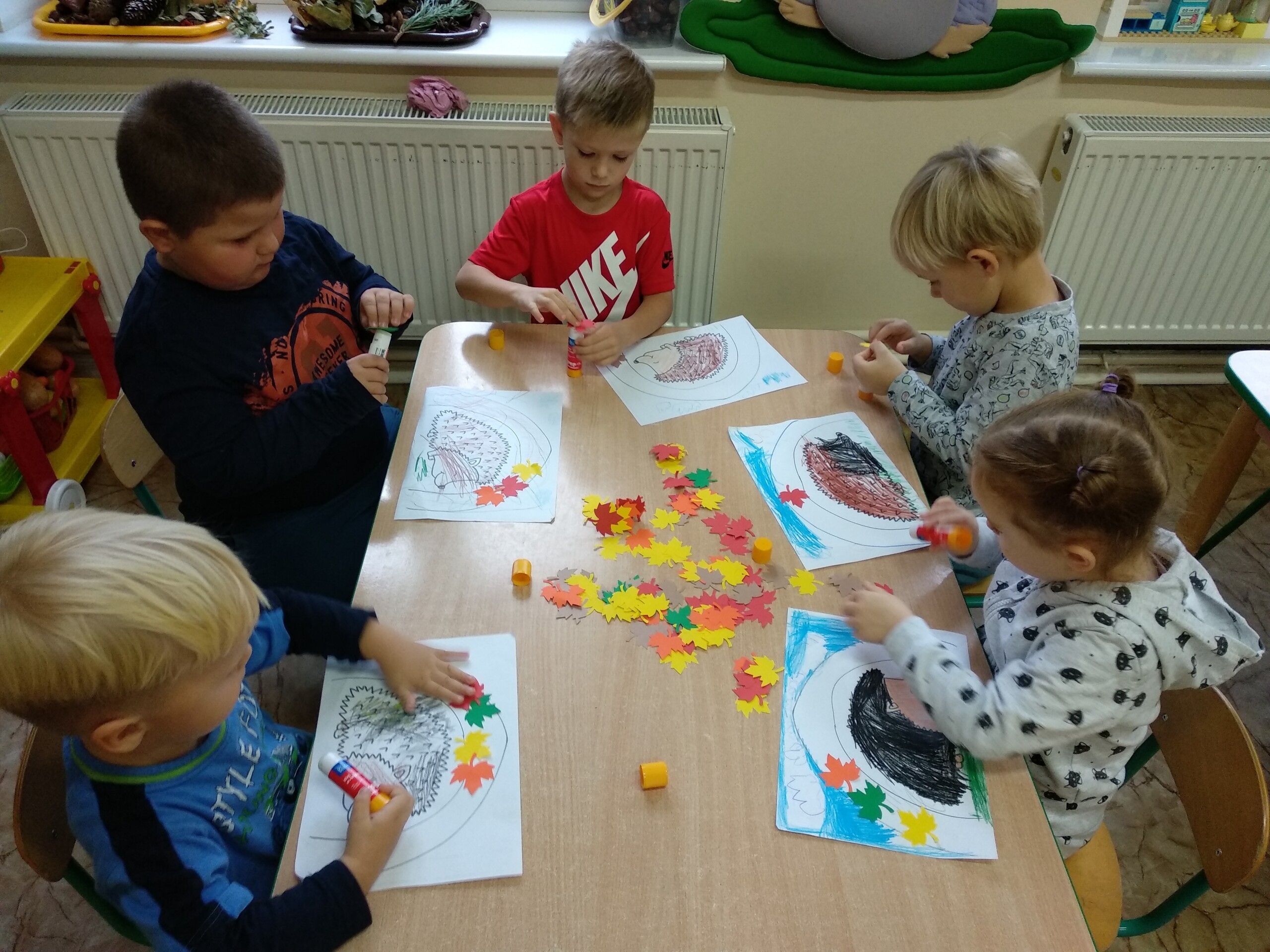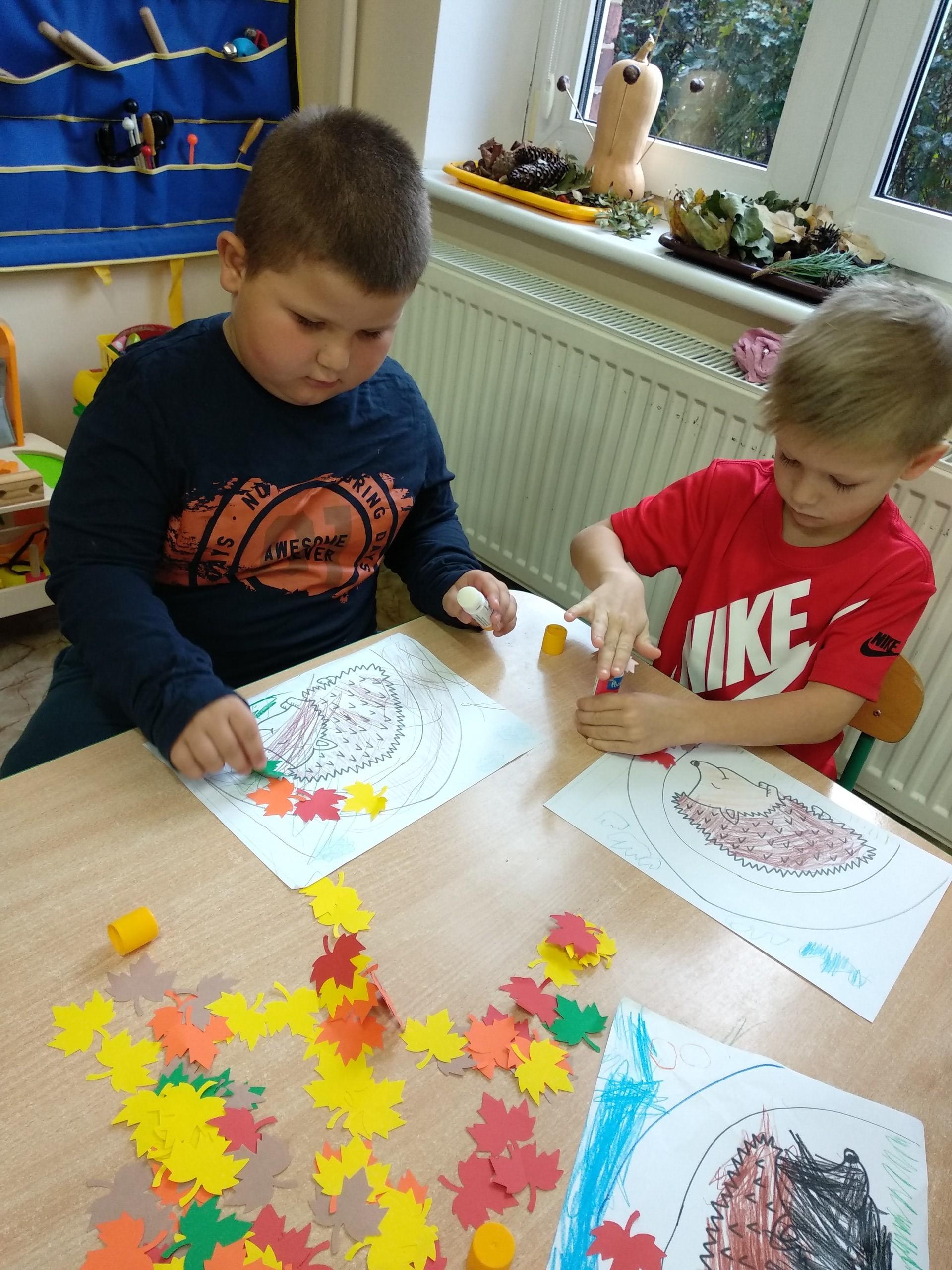 Kolejne prace naszych przedszkolaków - jeżyki oraz jesienne drzewa.