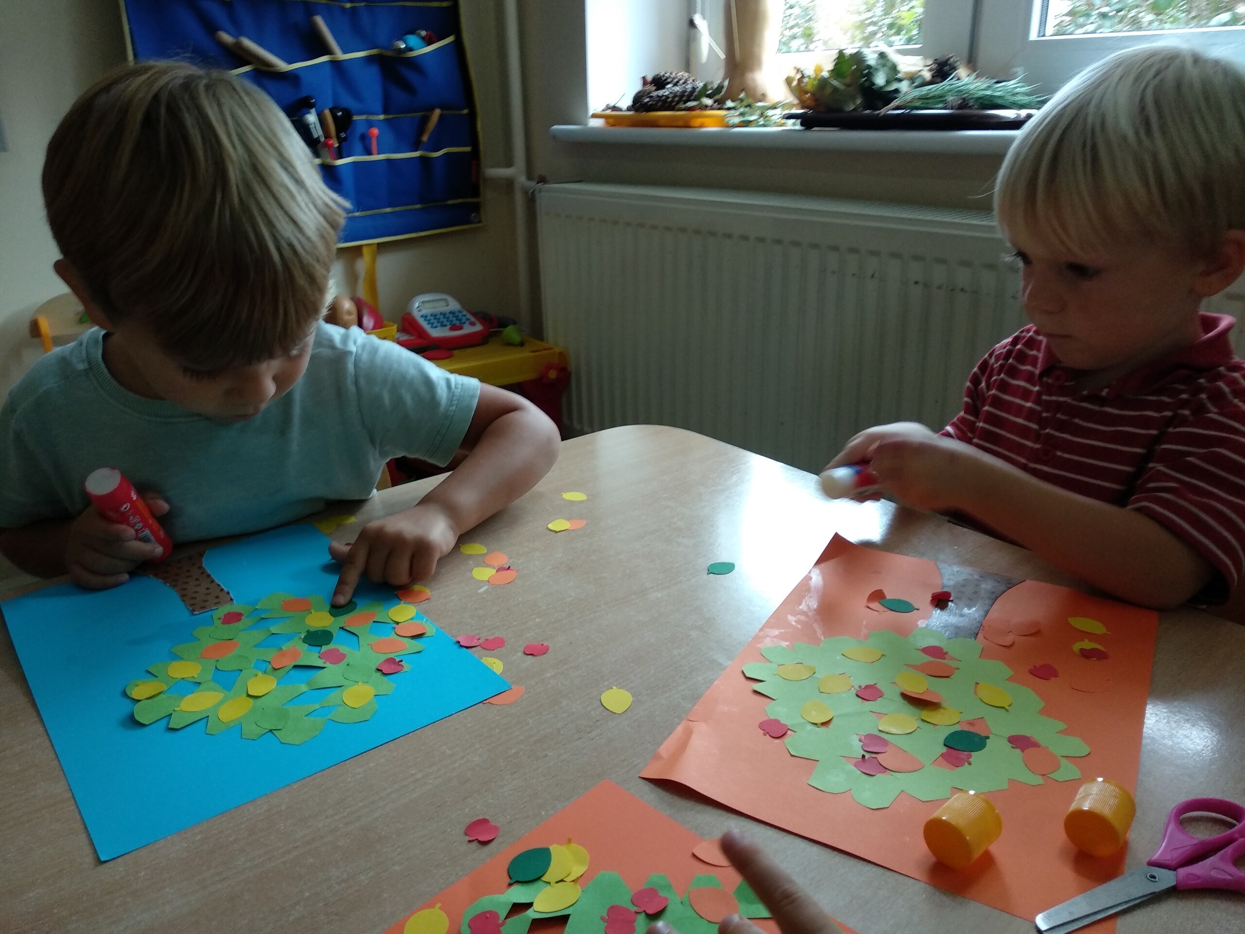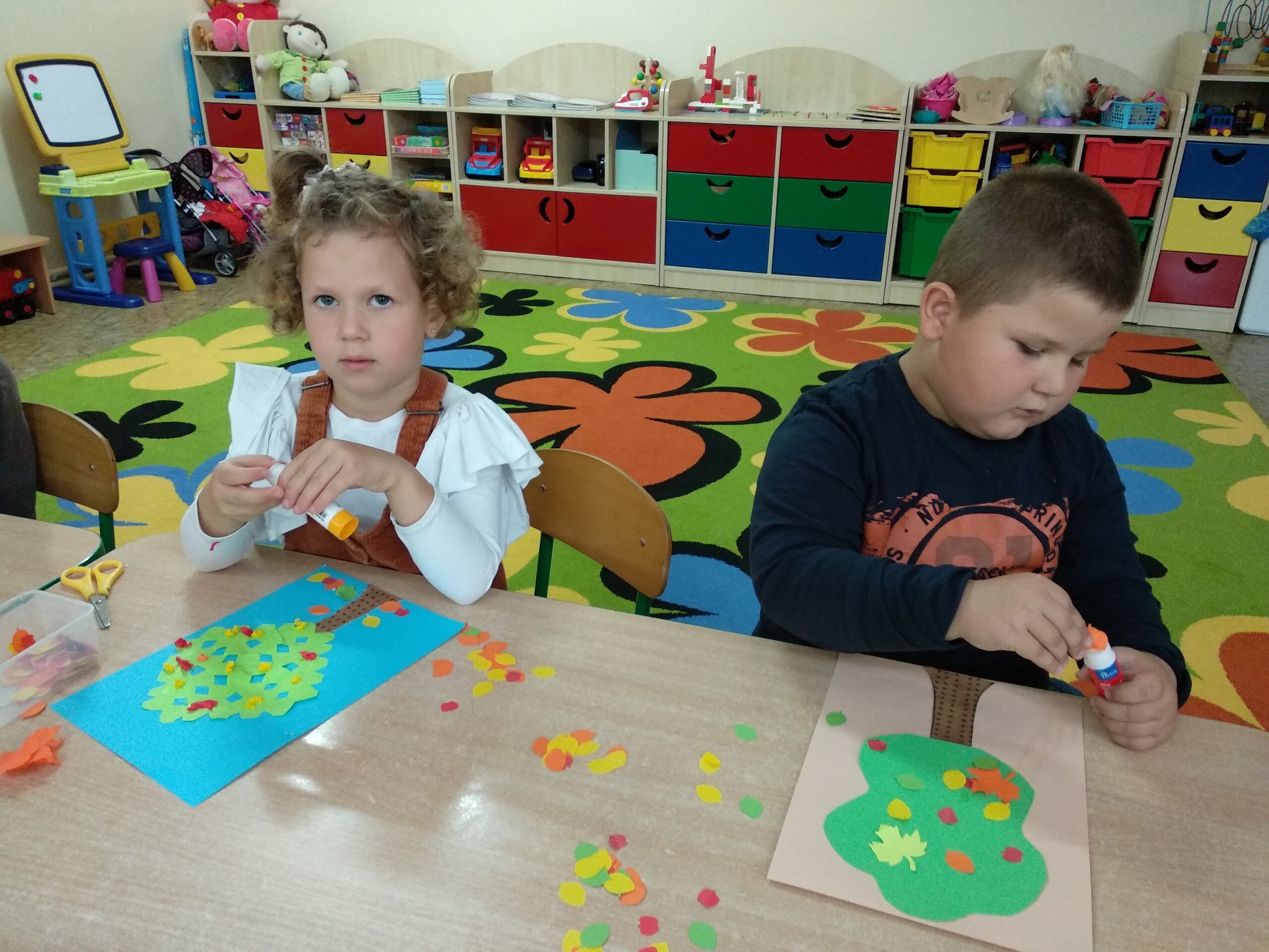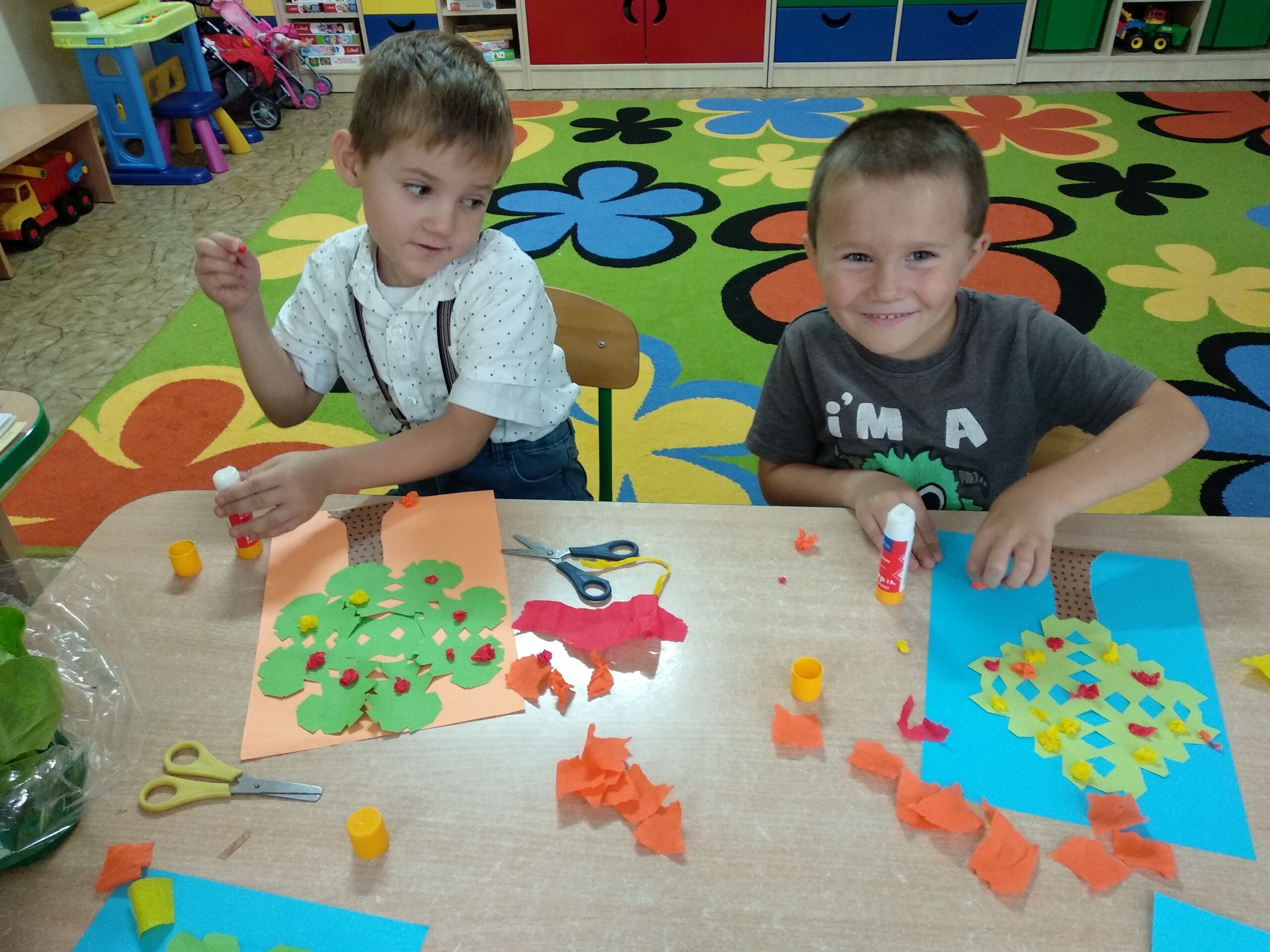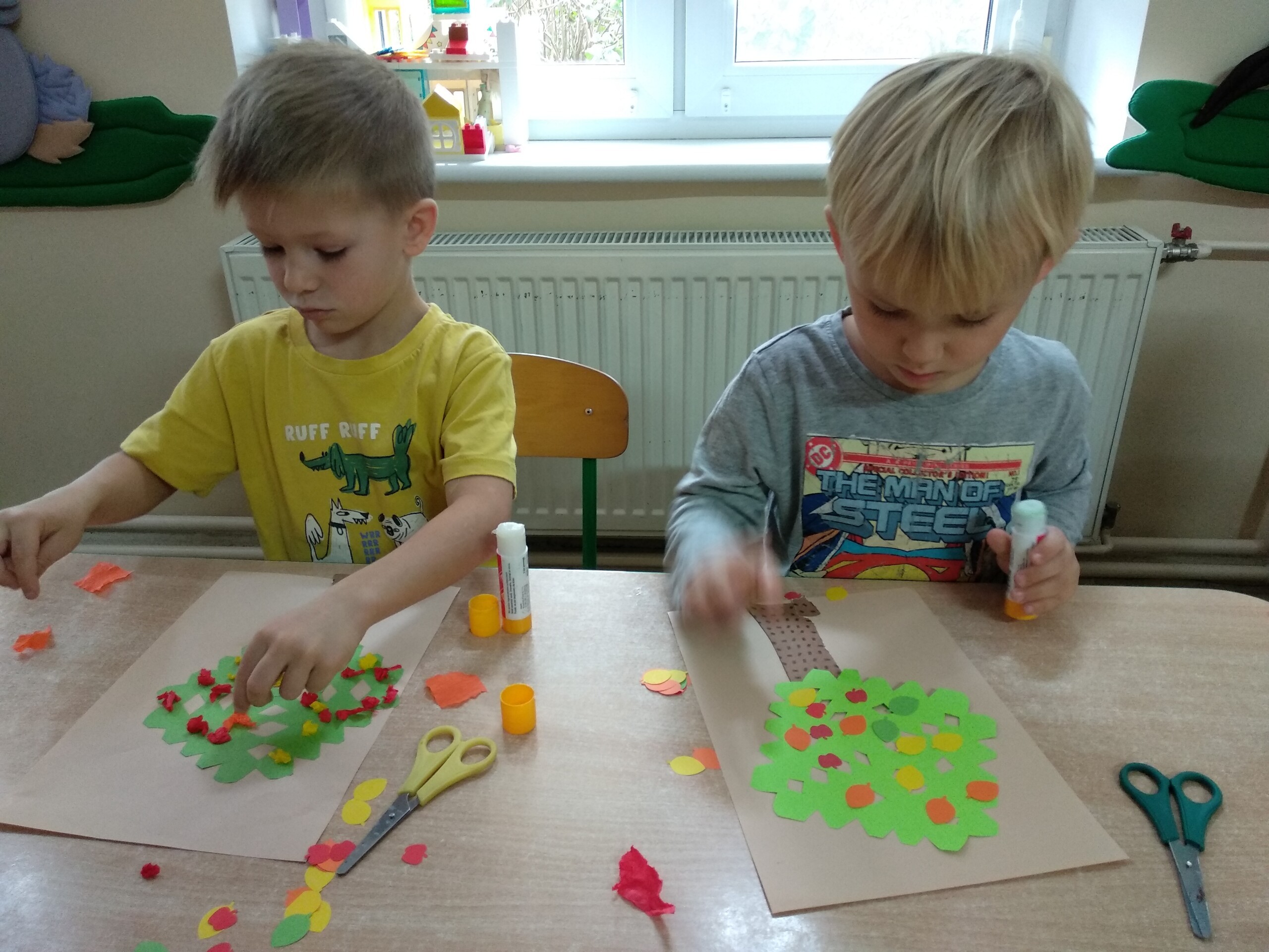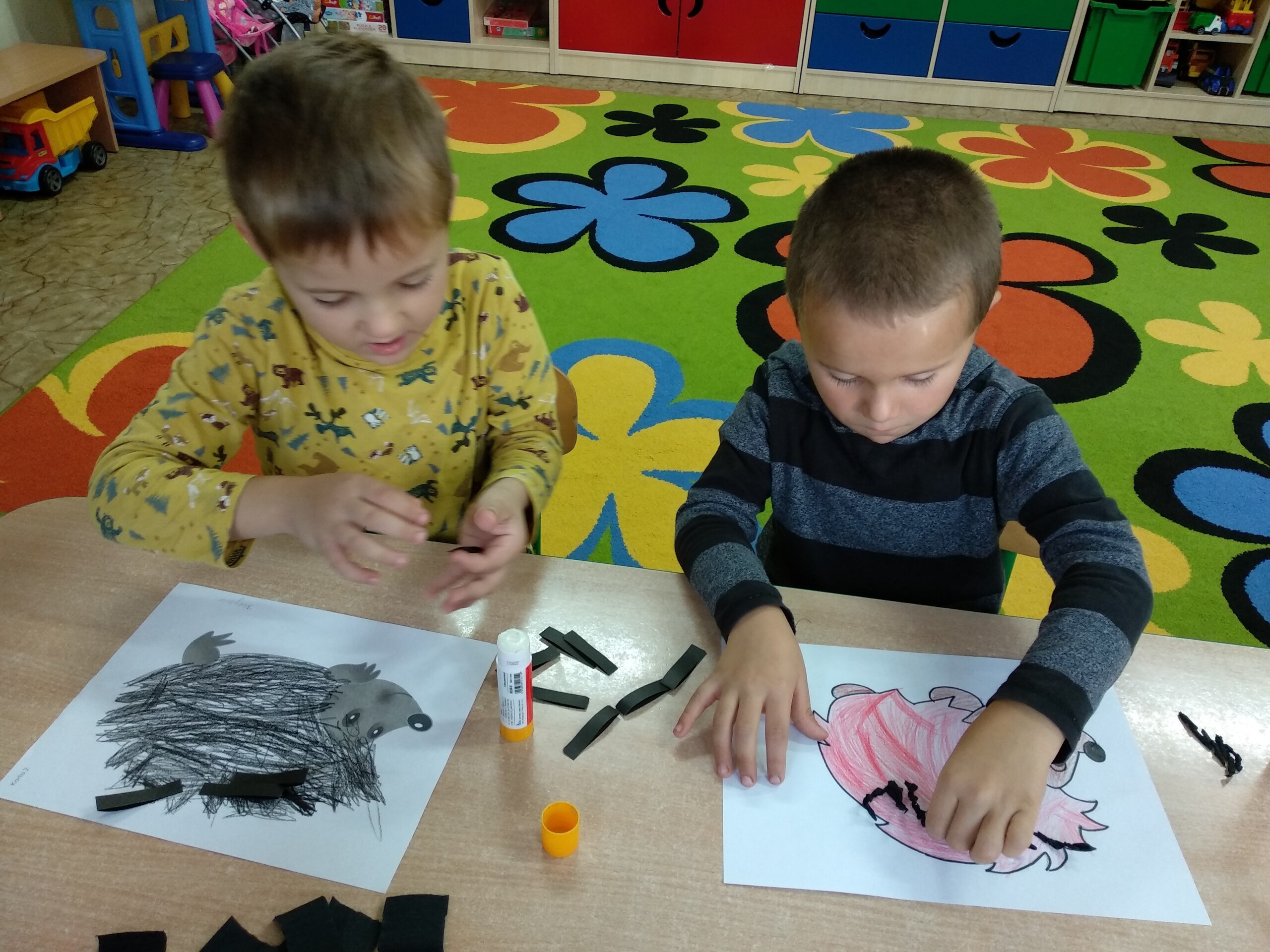 Kolejne prace naszych przedszkolaków - jeżyki oraz jesienne drzewa.