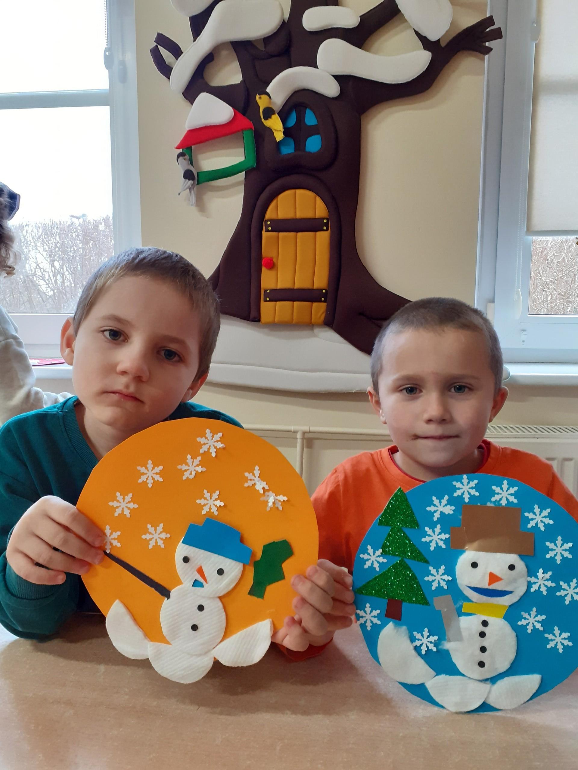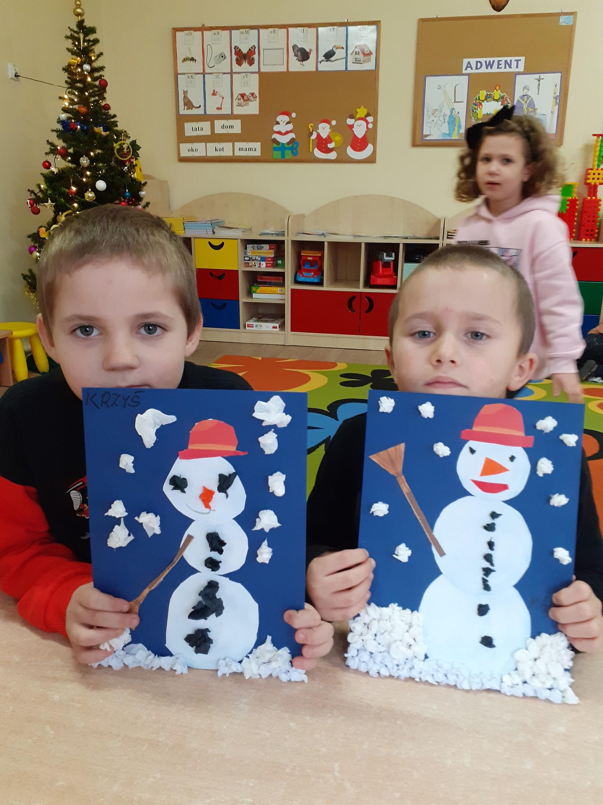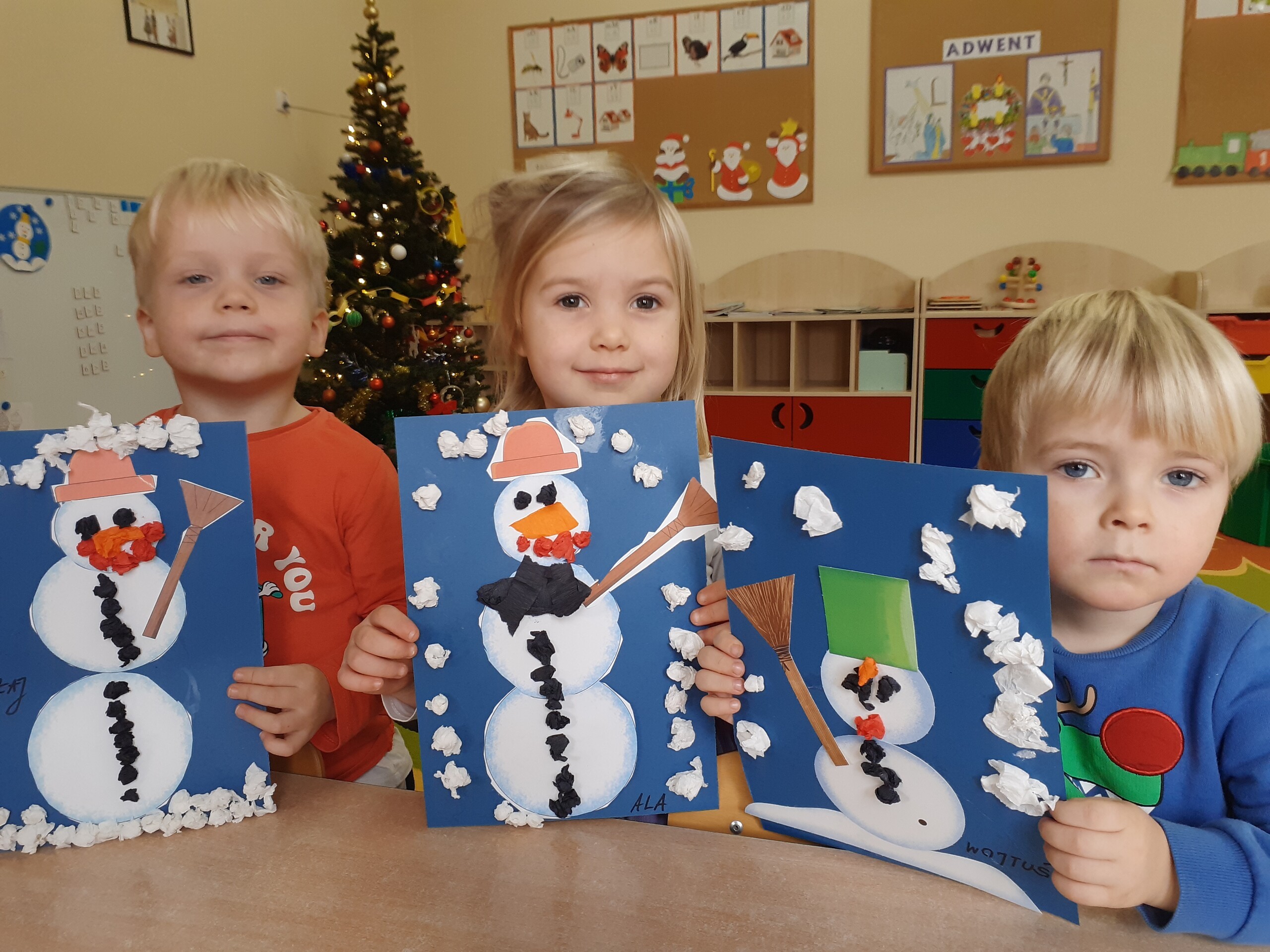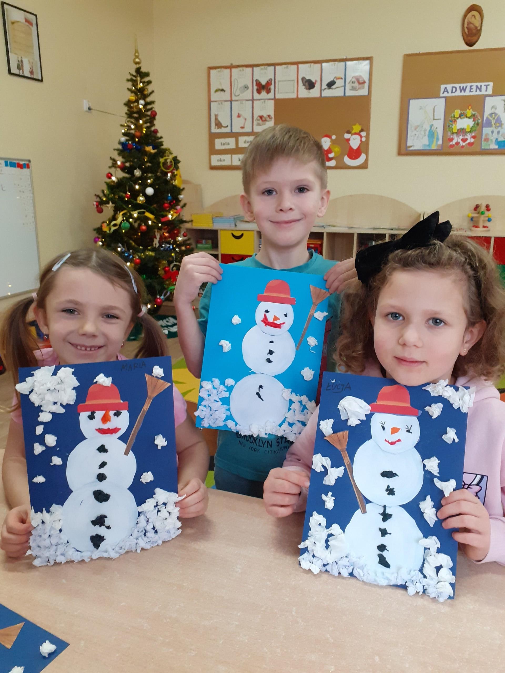 Pracusie podczas wykonywania prac o tematyce zimowej.