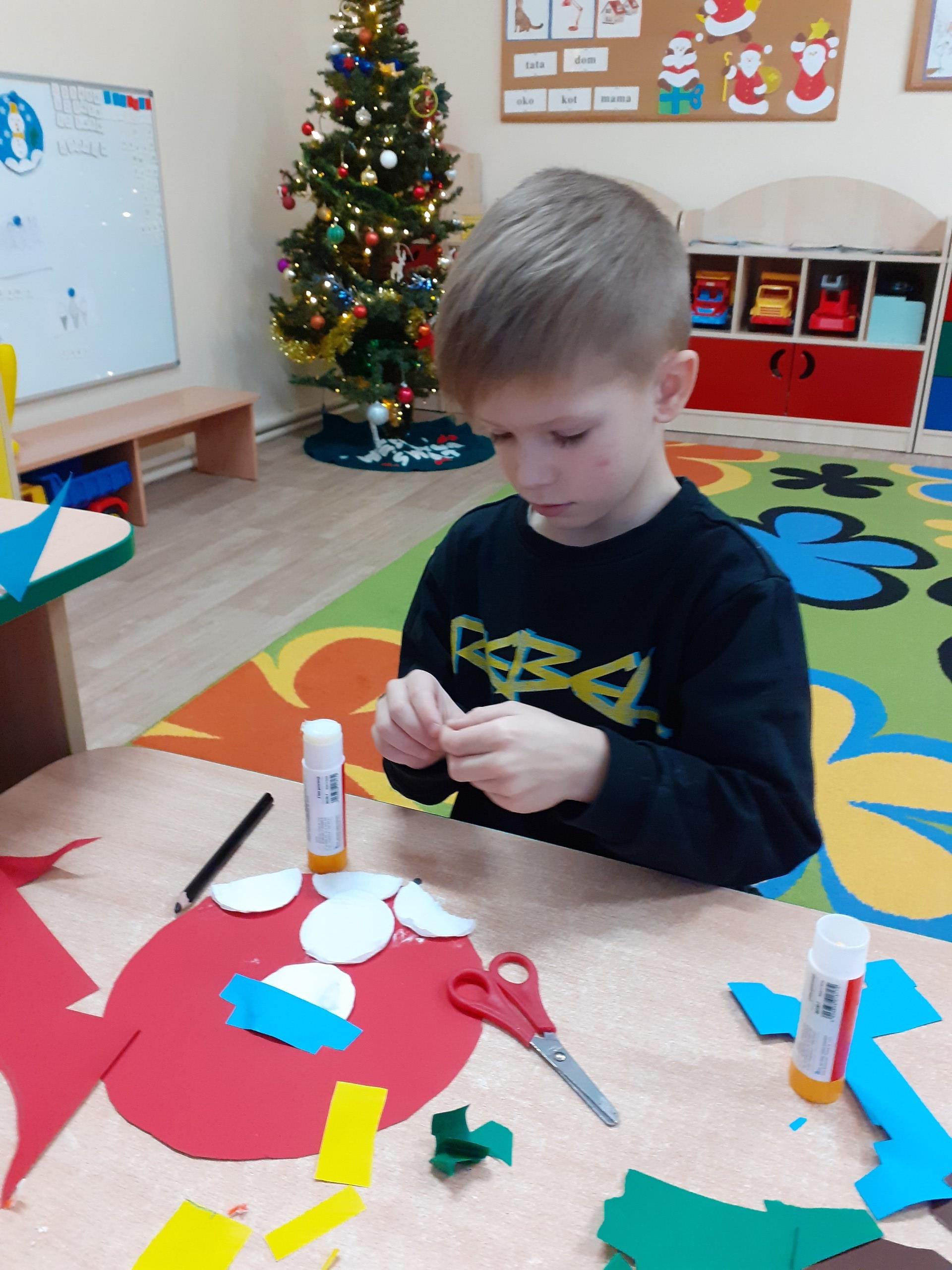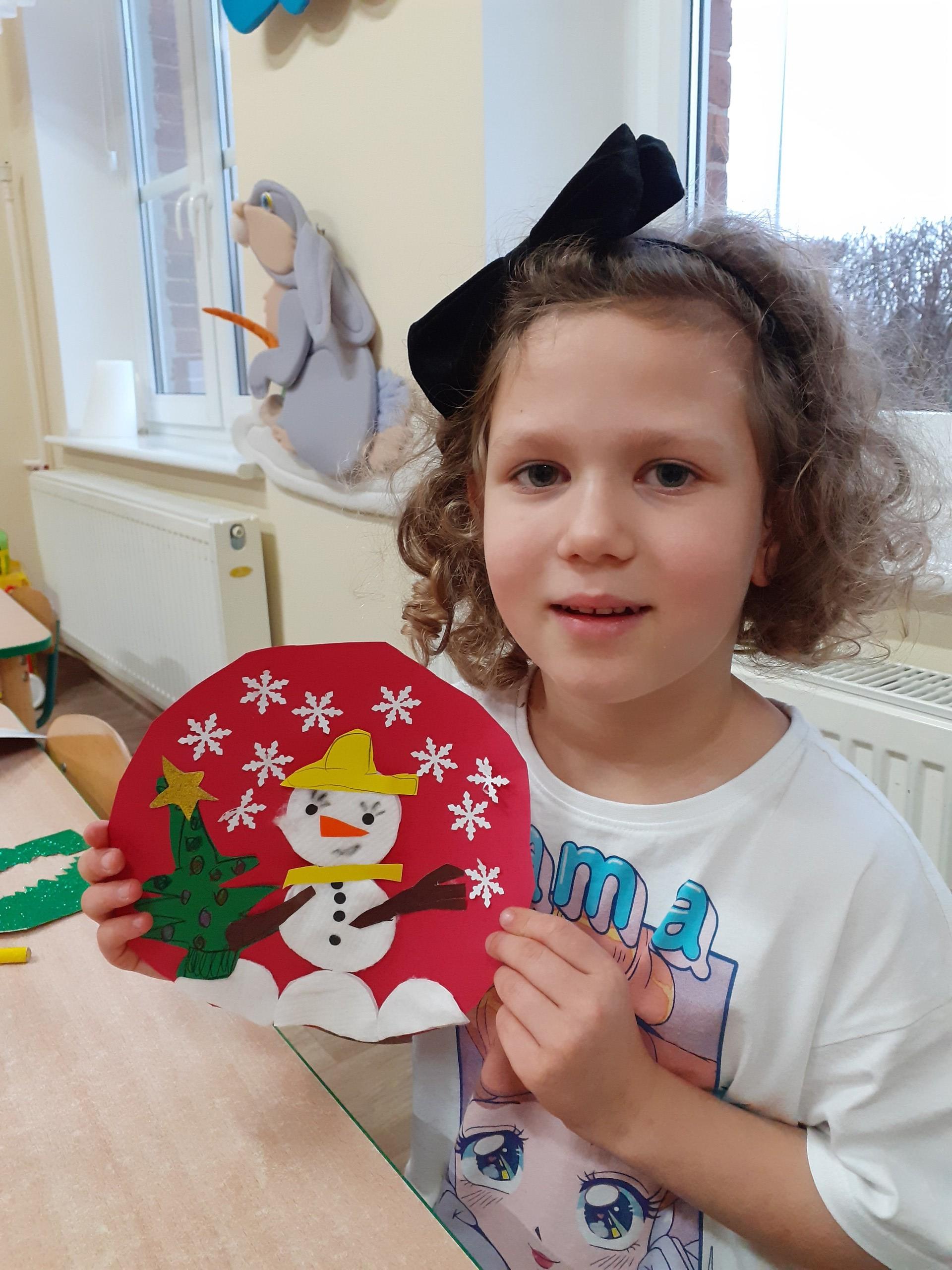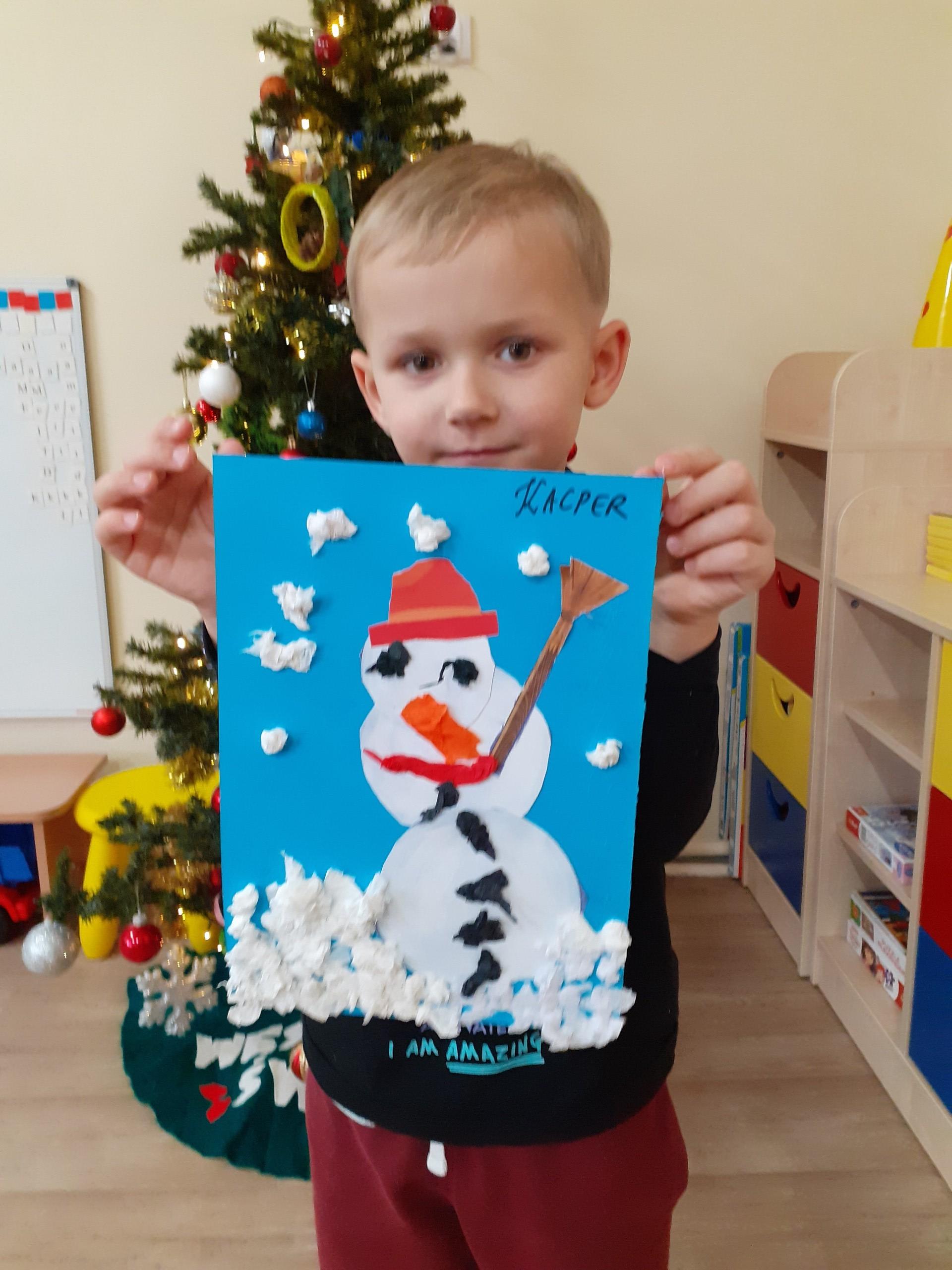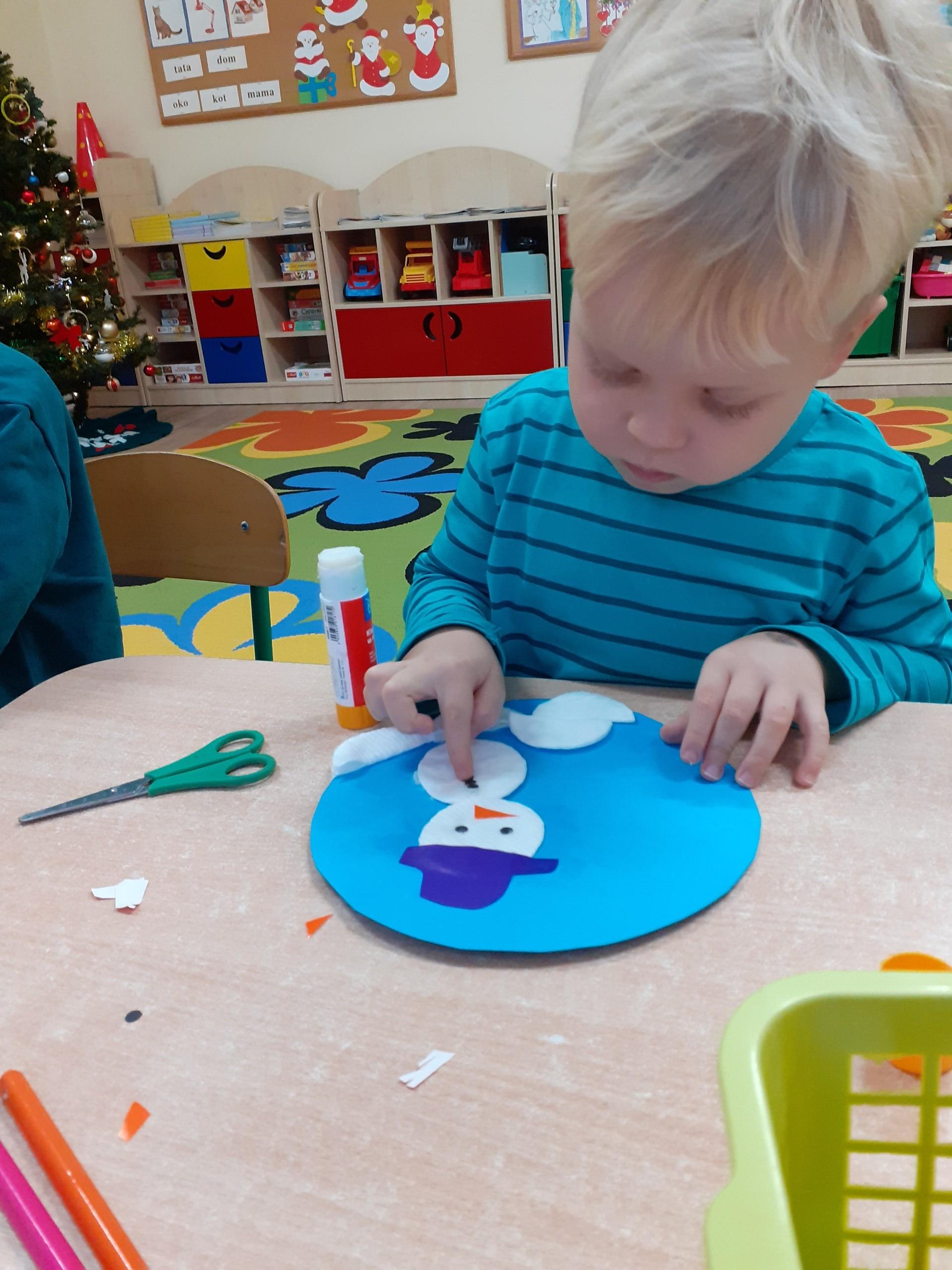 Pracusie podczas wykonywania prac o tematyce zimowej.