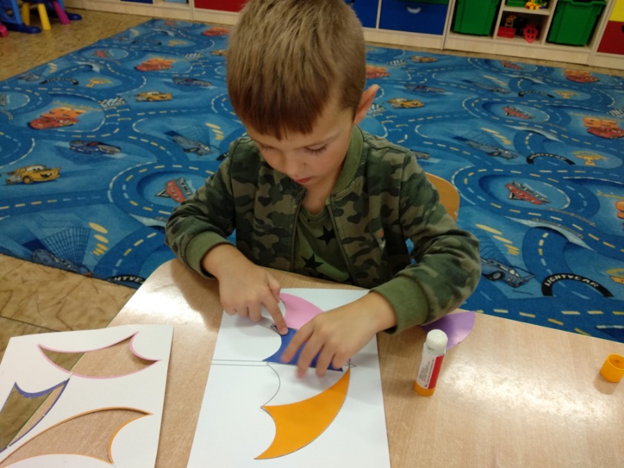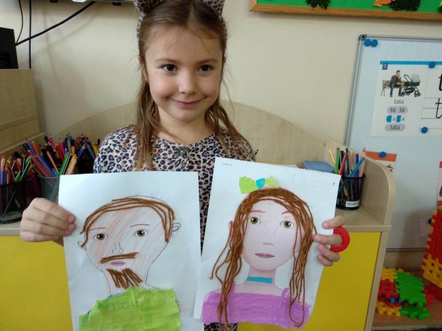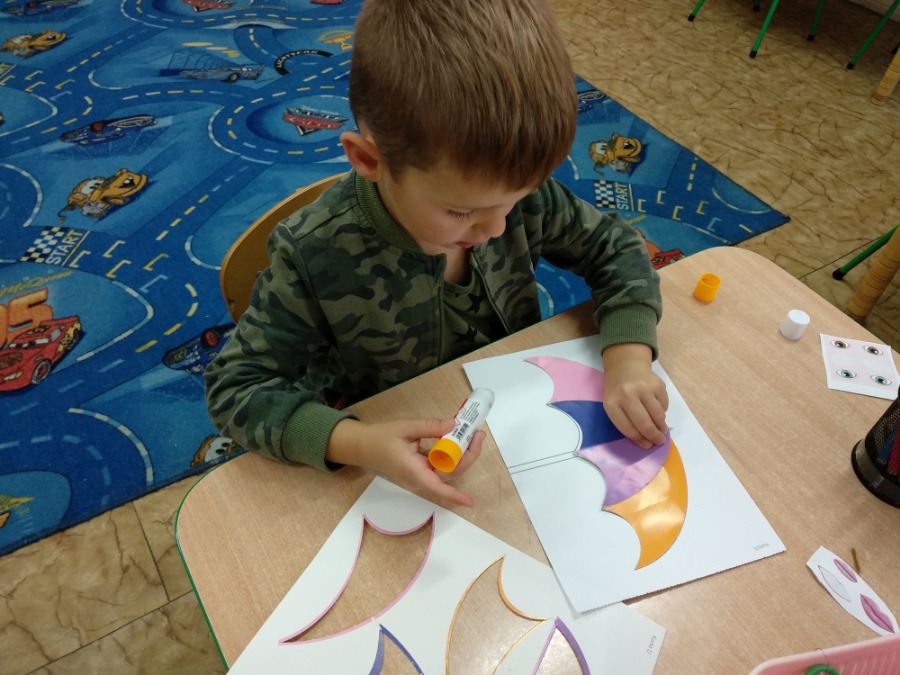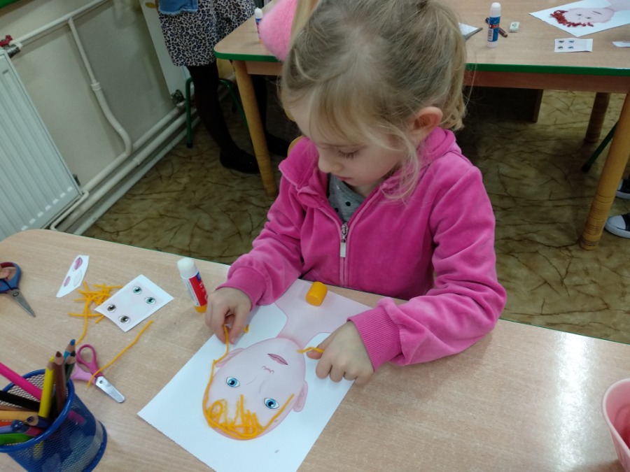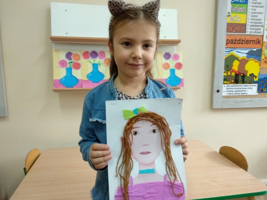 Starszaki tworzyły swoje portrety używając gotowych elementów oraz kolorowej bibuły i włóczki. Maluszki, z racji deszczowej pogody, wykonywały kolorowe parasole. Dzień wcześniej powstały kolorowe znicze.