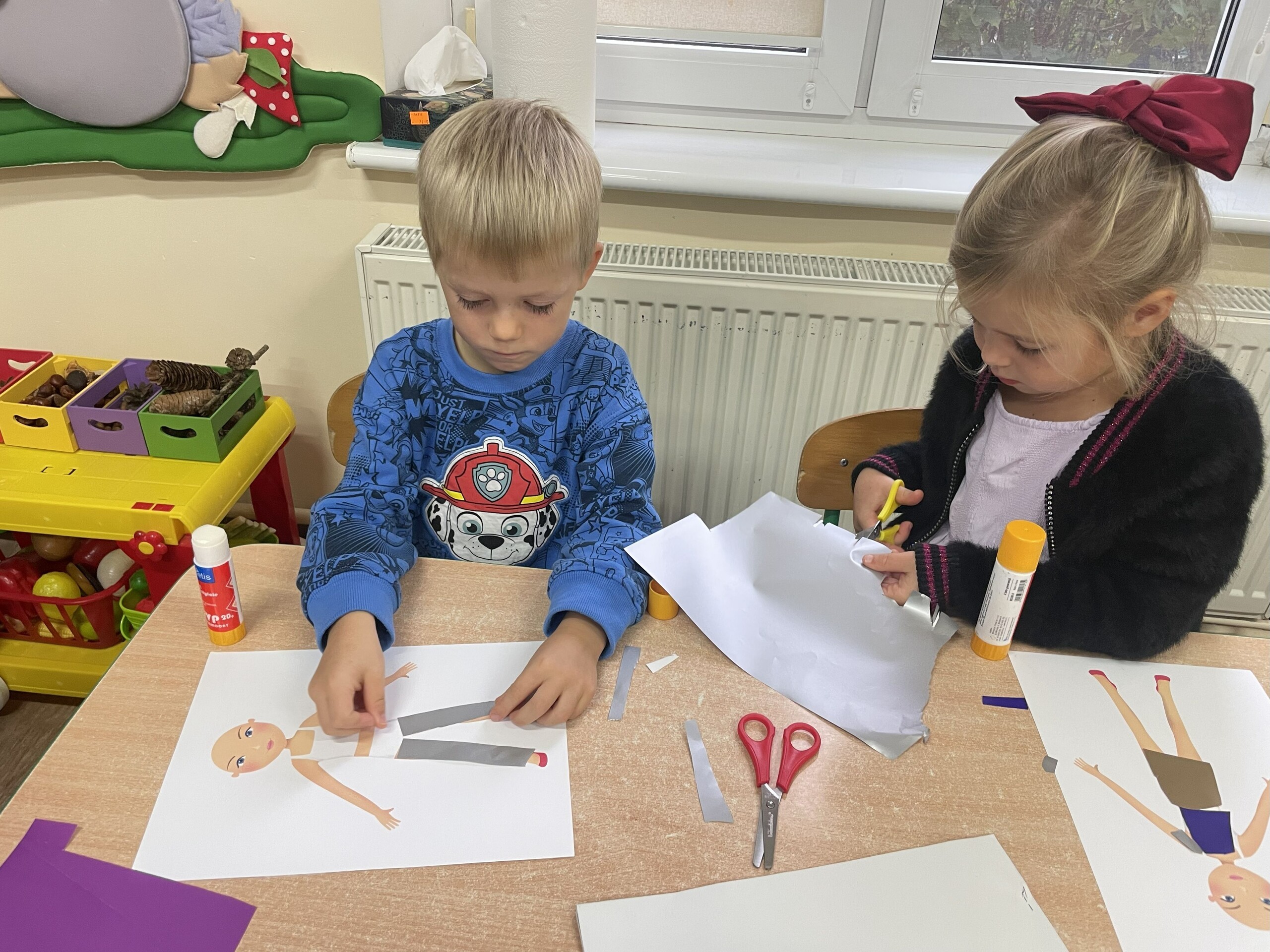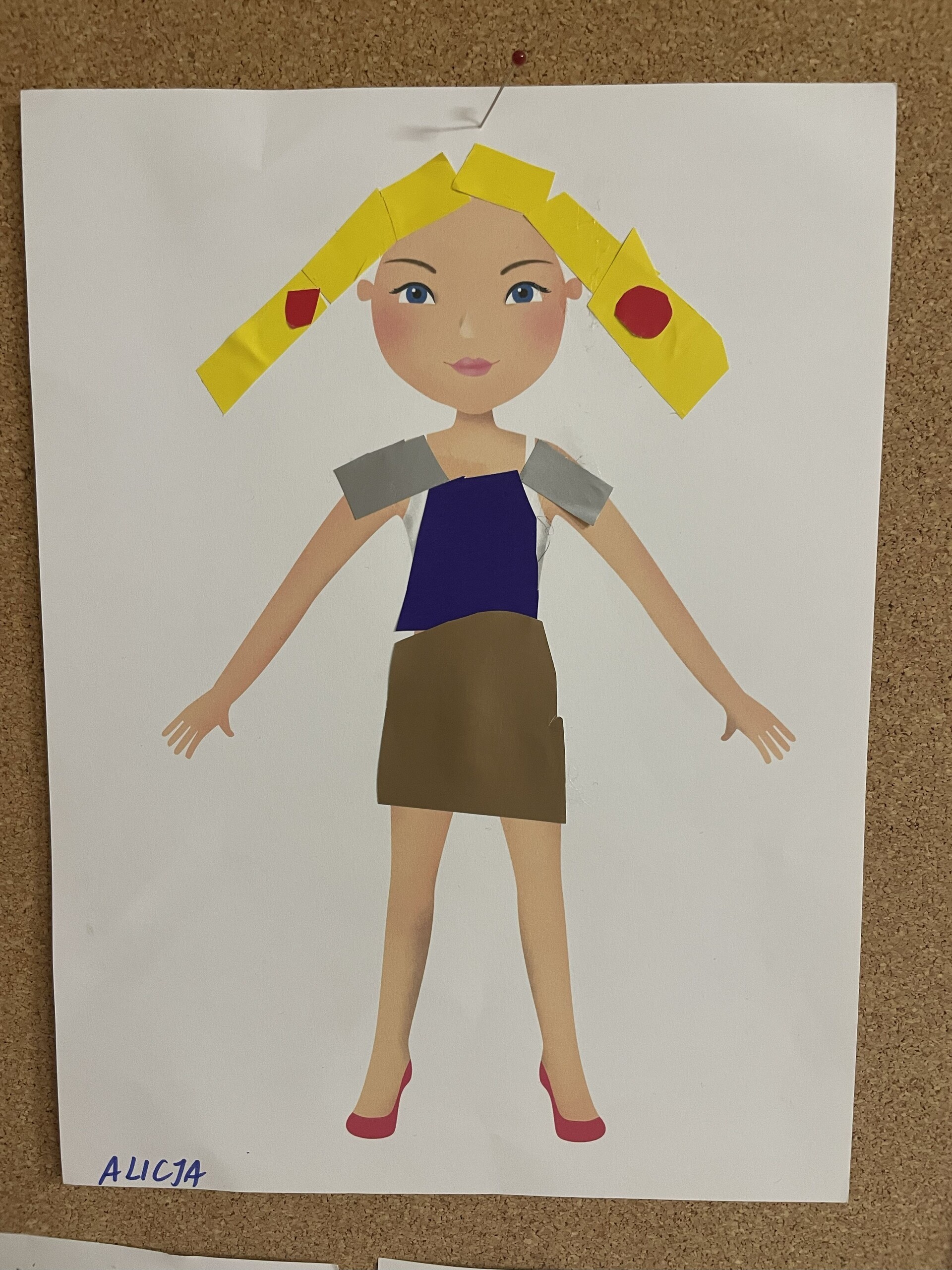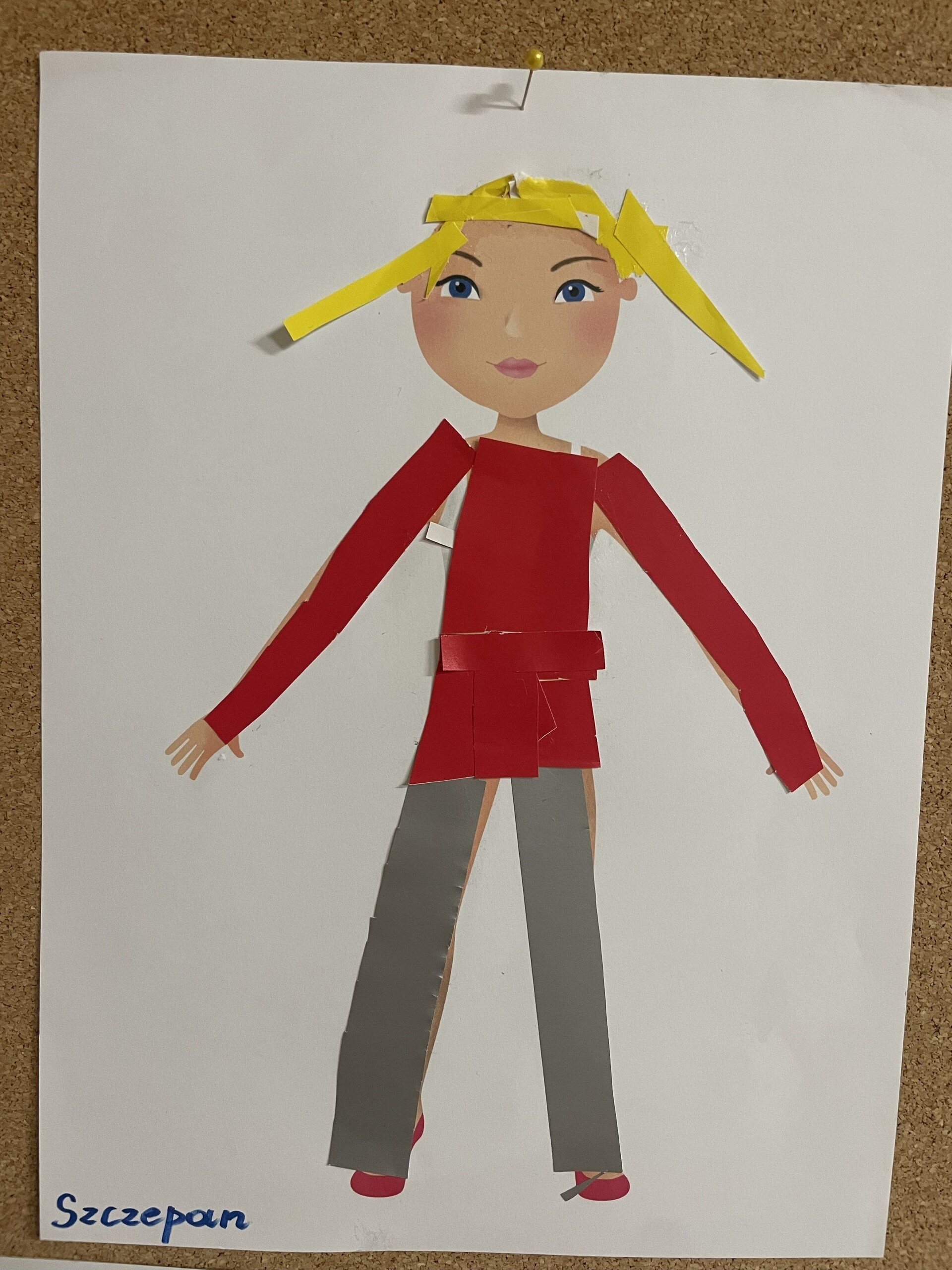 Starszaki, jako projektanci mody, stworzyli ubiór dla lalki.