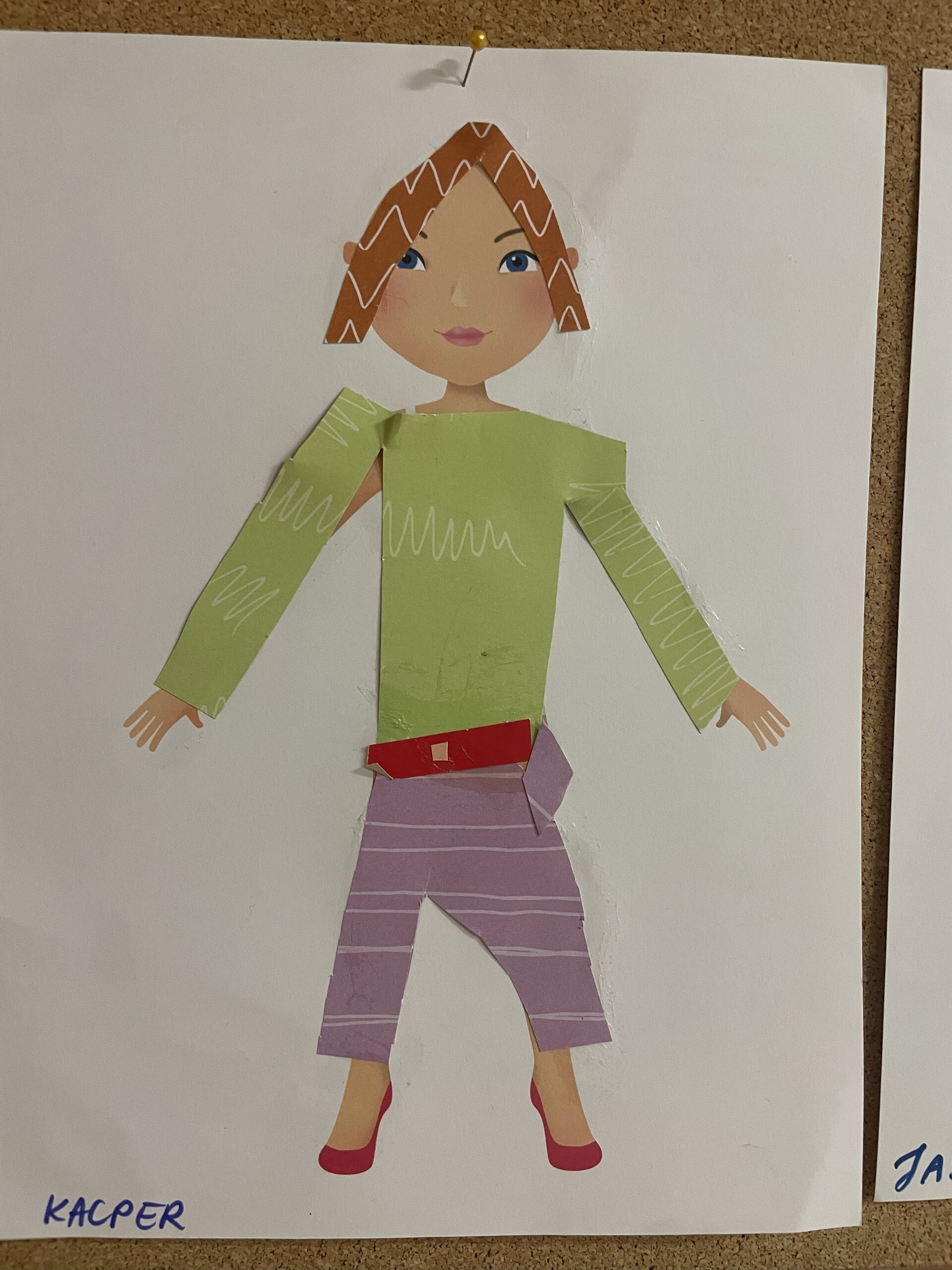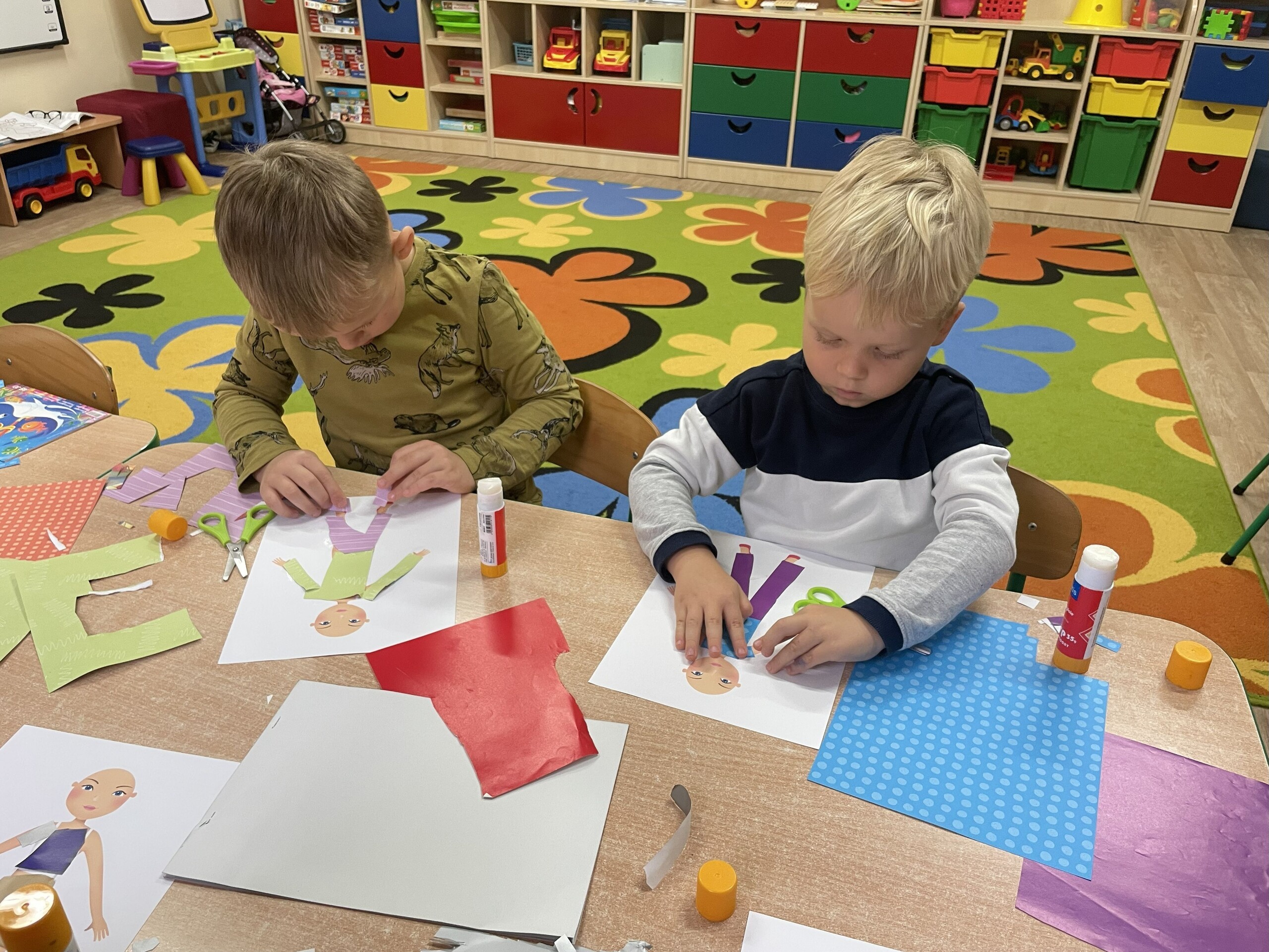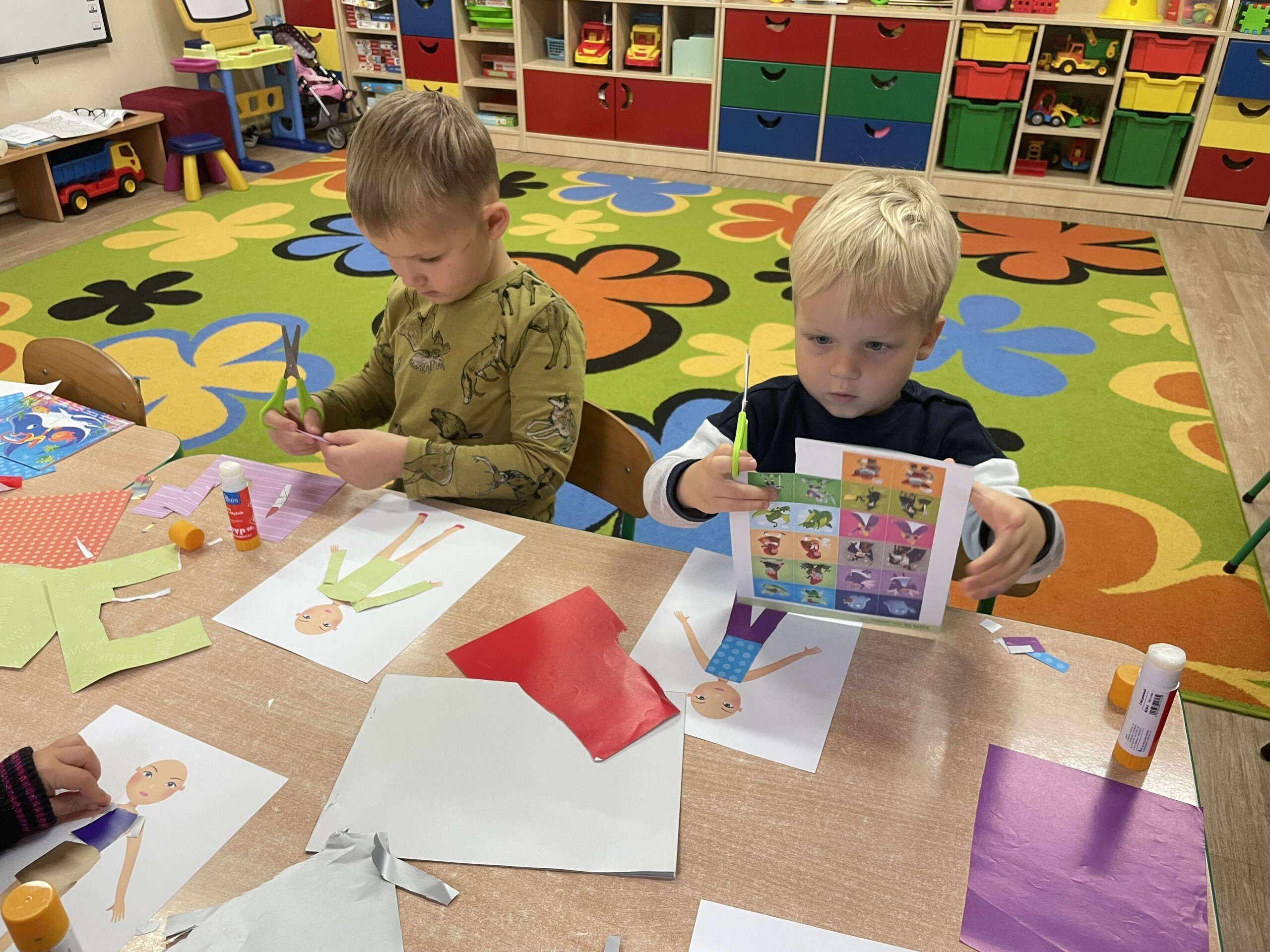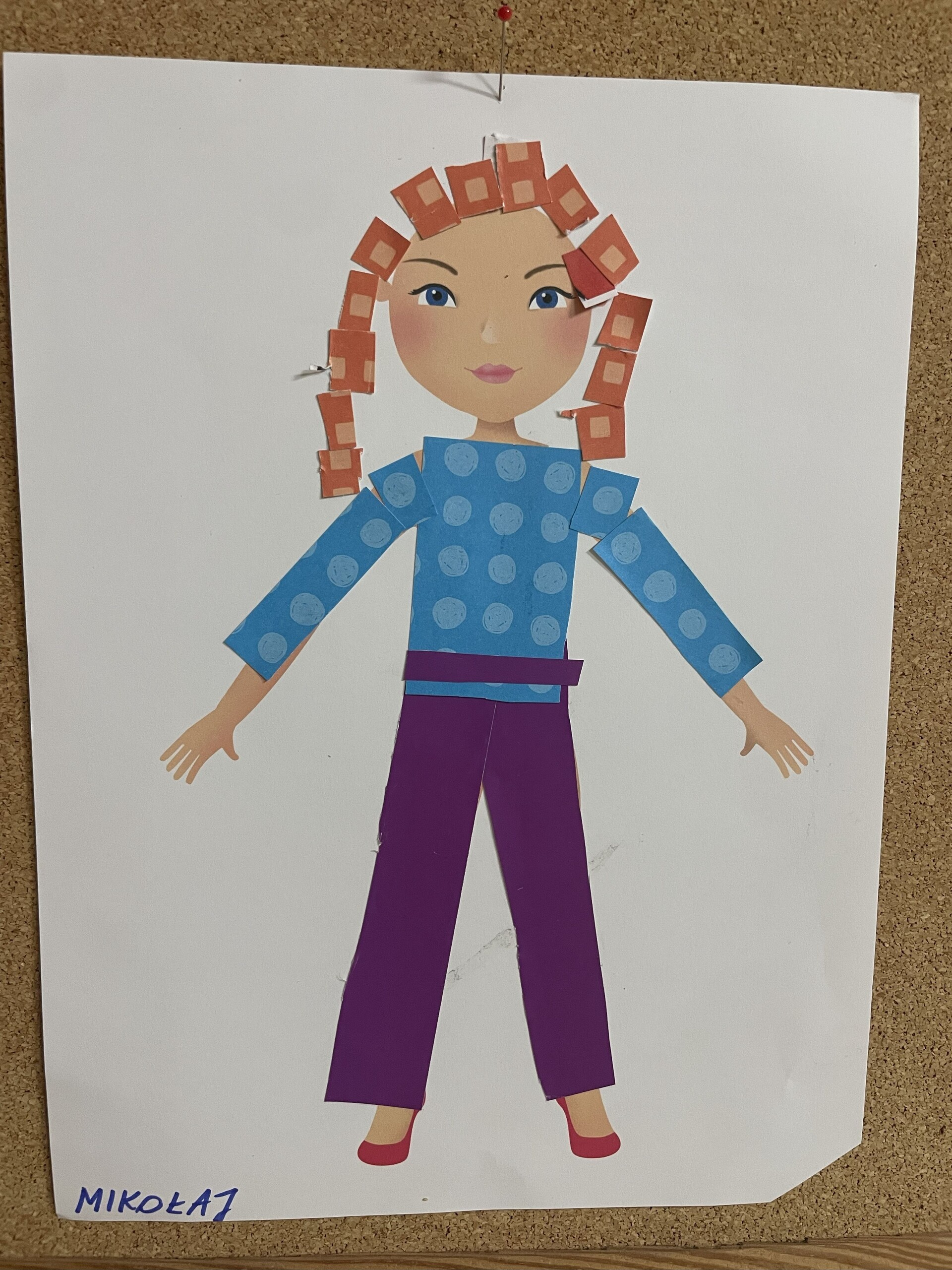 Starszaki, jako projektanci mody, stworzyli ubiór dla lalki.