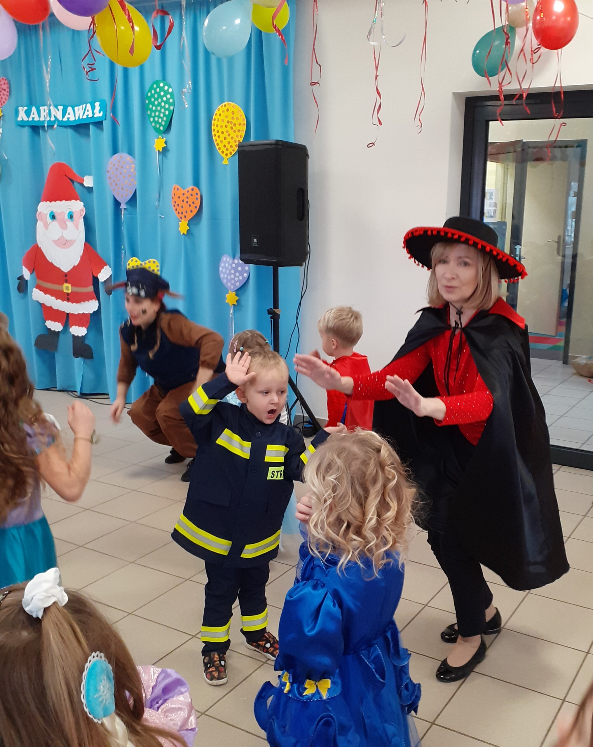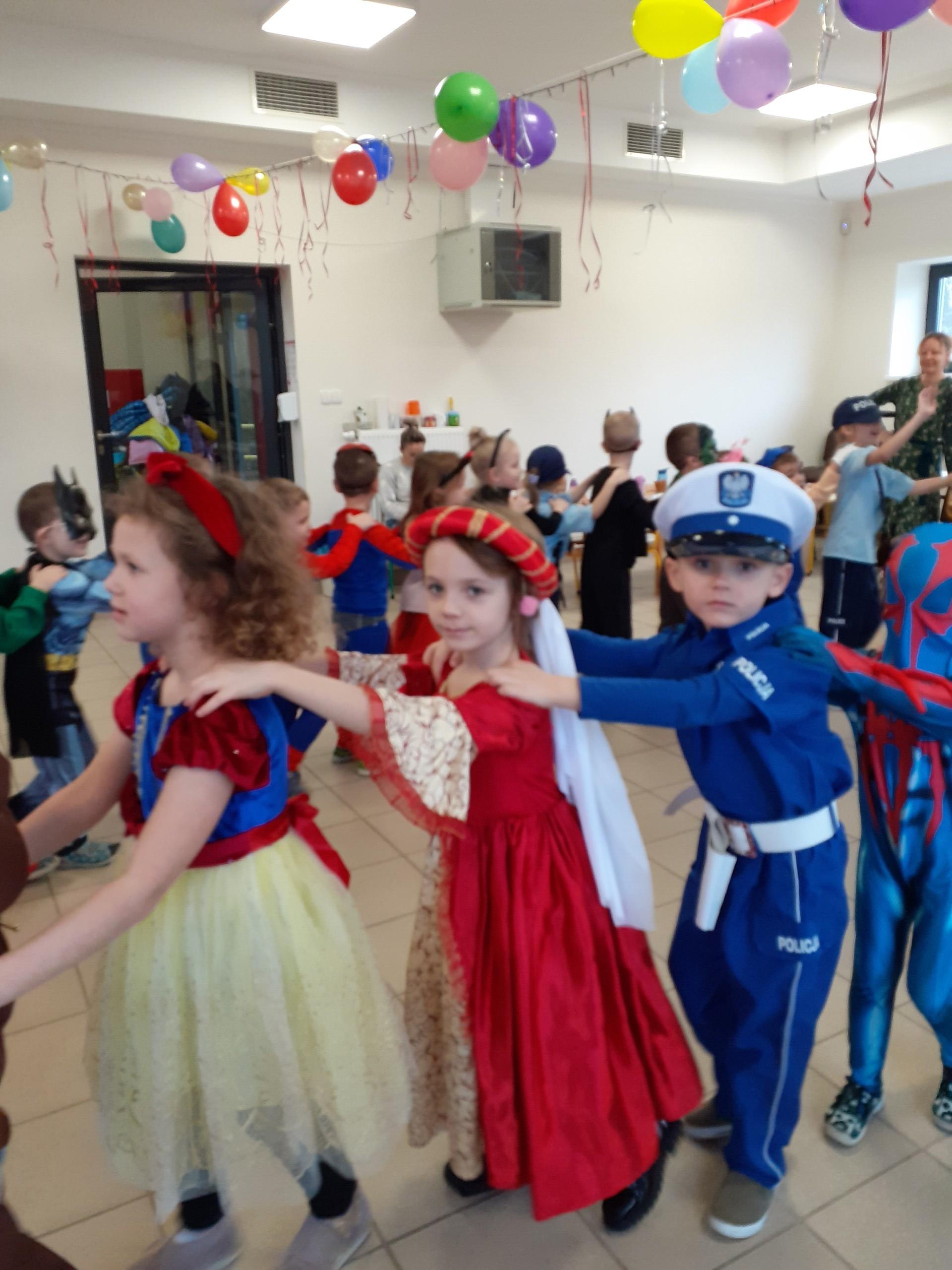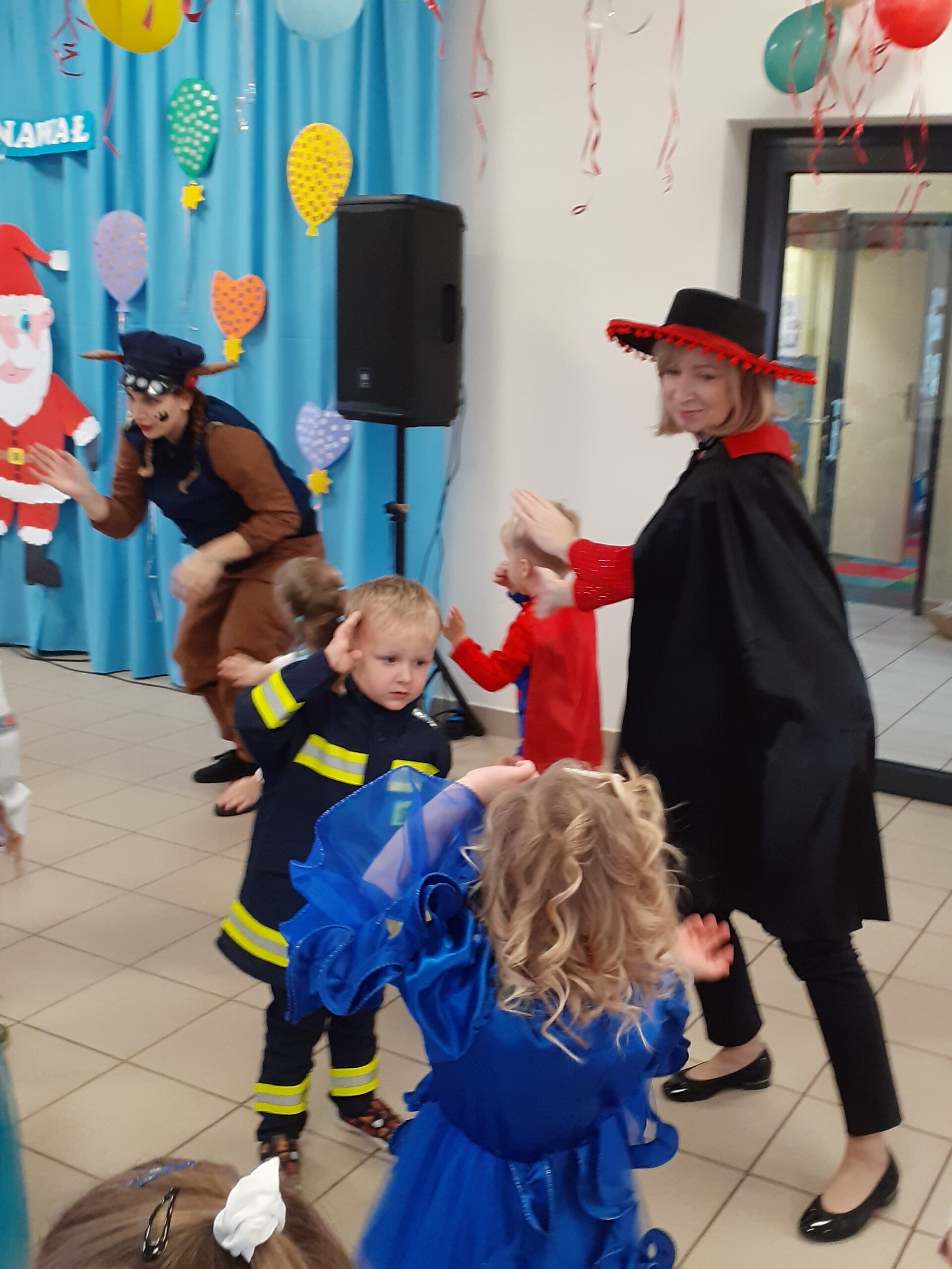 Na balu, jak to na balu - sami przebierańcy, dużo radości, dobra zabawa, smakołyki i ulubiony gość dzieci - Mikołaj.
