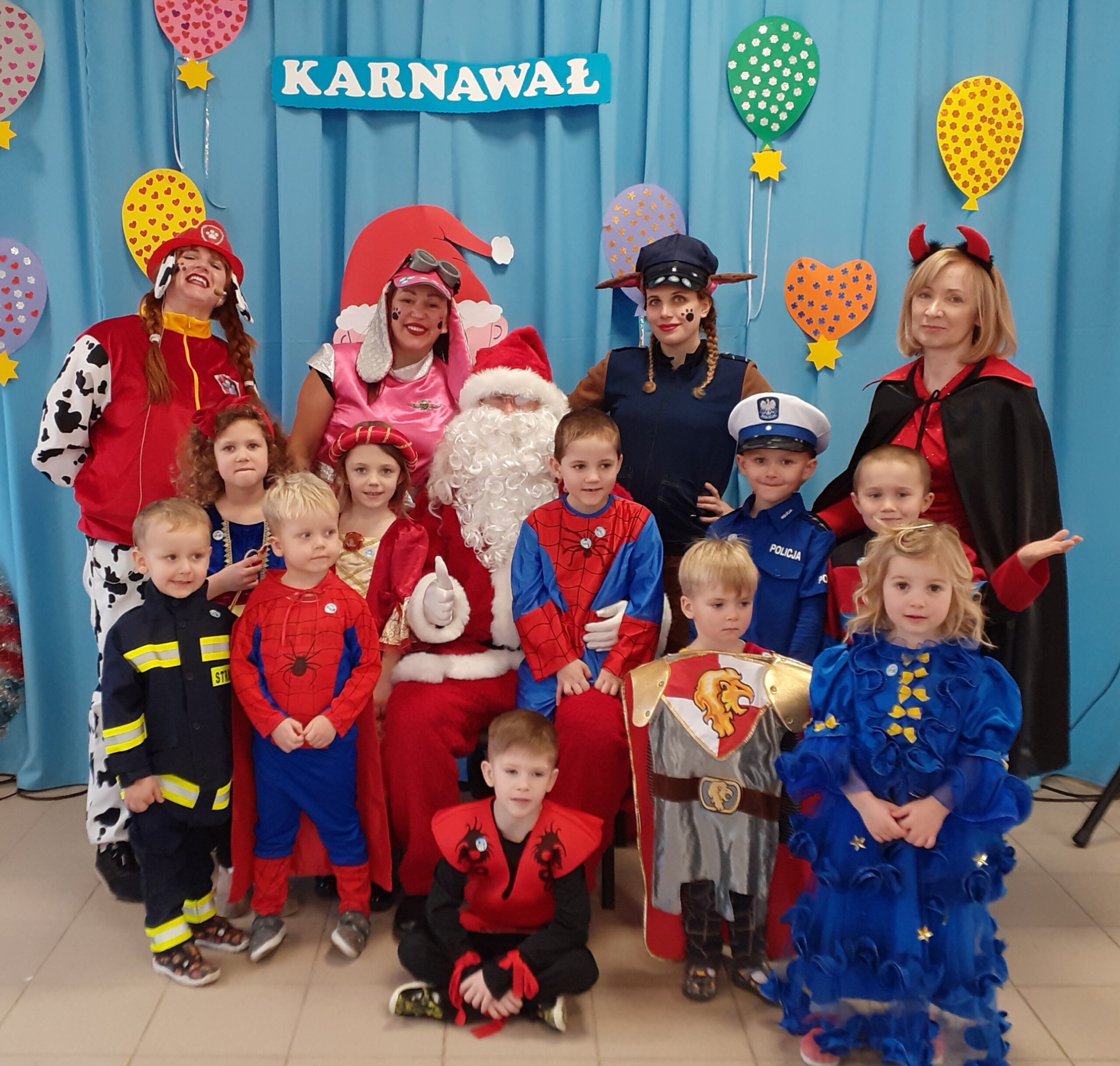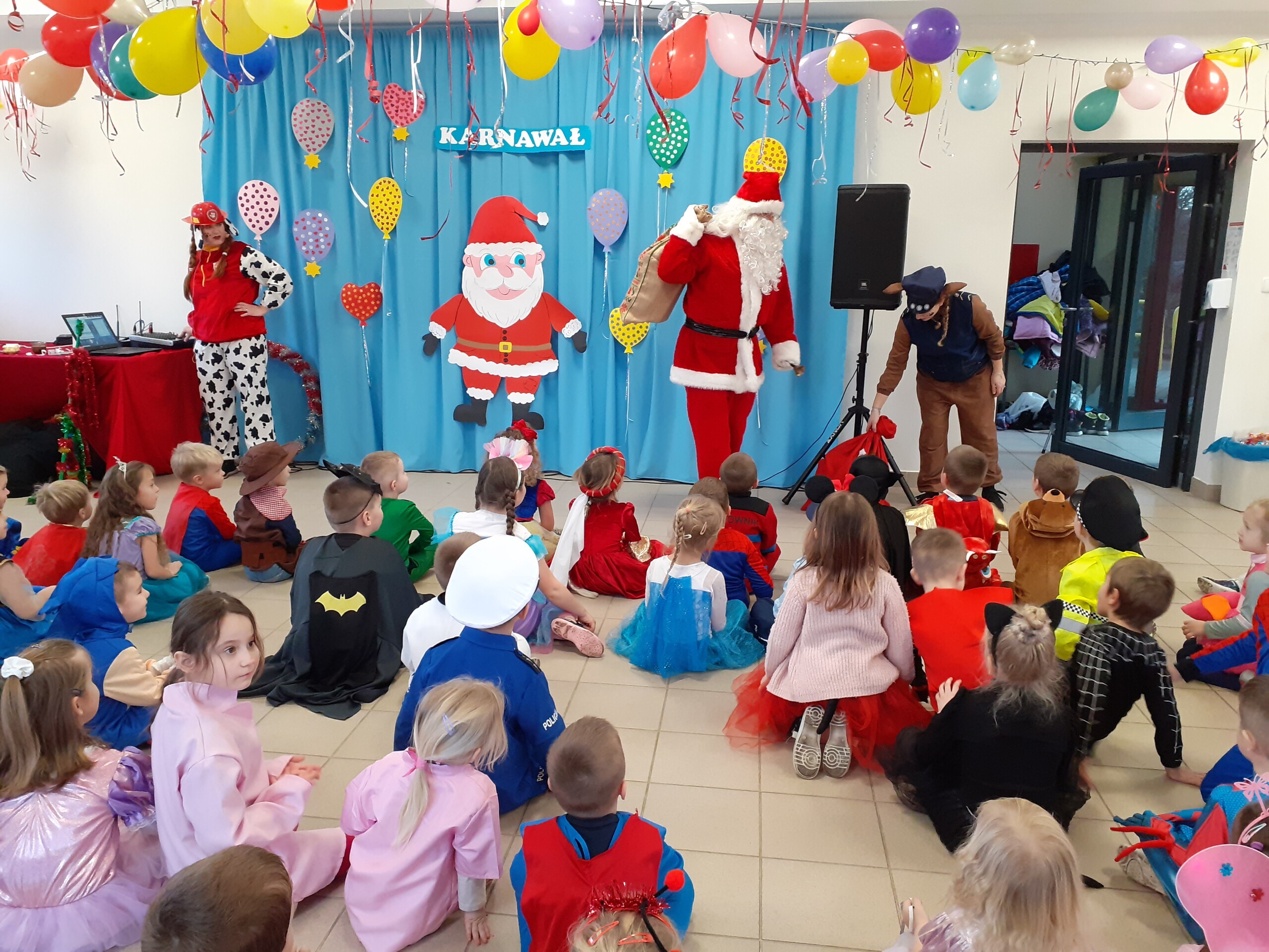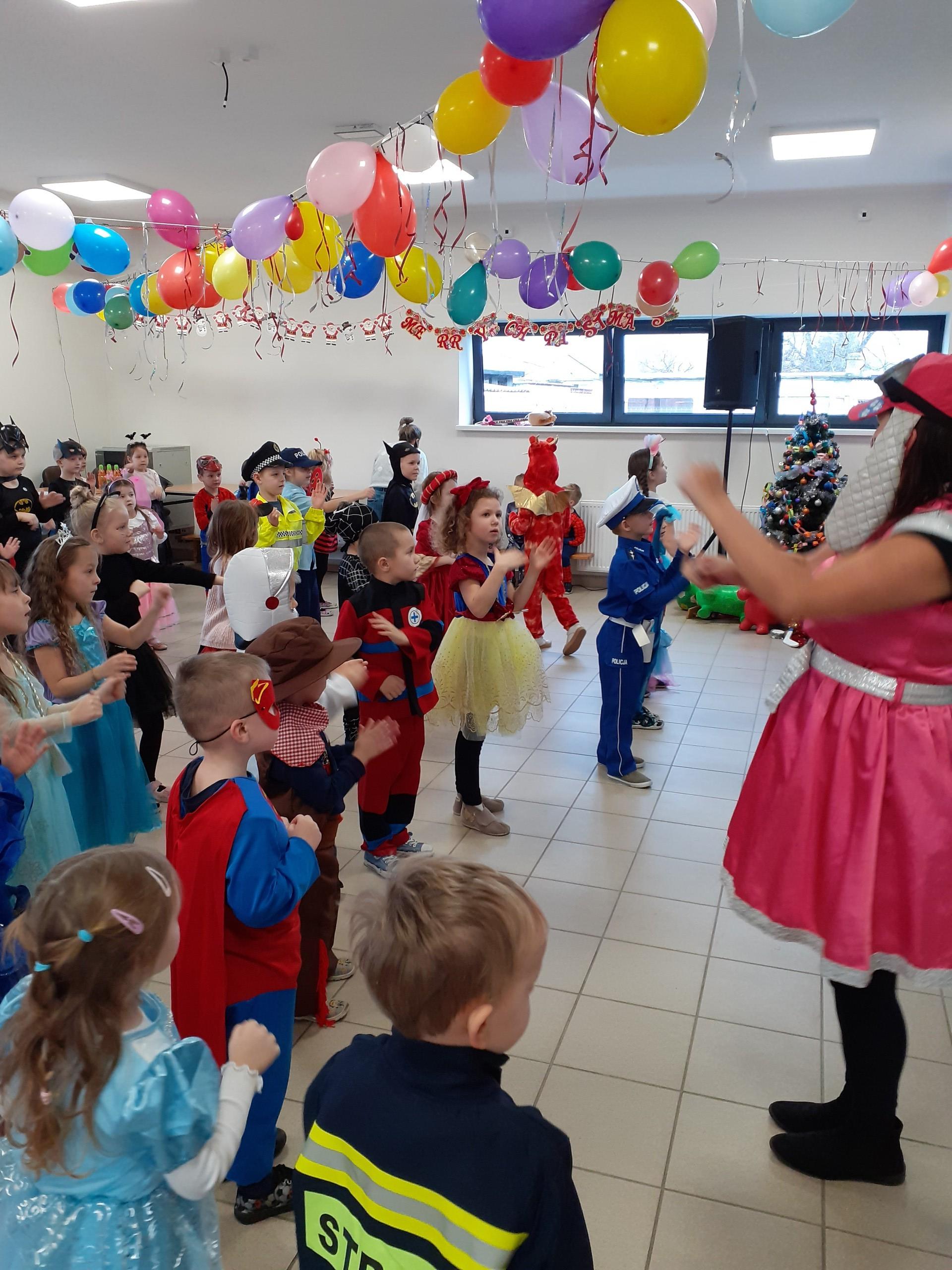 Na balu, jak to na balu - sami przebierańcy, dużo radości, dobra zabawa, smakołyki i ulubiony gość dzieci - Mikołaj.