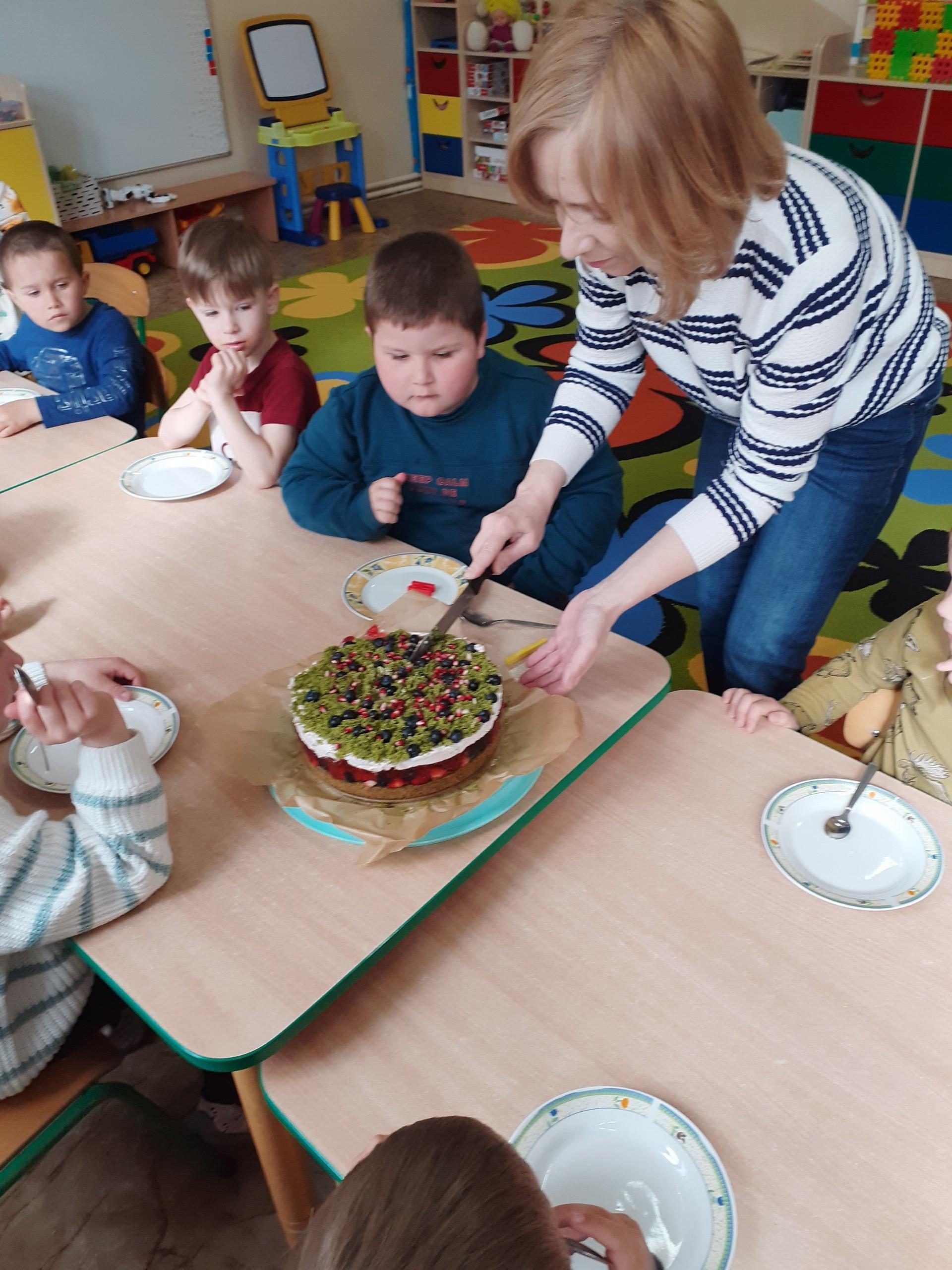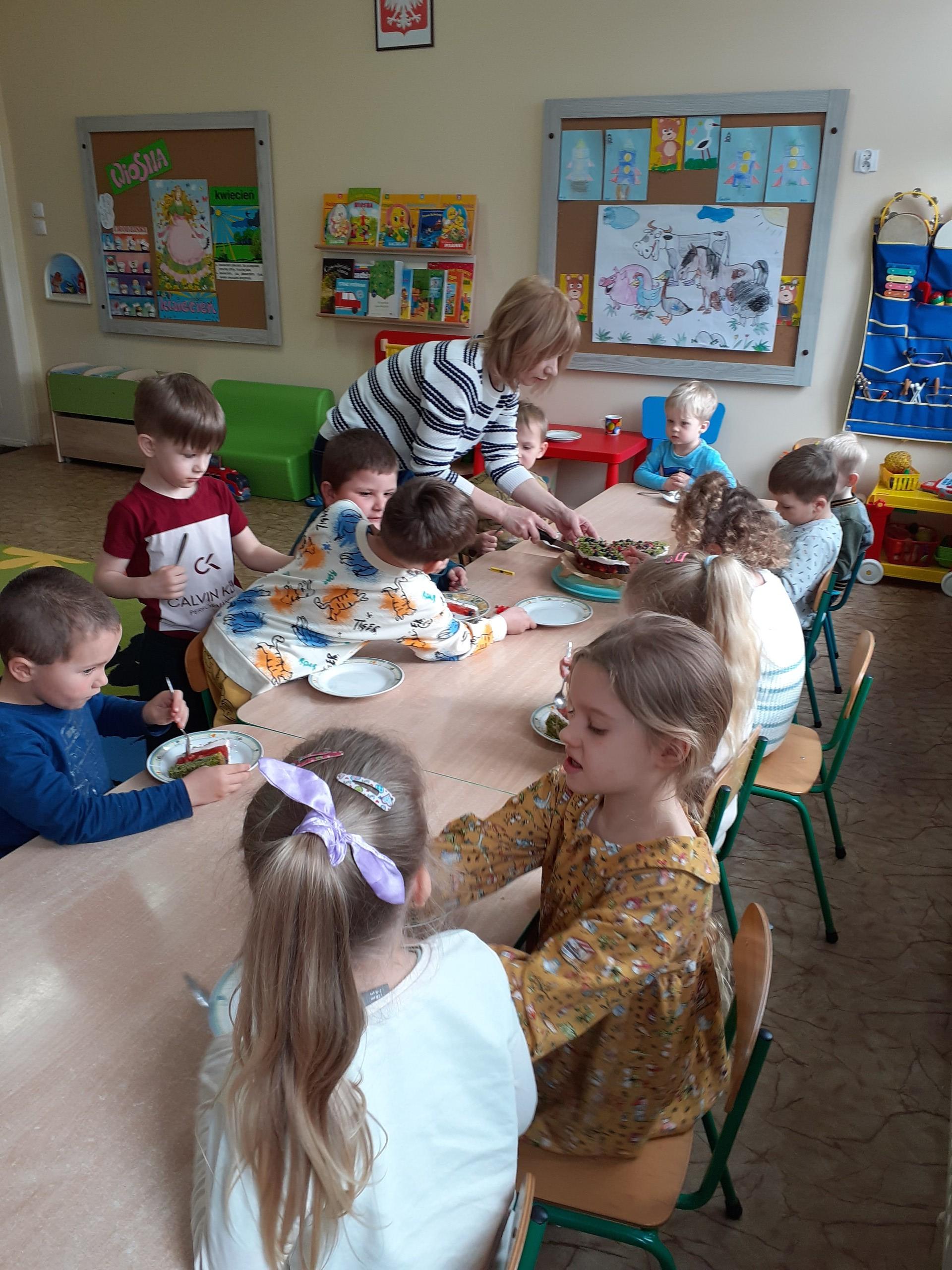 Przedszkolaki już wiedzą kto to ,, śmieciarz" i ,, wandal". Miejmy nadzieję, że gdy dorosną będą dalej o tym pamiętać. Z okazji Dnia Ziemi, mama Kacpra upiekła przepyszne ciasto o nazwie ,,Leśny mech". Pani Beato, ponownie bardzo dziękujemy!