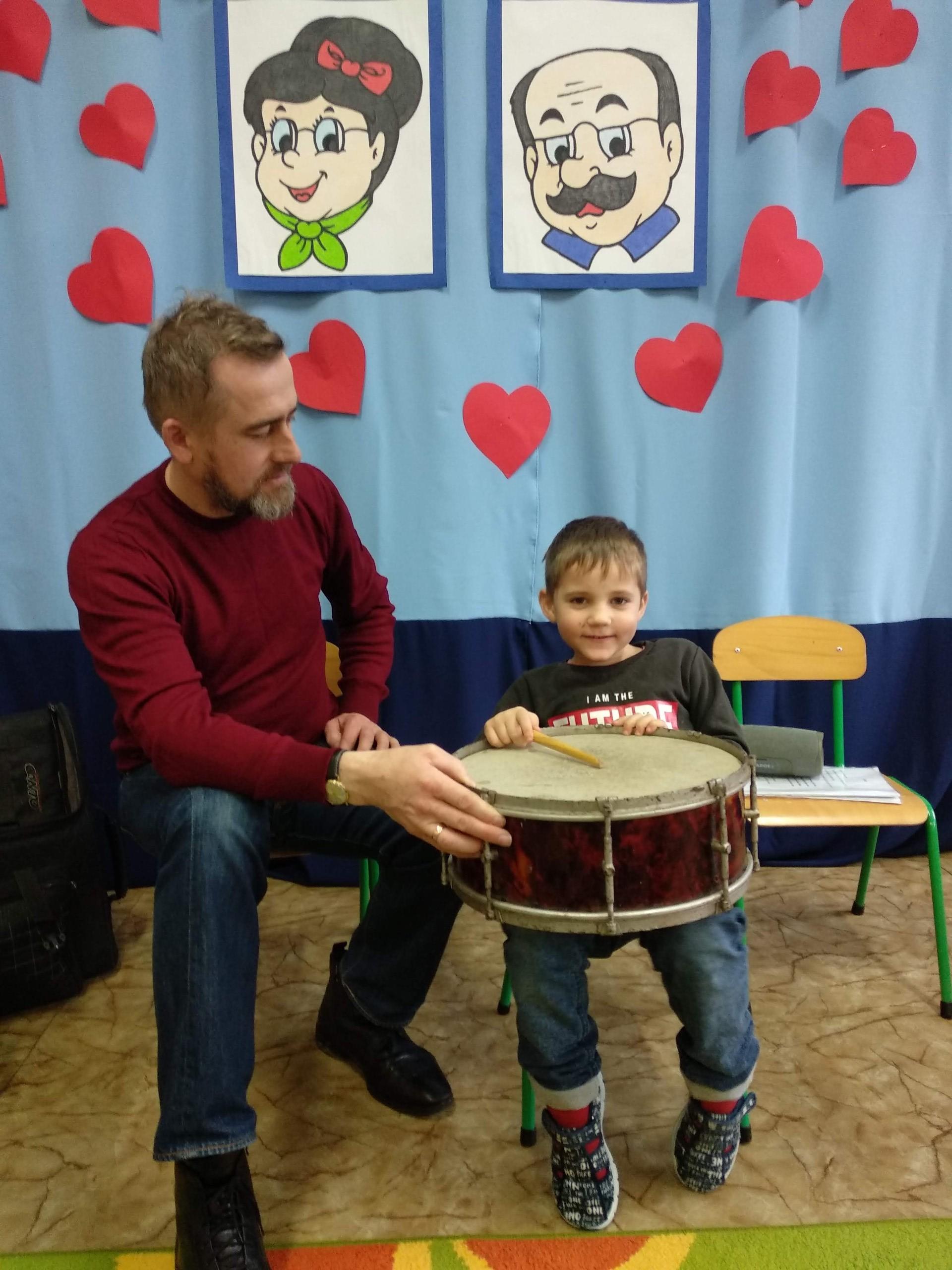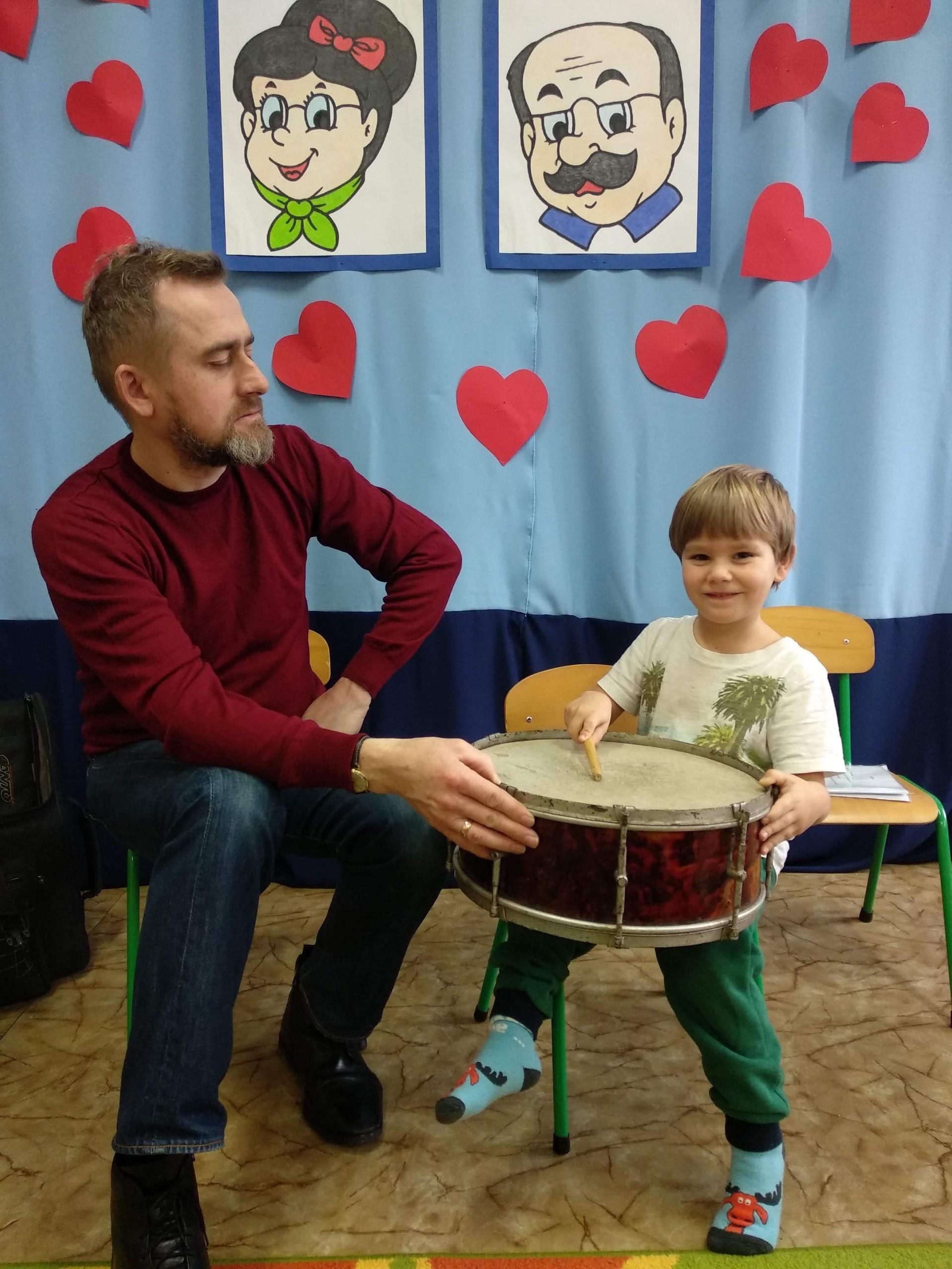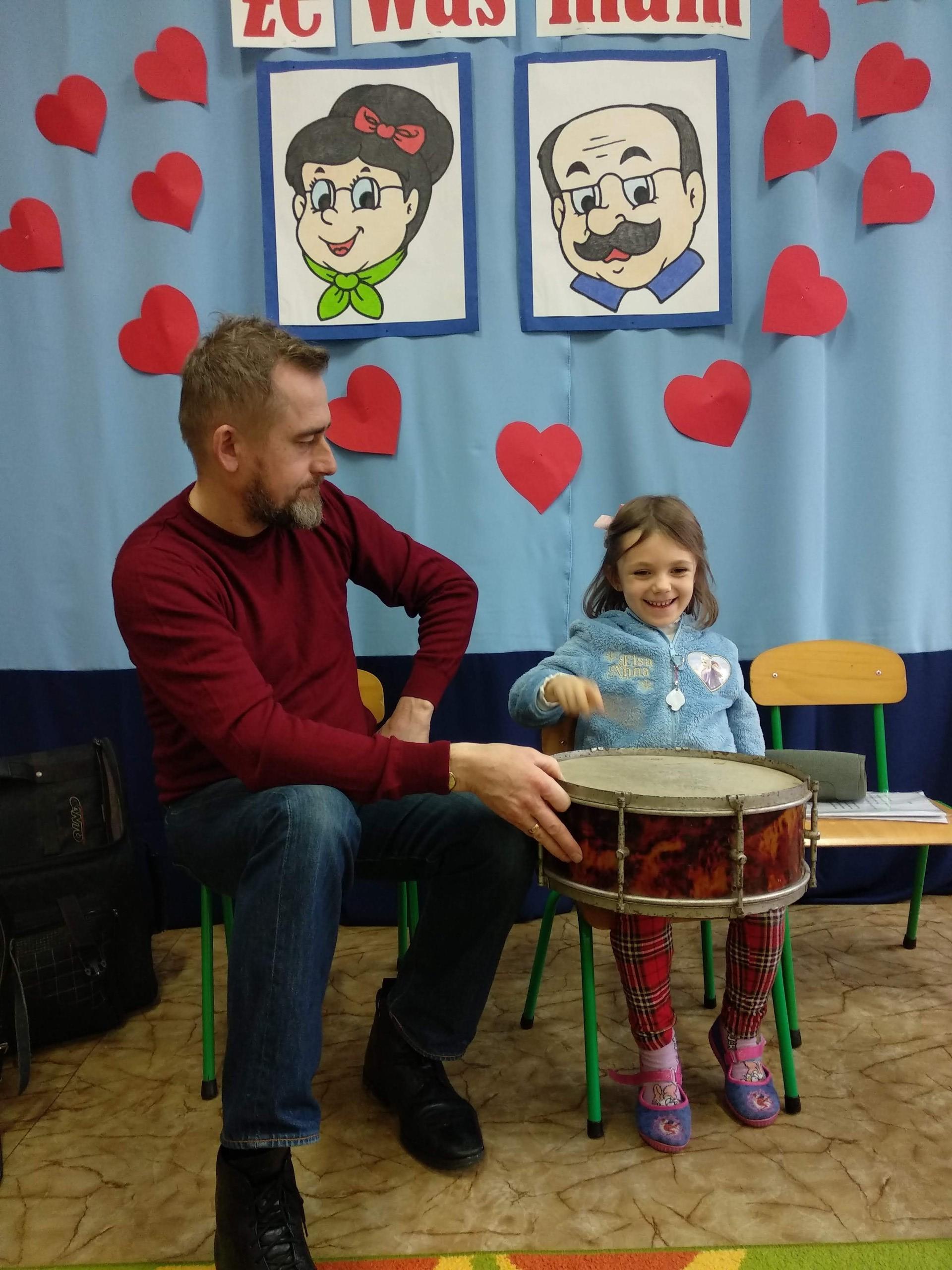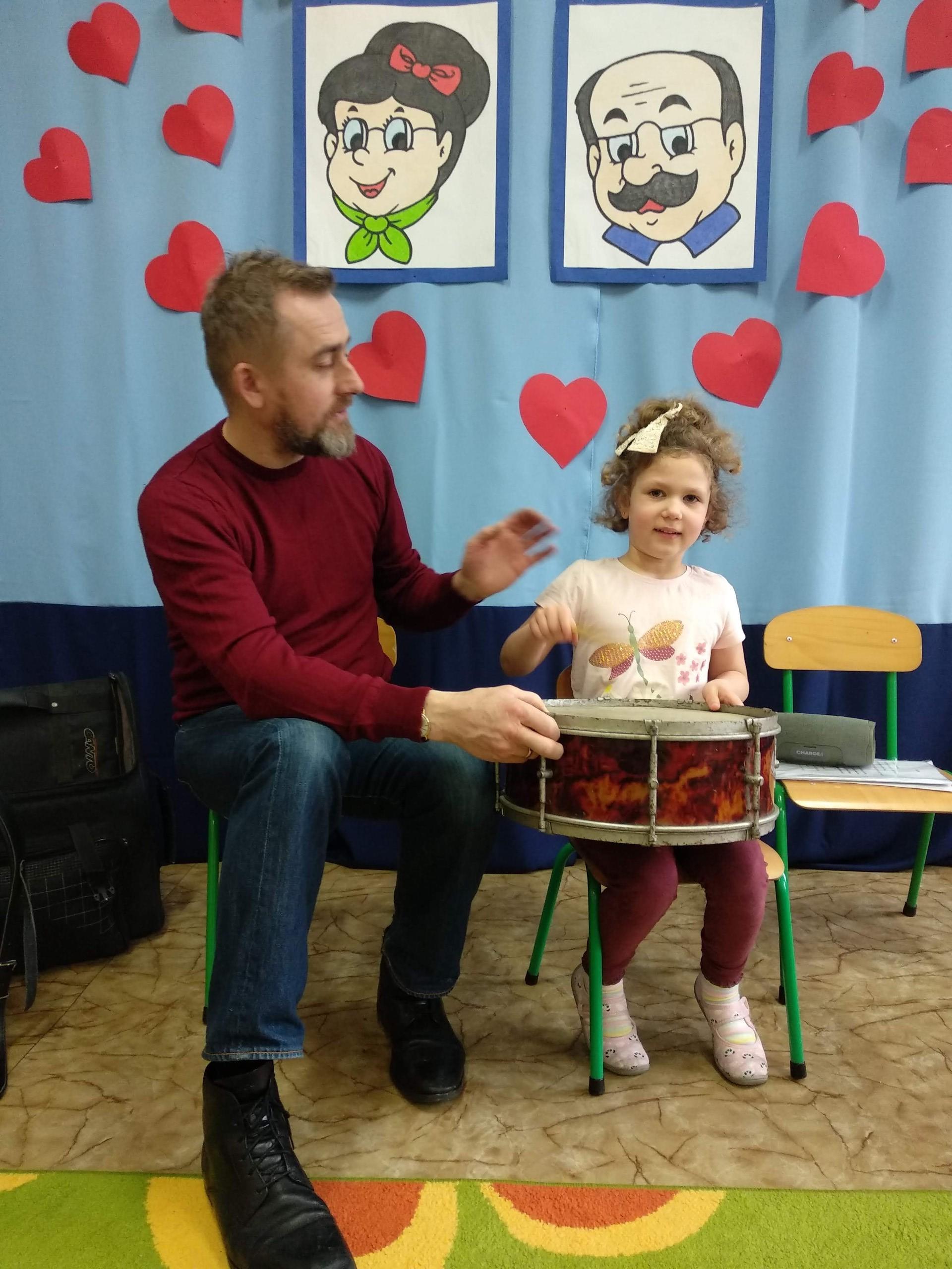 Na zajęciach, prowadzonych przez pana Andrzeja, dzieci rozwijały poczucie rytmu, słuch muzyczny, a także miały możliwość obcowania z różnymi instrumentami.