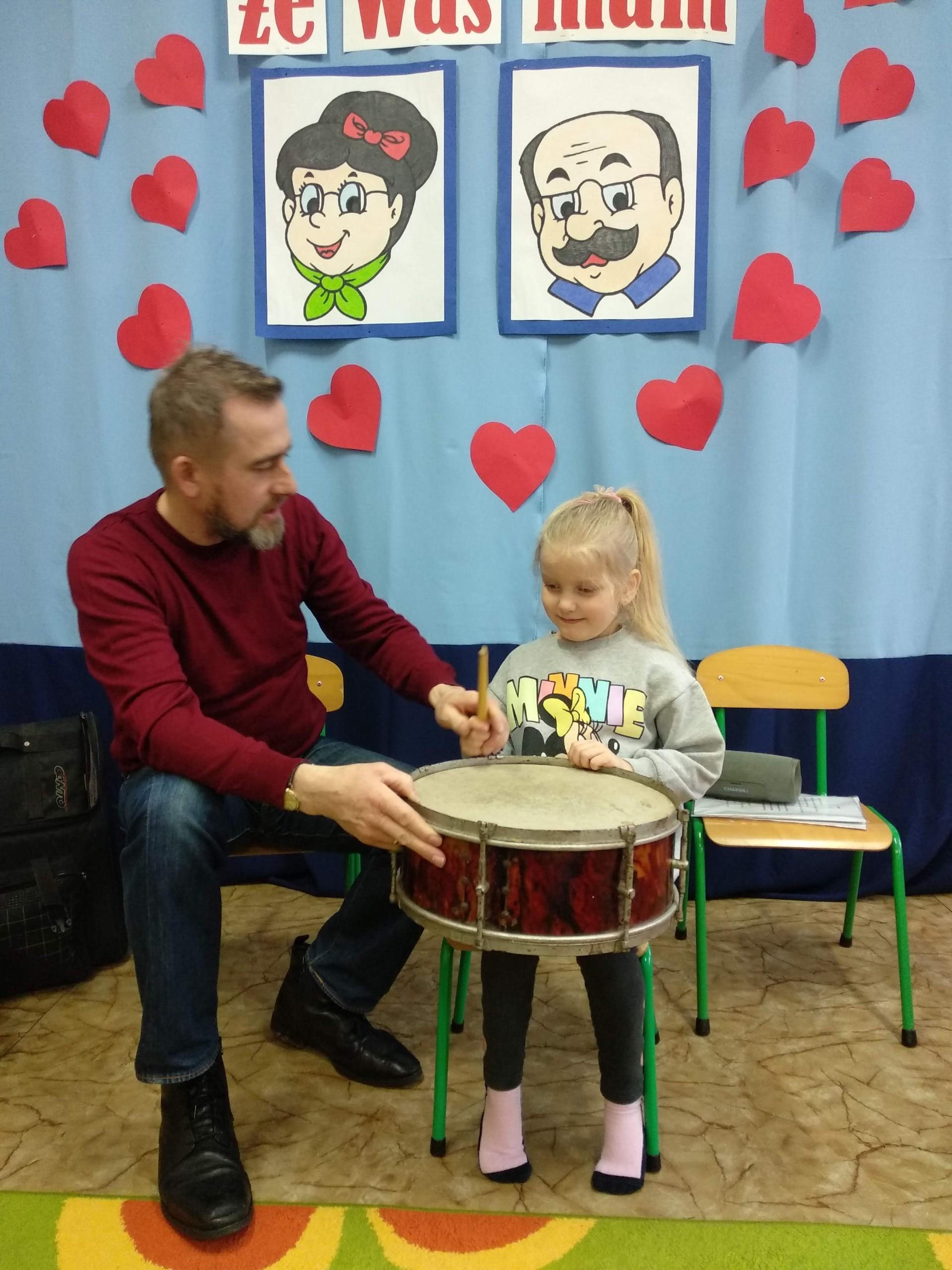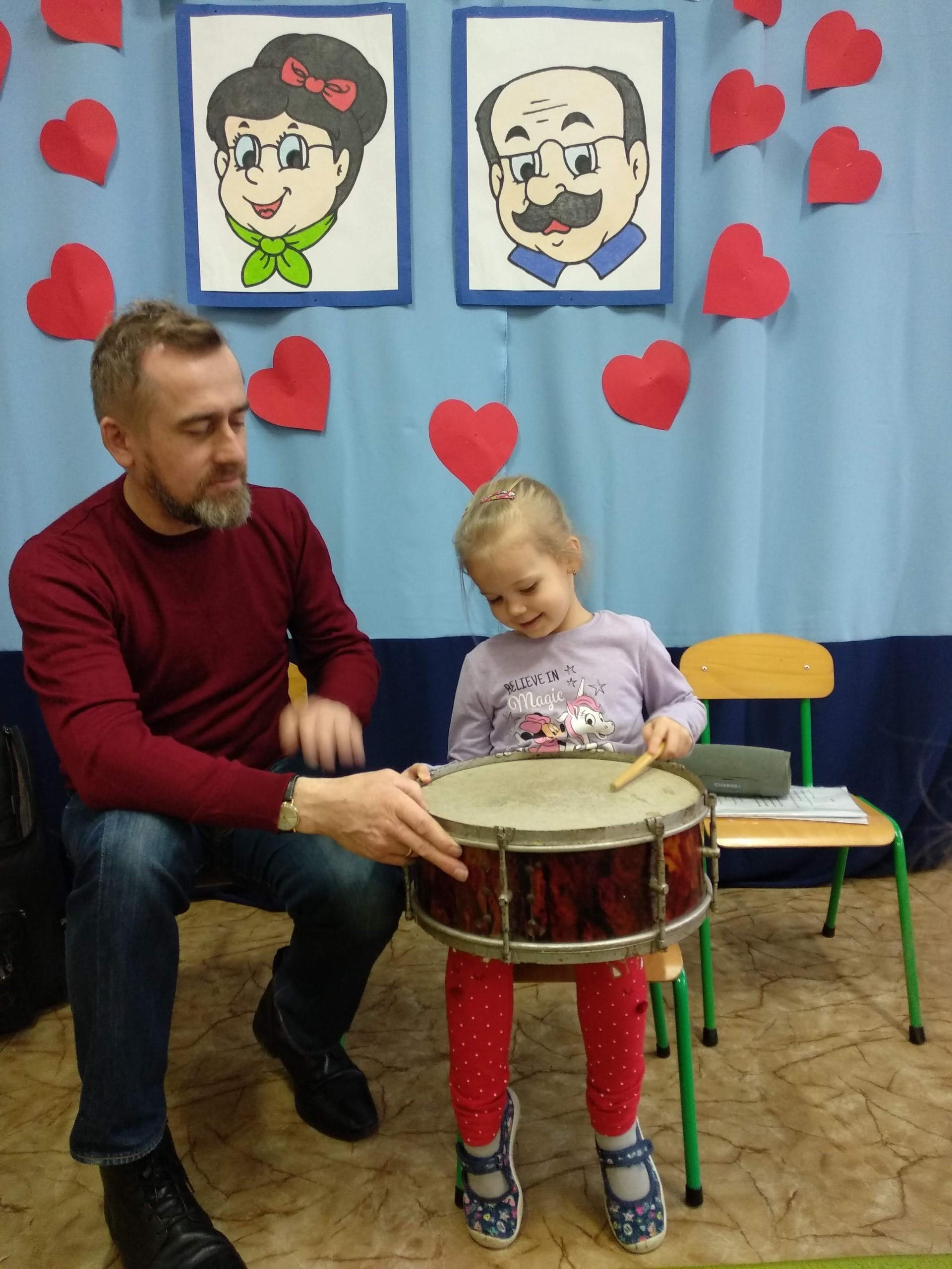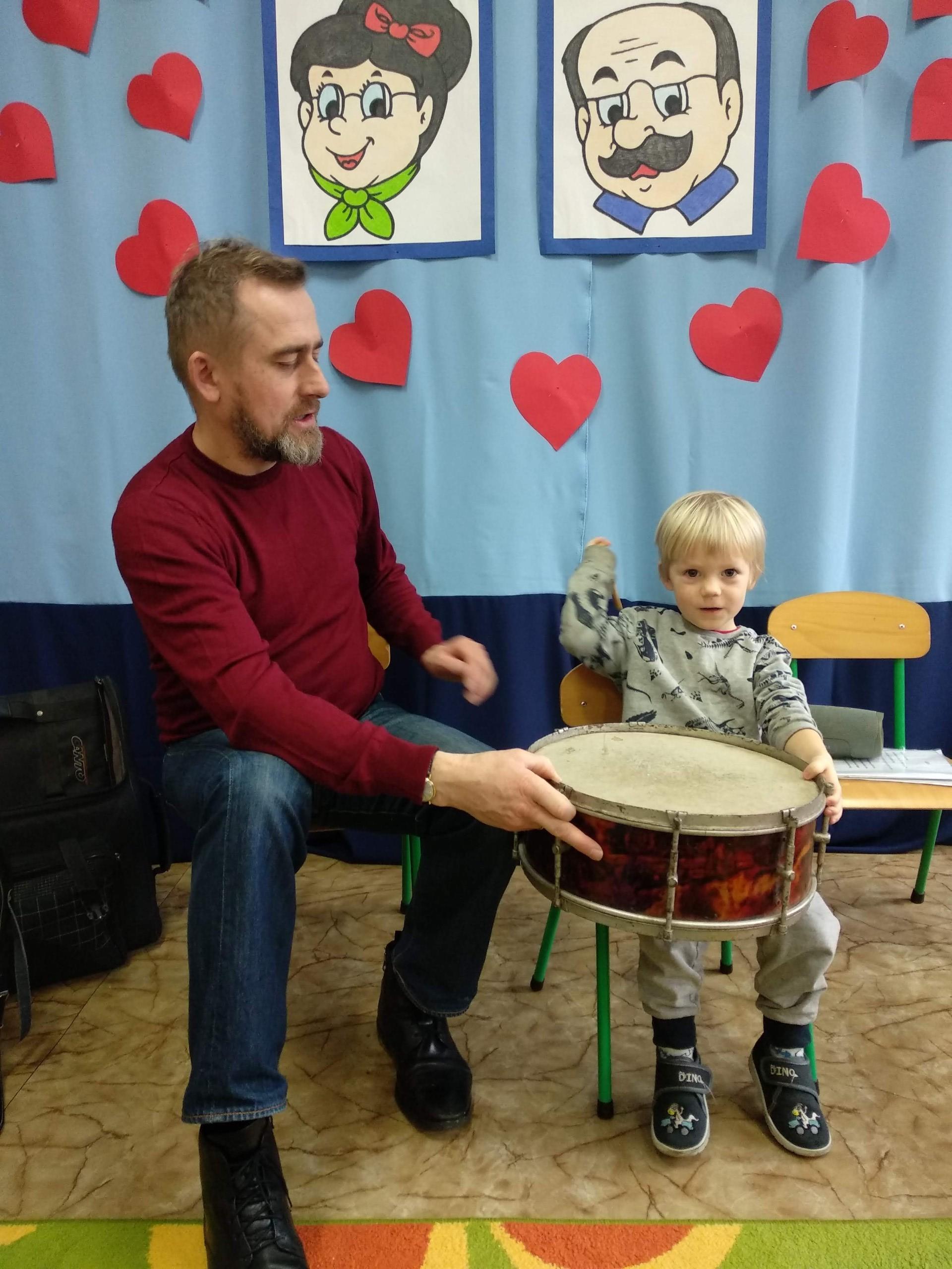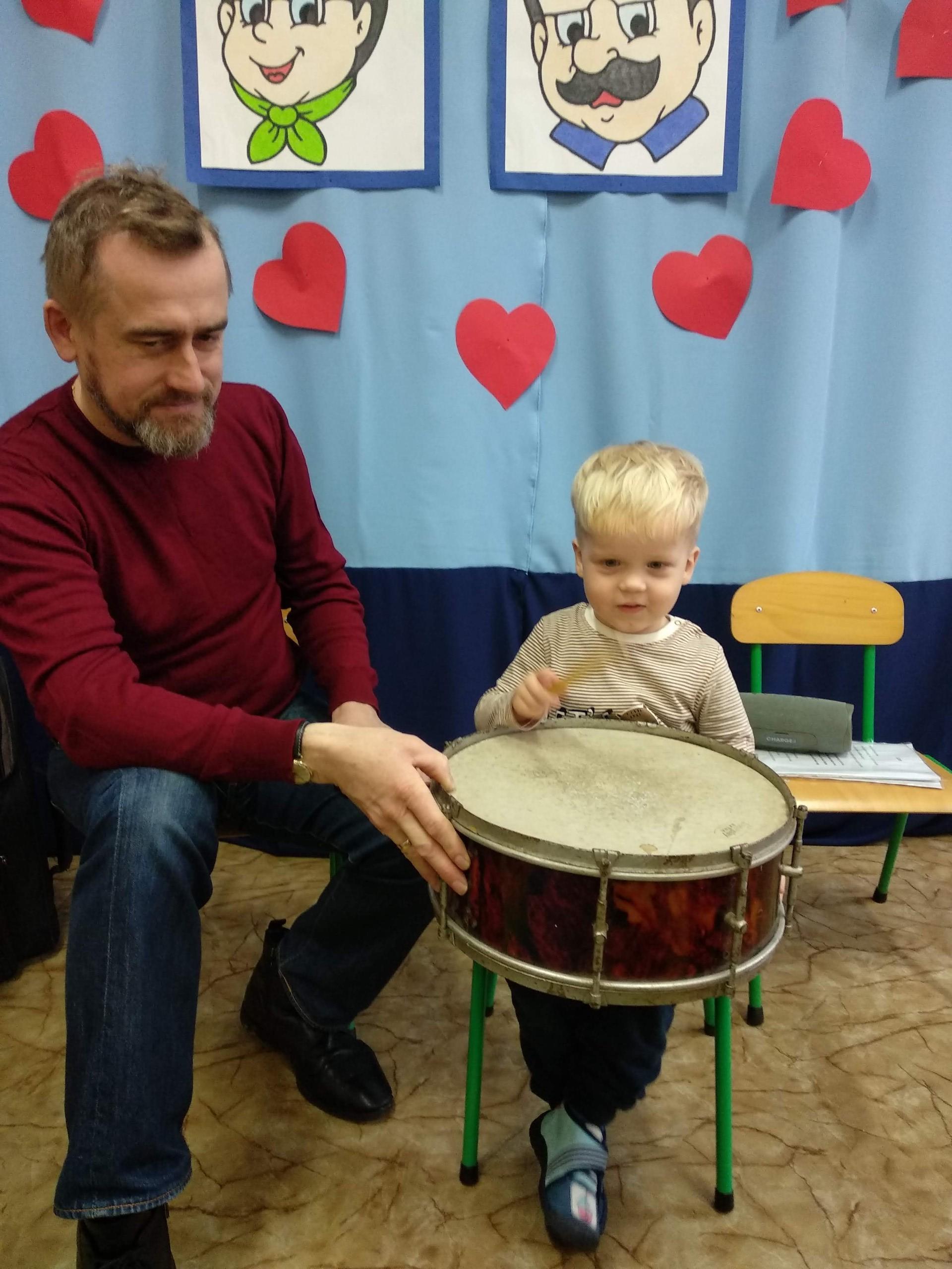 Na zajęciach, prowadzonych przez pana Andrzeja, dzieci rozwijały poczucie rytmu, słuch muzyczny, a także miały możliwość obcowania z różnymi instrumentami.
