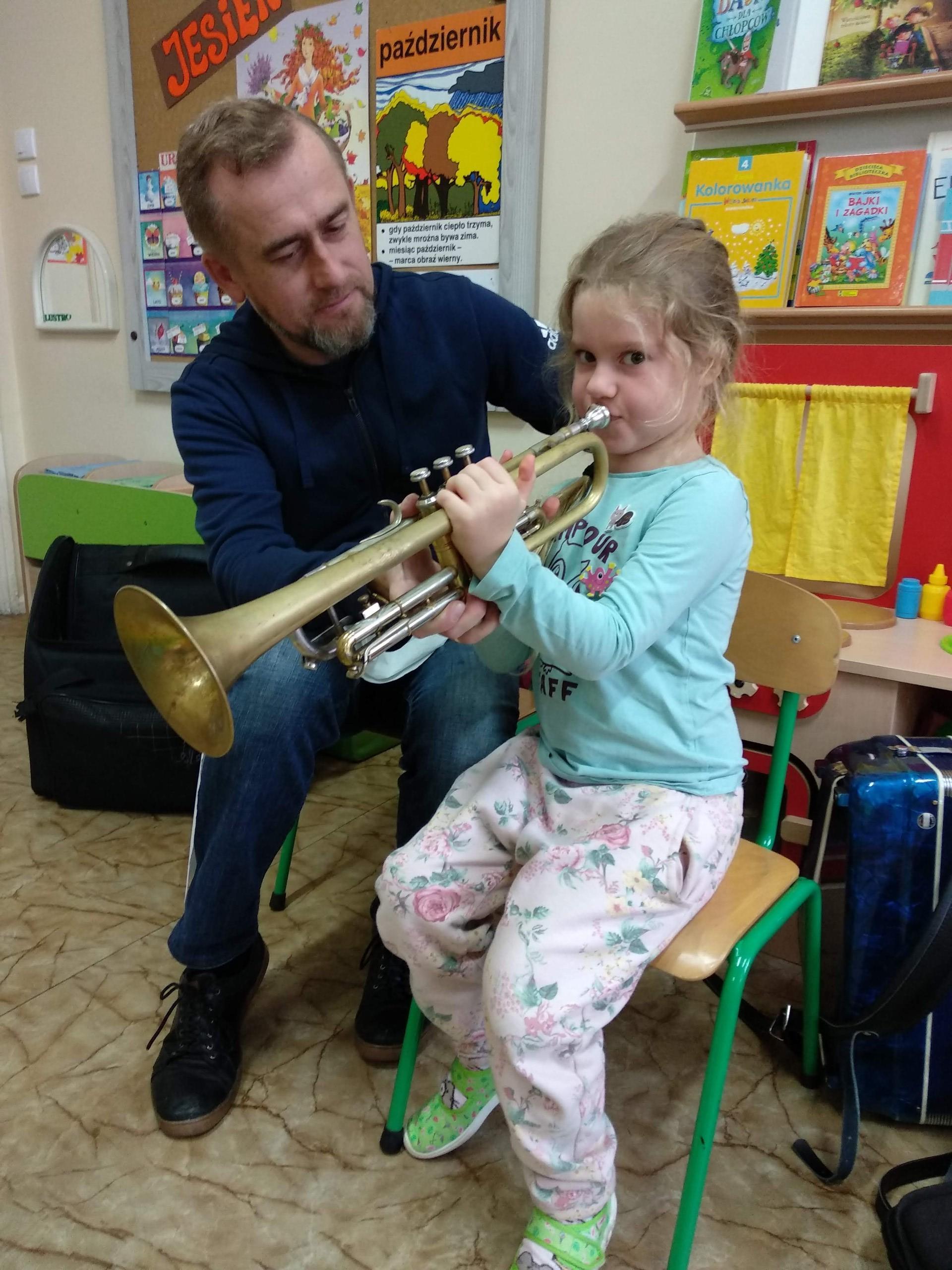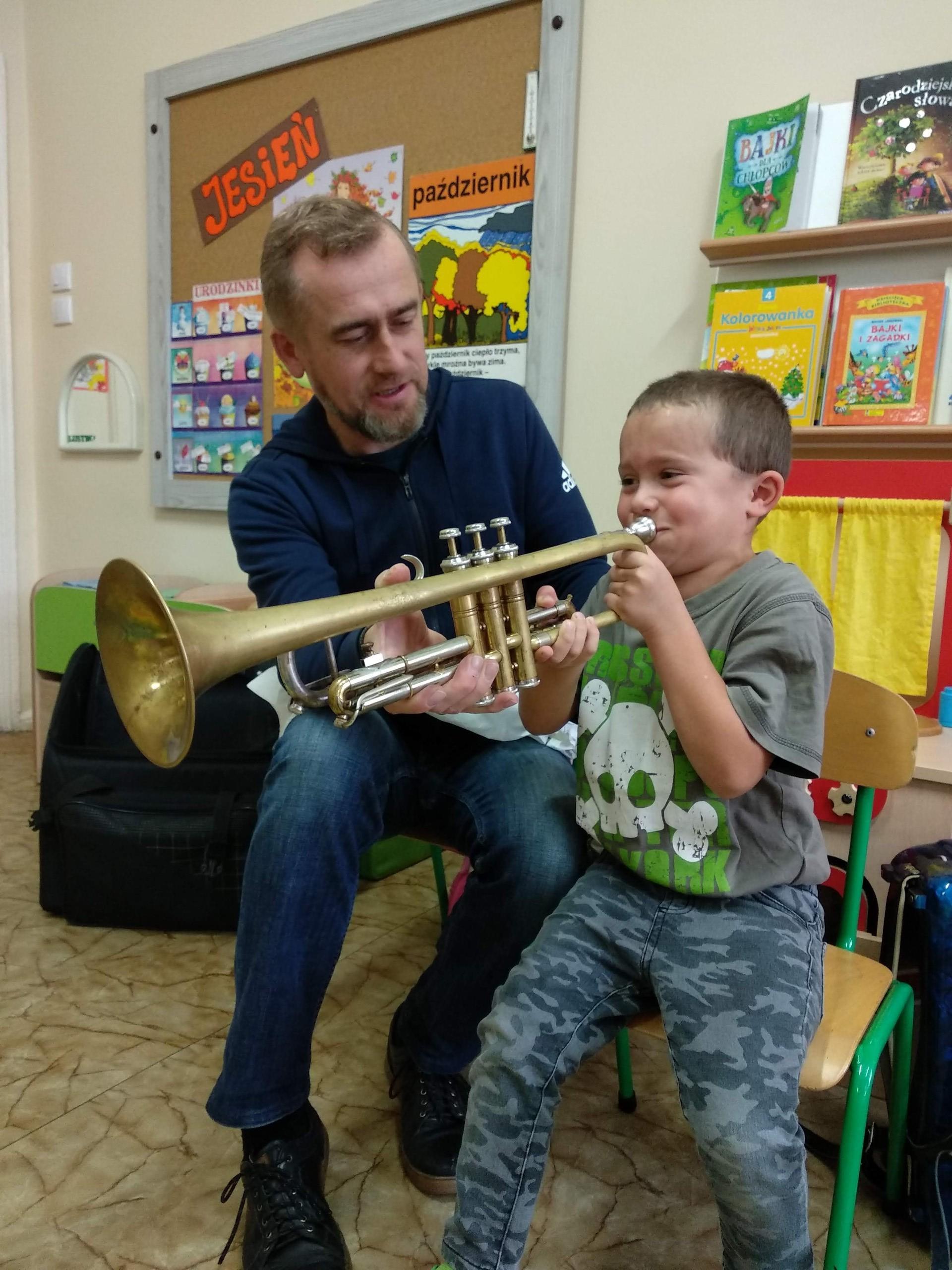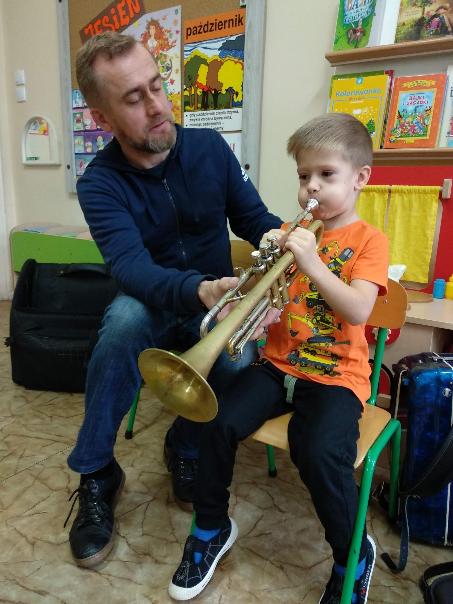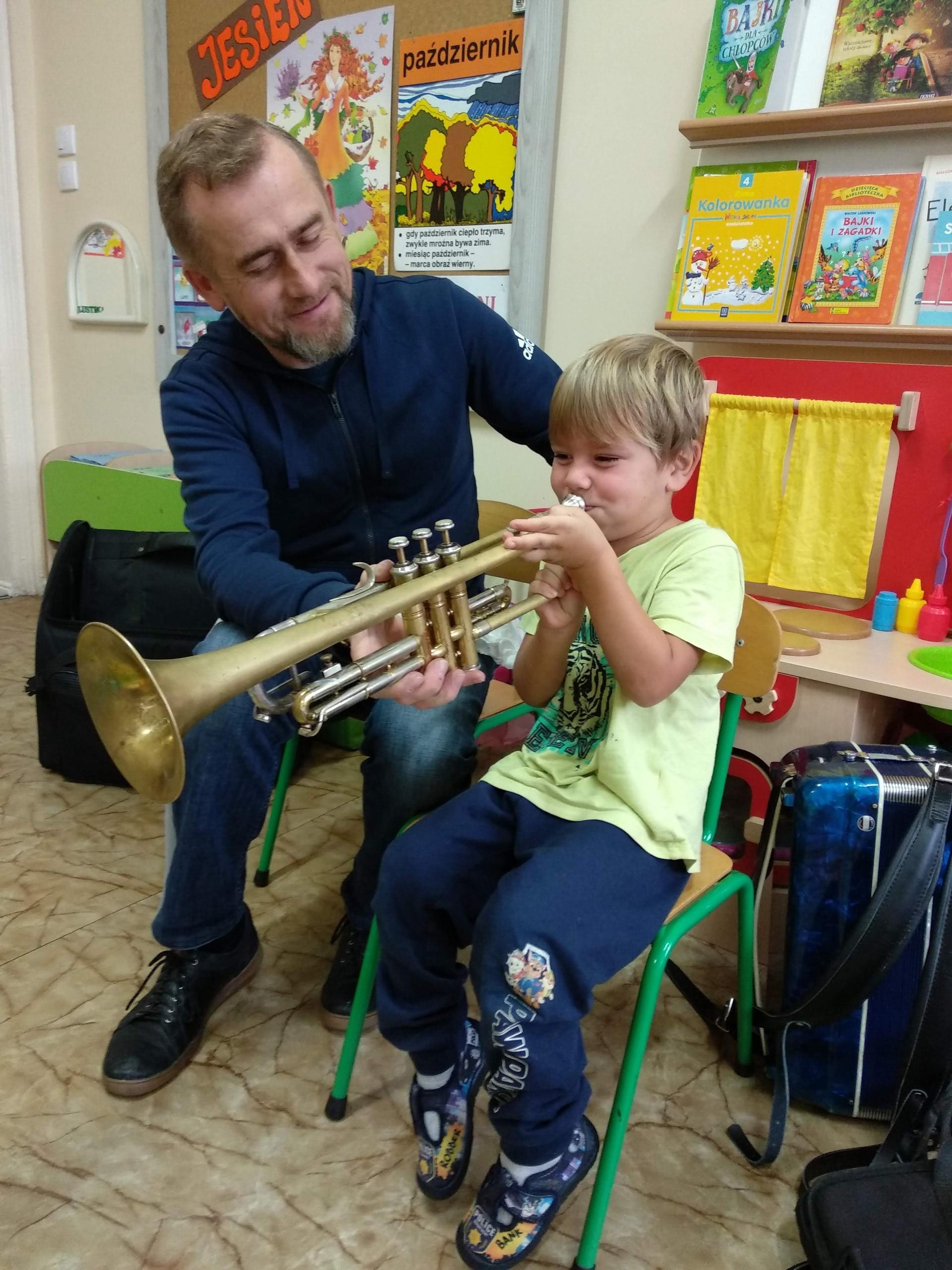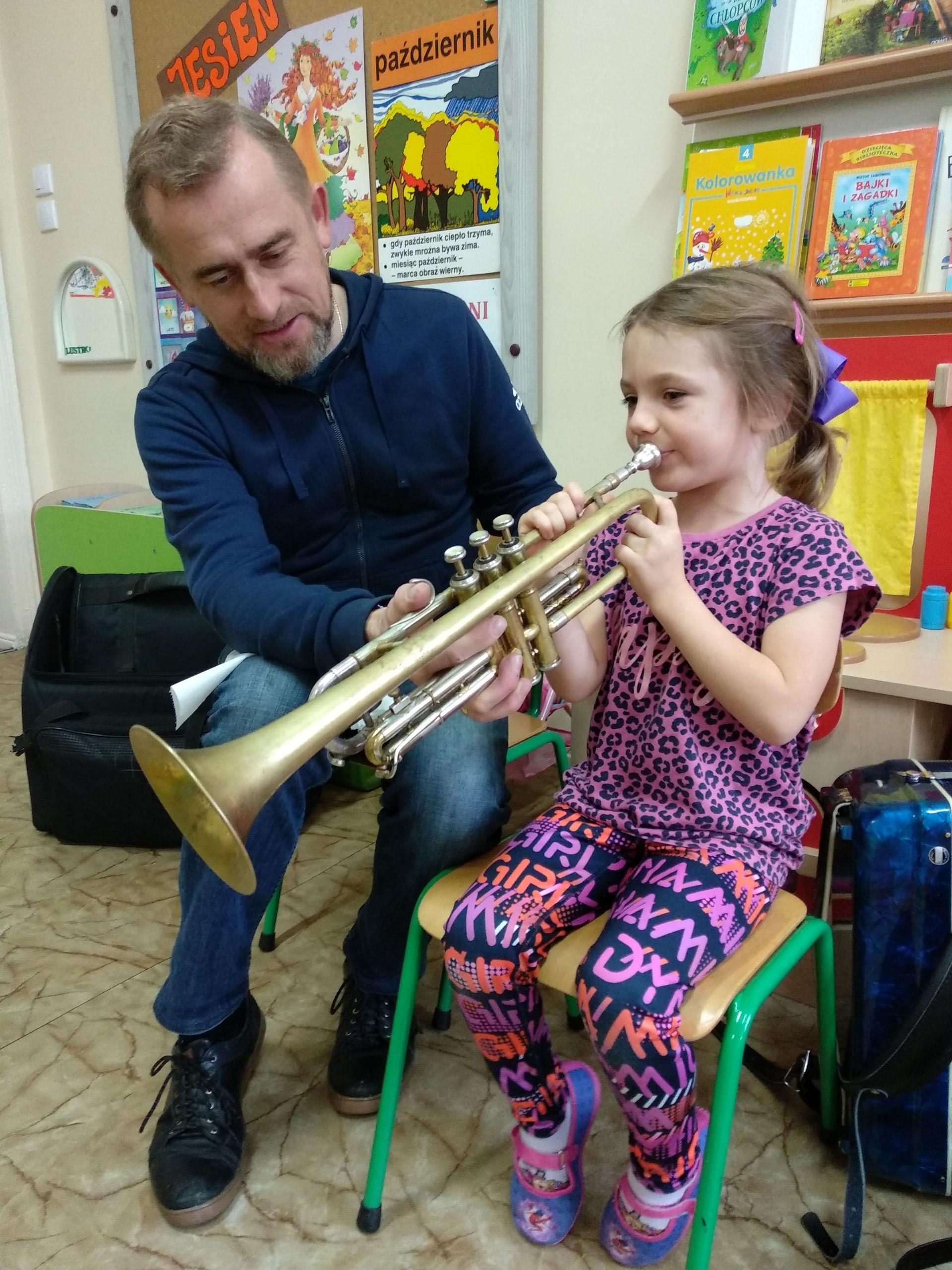 Na zajęciach, prowadzonych przez pana Andrzeja, dzieci rozwijały poczucie rytmu, słuch muzyczny, a także miały możliwość obcowania z różnymi instrumentami.