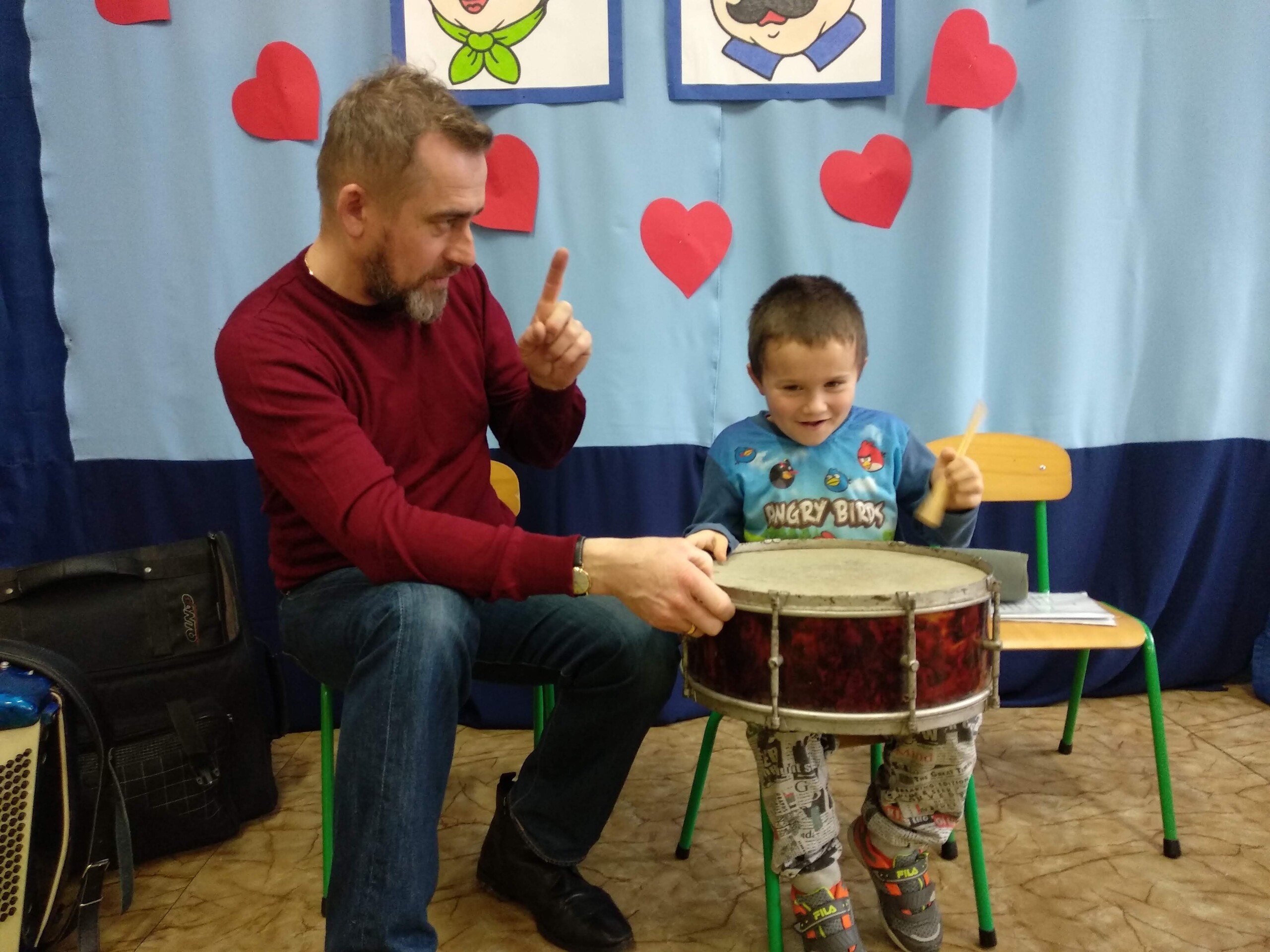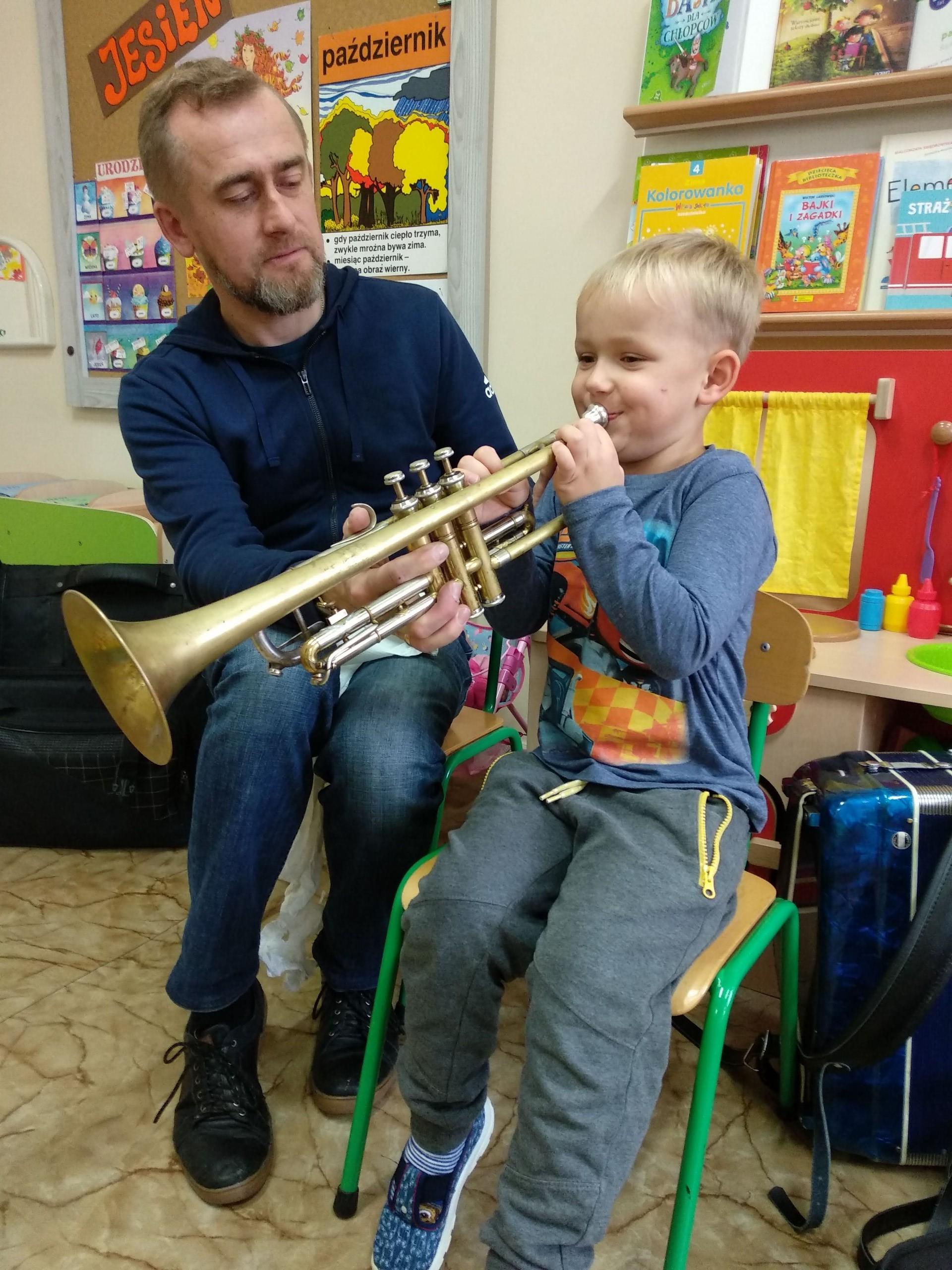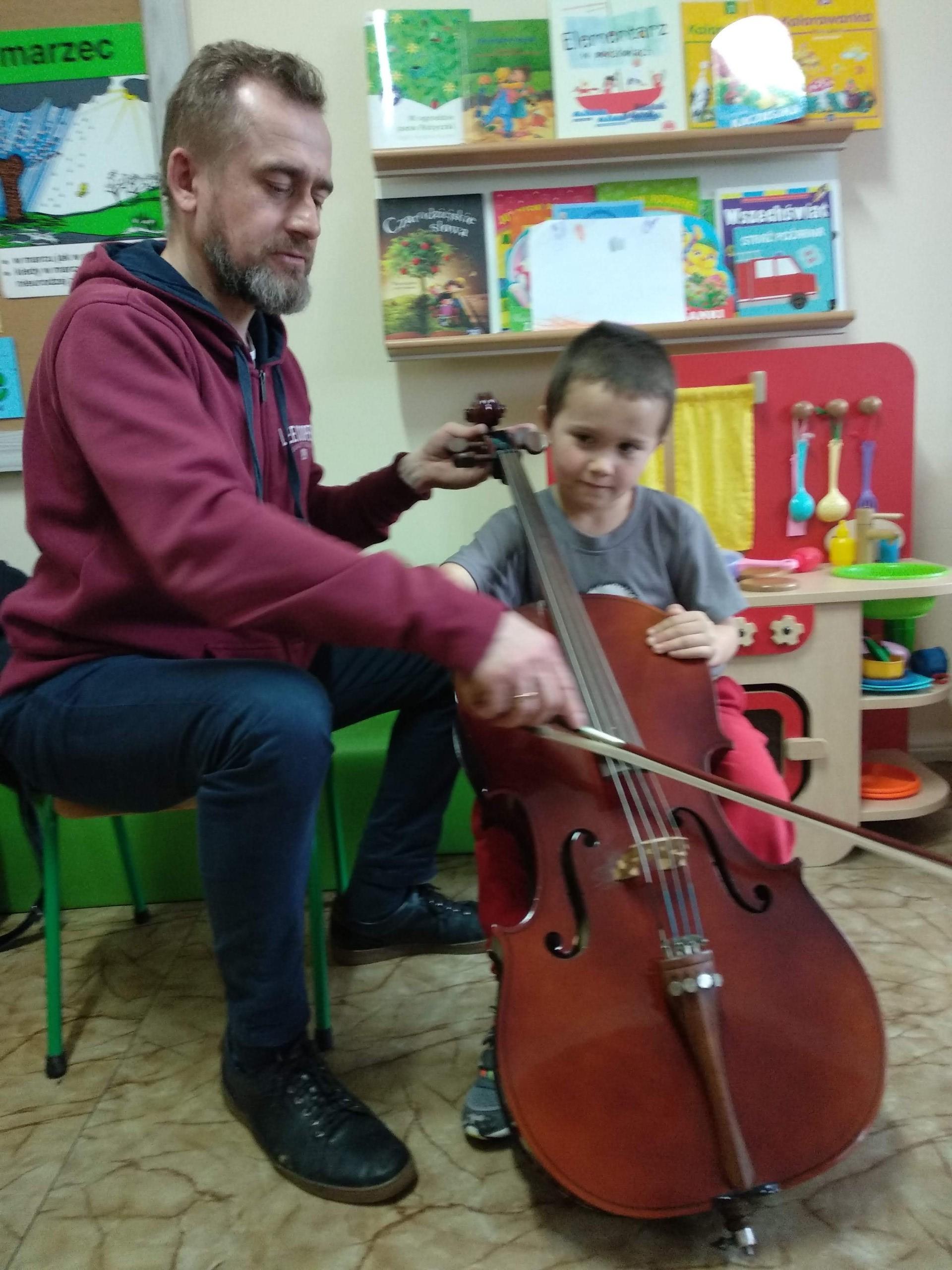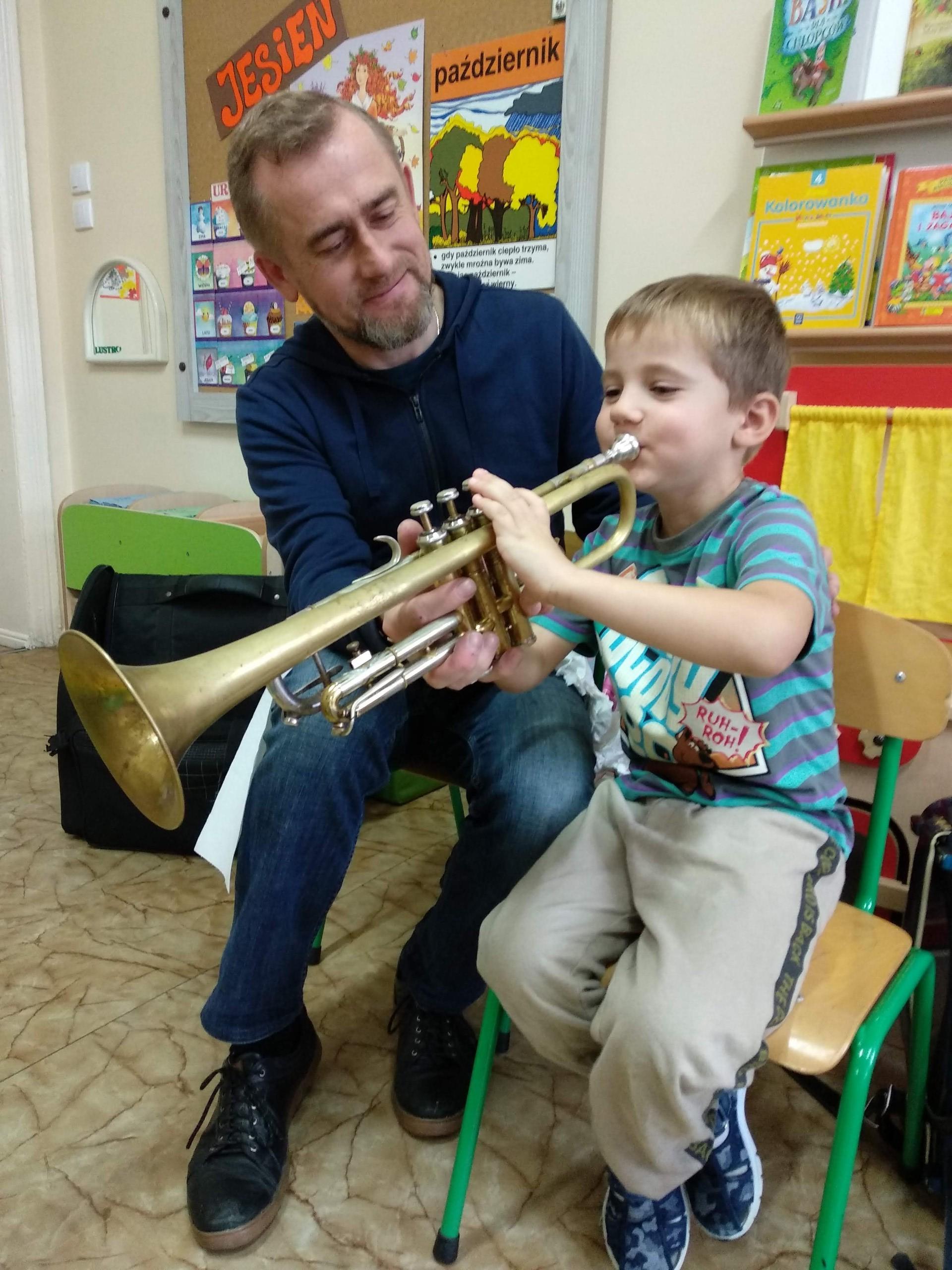 Na zajęciach, prowadzonych przez pana Andrzeja, dzieci rozwijały poczucie rytmu, słuch muzyczny, a także miały możliwość obcowania z różnymi instrumentami.