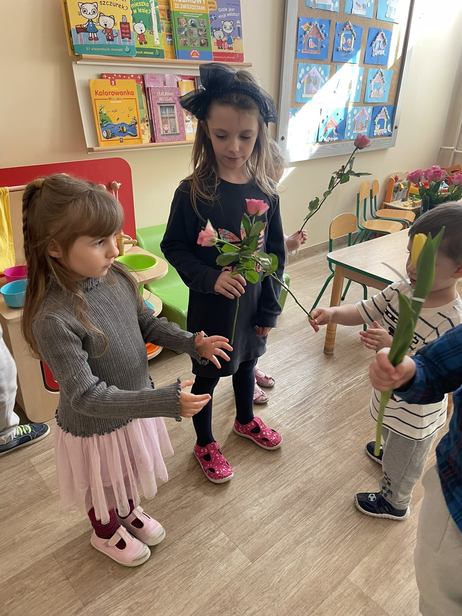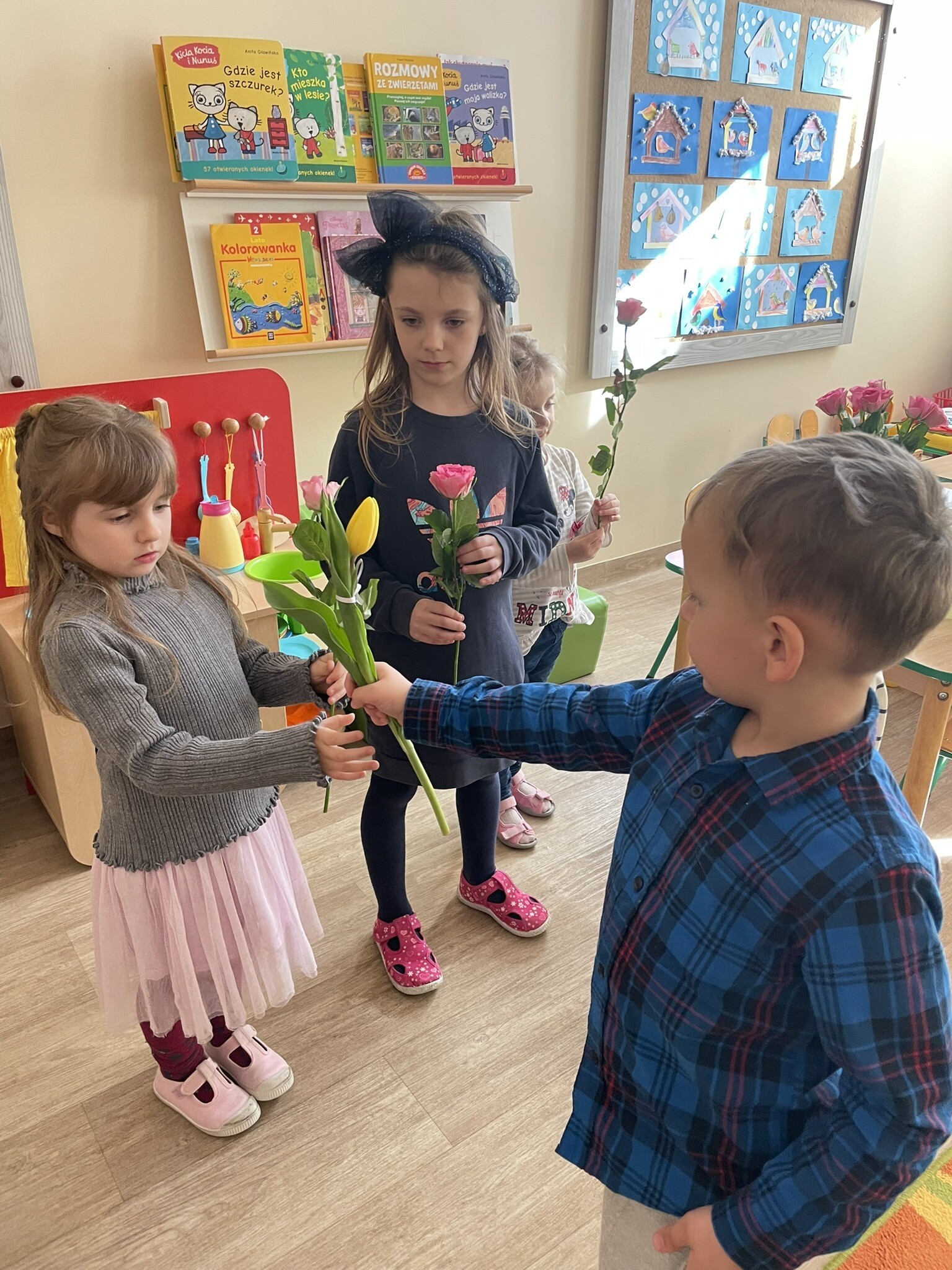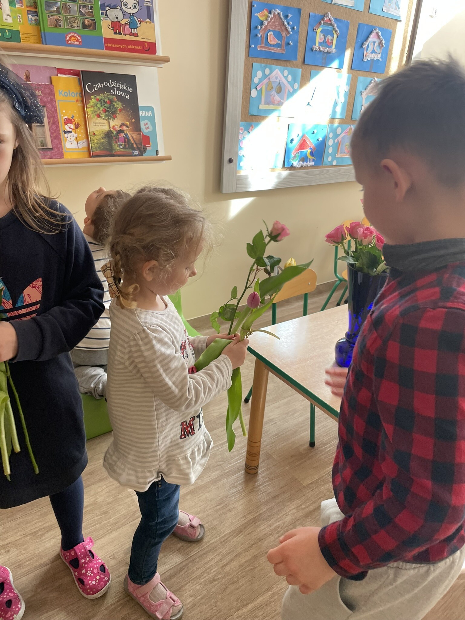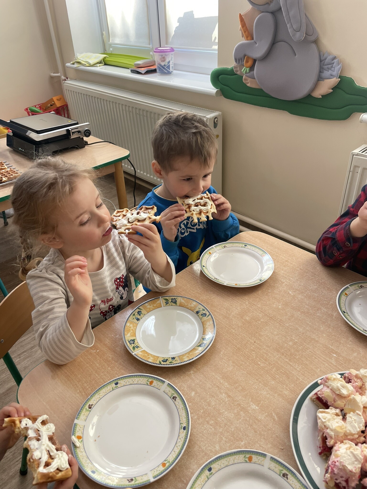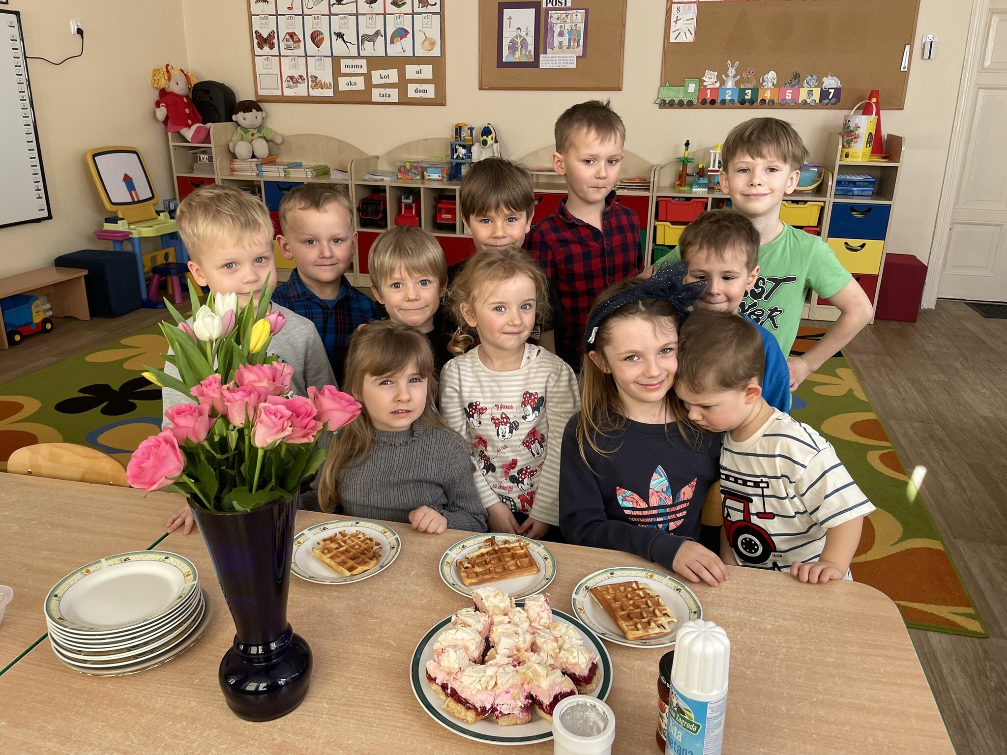 Z okazji zbliżającego się Dnia Kobiet, dziewczynki i panie zostały obdarowane przez chłopców kwiatami. Żeby było jeszcze przyjemniej, na stole pojawiły się gofry, a dzięki Pani Beacie, jak zwykle, przepyszne ciacho. DZIĘKUJEMY!