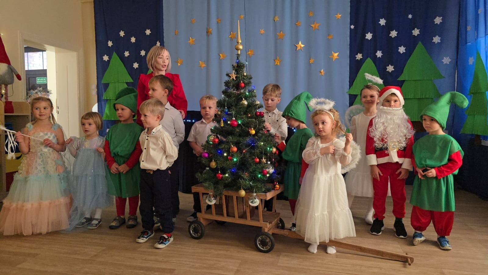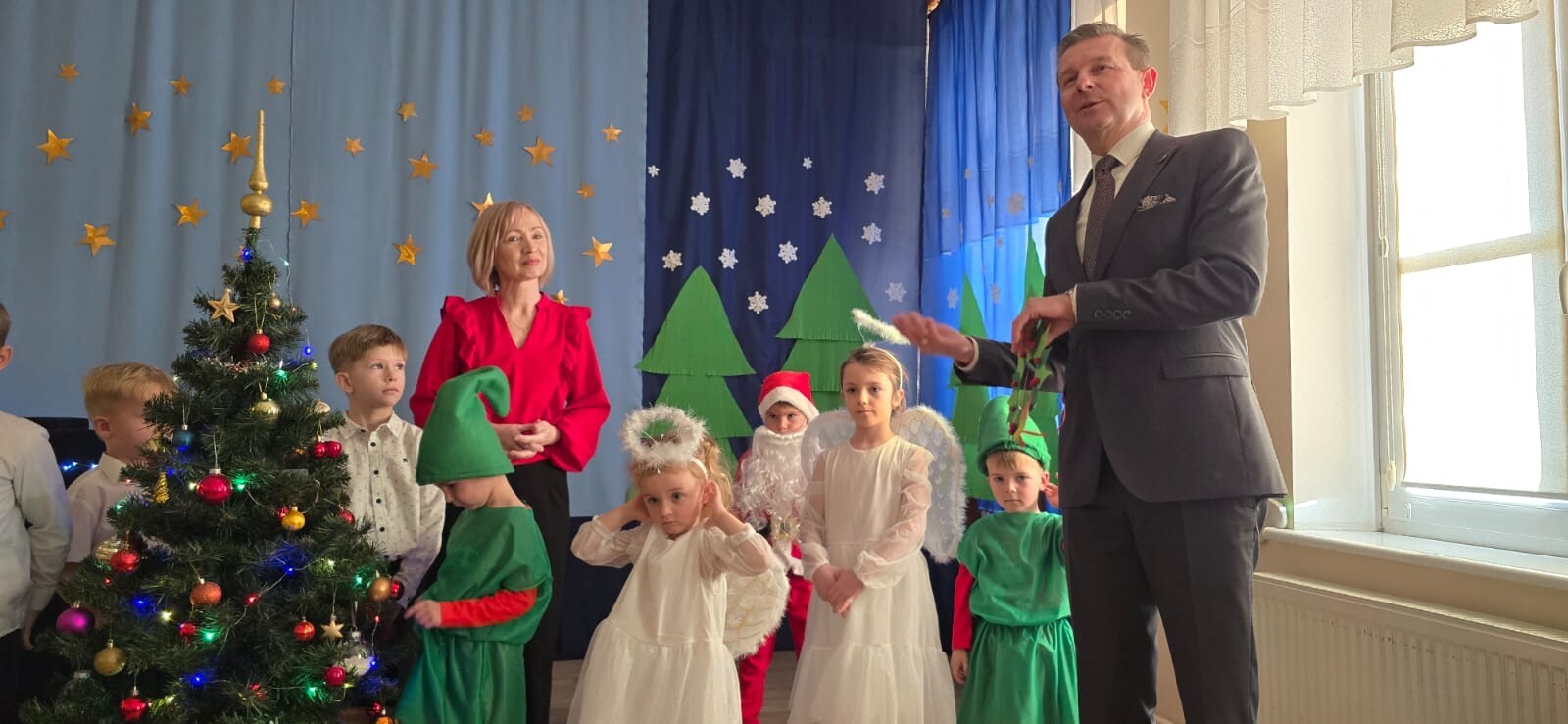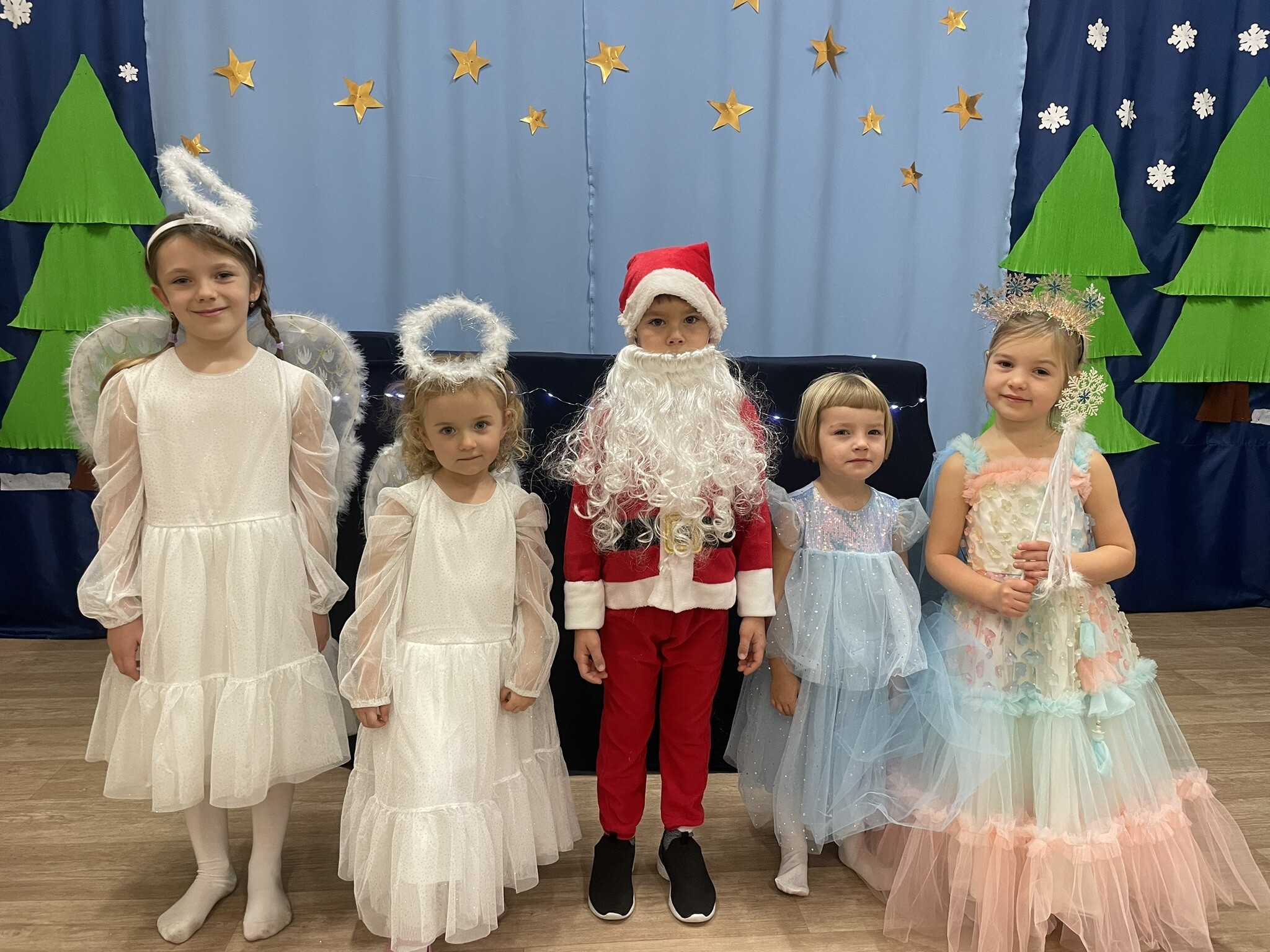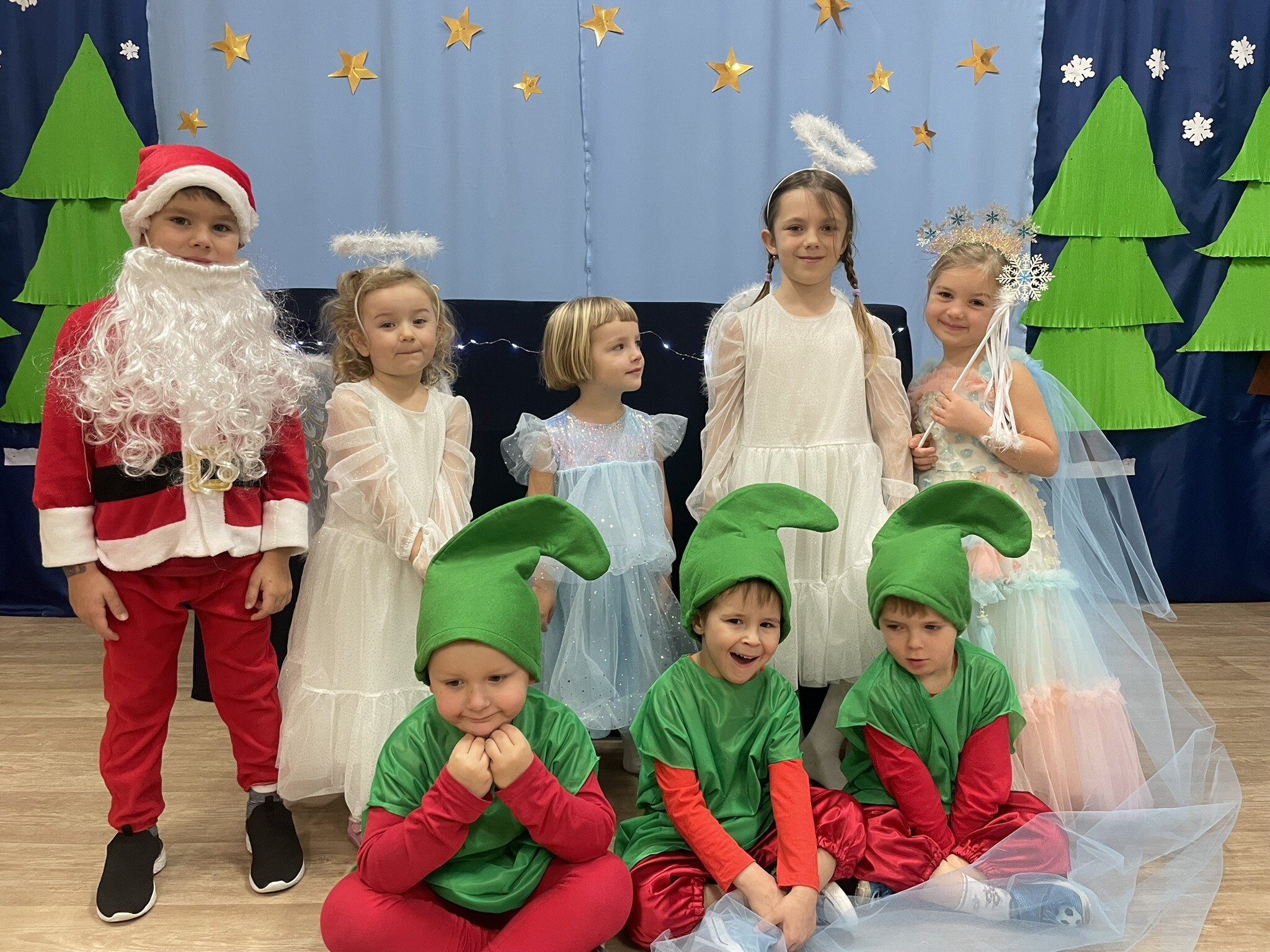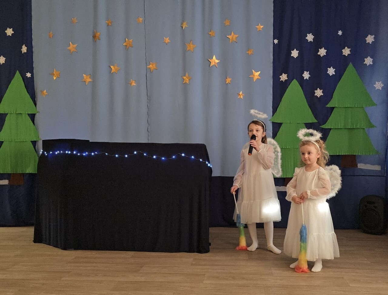 Mali aktorzy przygotowali dla swoich rodziców i zaproszonych gości świąteczną niespodziankę. Wyuczeni ról, w przepięknych strojach wystawili bajkę pt. ,,Kłopoty aniołków". Niespodzianka się udała, artyści otrzymali gromkie brawa. Pani dyrektor, Alicja Guźniczak, jak również Pan Marian Kurzydło, zastępca wójta, nie szczędzili słów uznania. Pracy było sporo, ale radości więcej.