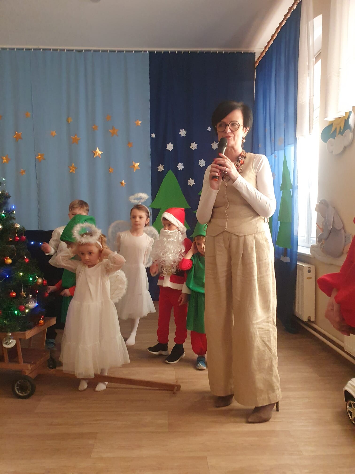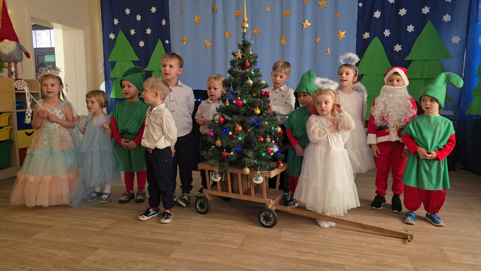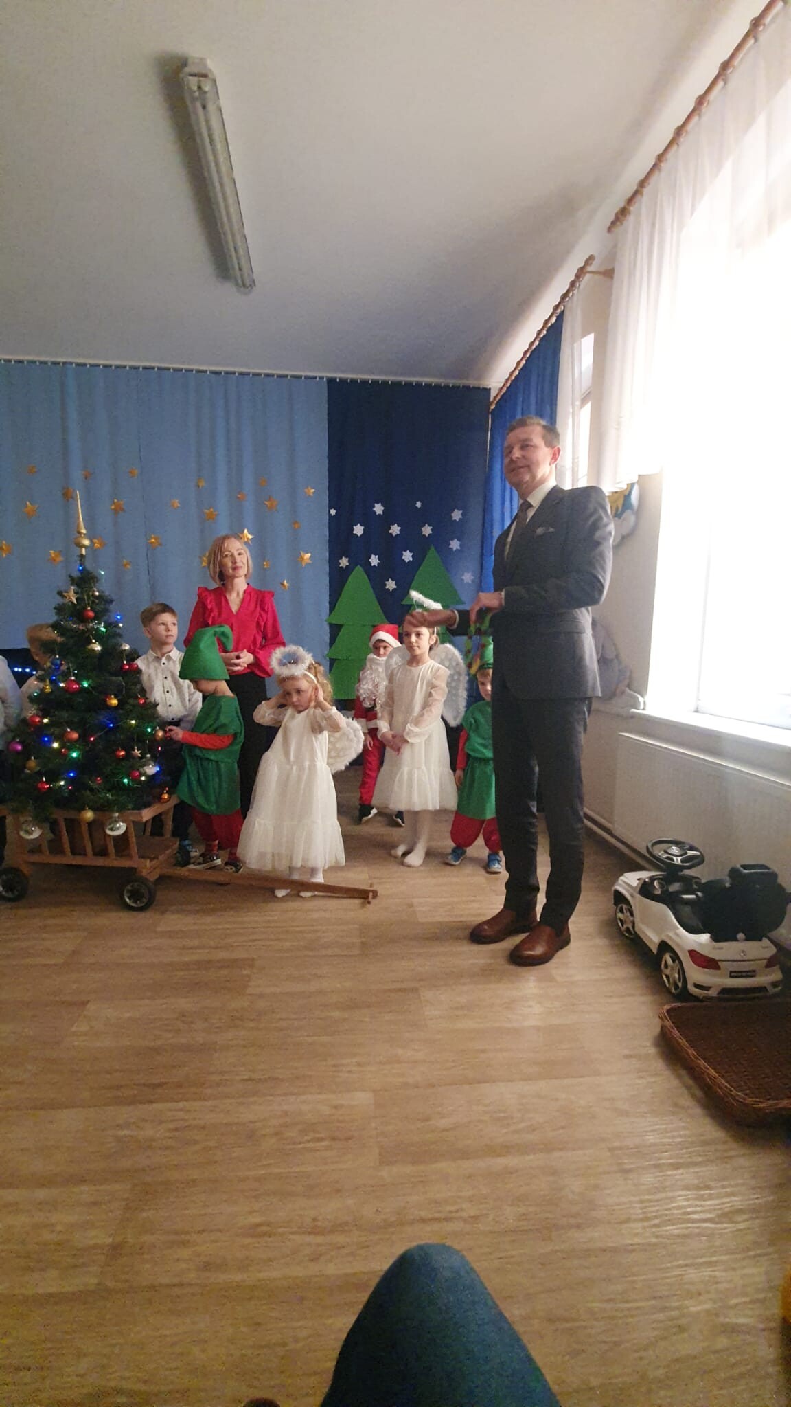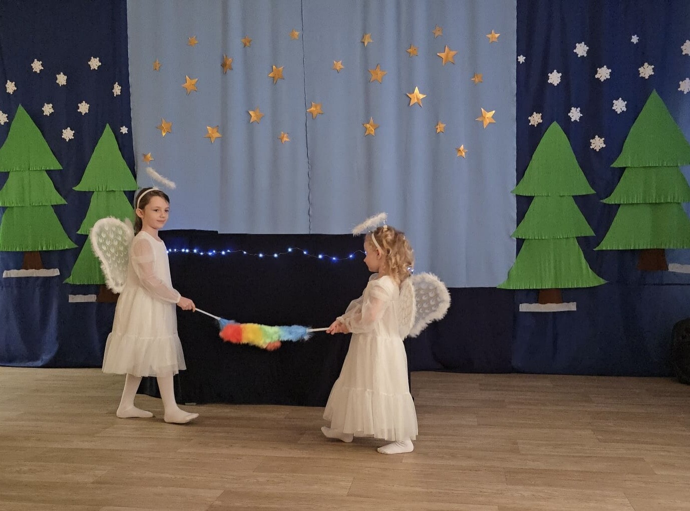 Mali aktorzy przygotowali dla swoich rodziców i zaproszonych gości świąteczną niespodziankę. Wyuczeni ról, w przepięknych strojach wystawili bajkę pt. ,,Kłopoty aniołków". Niespodzianka się udała, artyści otrzymali gromkie brawa. Pani dyrektor, Alicja Guźniczak, jak również Pan Marian Kurzydło, zastępca wójta, nie szczędzili słów uznania. Pracy było sporo, ale radości więcej.
