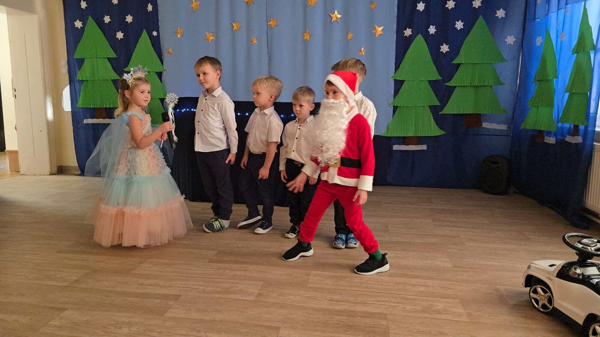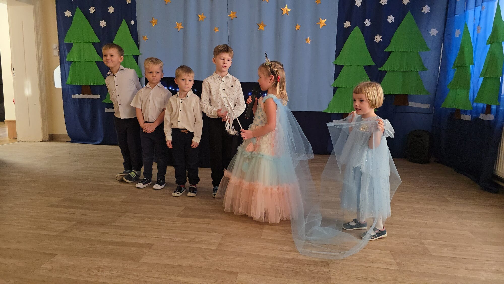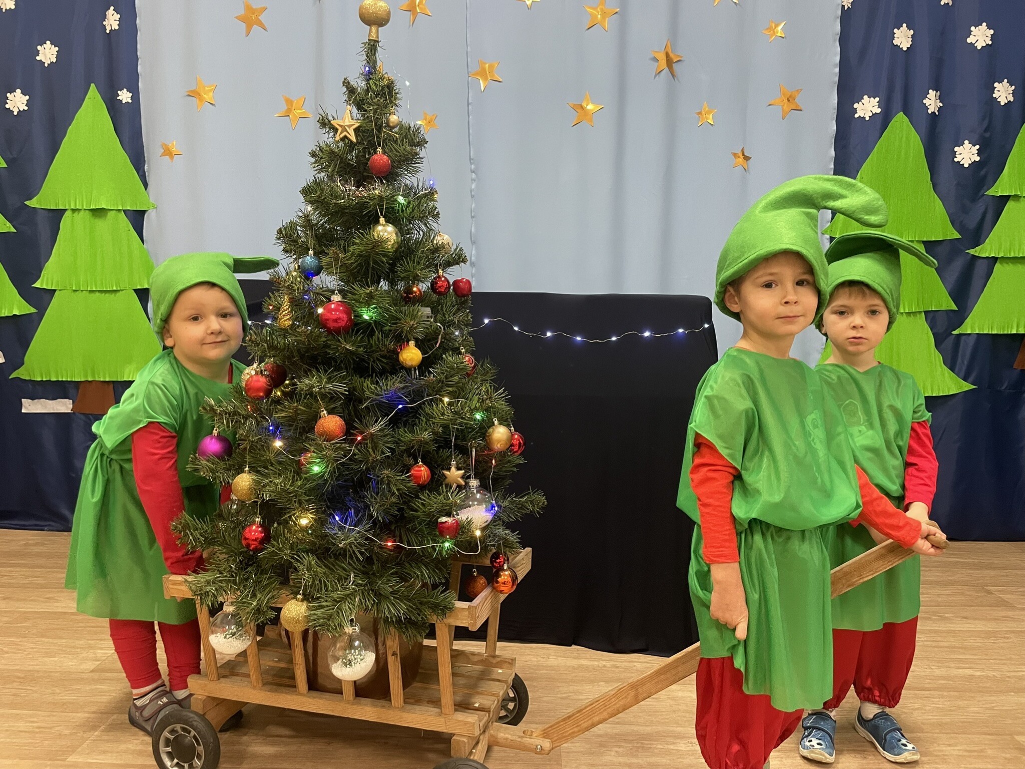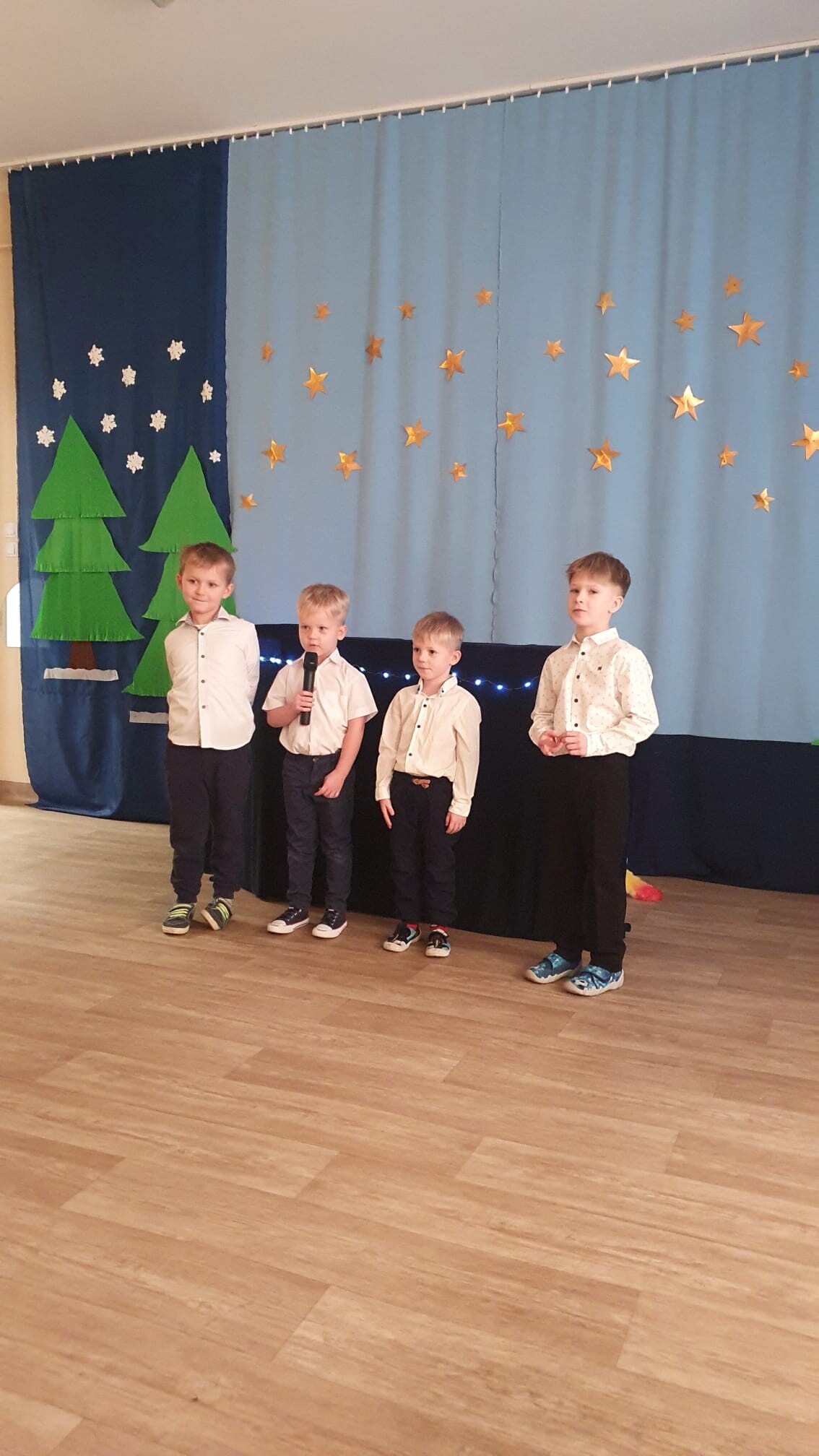 Mali aktorzy przygotowali dla swoich rodziców i zaproszonych gości świąteczną niespodziankę. Wyuczeni ról, w przepięknych strojach wystawili bajkę pt. ,,Kłopoty aniołków". Niespodzianka się udała, artyści otrzymali gromkie brawa. Pani dyrektor, Alicja Guźniczak, jak również Pan Marian Kurzydło, zastępca wójta, nie szczędzili słów uznania. Pracy było sporo, ale radości więcej.