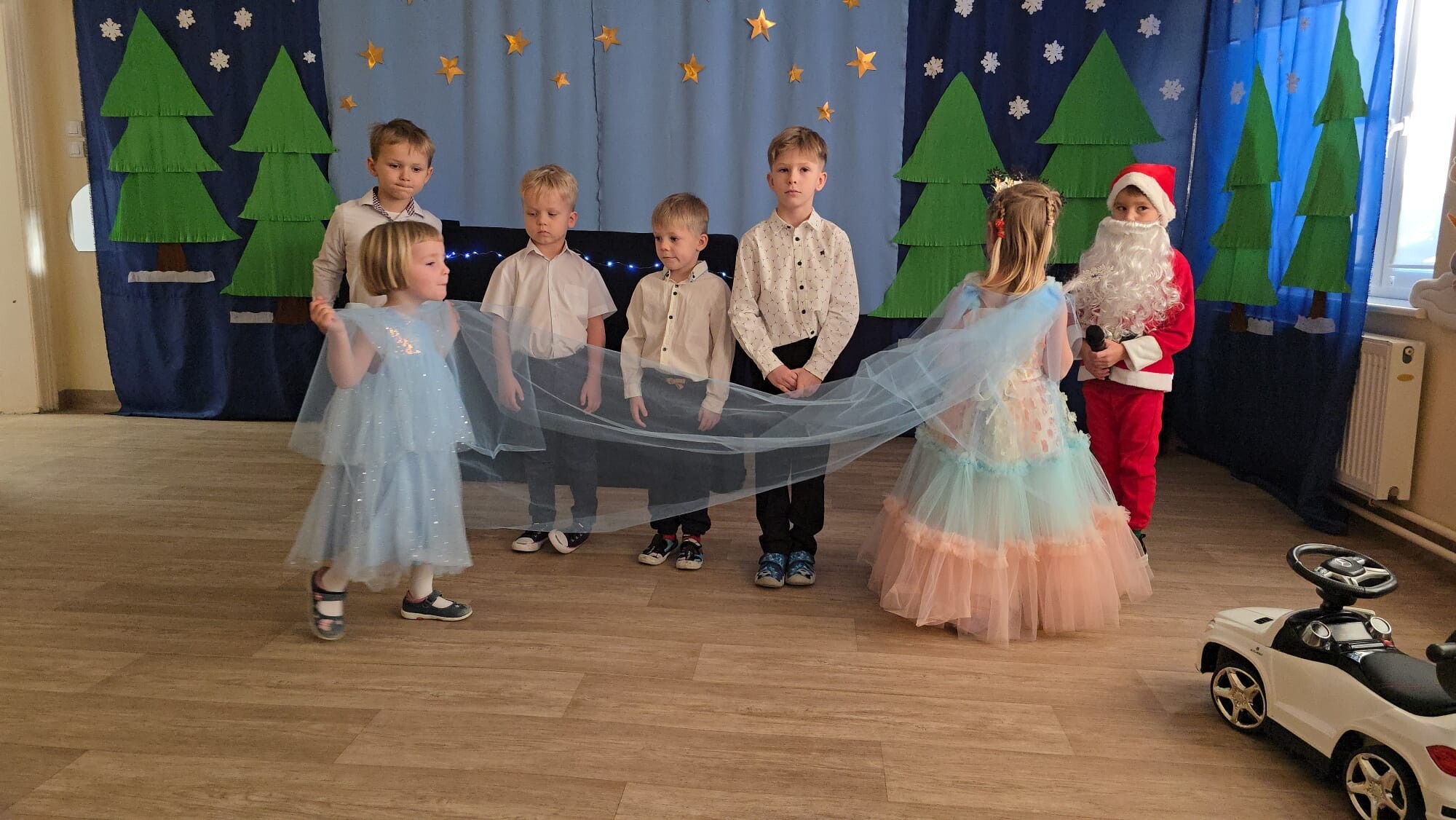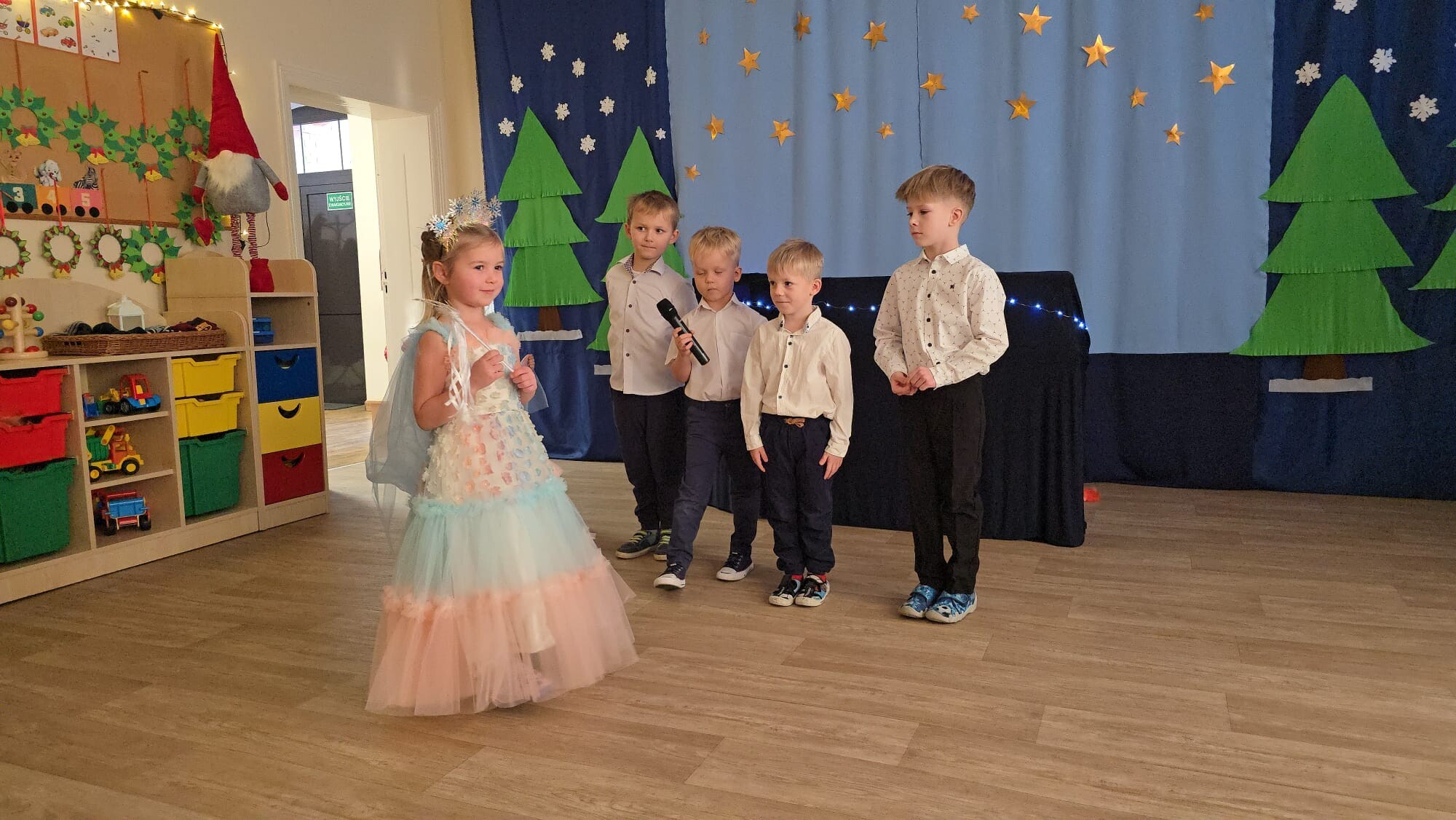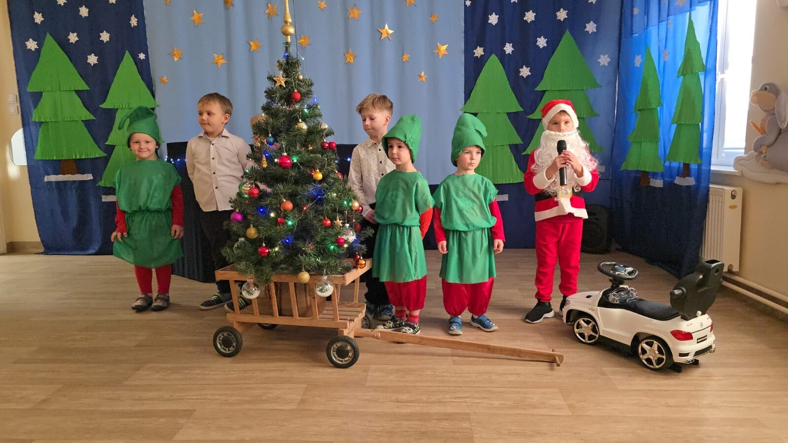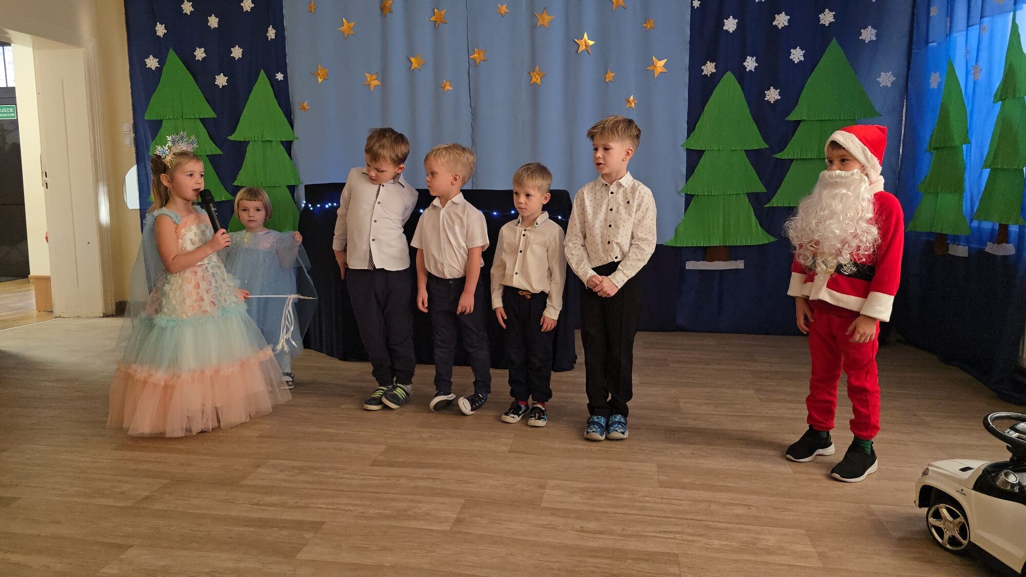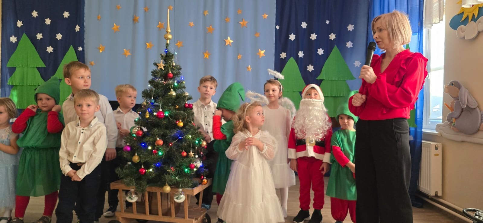 Mali aktorzy przygotowali dla swoich rodziców i zaproszonych gości świąteczną niespodziankę. Wyuczeni ról, w przepięknych strojach wystawili bajkę pt. ,,Kłopoty aniołków". Niespodzianka się udała, artyści otrzymali gromkie brawa. Pani dyrektor, Alicja Guźniczak, jak również Pan Marian Kurzydło, zastępca wójta, nie szczędzili słów uznania. Pracy było sporo, ale radości więcej.
