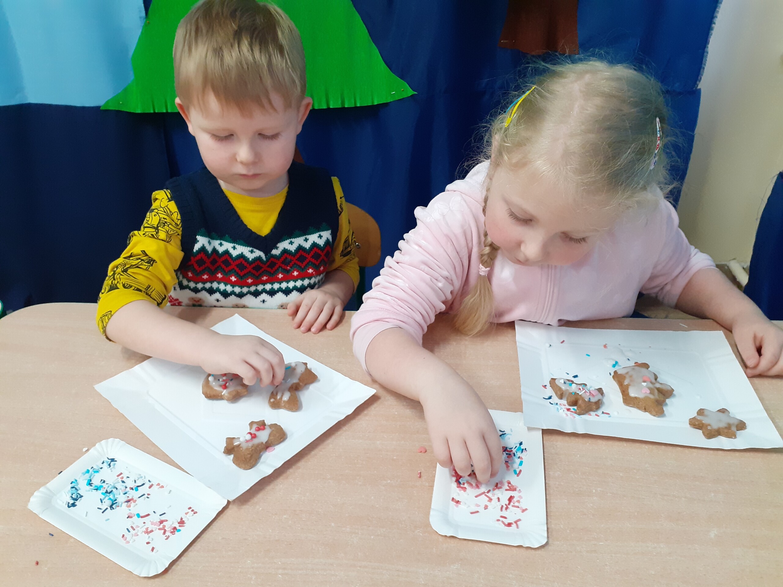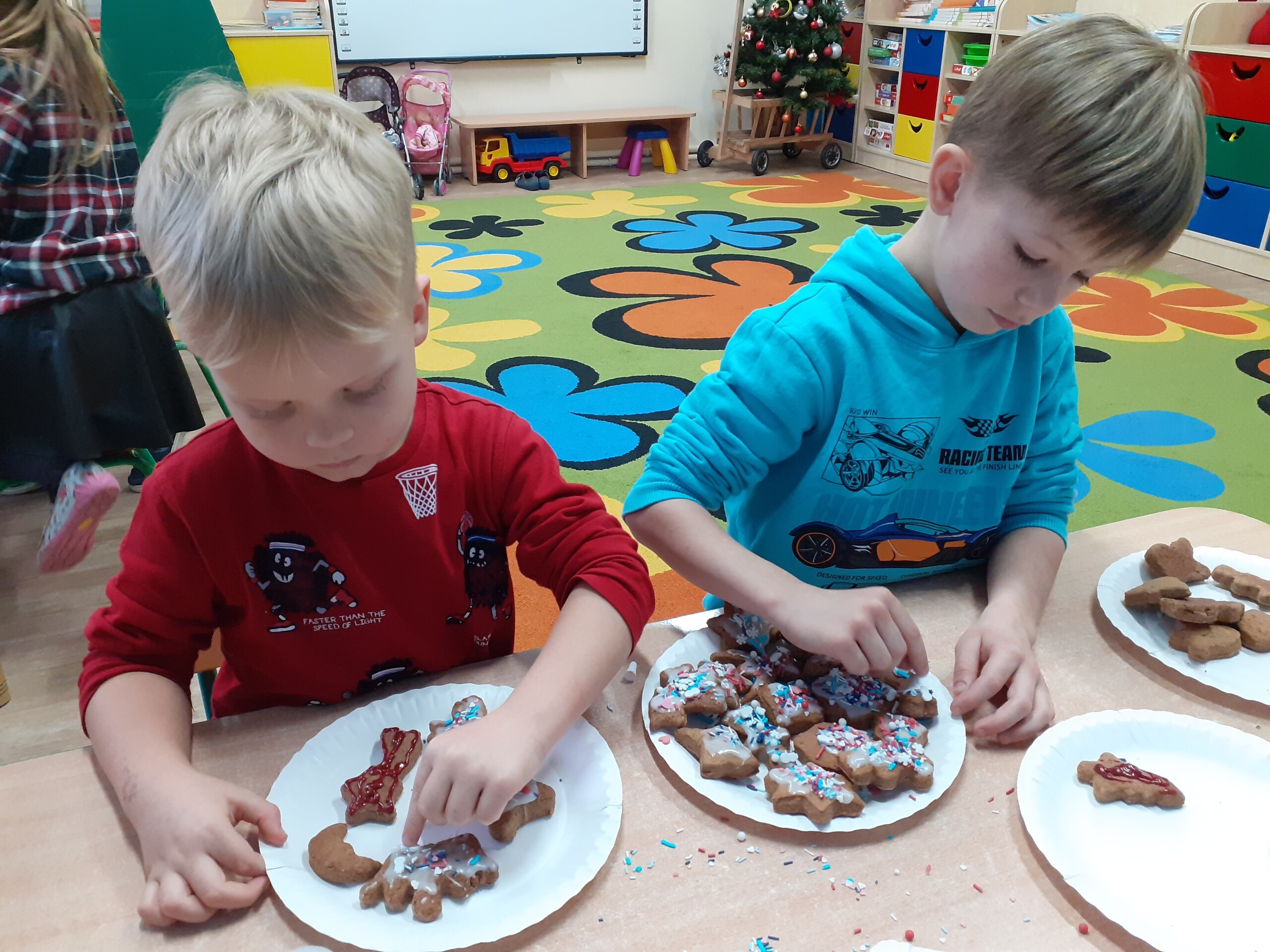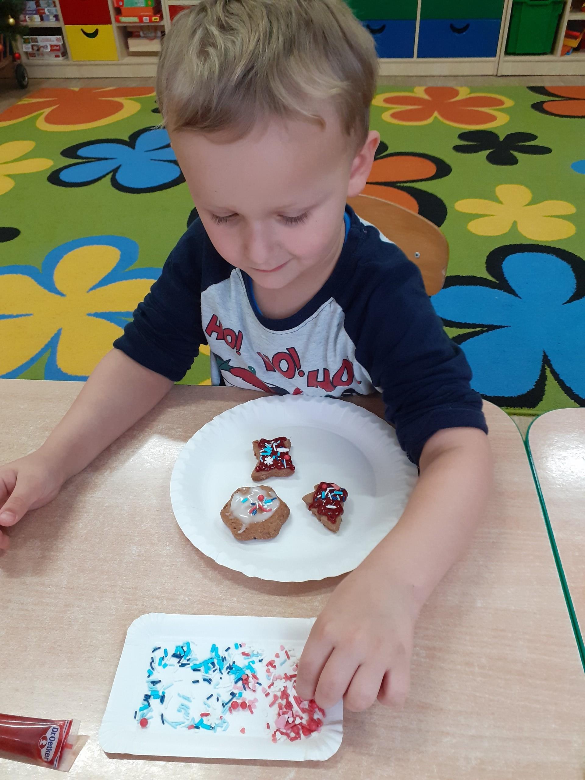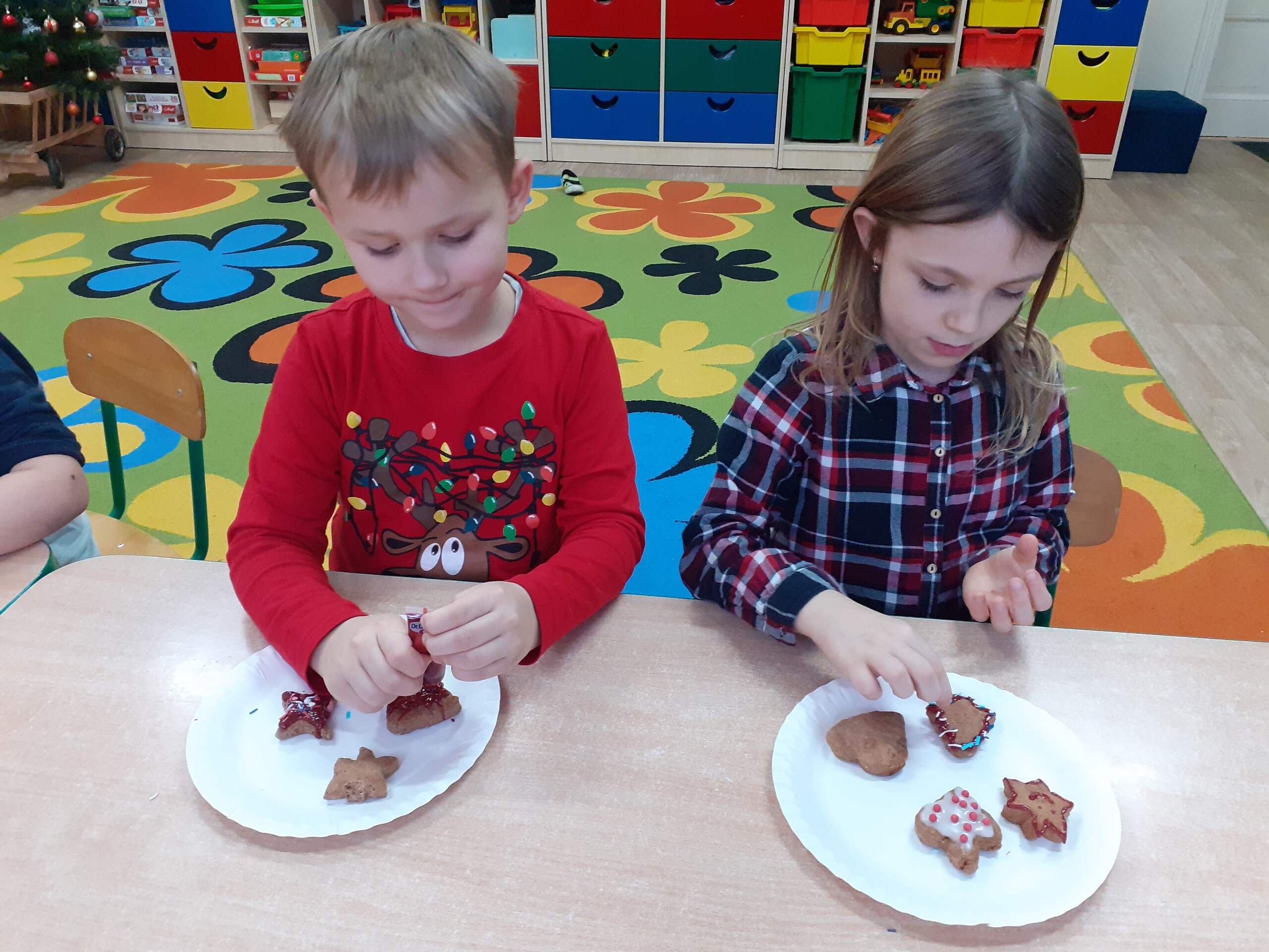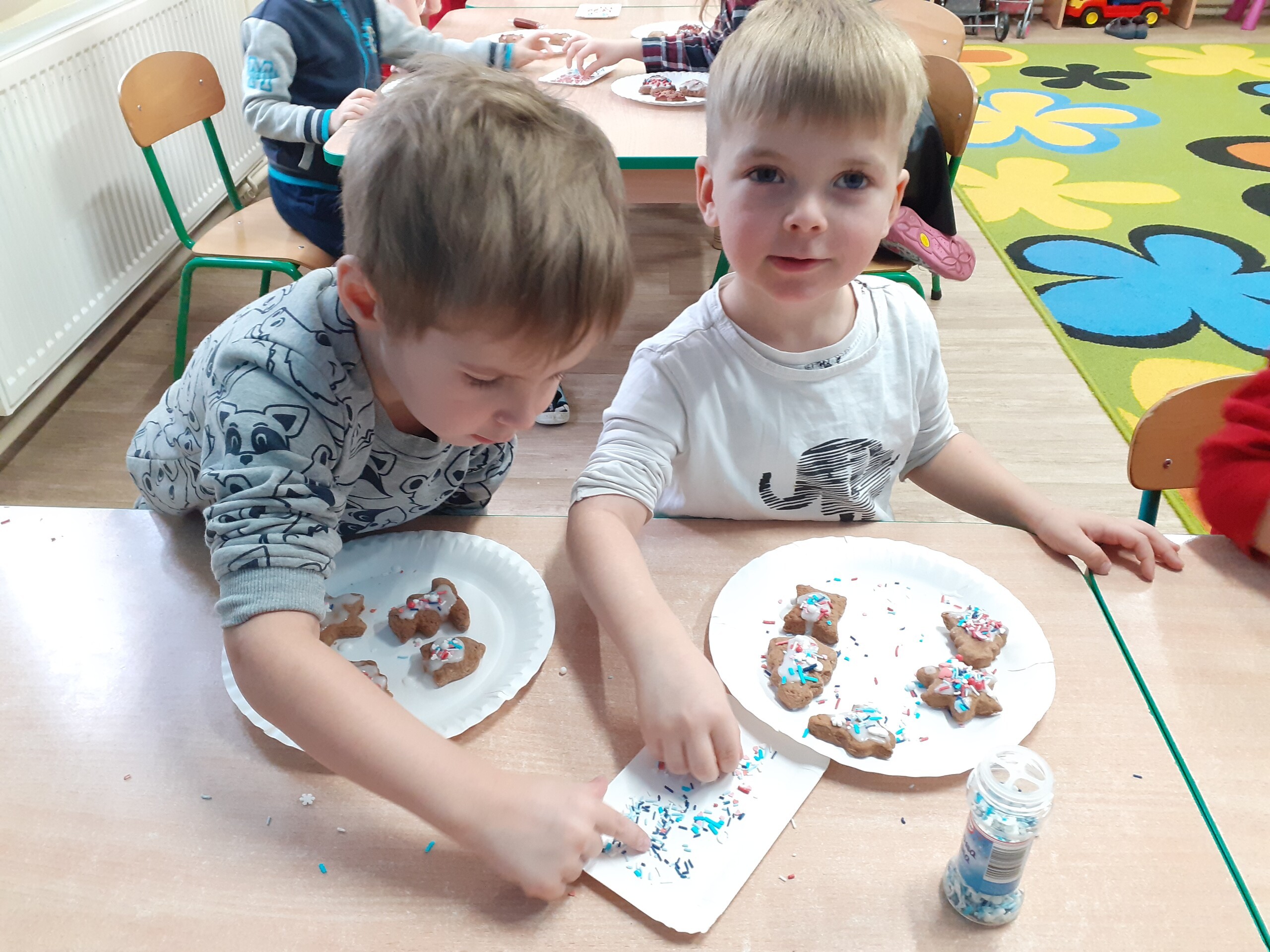 Przedszkolaki tym razem mogły się wykazać swoją kreatywnością ozdabiając przyniesiony przez Leo i Elenkę ogrom pierników. Oczywiście podczas pracy pałaszowały w najlepsze. Babci Leo i Elenki bardzo dziękujemy.