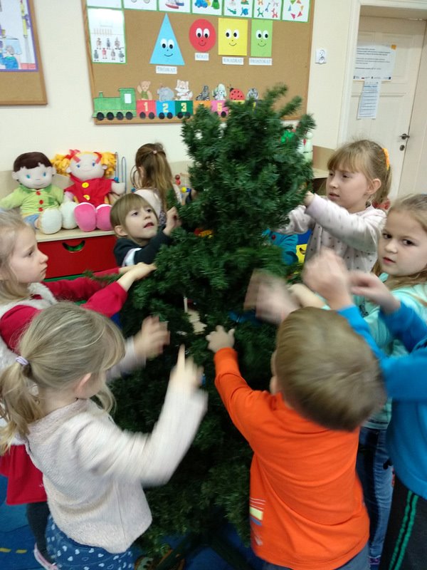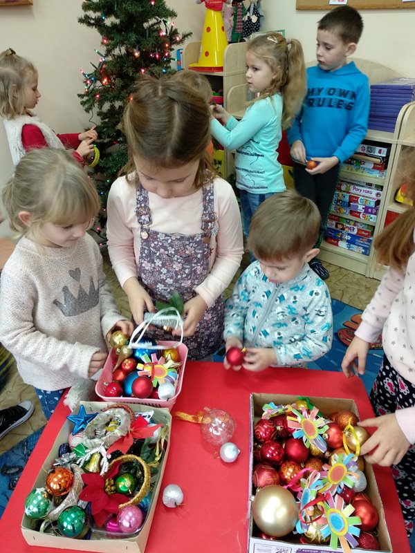 ...prace plastyczno-techniczne, spotkanie z ,,Mikołajką", ubieranie choinki i wspólne kolędowanie