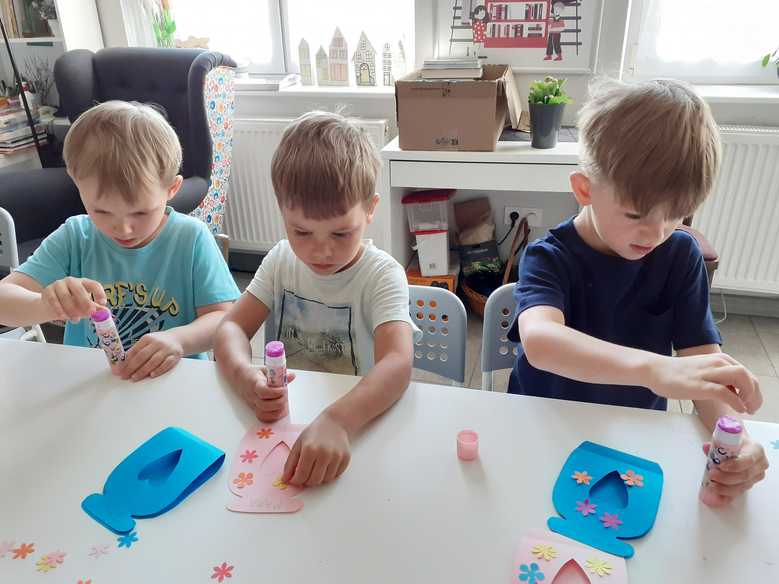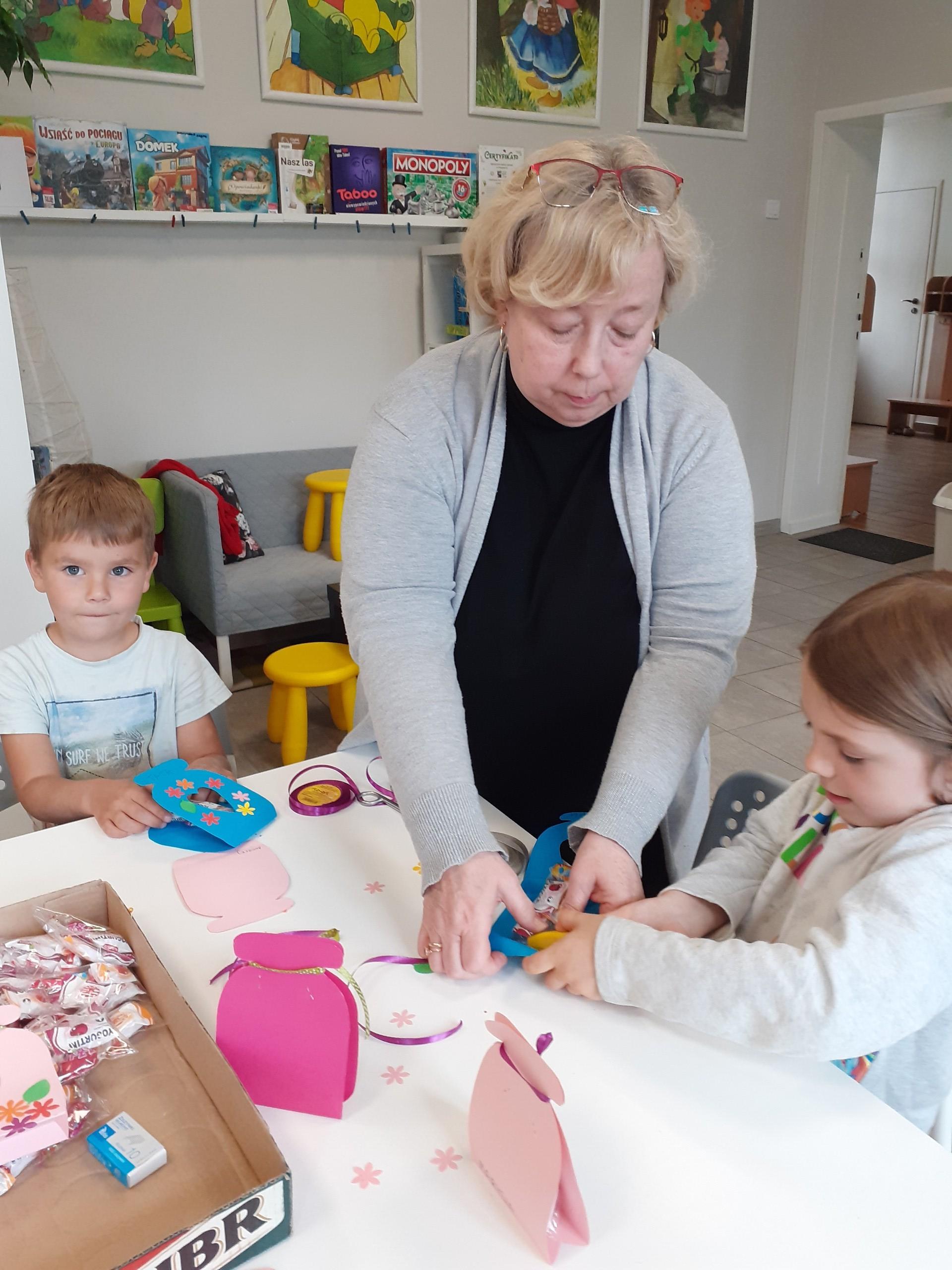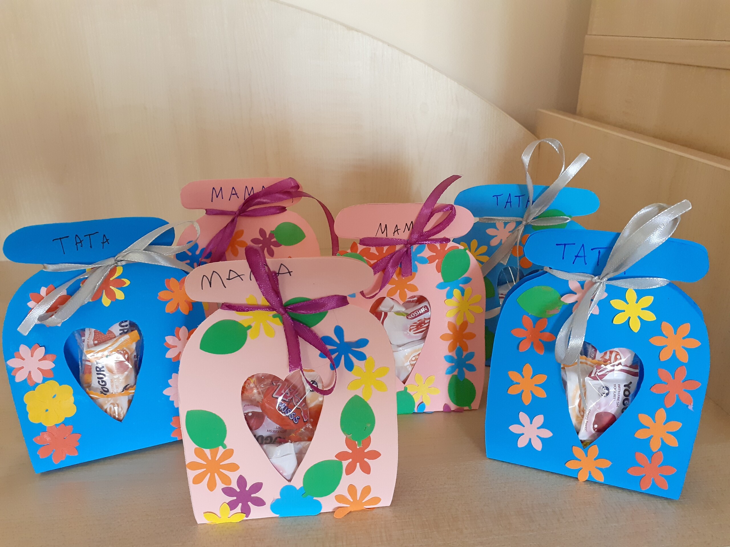 Przedszkolaki bardzo aktywnie przygotowywały się do uroczystego spotkania z rodzicami. Poza nauką piosenek, wierszy i tańców rysowały portrety rodziców, a także wykonały upominki w postaci kwiatów oraz papierowych słoiczków wypełnionych cukierkami. Pomysł słodkich upominków zaproponowała i pomogła w ich wykonaniu p. Basia - dziękujemy.