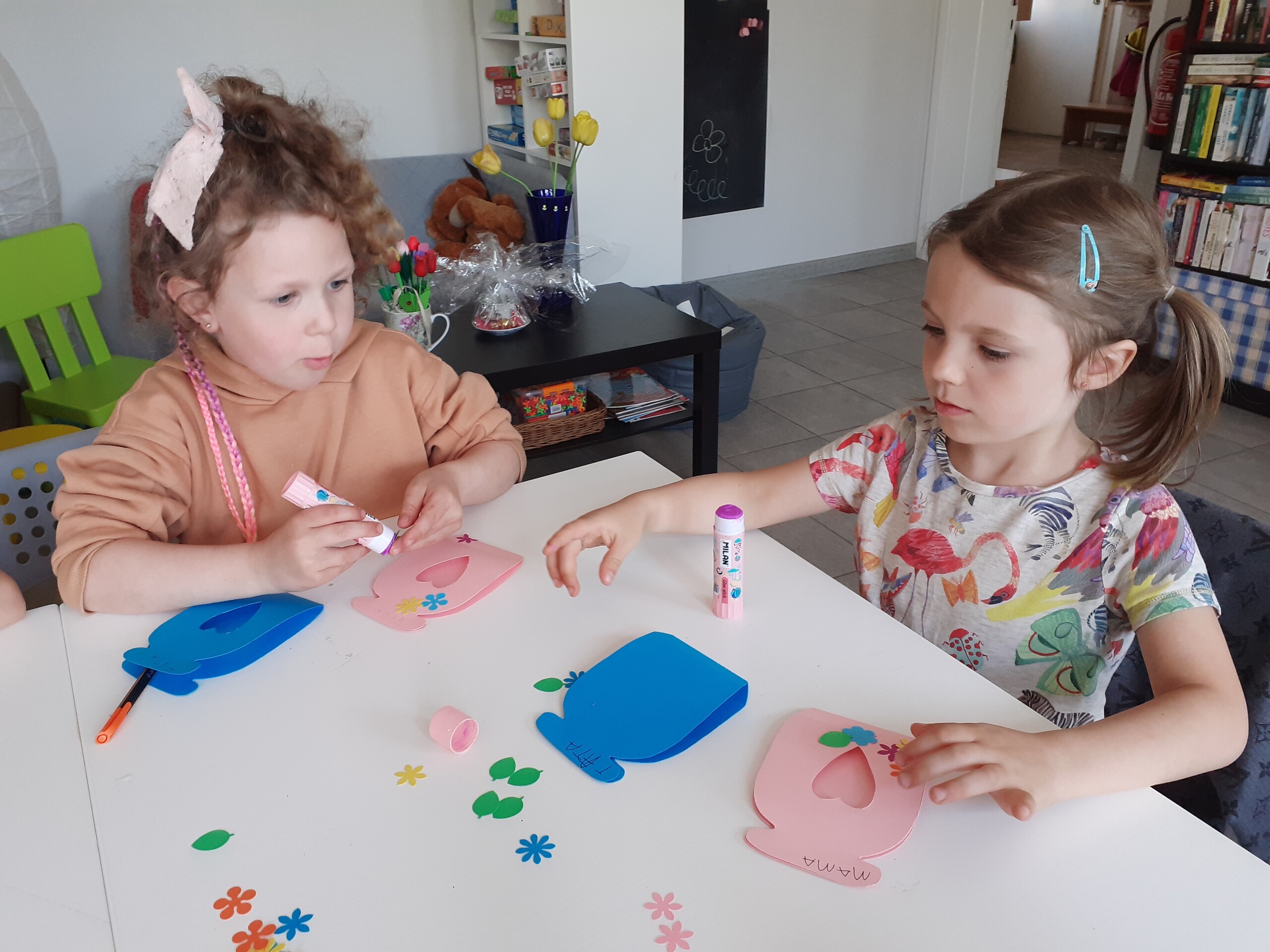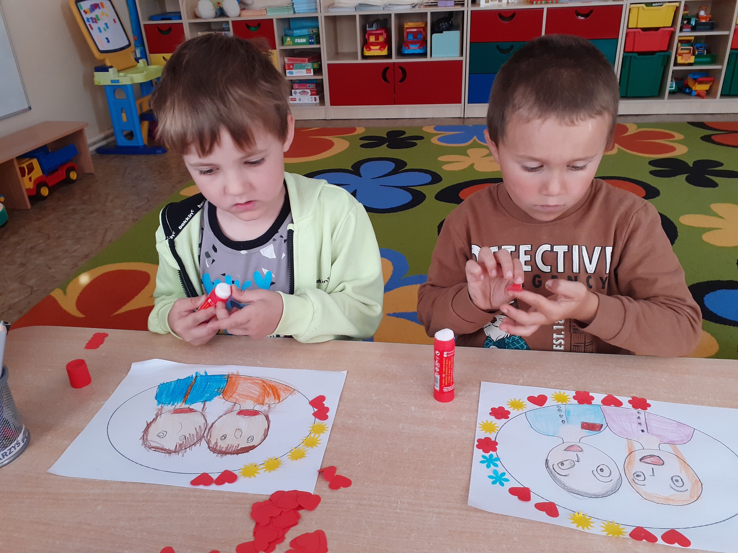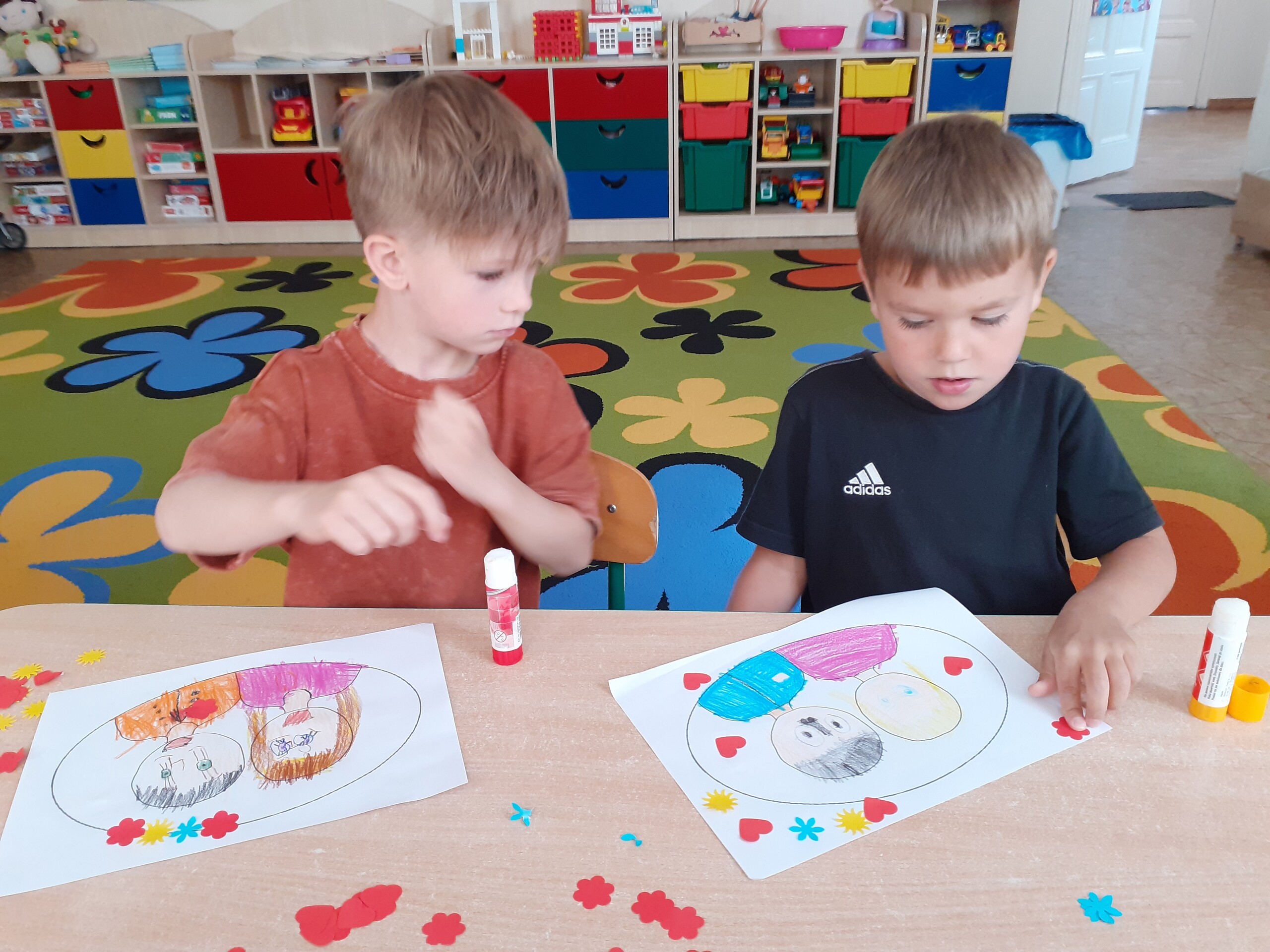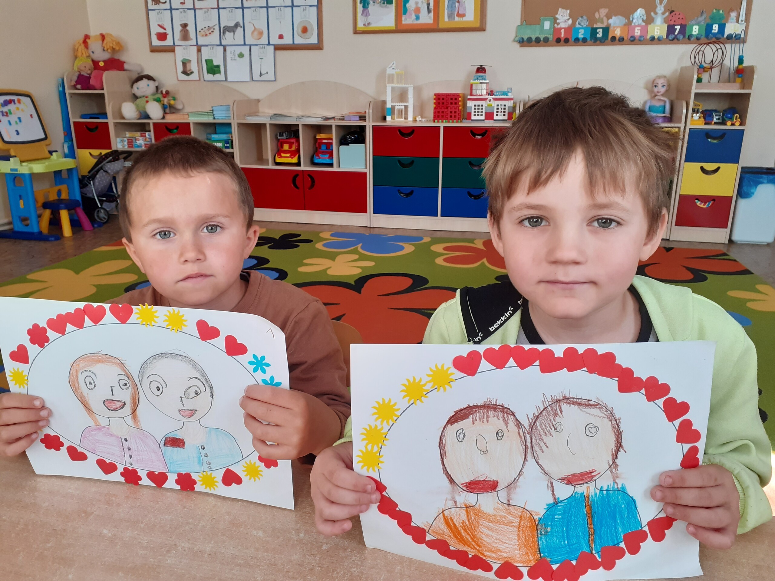Przedszkolaki bardzo aktywnie przygotowywały się do uroczystego spotkania z rodzicami. Poza nauką piosenek, wierszy i tańców rysowały portrety rodziców, a także wykonały upominki w postaci kwiatów oraz papierowych słoiczków wypełnionych cukierkami. Pomysł słodkich upominków zaproponowała i pomogła w ich wykonaniu p. Basia - dziękujemy.